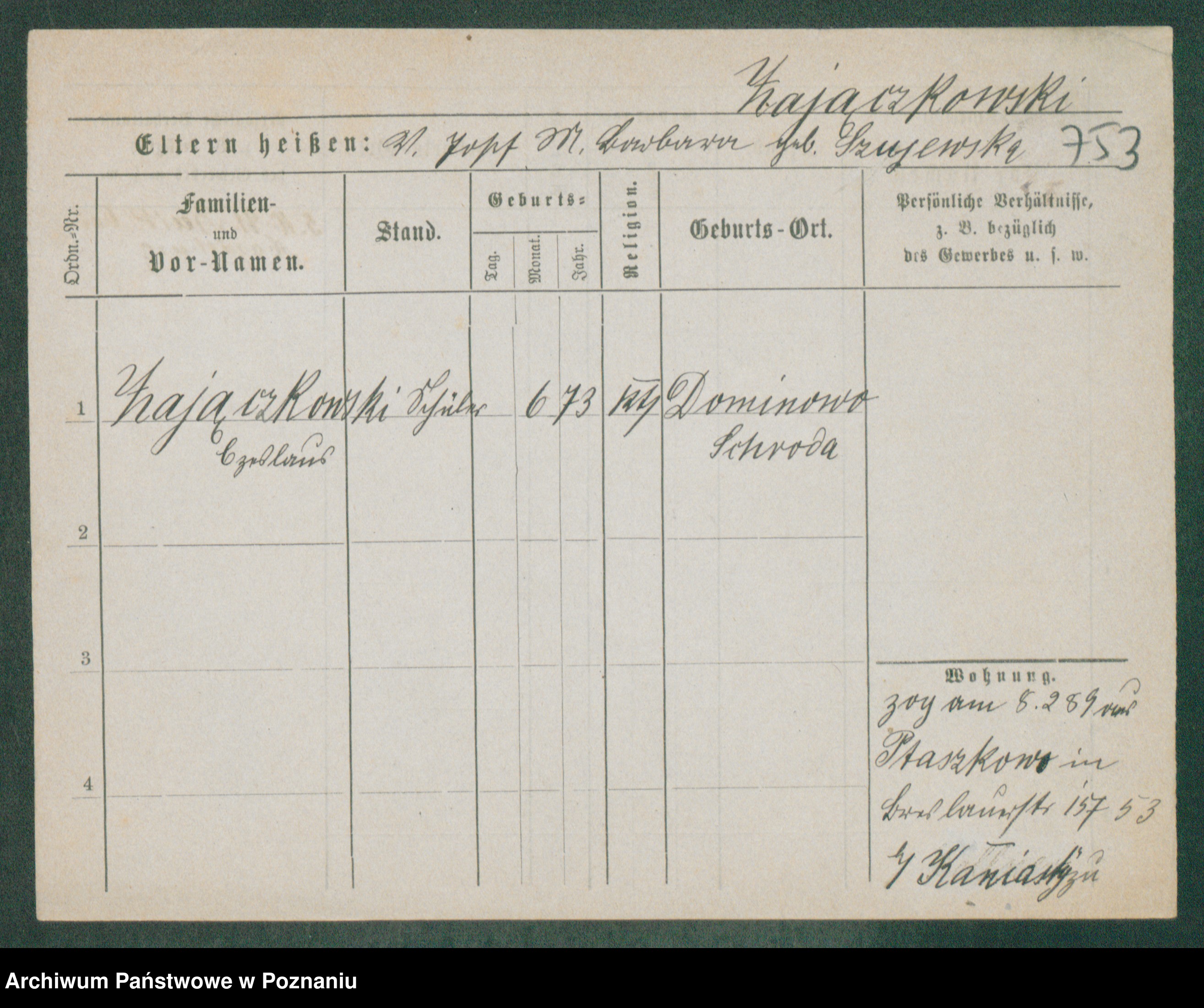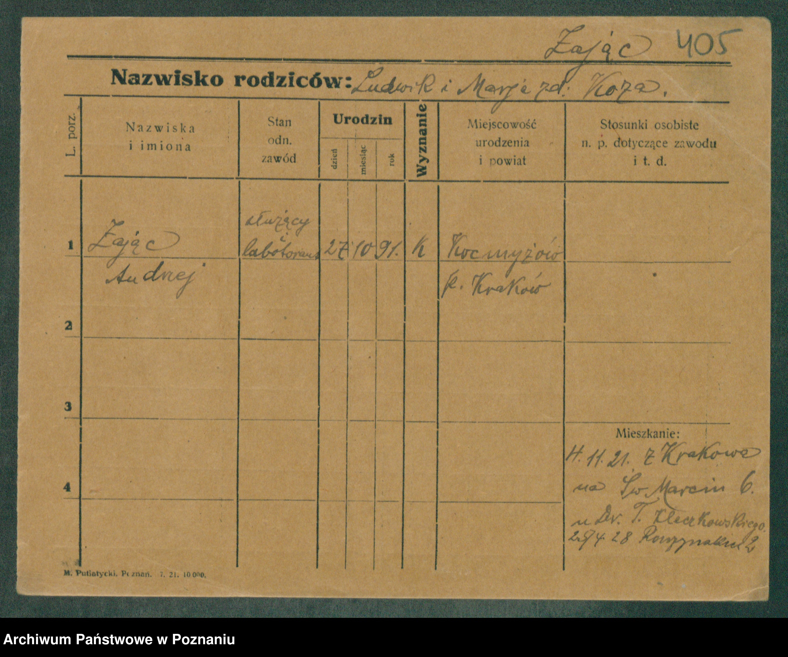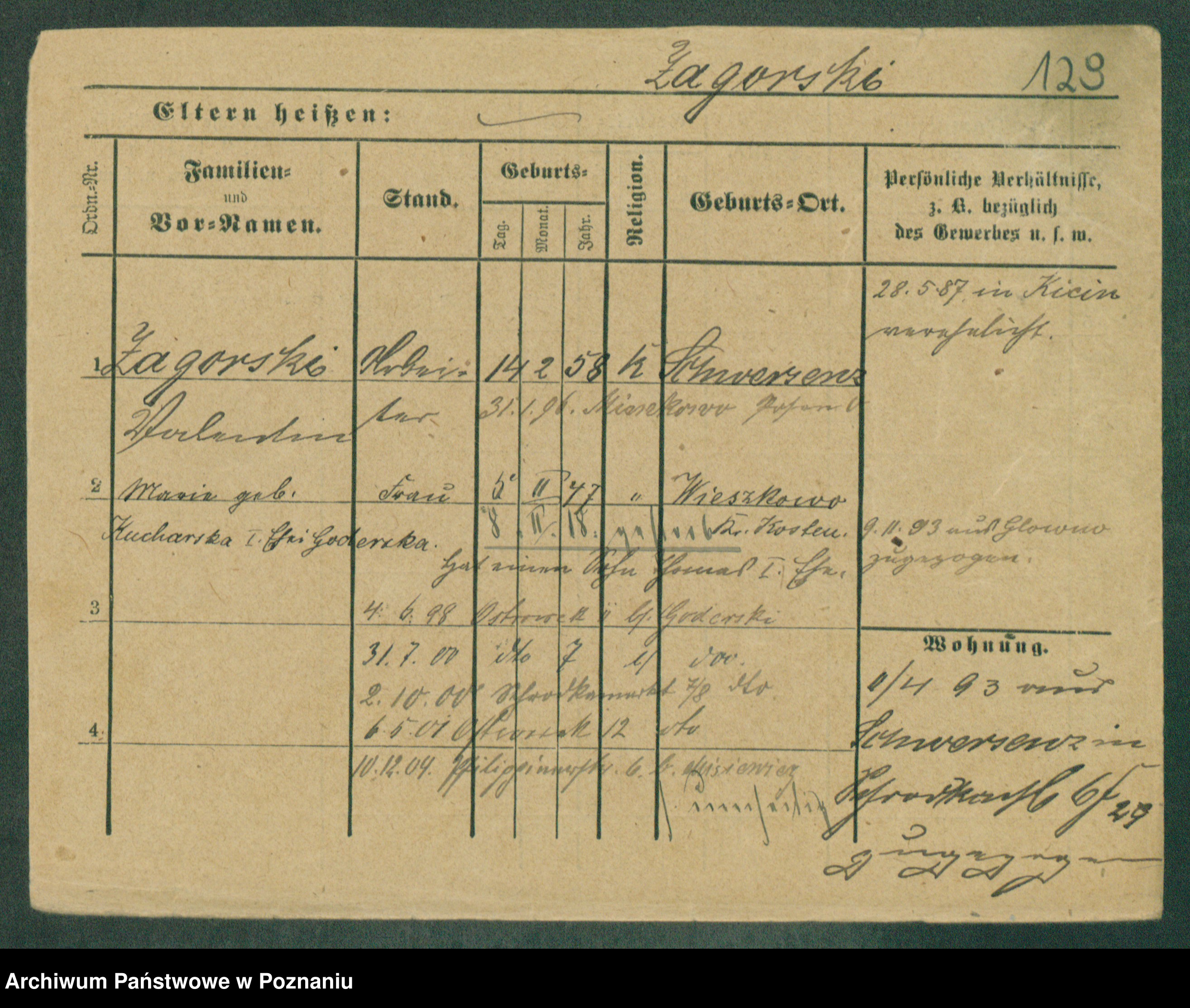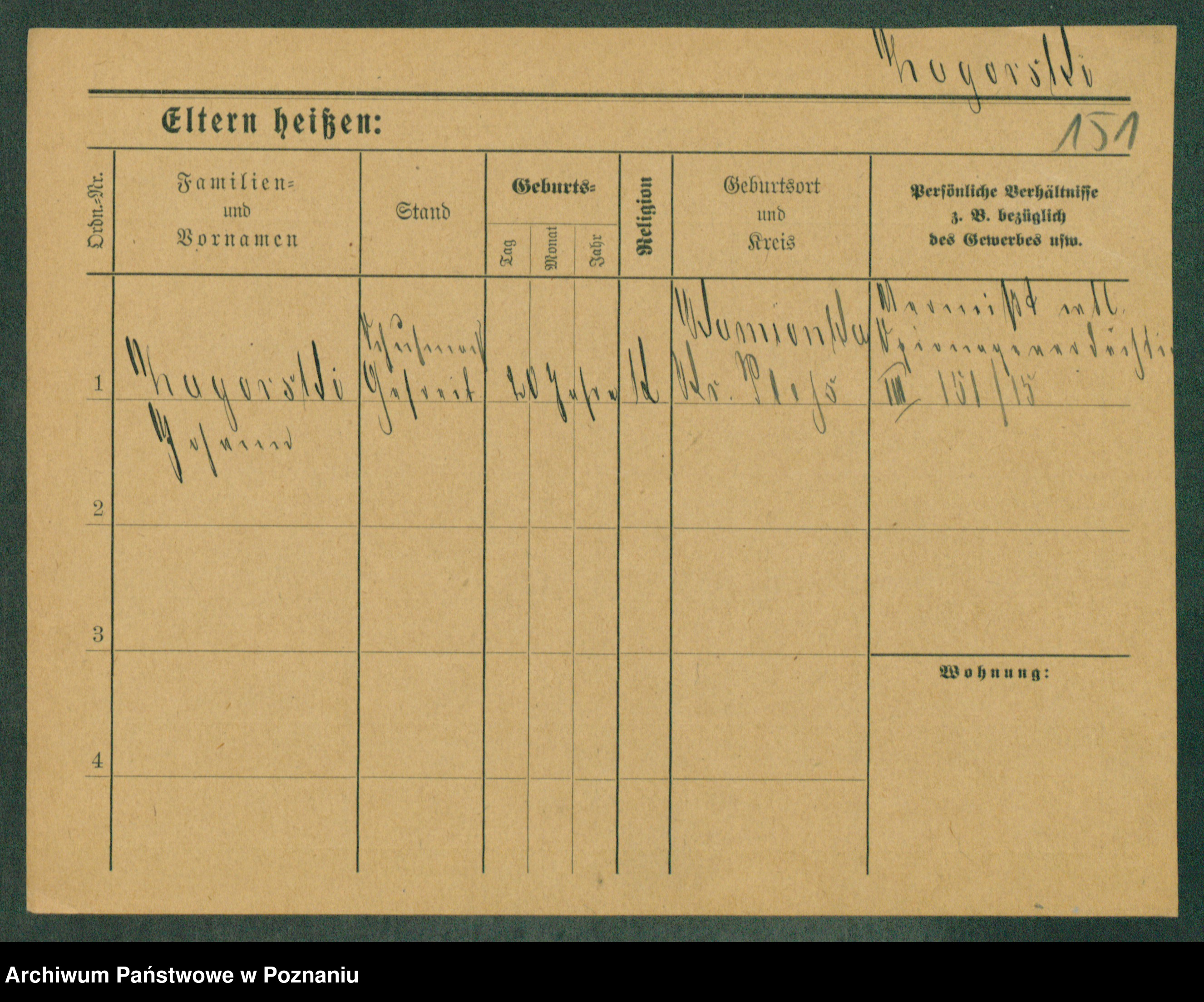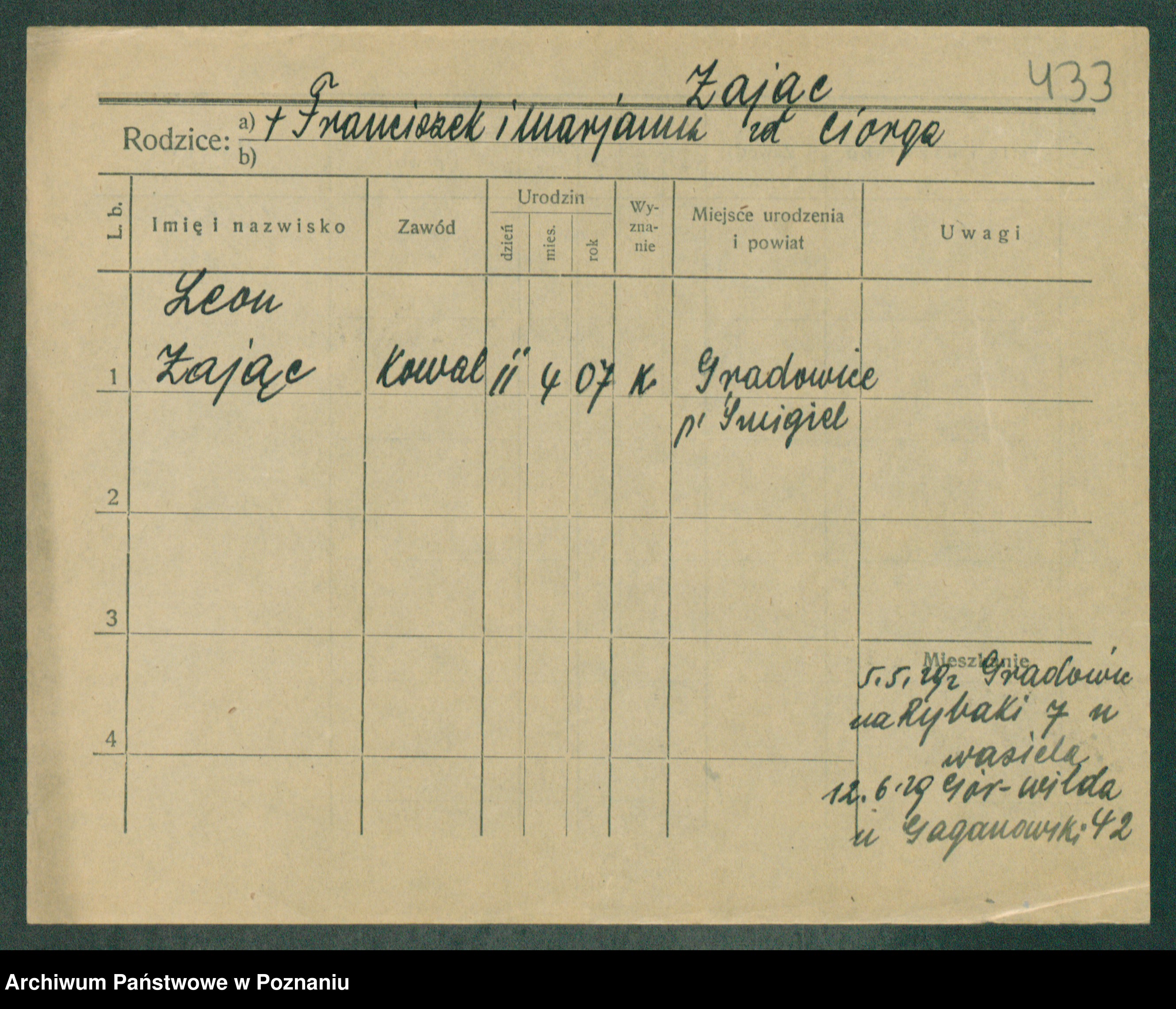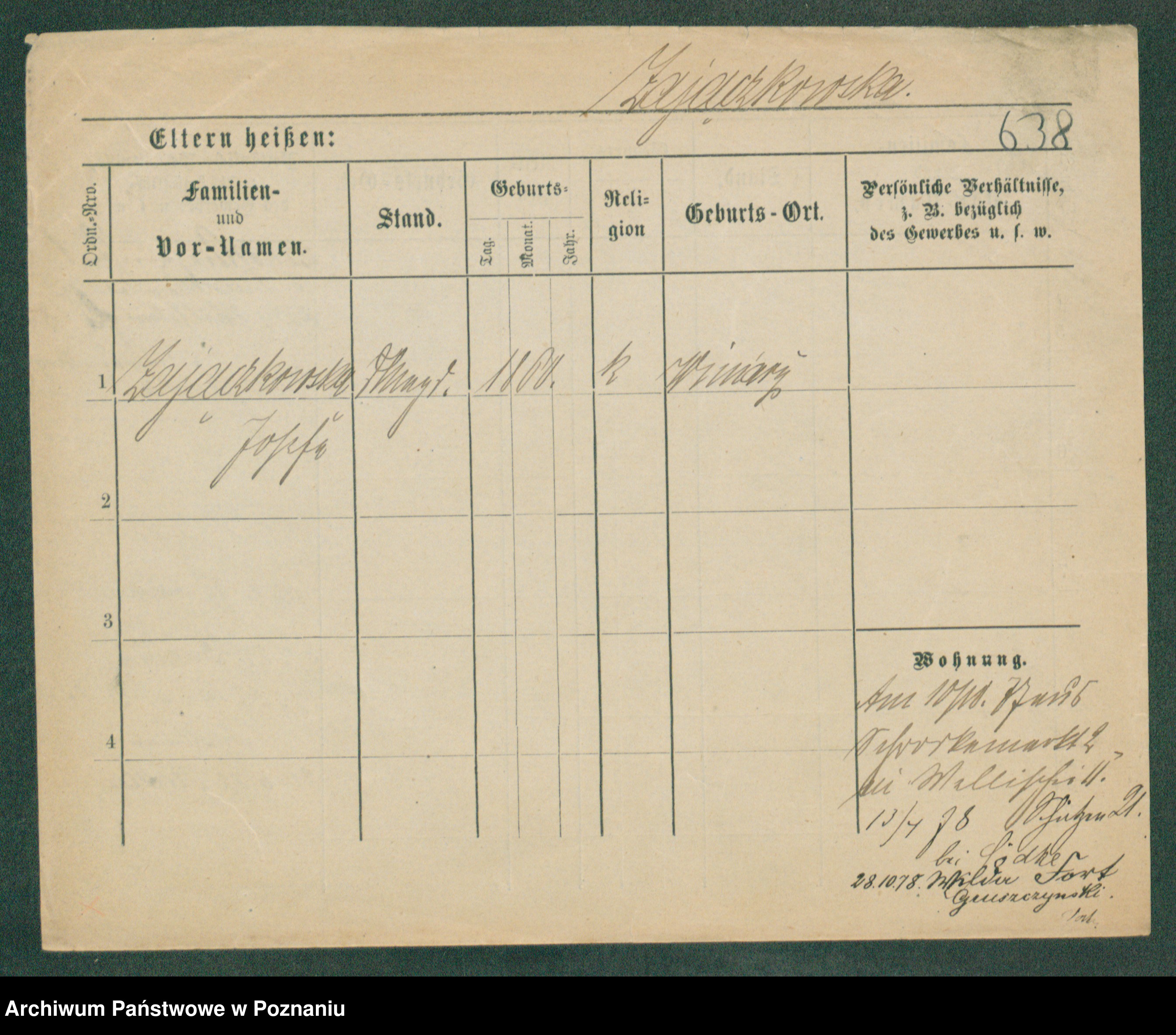 Podgląd karty osobowej dostępny jest po kliknięciu na nazwisko lub ikonkę karty. Można dokonywać powiększenia (ikony na górze) lub przechodzić między kolejnymi skanami (strzałki po bokach).