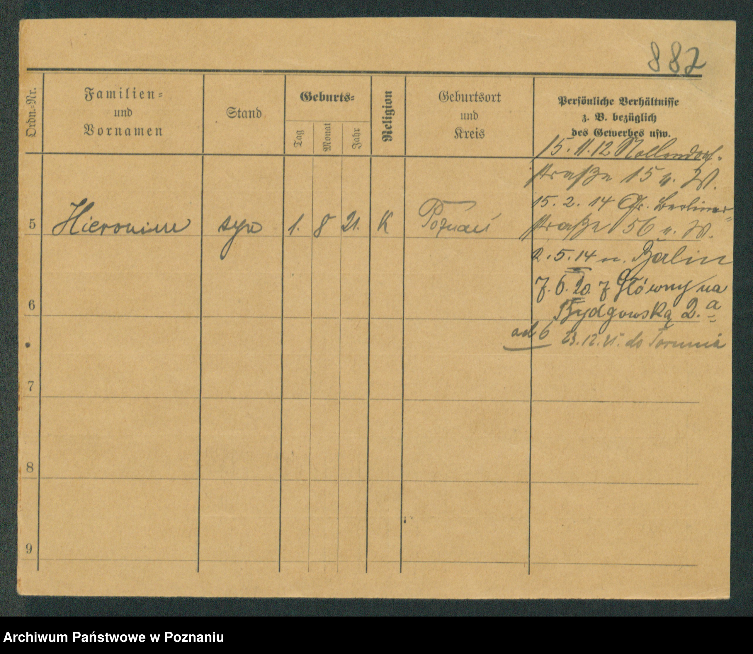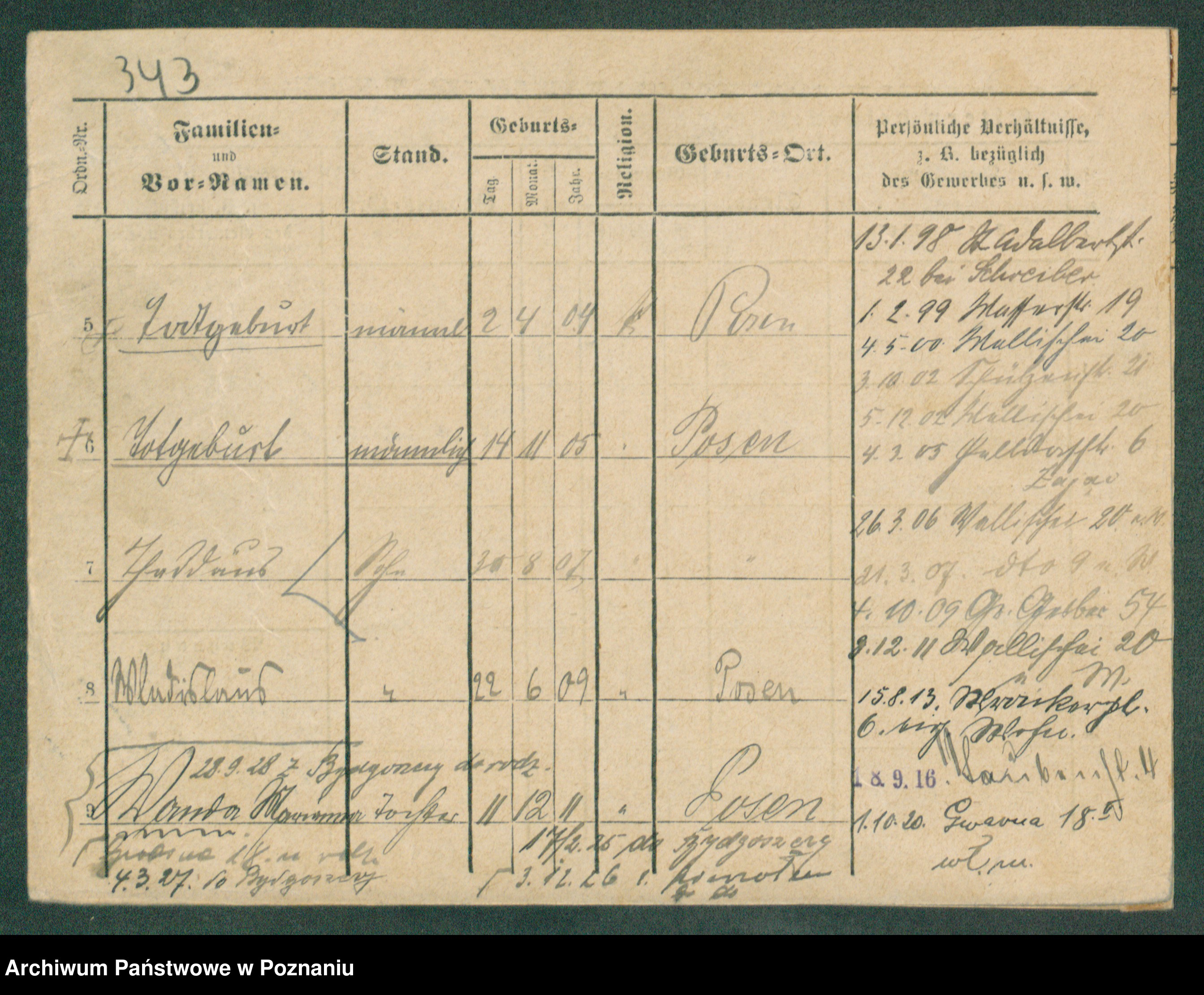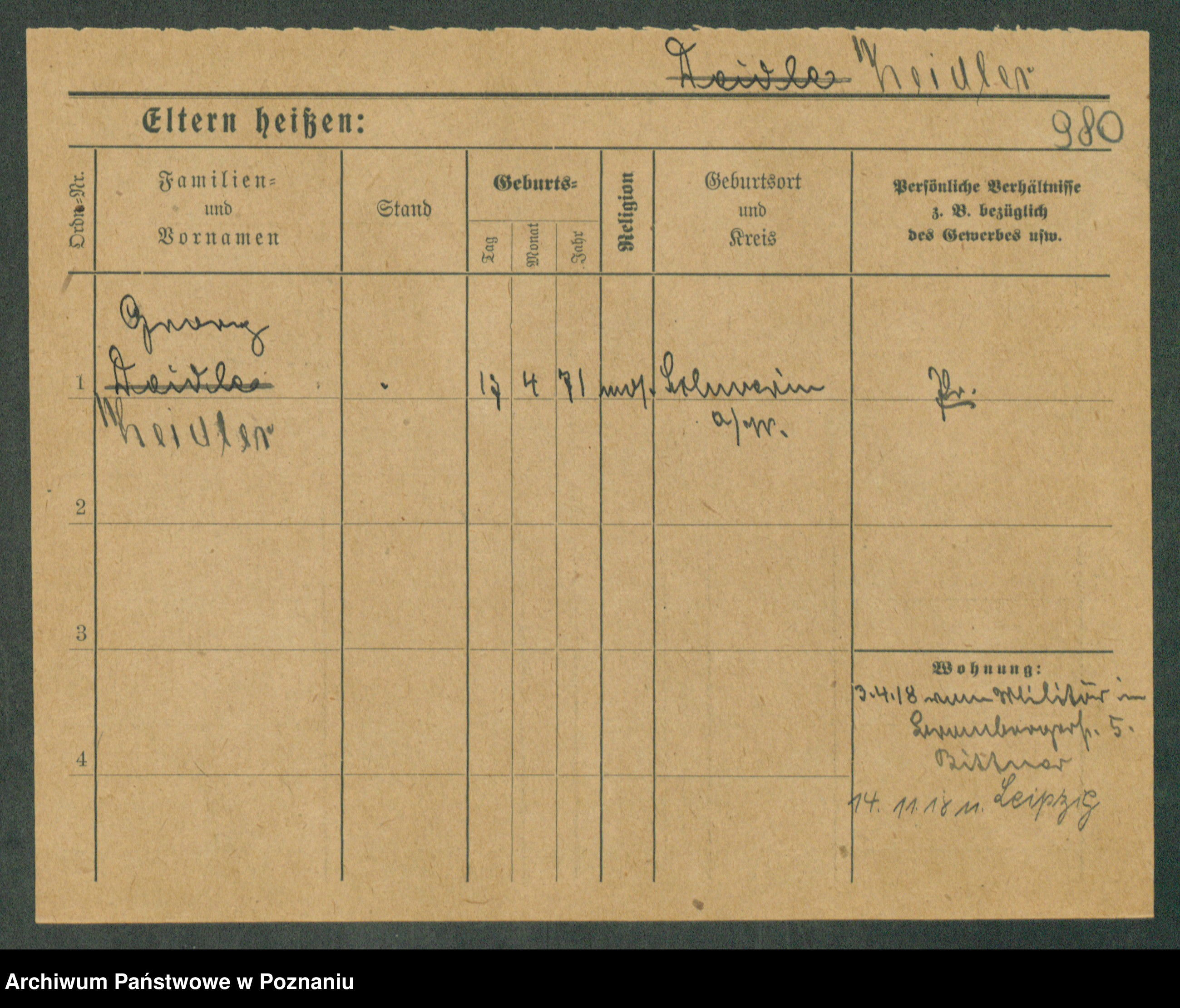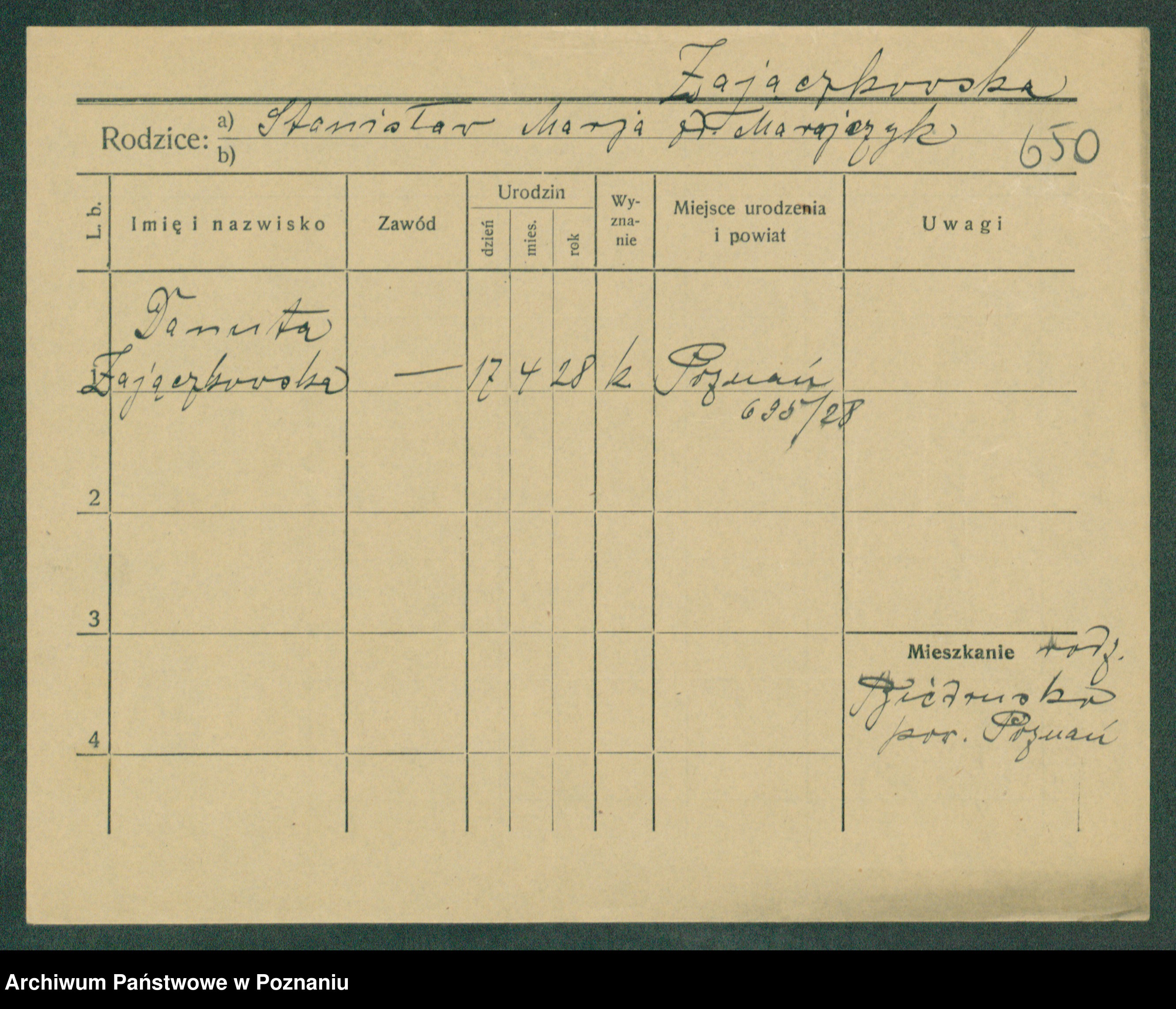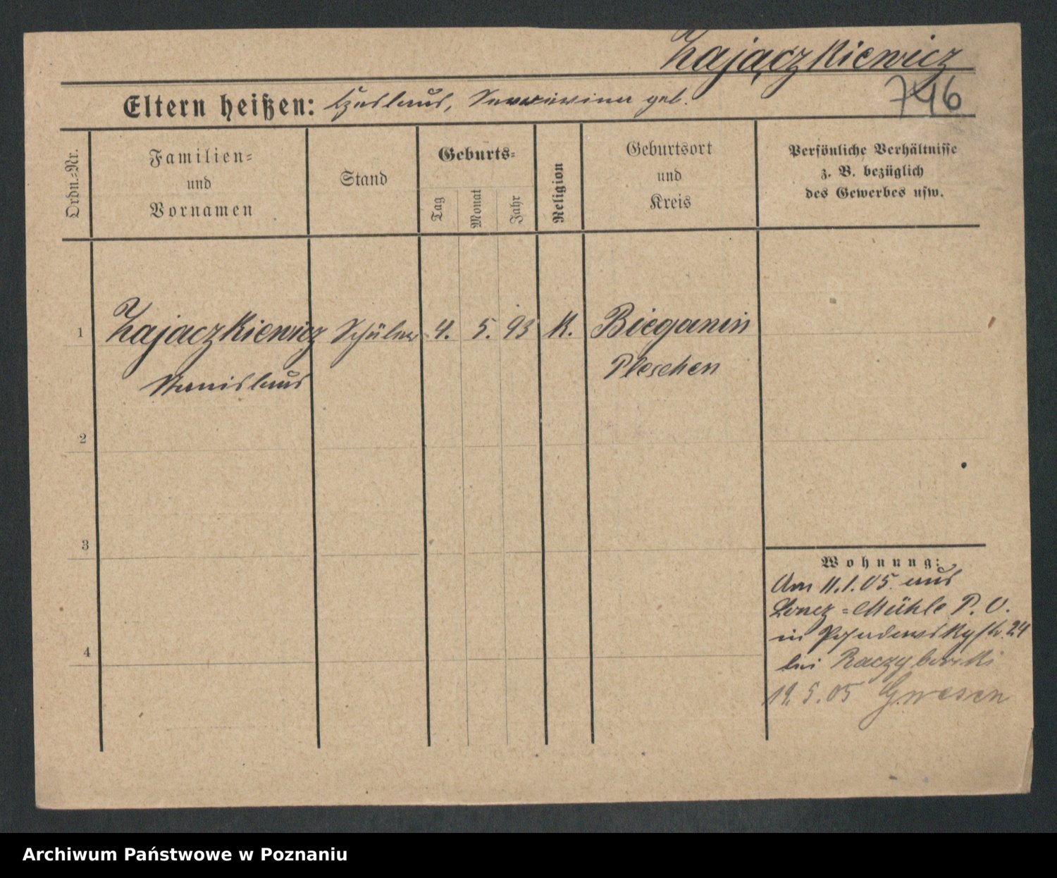 Podgląd karty osobowej dostępny jest po kliknięciu na nazwisko lub ikonkę karty. Można dokonywać powiększenia (ikony na górze) lub przechodzić między kolejnymi skanami (strzałki po bokach).