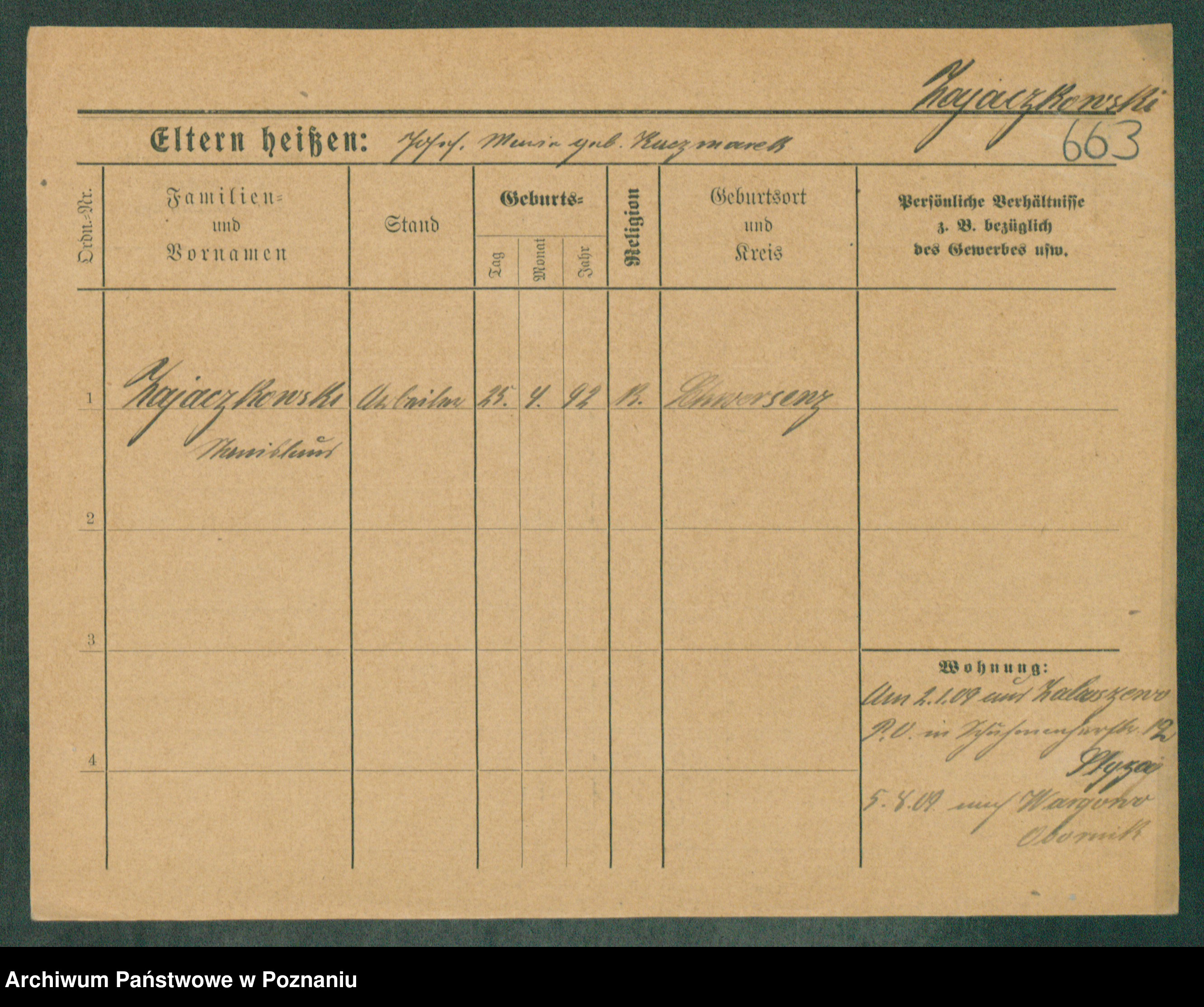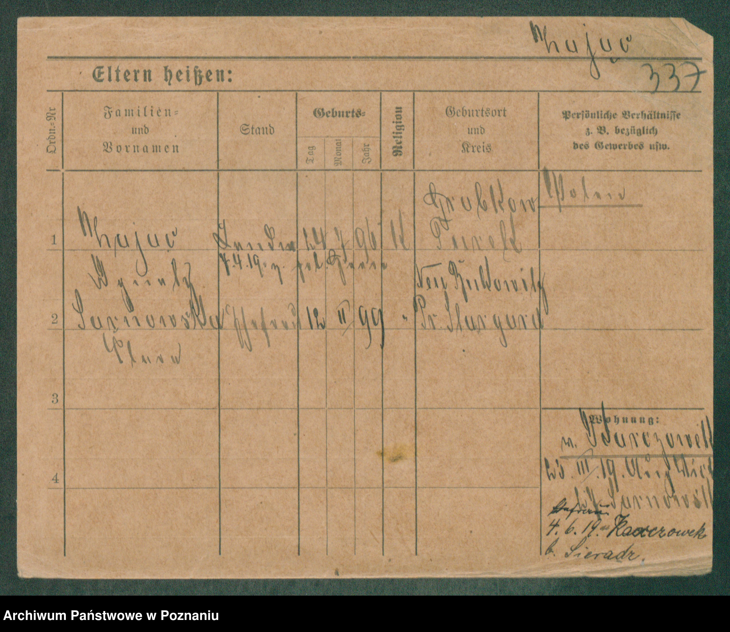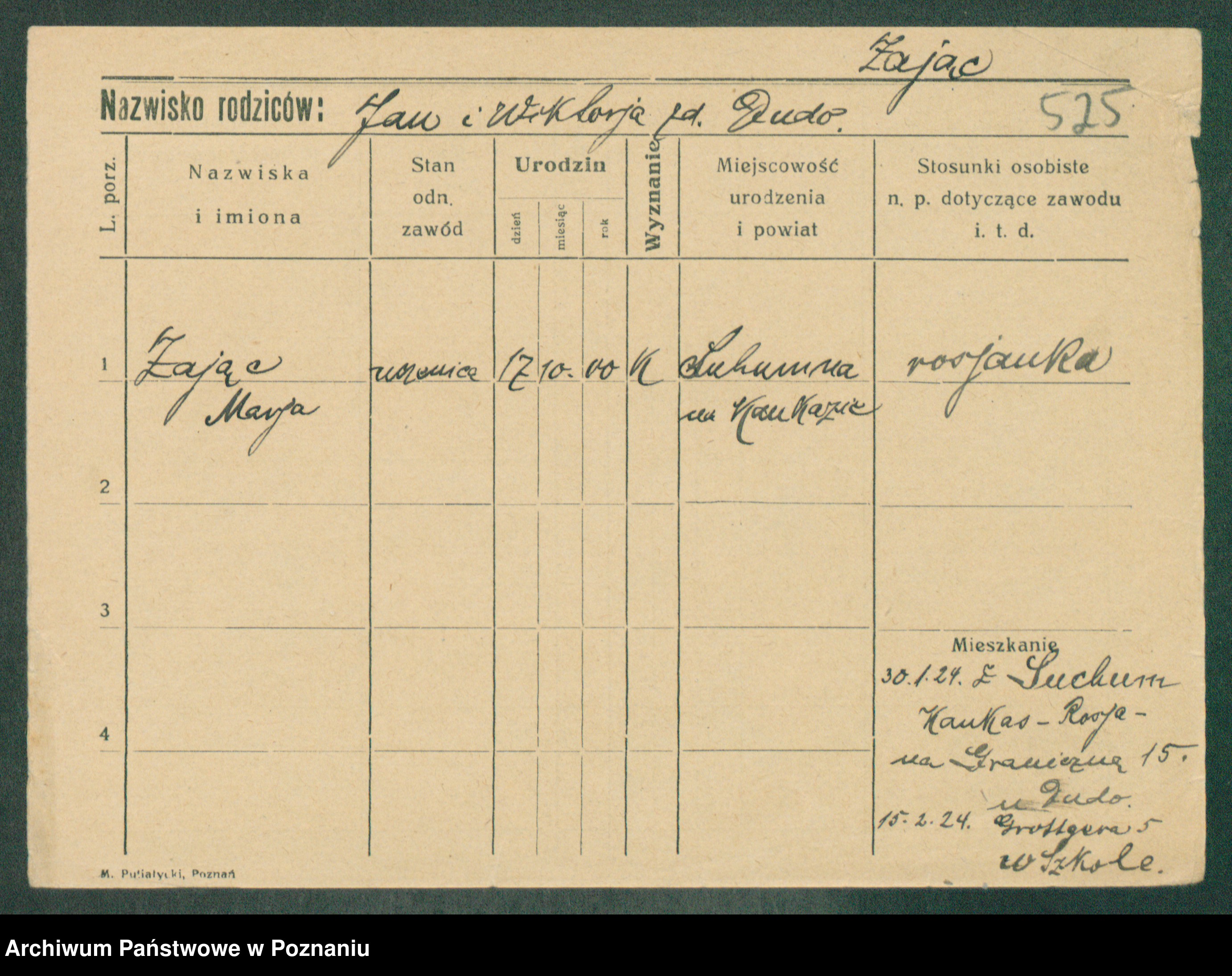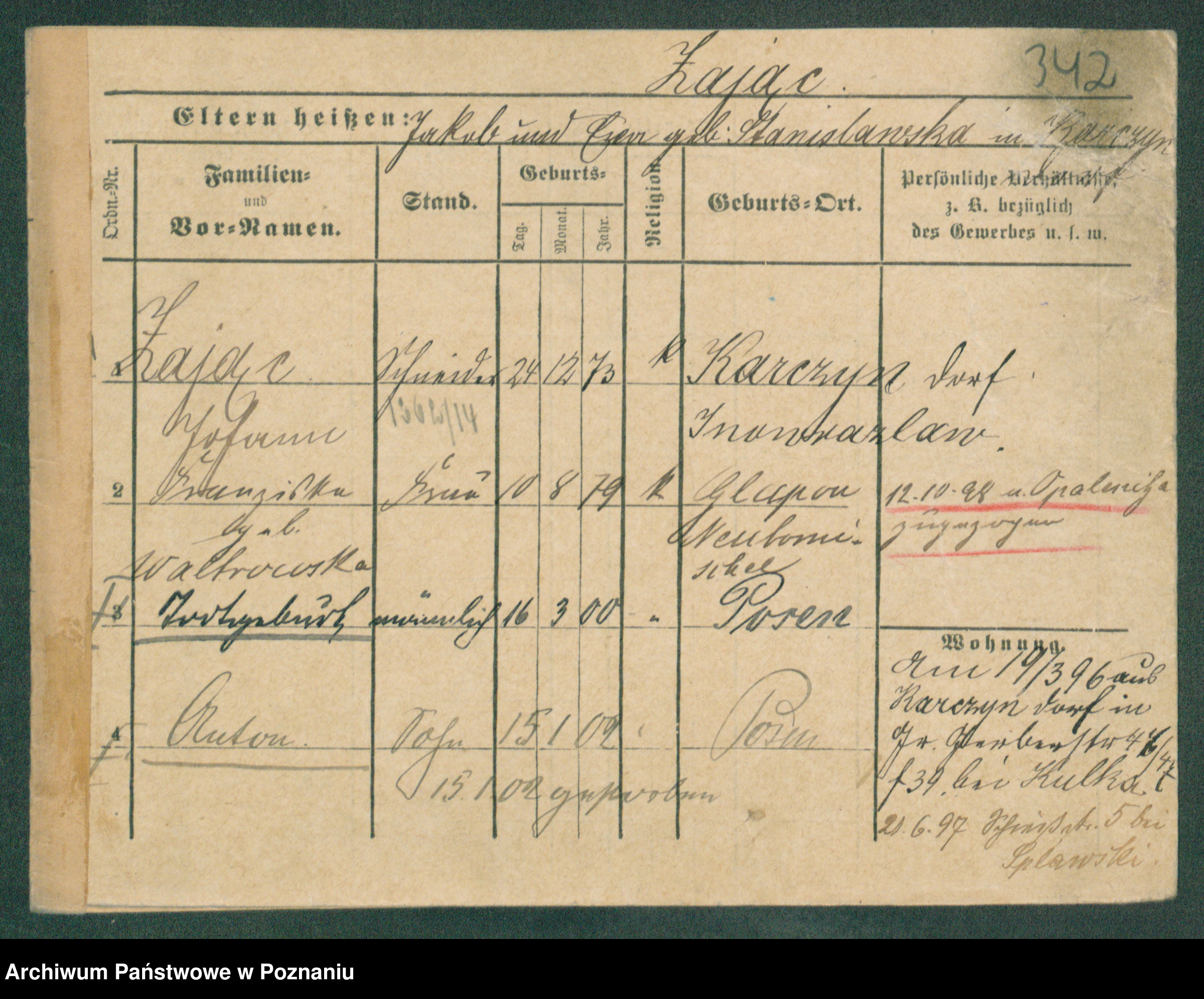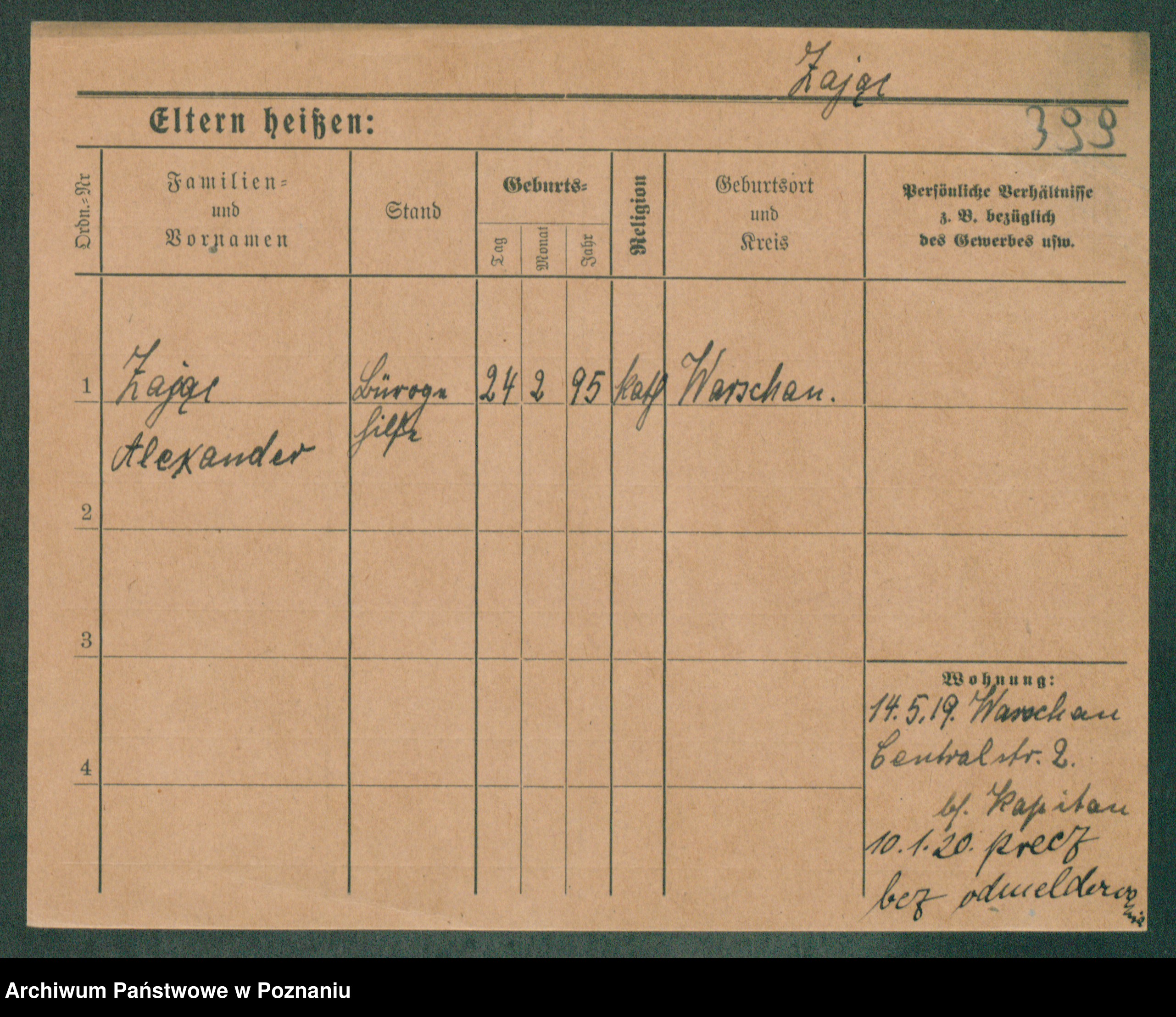 Podgląd karty osobowej dostępny jest po kliknięciu na nazwisko lub ikonkę karty. Można dokonywać powiększenia (ikony na górze) lub przechodzić między kolejnymi skanami (strzałki po bokach).