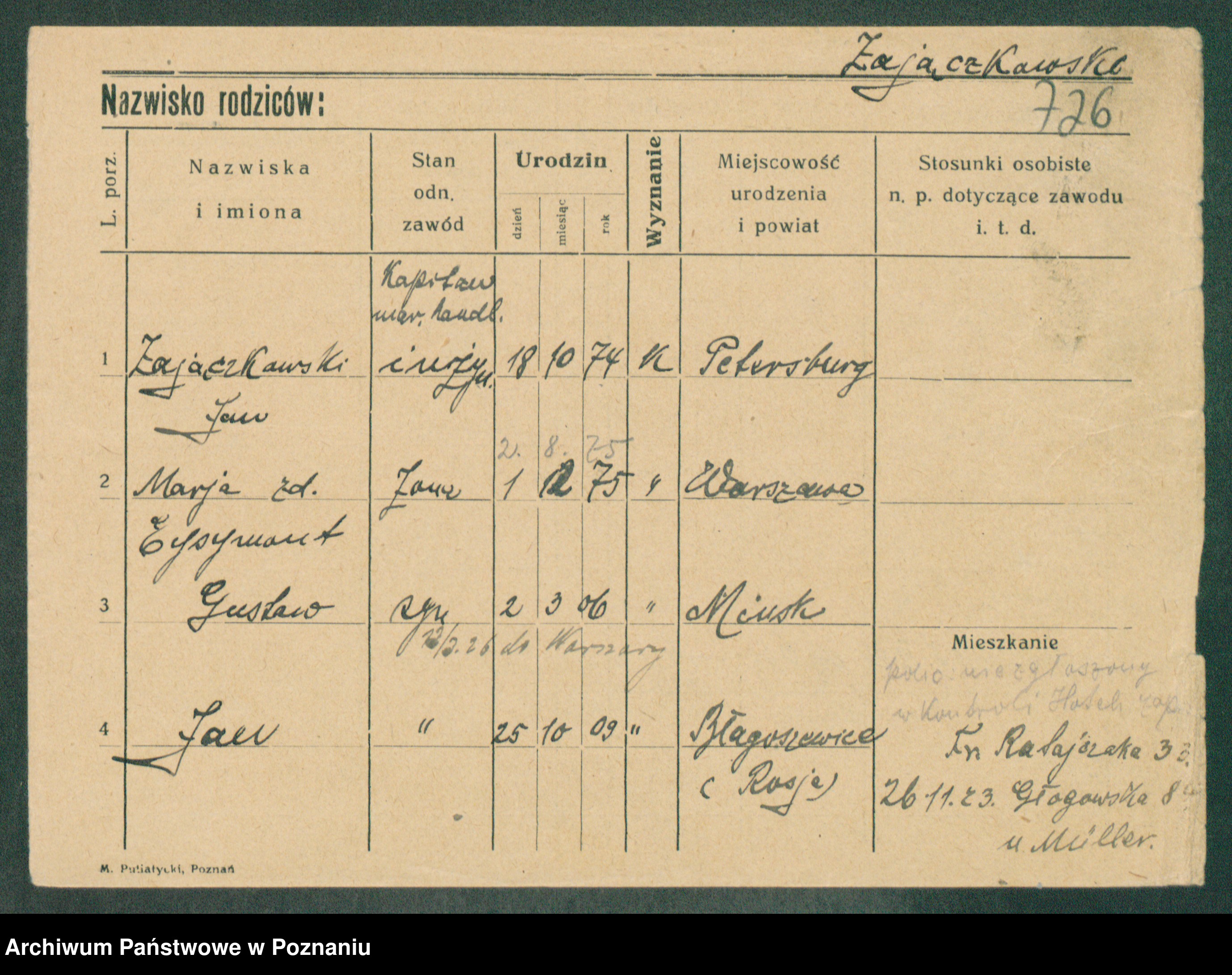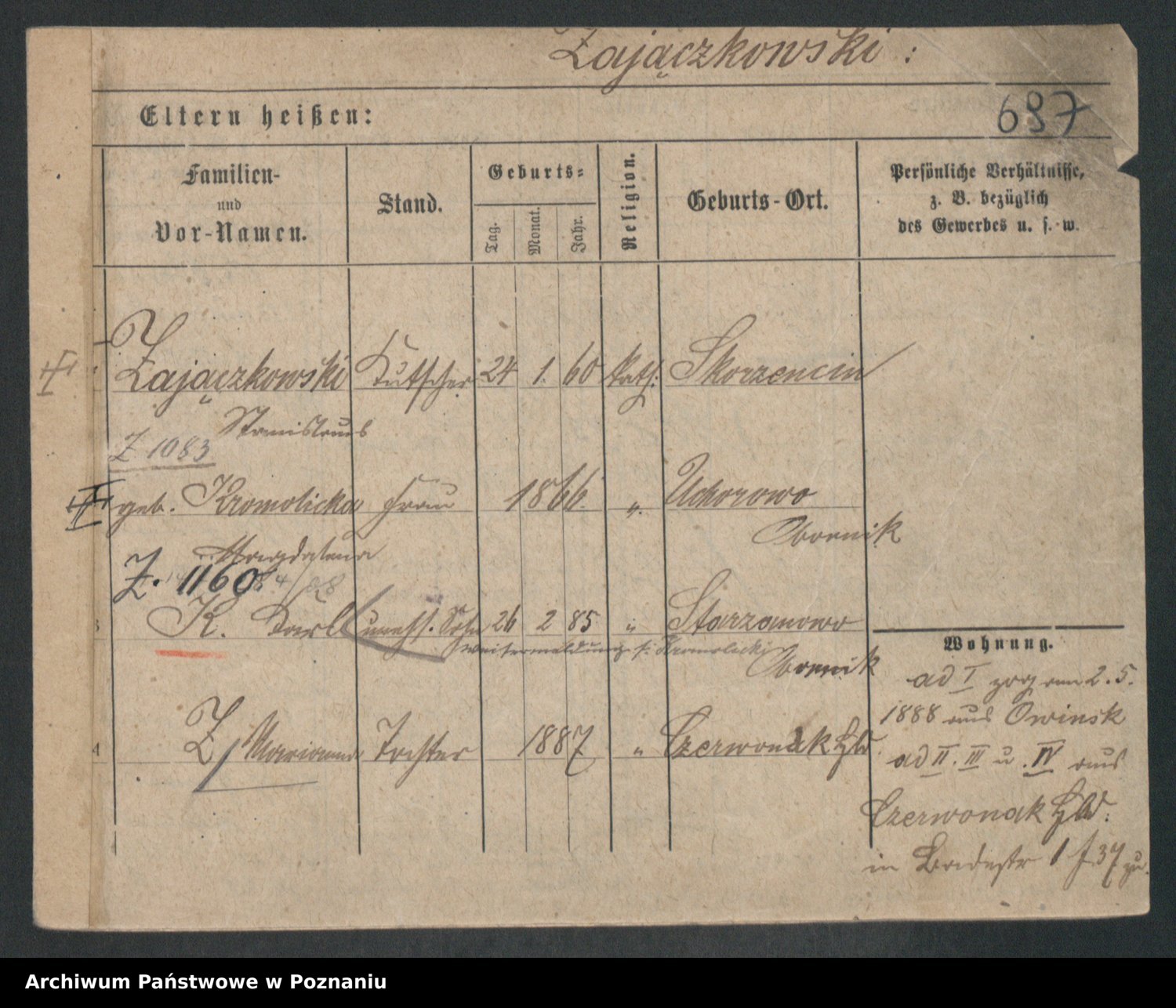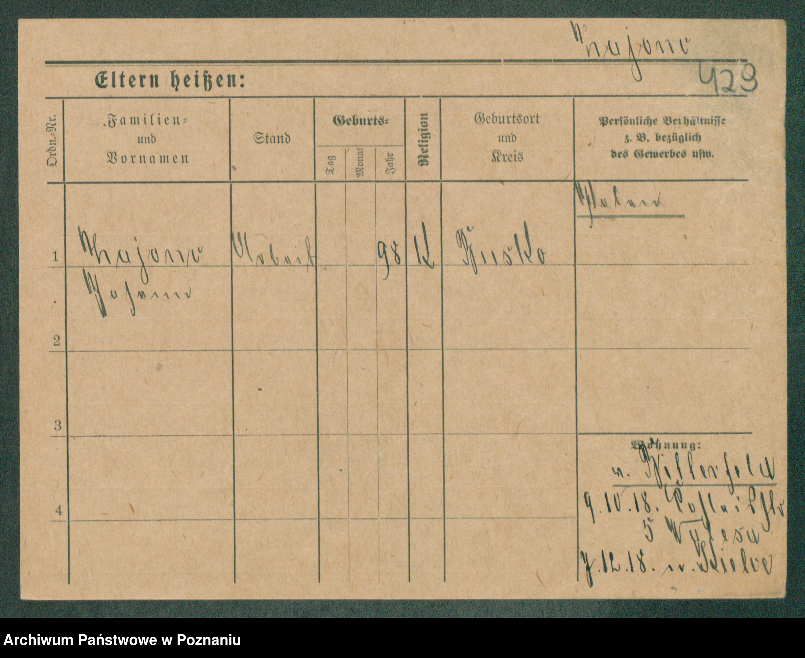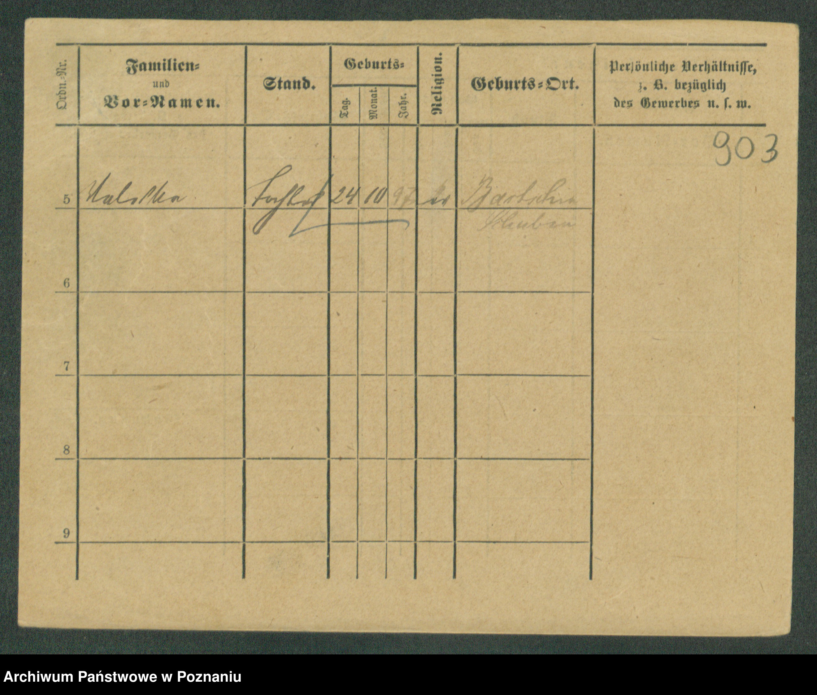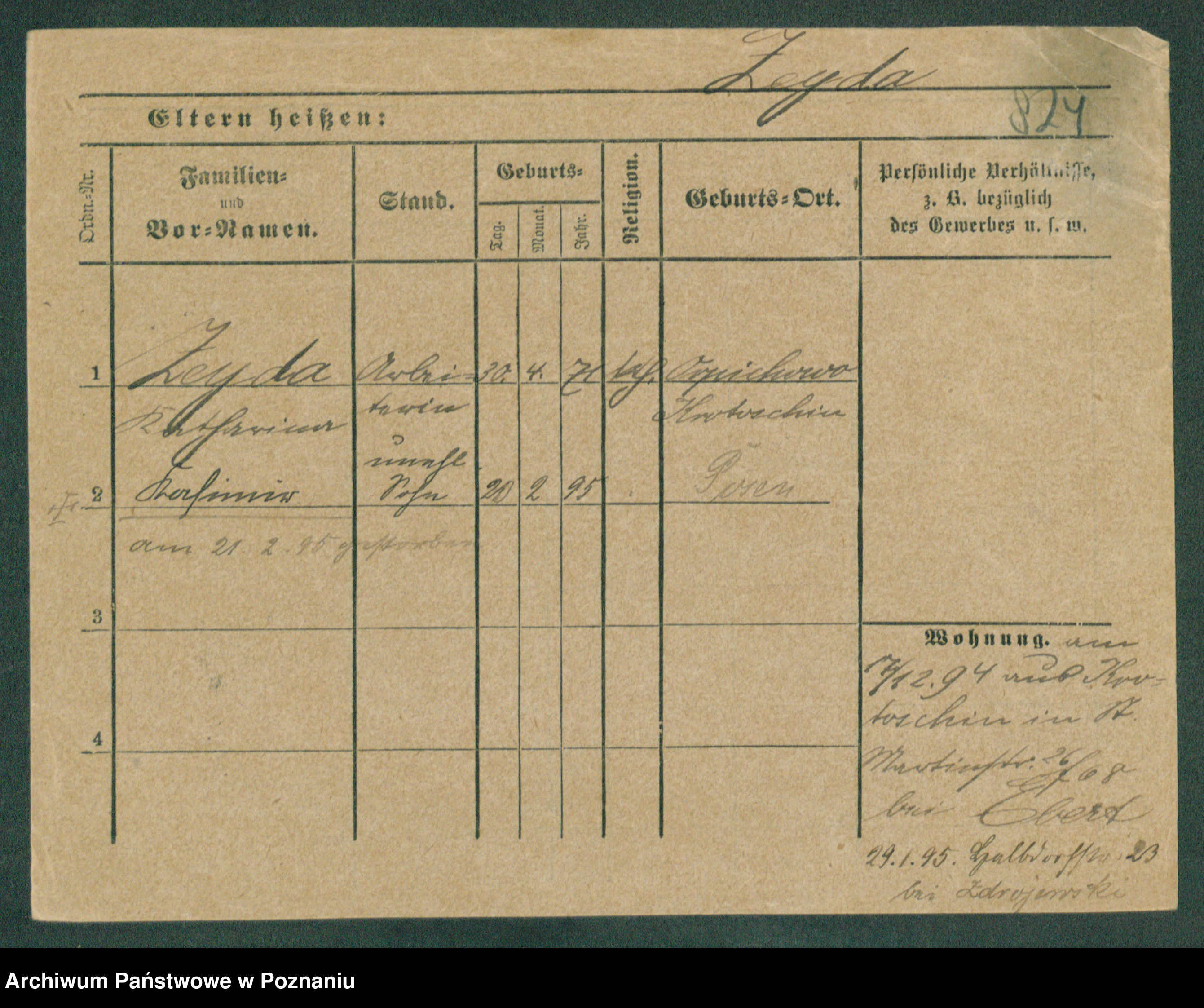 Podgląd karty osobowej dostępny jest po kliknięciu na nazwisko lub ikonkę karty. Można dokonywać powiększenia (ikony na górze) lub przechodzić między kolejnymi skanami (strzałki po bokach).