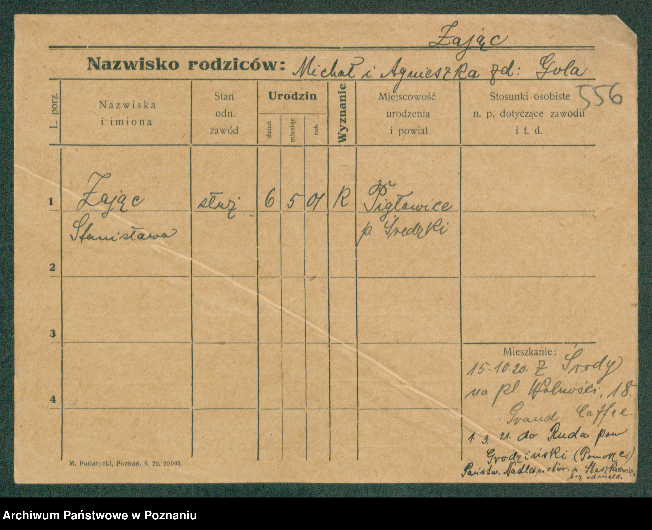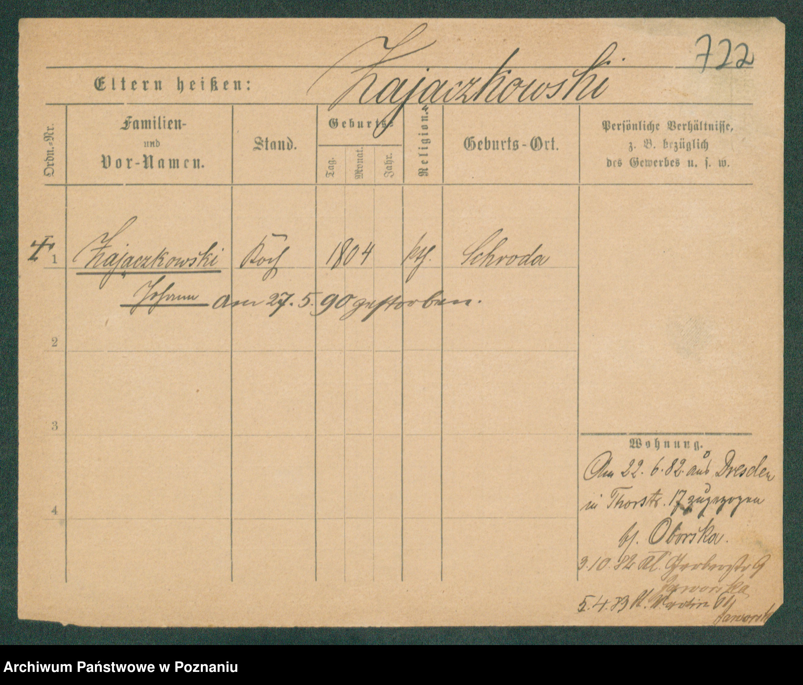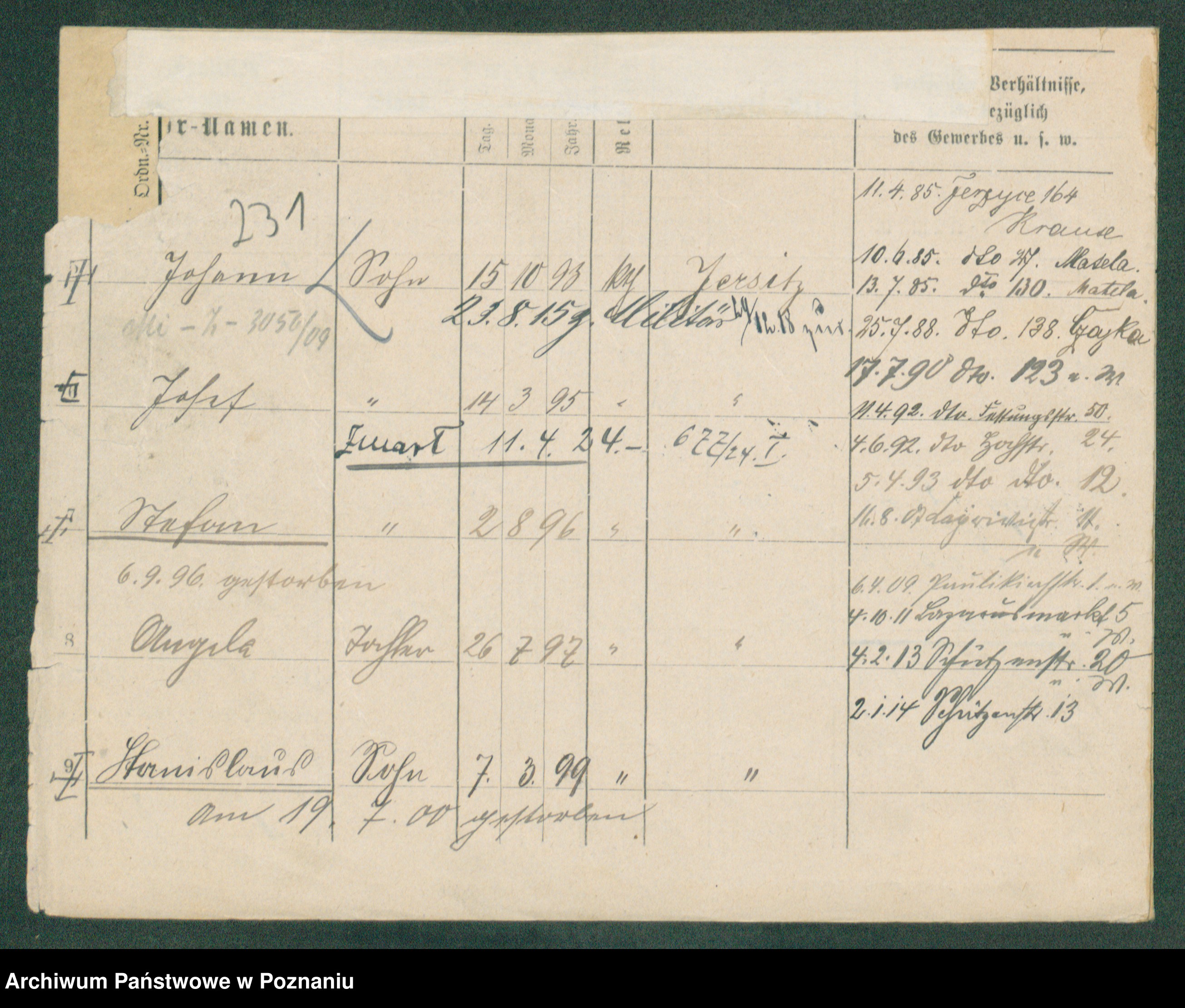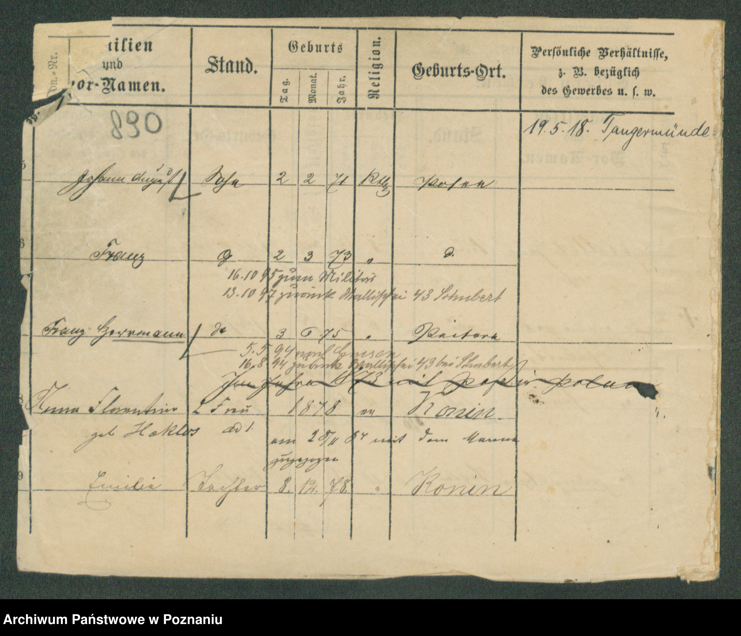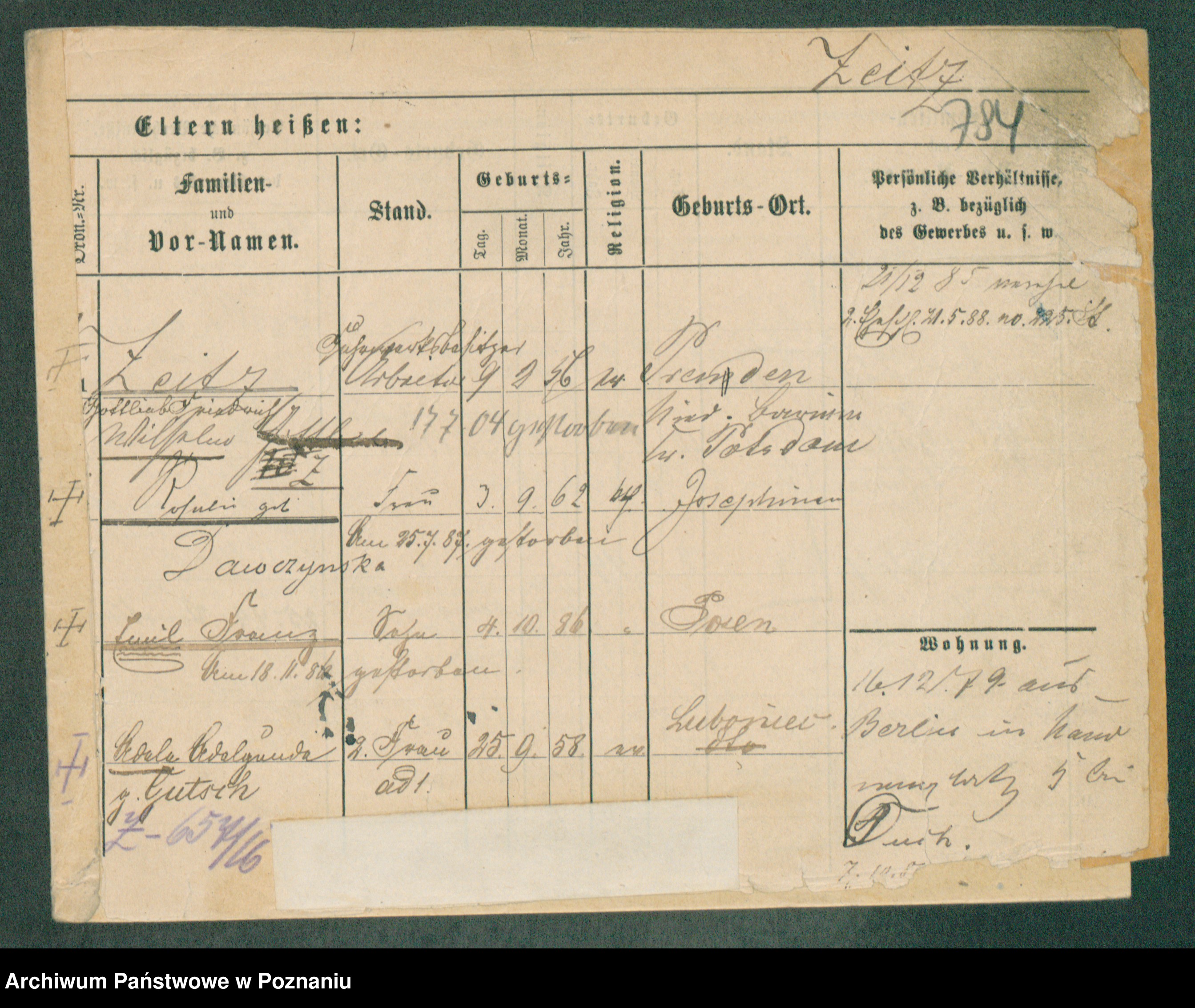 Podgląd karty osobowej dostępny jest po kliknięciu na nazwisko lub ikonkę karty. Można dokonywać powiększenia (ikony na górze) lub przechodzić między kolejnymi skanami (strzałki po bokach).