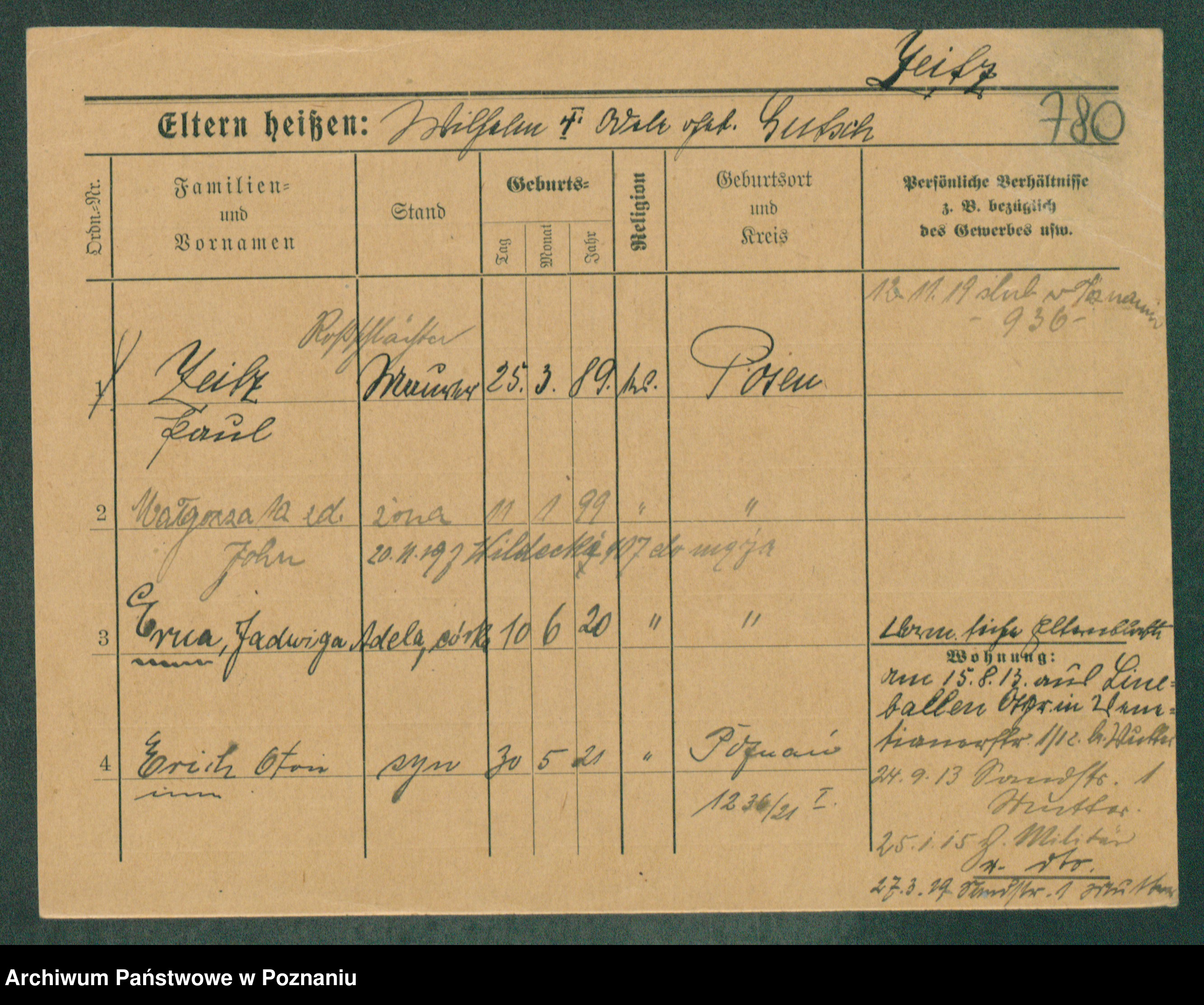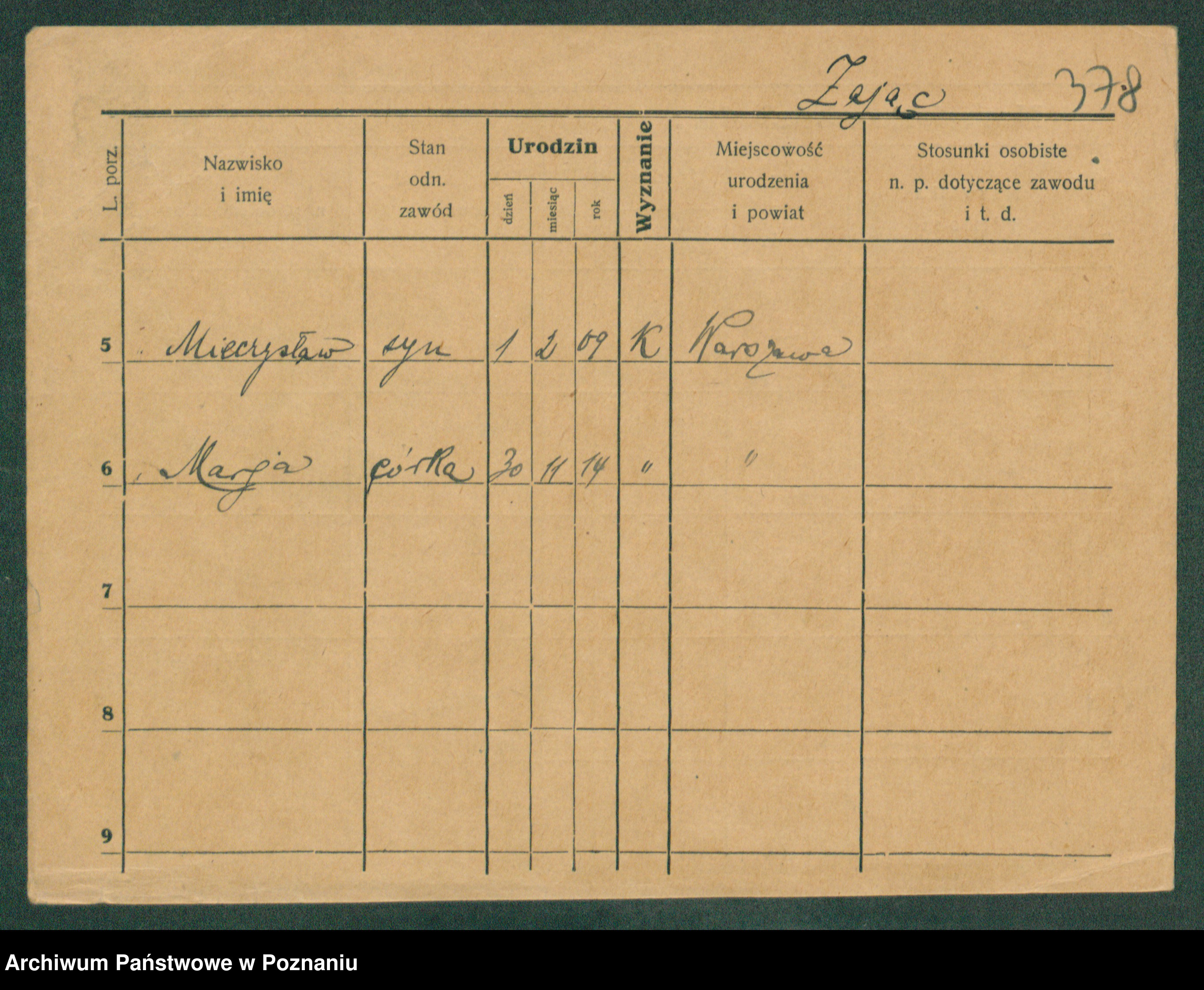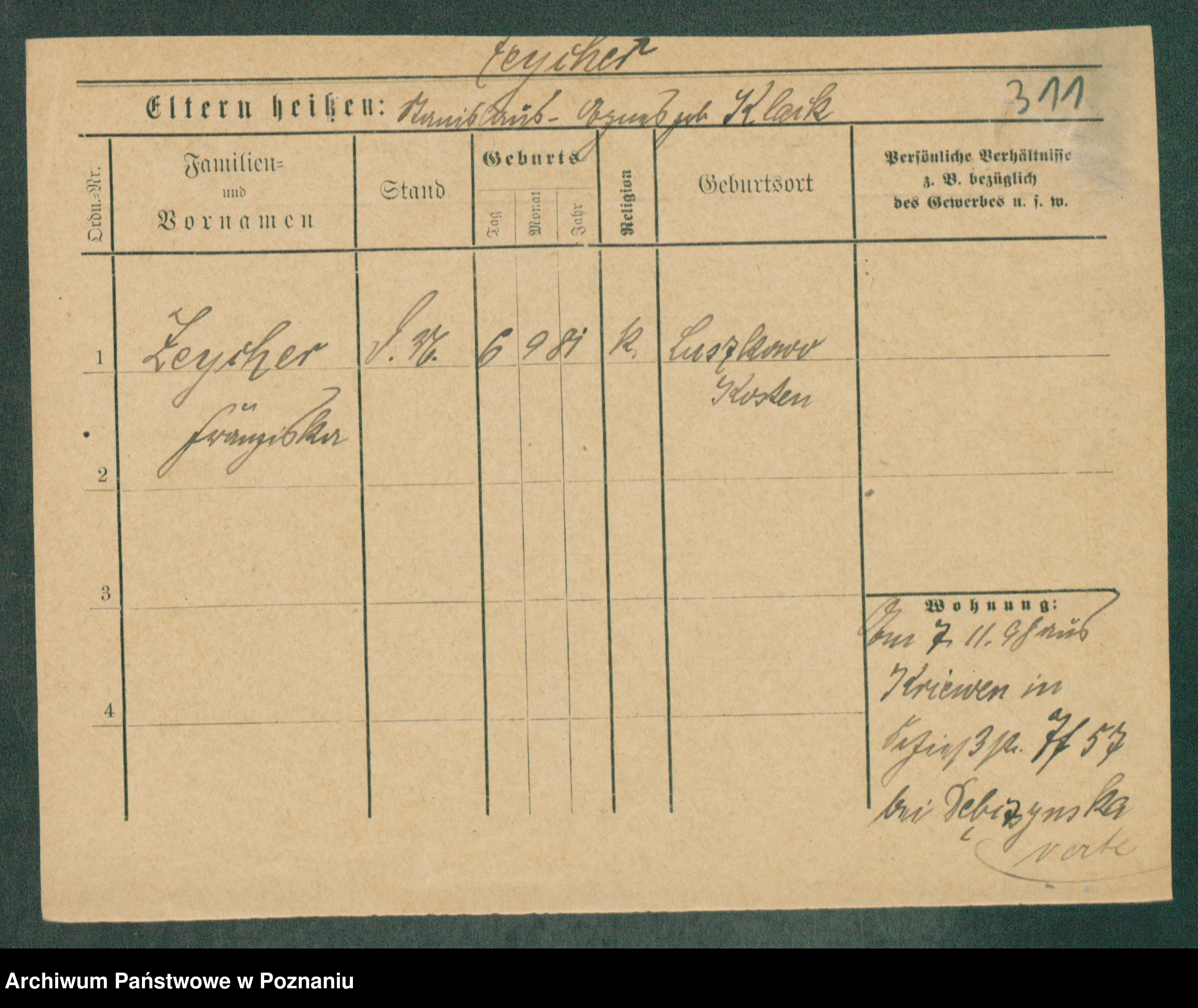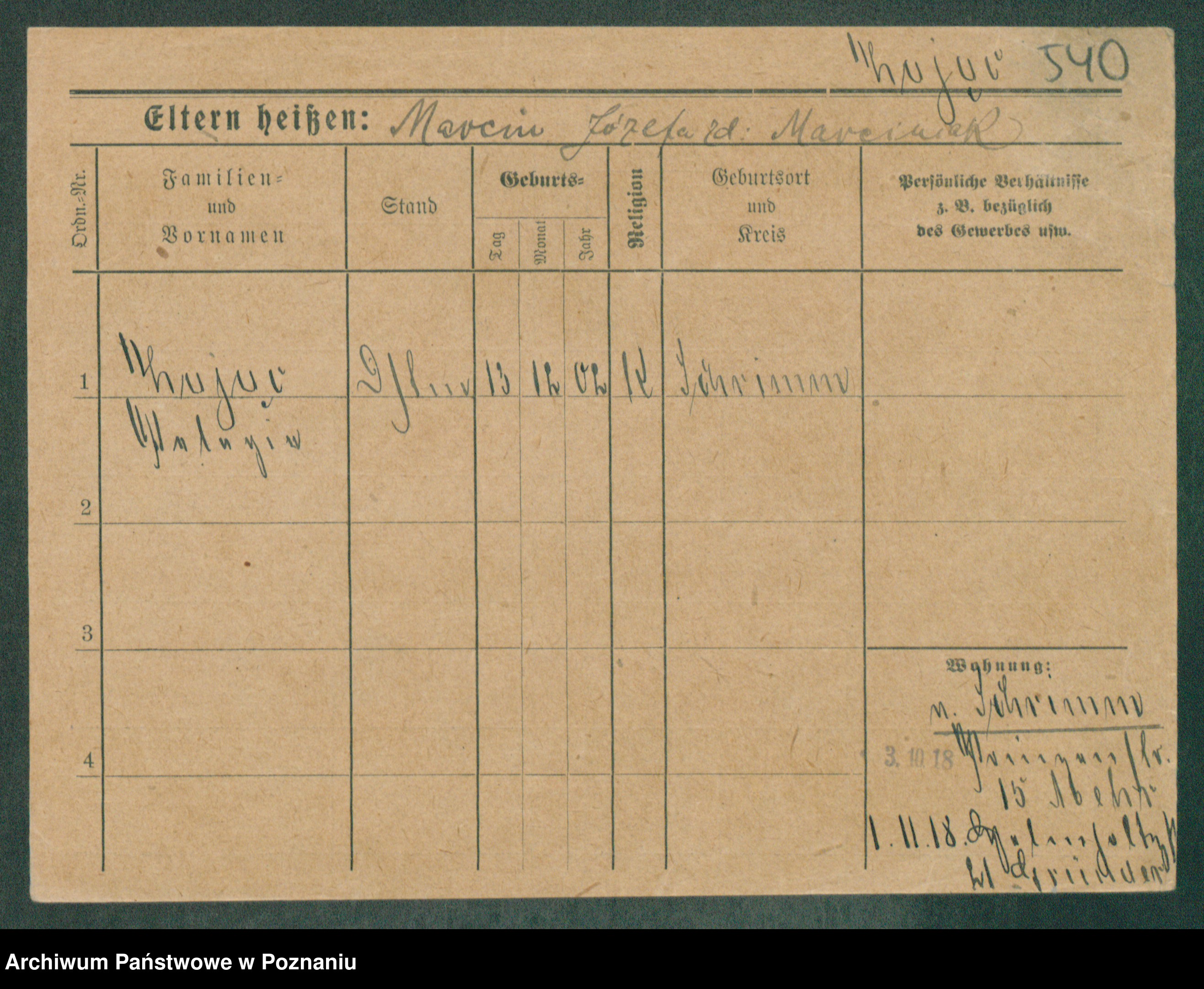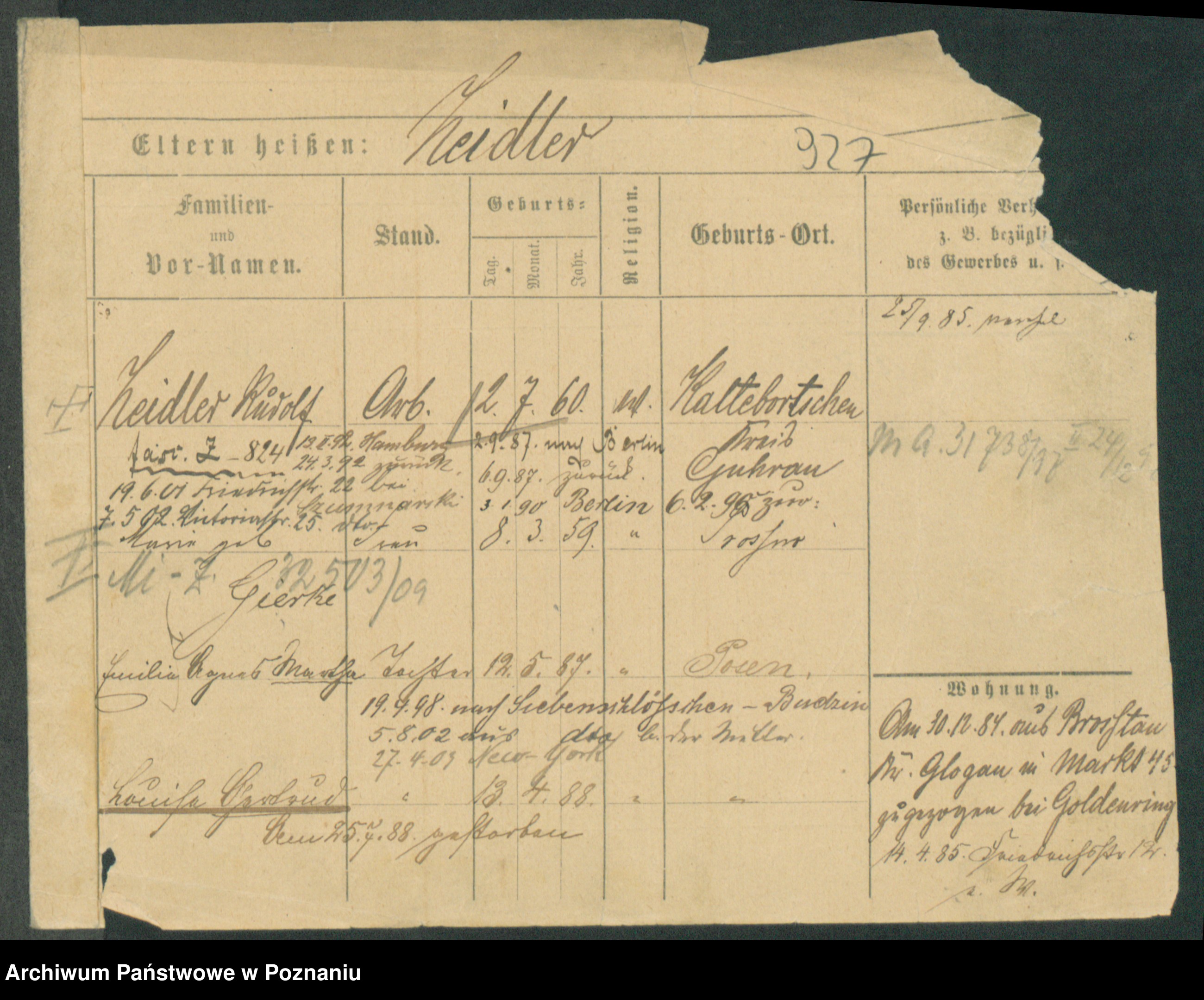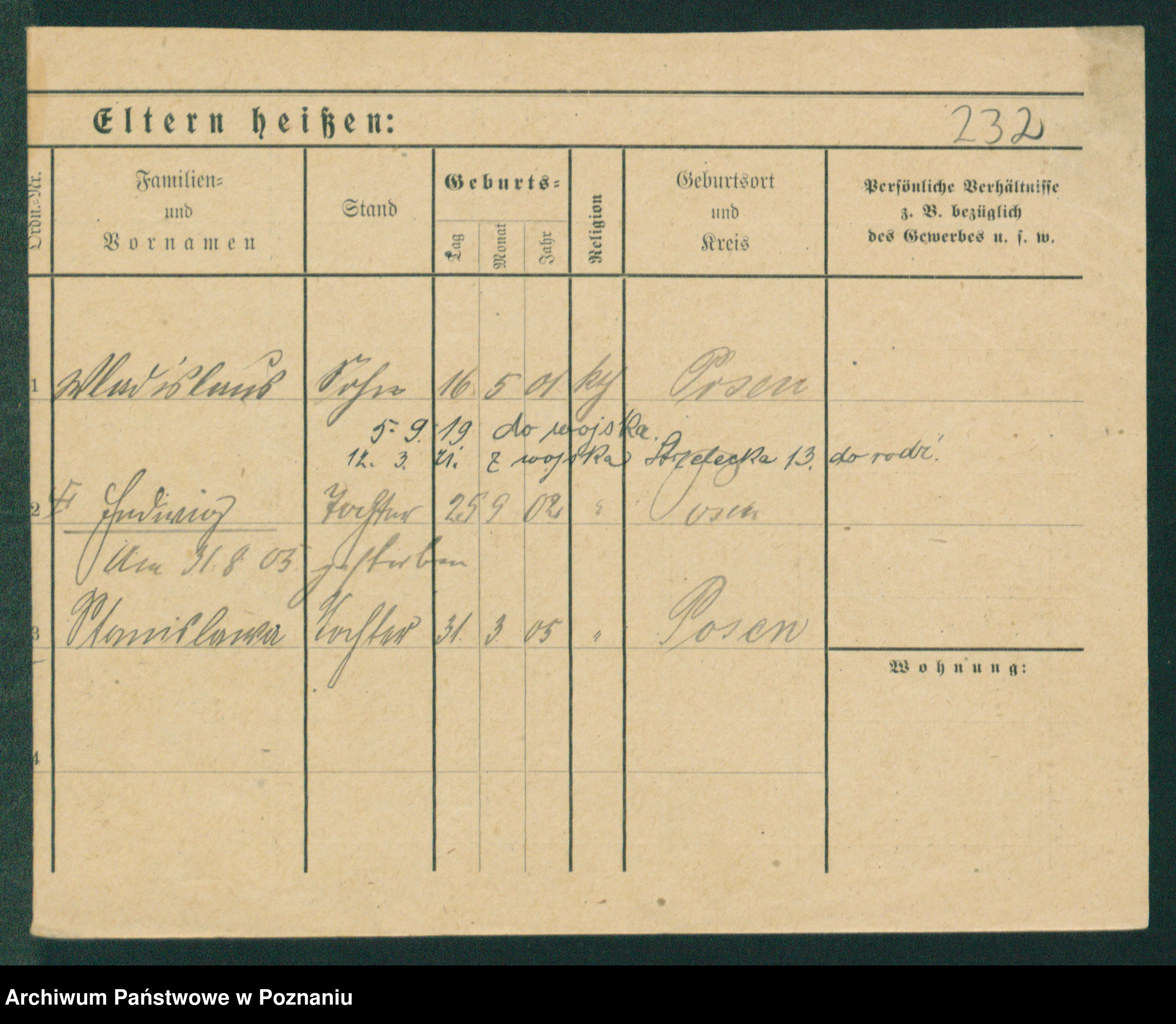 Podgląd karty osobowej dostępny jest po kliknięciu na nazwisko lub ikonkę karty. Można dokonywać powiększenia (ikony na górze) lub przechodzić między kolejnymi skanami (strzałki po bokach).