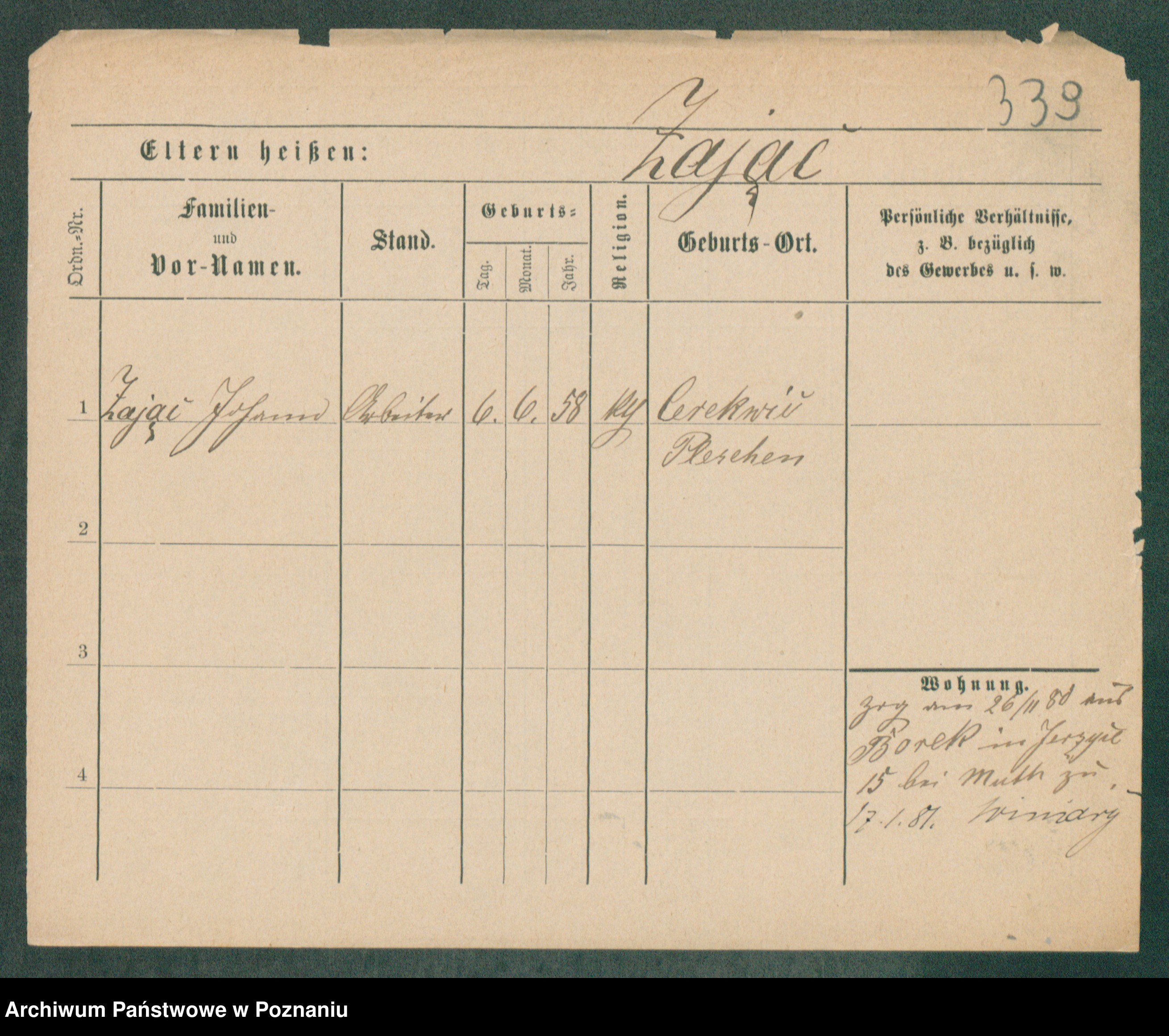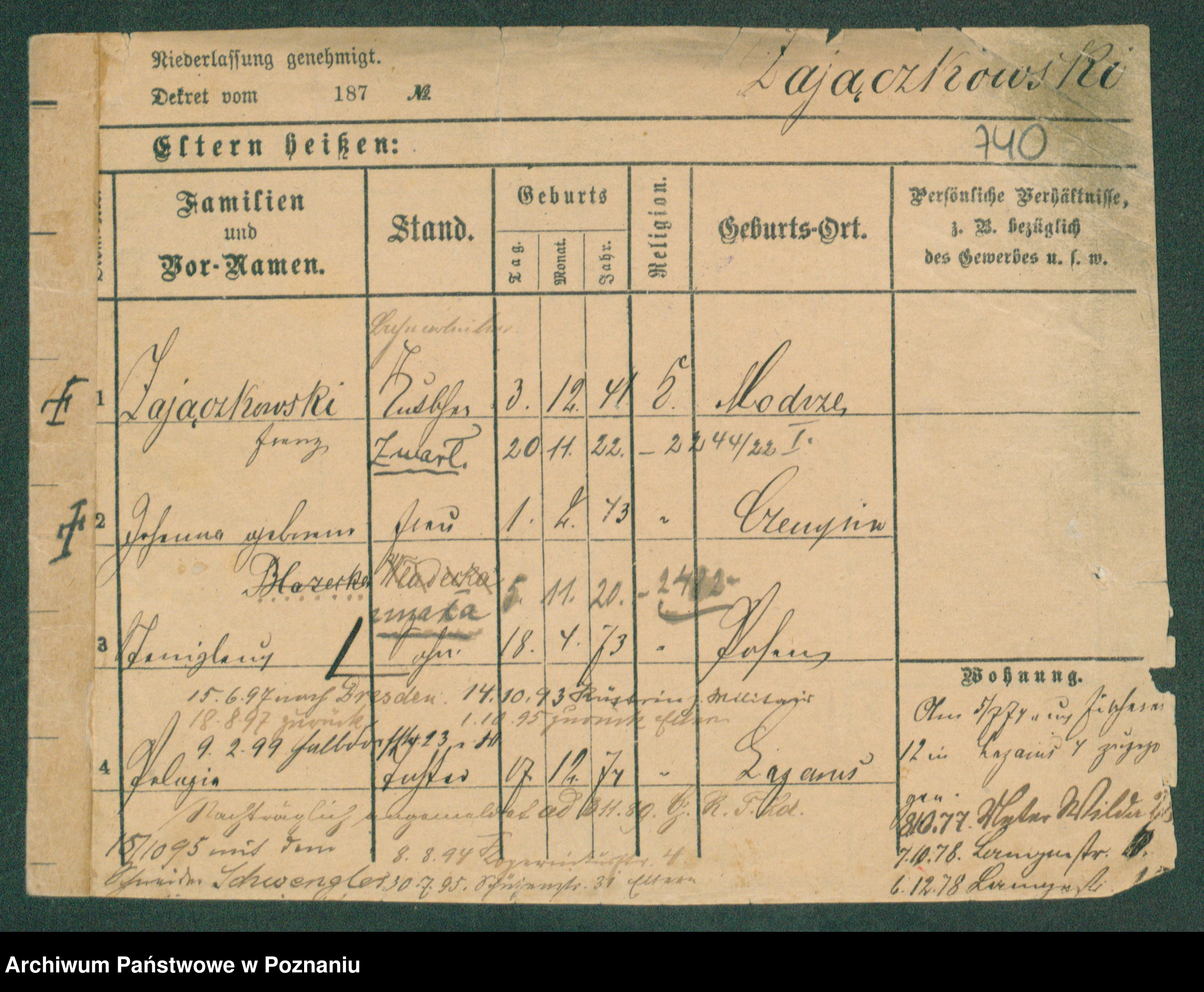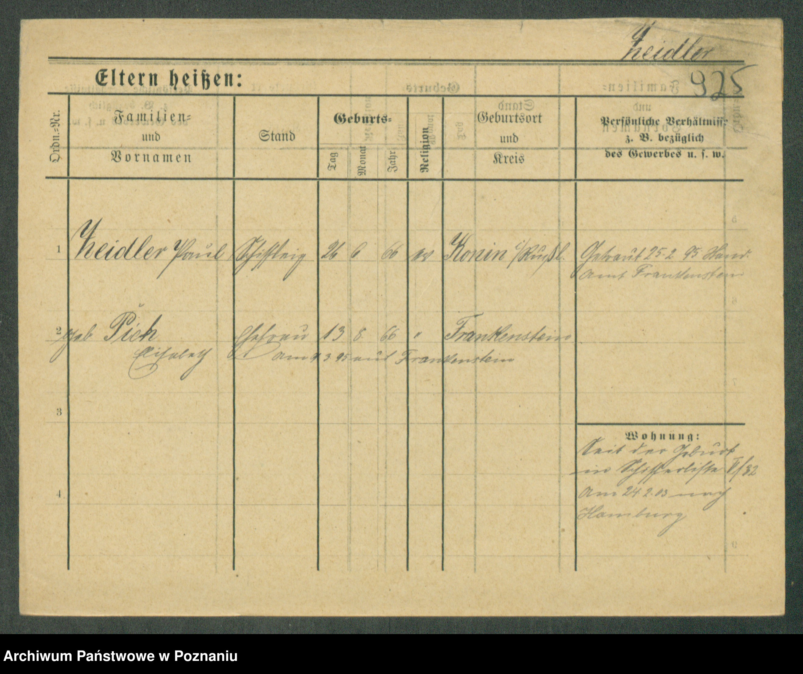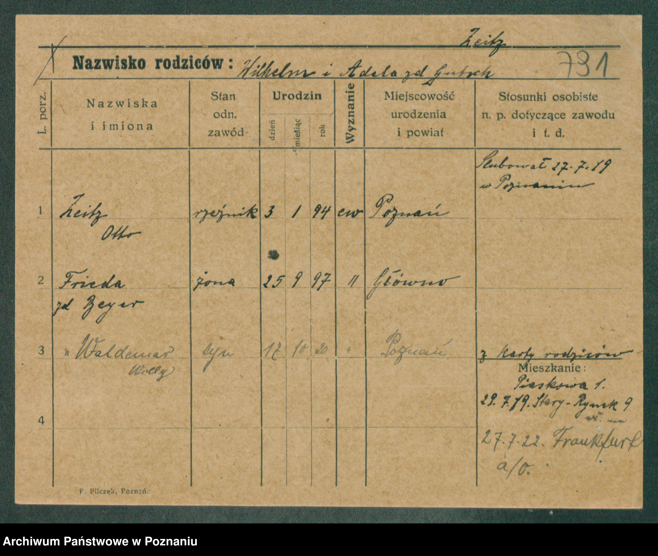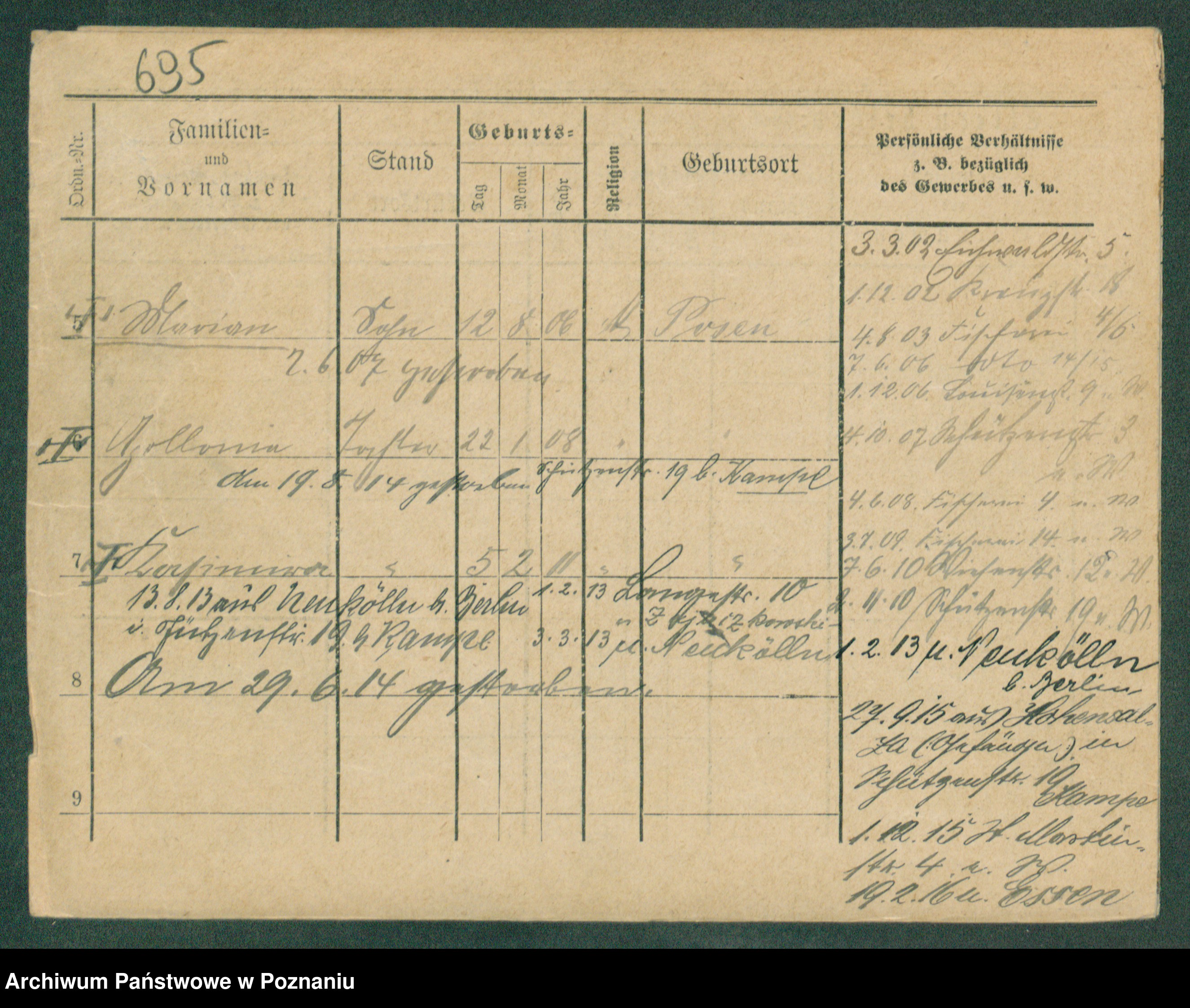 Podgląd karty osobowej dostępny jest po kliknięciu na nazwisko lub ikonkę karty. Można dokonywać powiększenia (ikony na górze) lub przechodzić między kolejnymi skanami (strzałki po bokach).