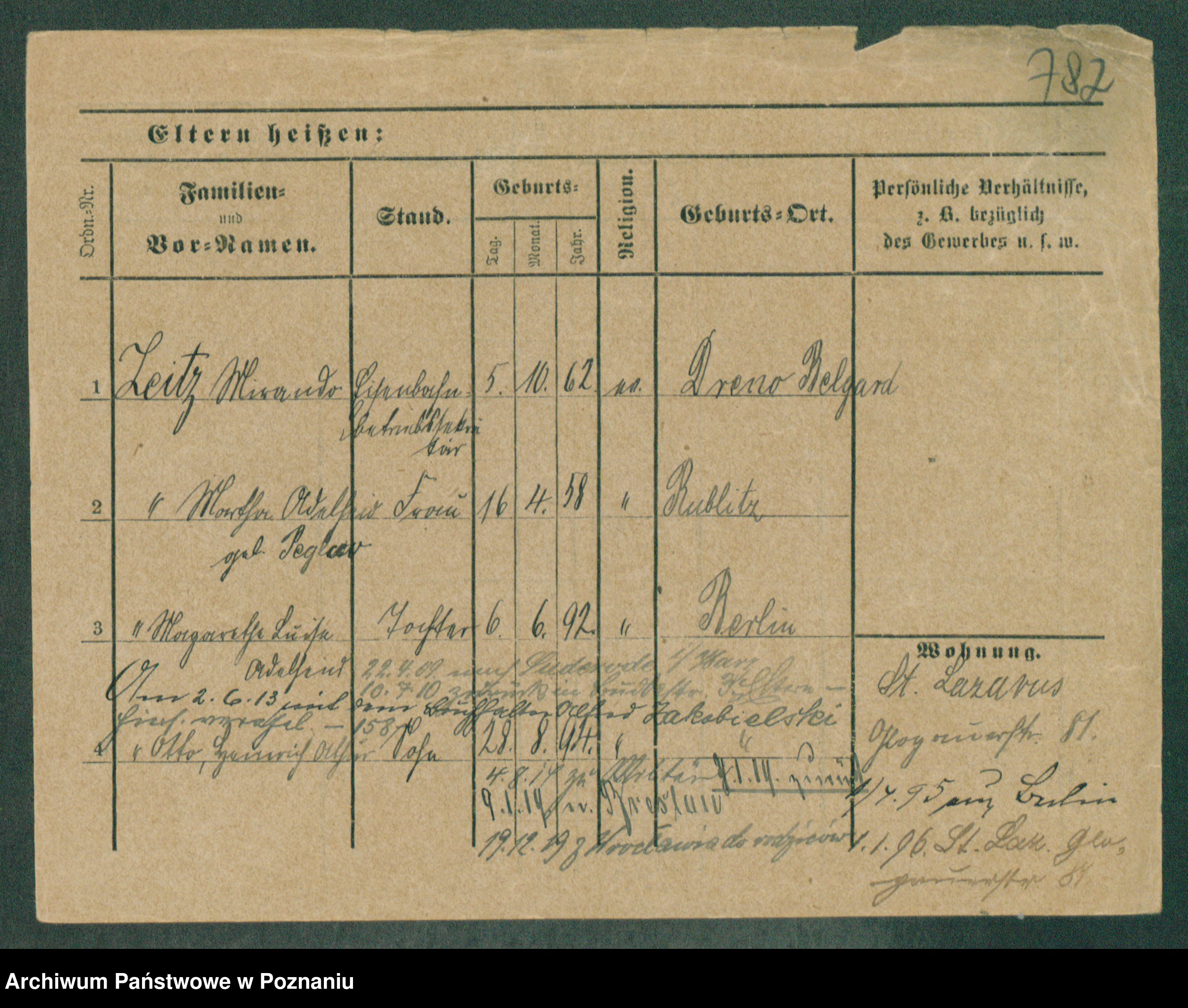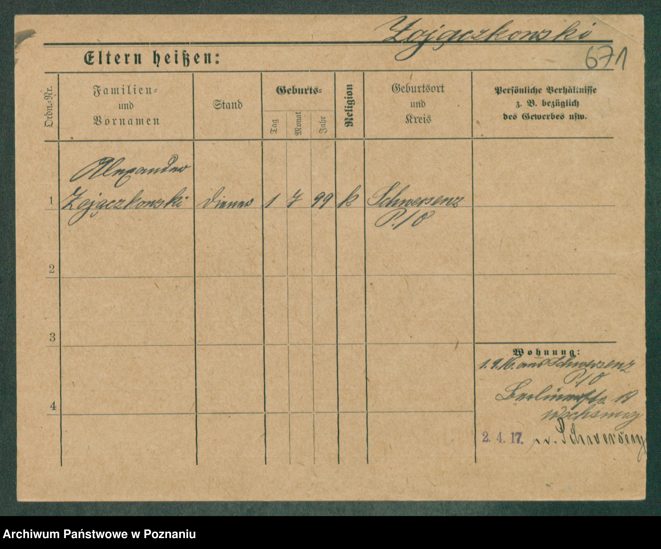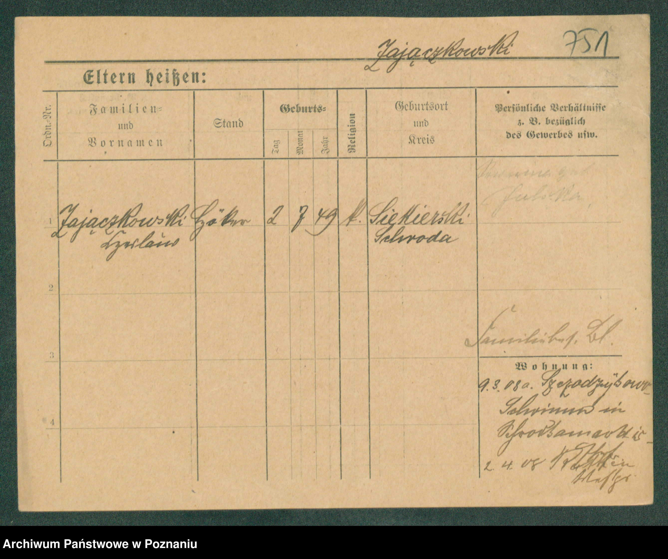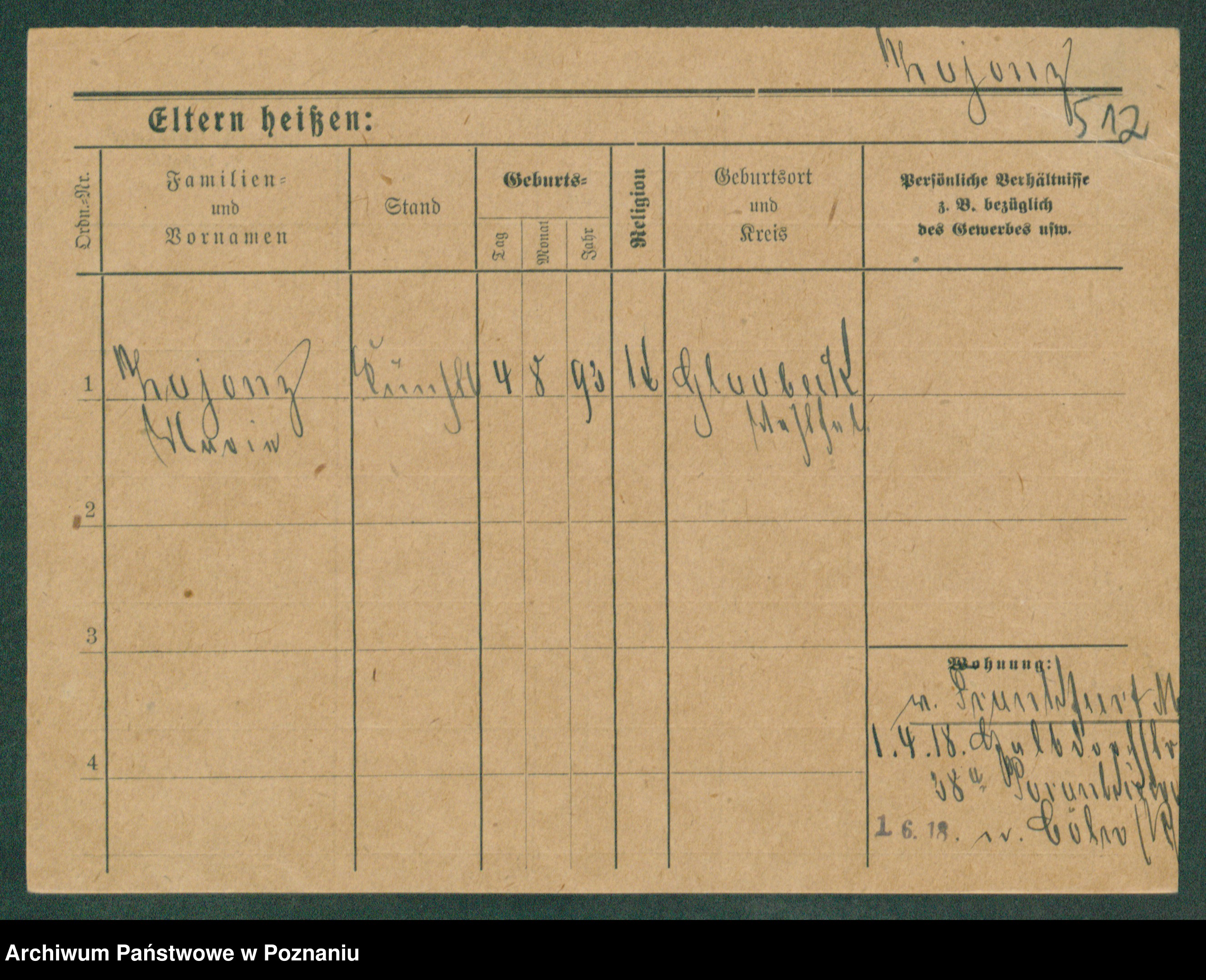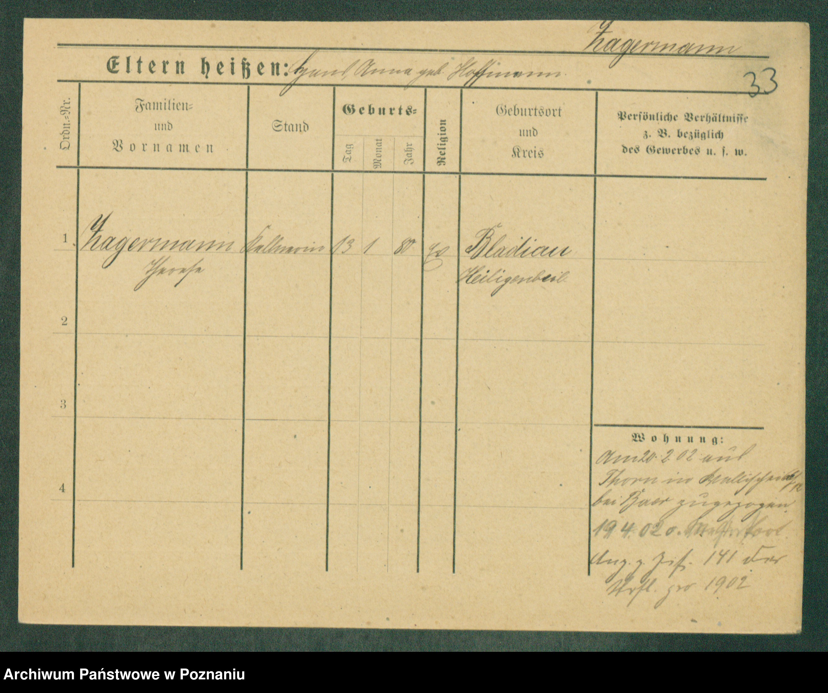 Podgląd karty osobowej dostępny jest po kliknięciu na nazwisko lub ikonkę karty. Można dokonywać powiększenia (ikony na górze) lub przechodzić między kolejnymi skanami (strzałki po bokach).