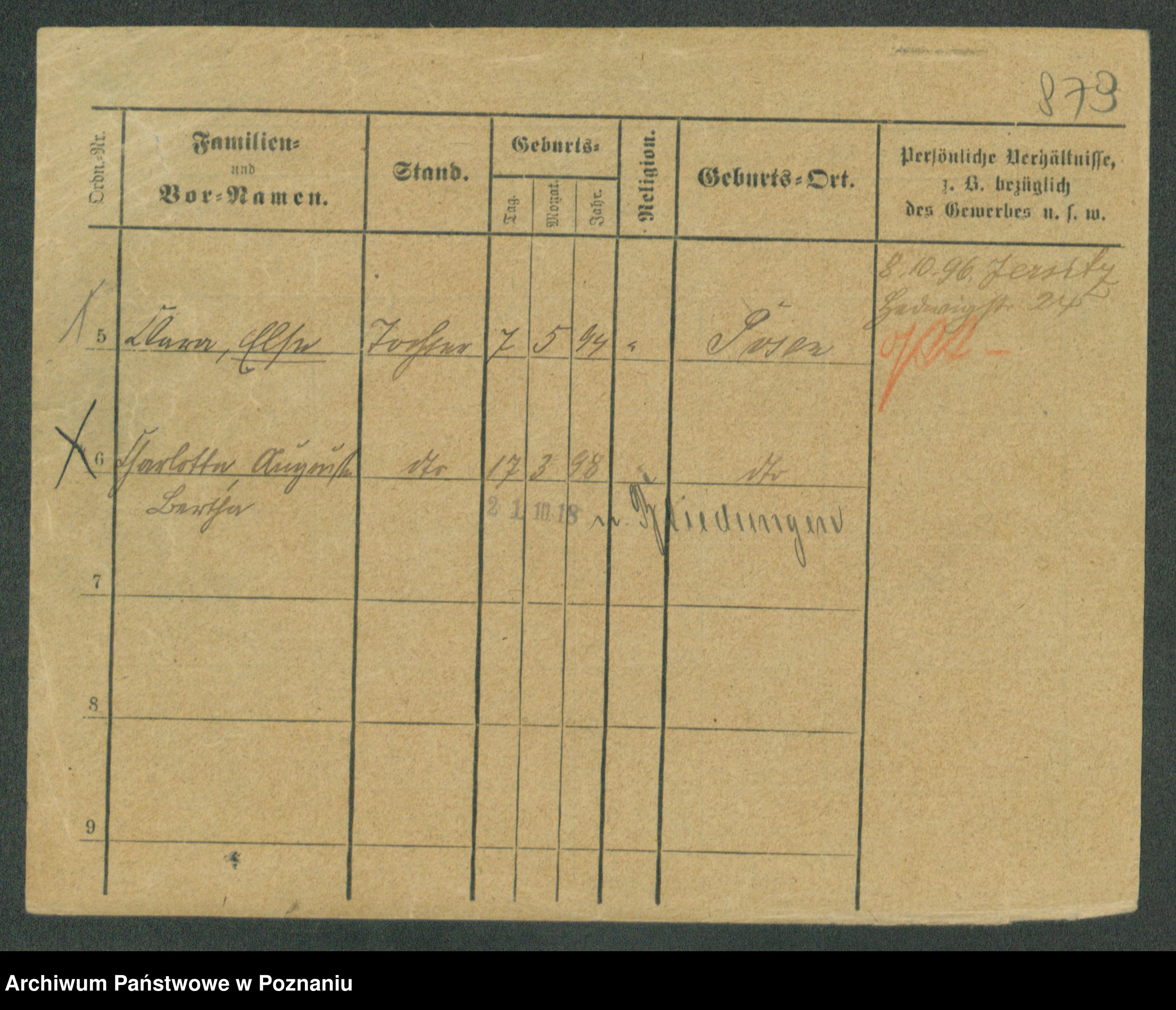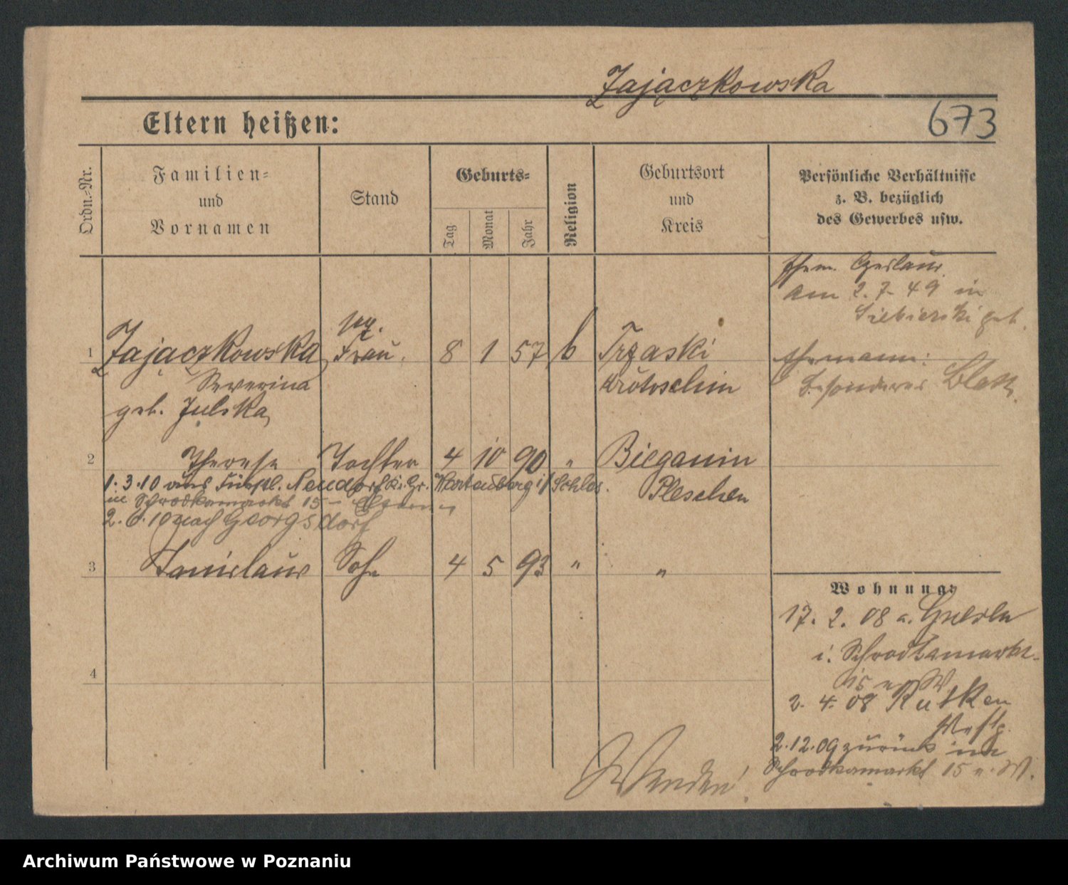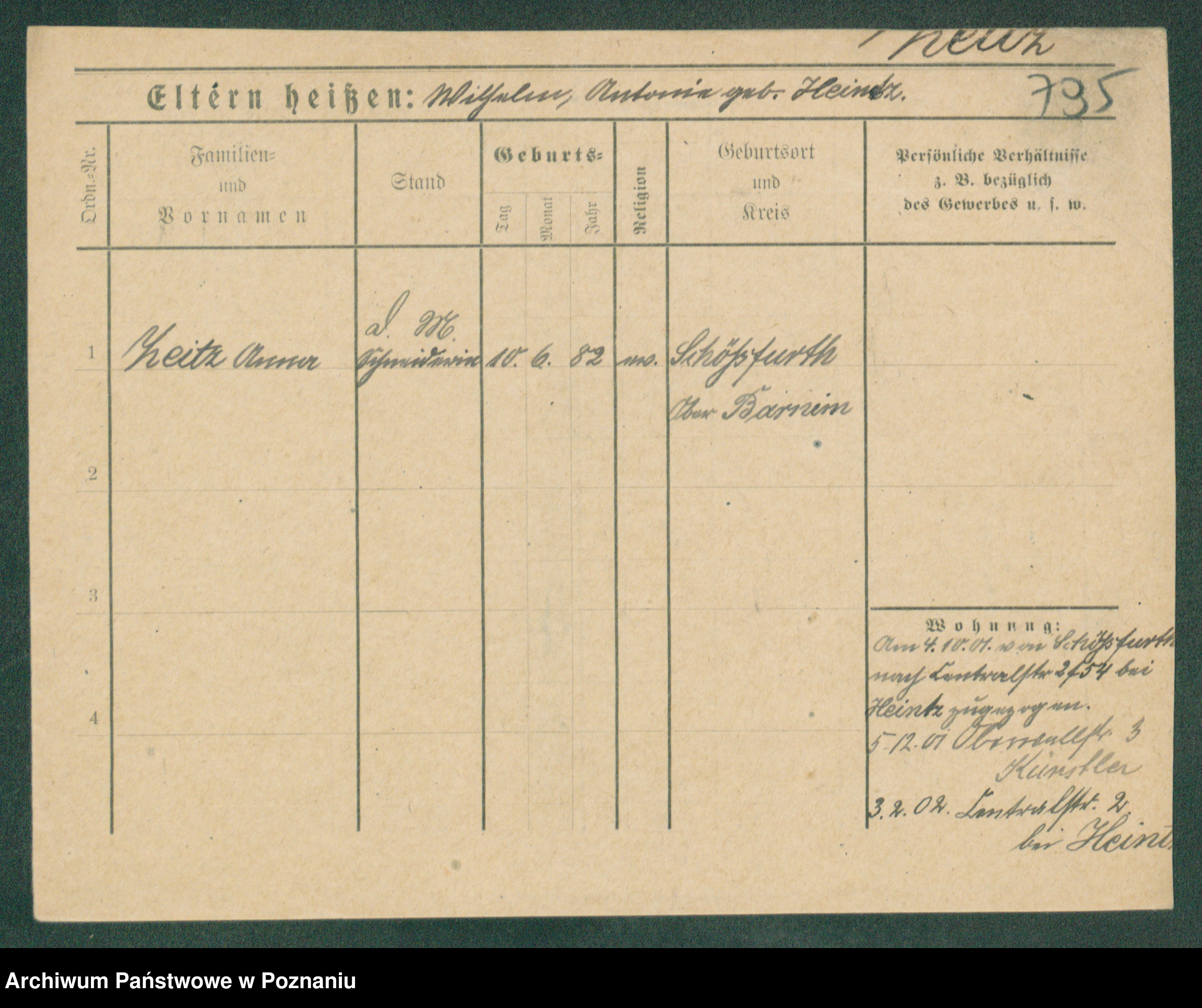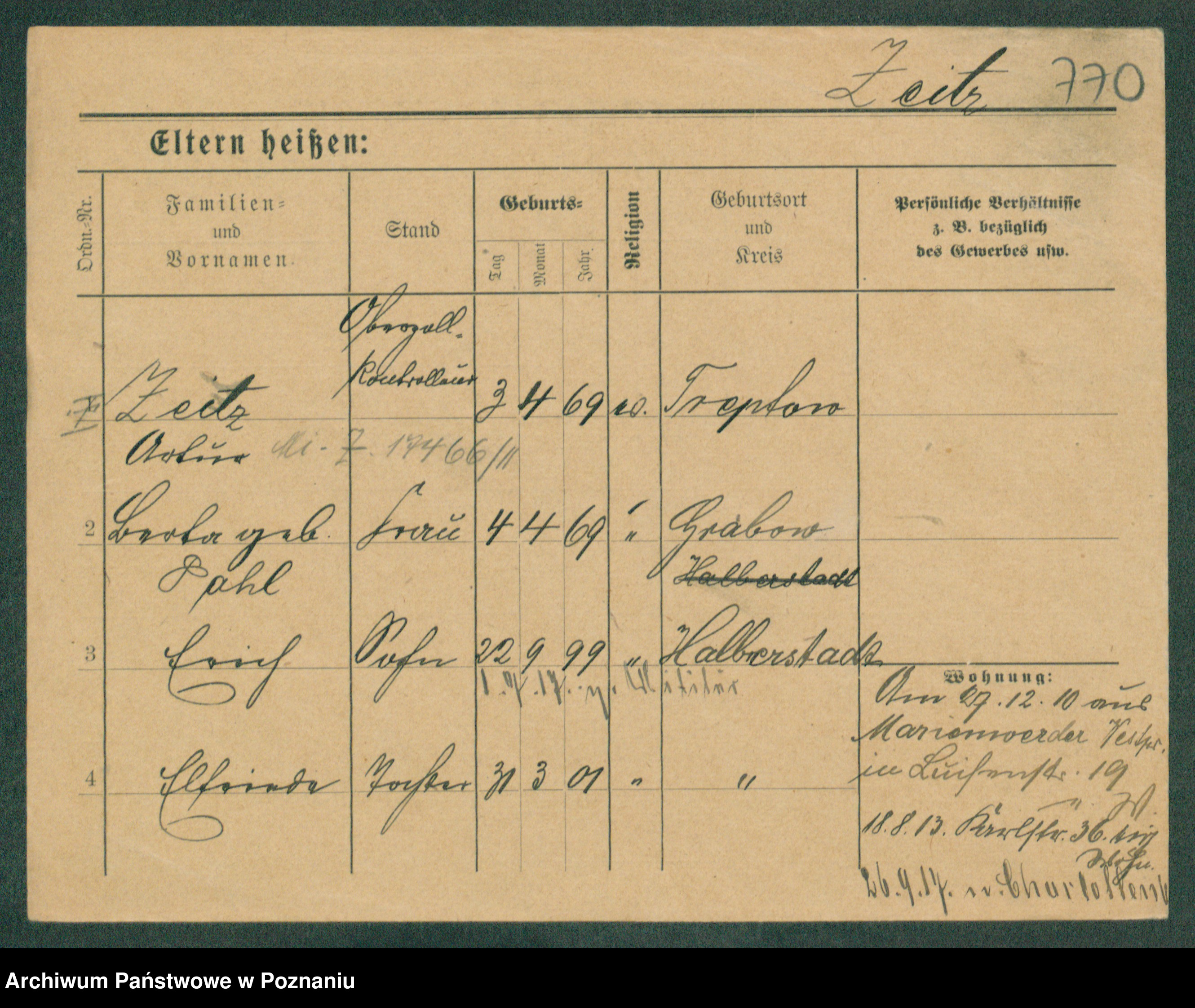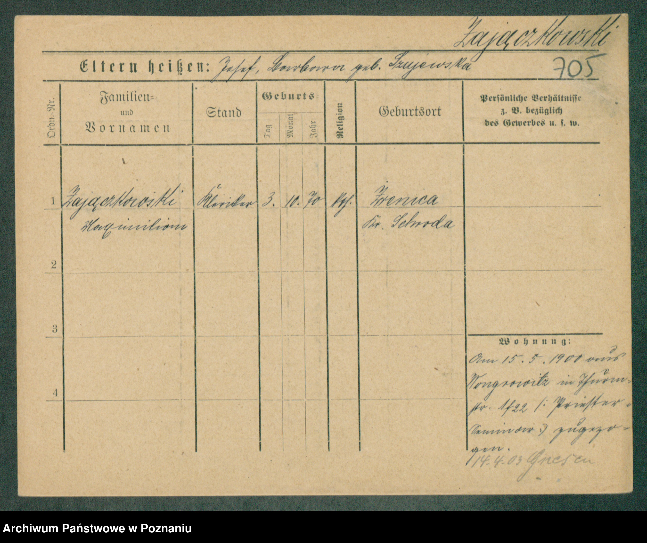 Podgląd karty osobowej dostępny jest po kliknięciu na nazwisko lub ikonkę karty. Można dokonywać powiększenia (ikony na górze) lub przechodzić między kolejnymi skanami (strzałki po bokach).