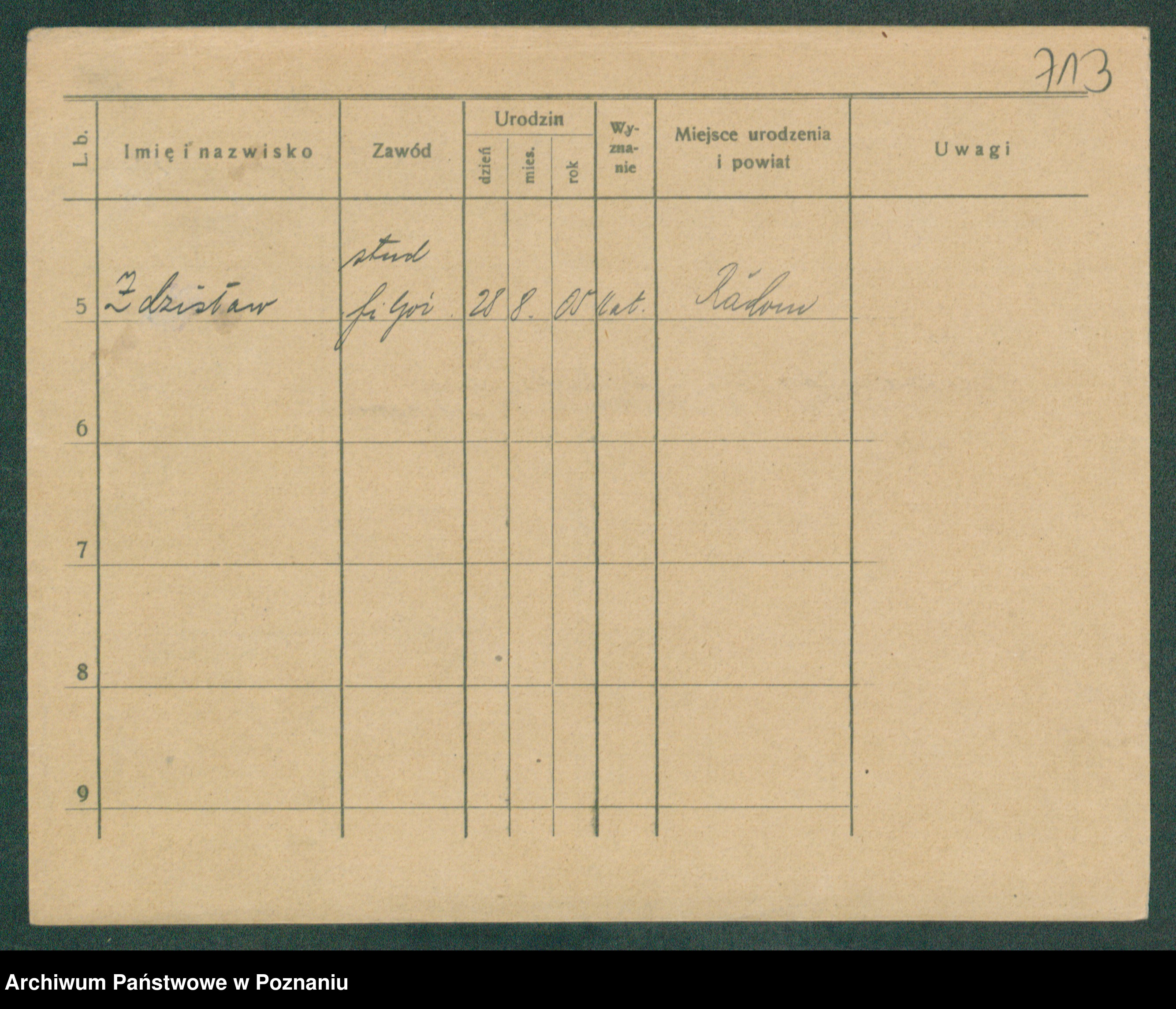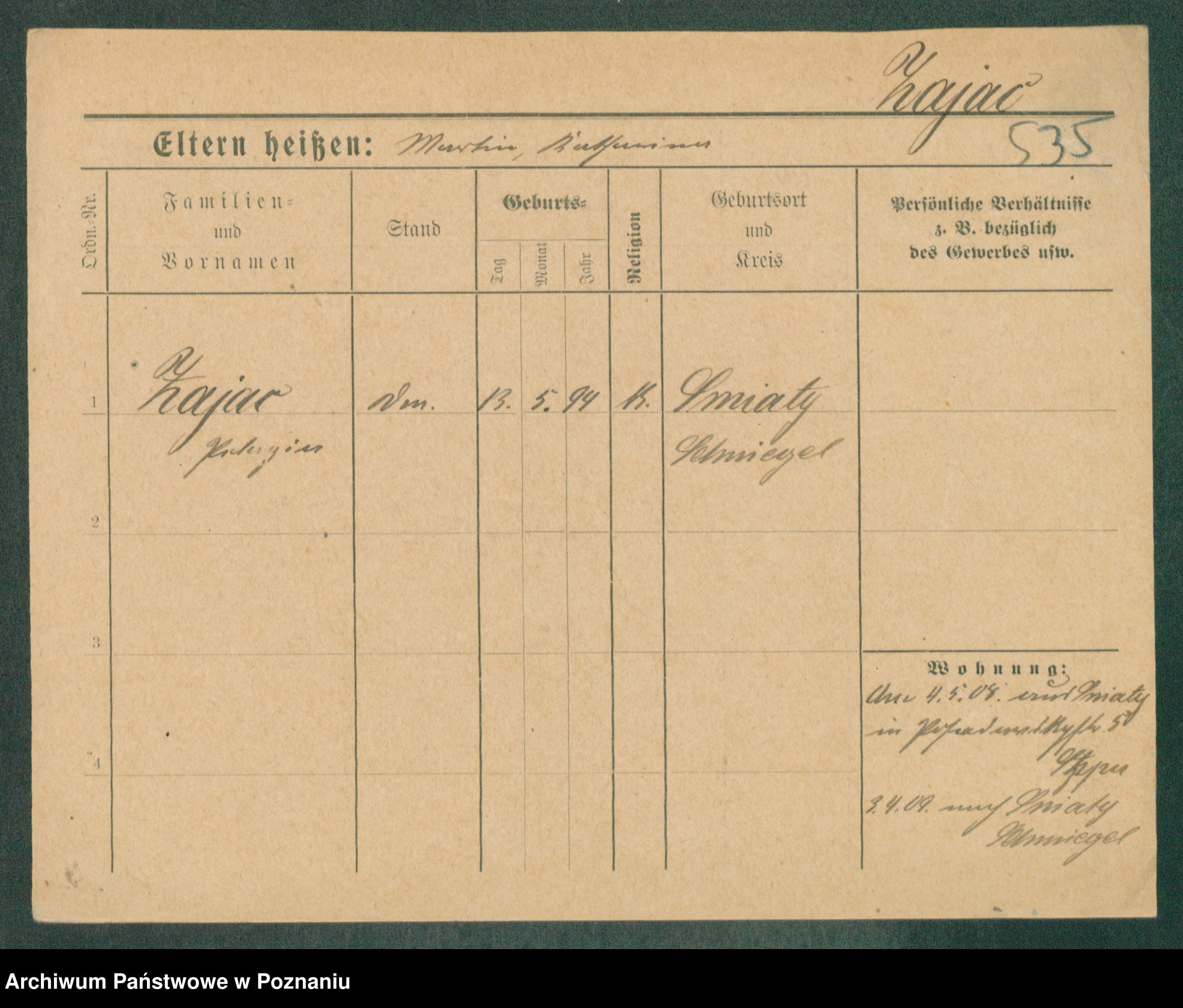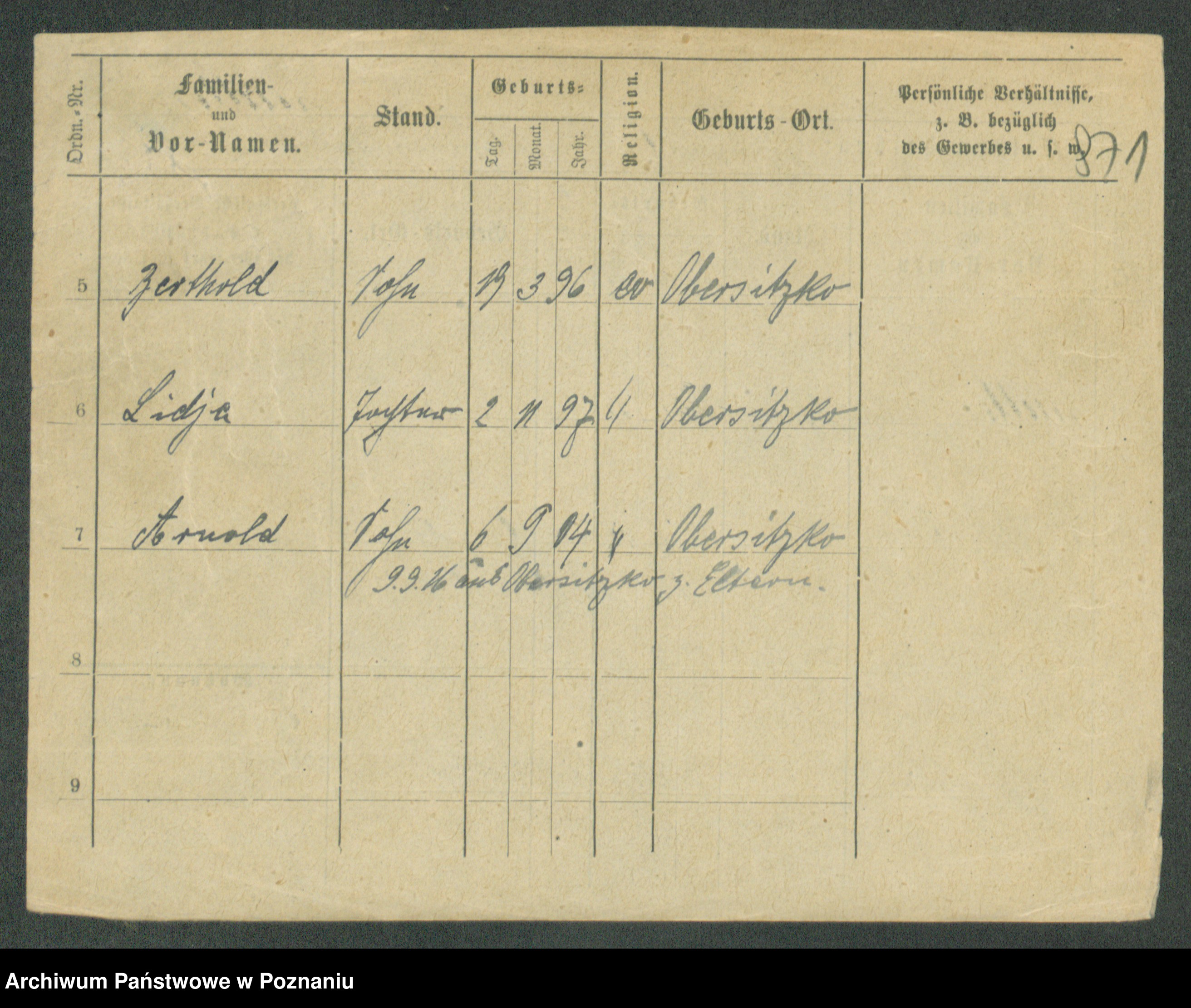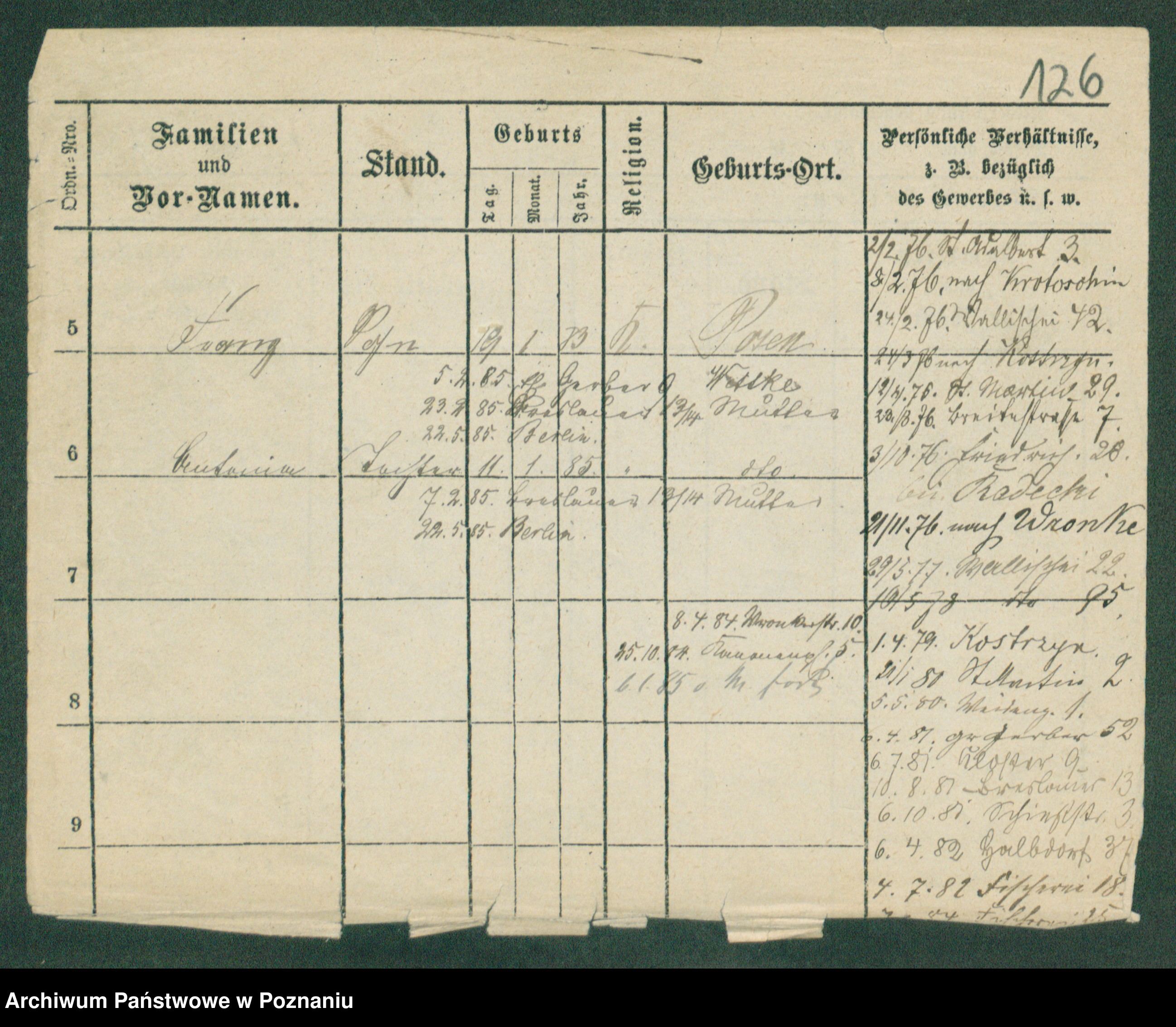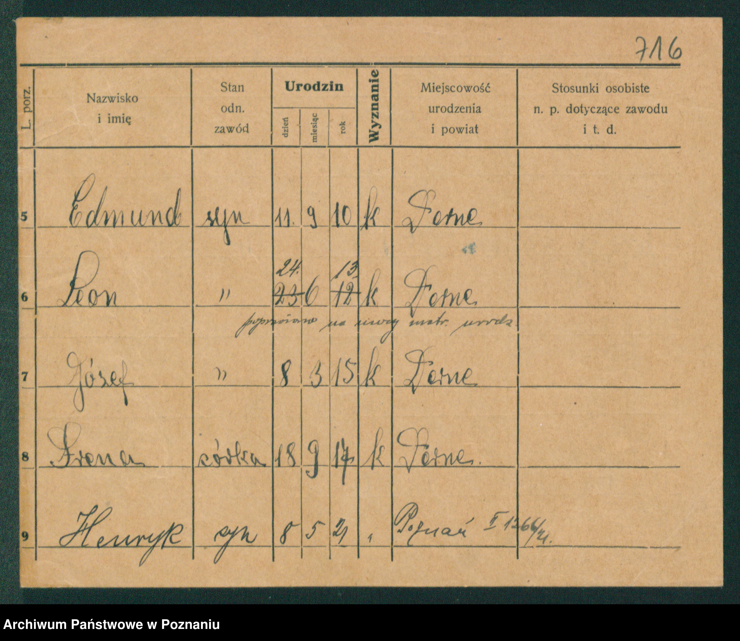 Podgląd karty osobowej dostępny jest po kliknięciu na nazwisko lub ikonkę karty. Można dokonywać powiększenia (ikony na górze) lub przechodzić między kolejnymi skanami (strzałki po bokach).