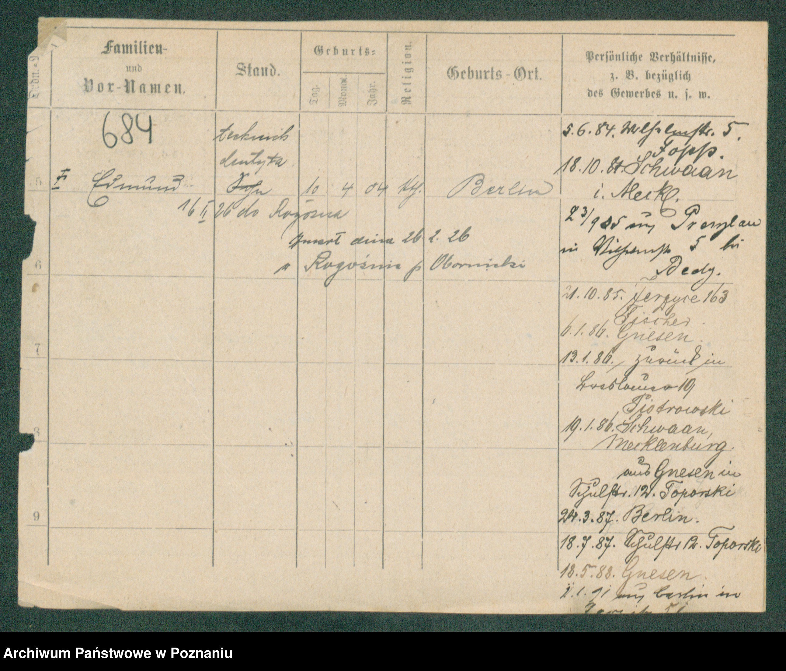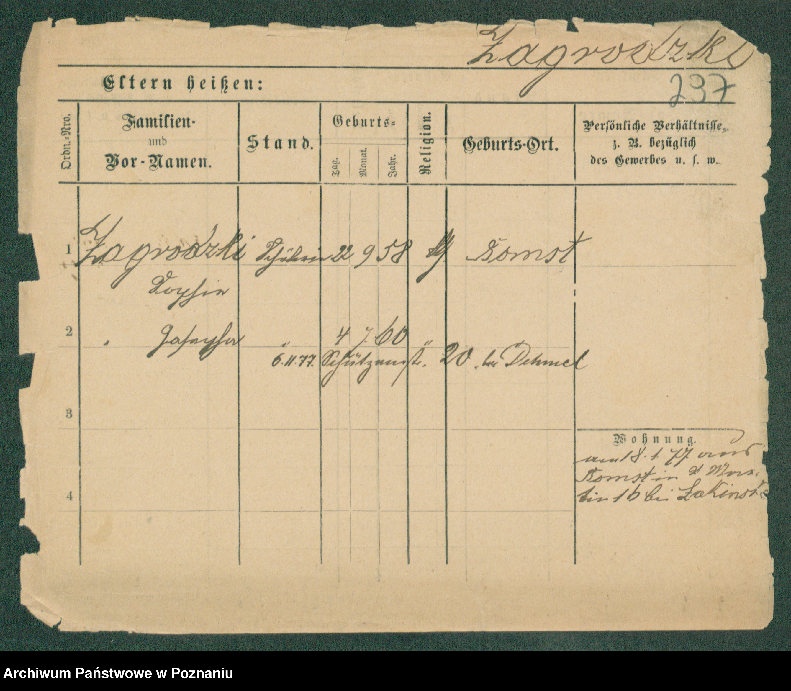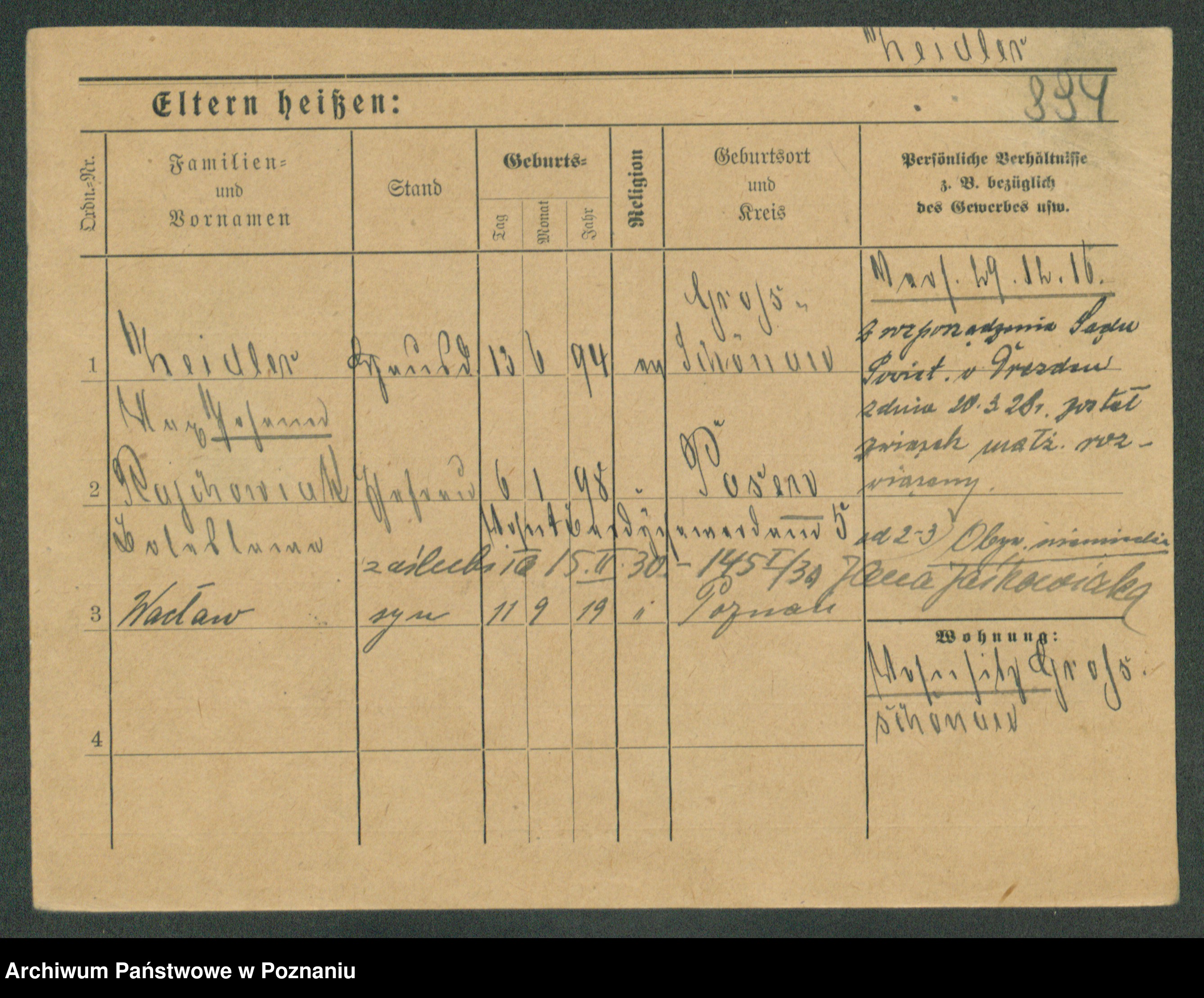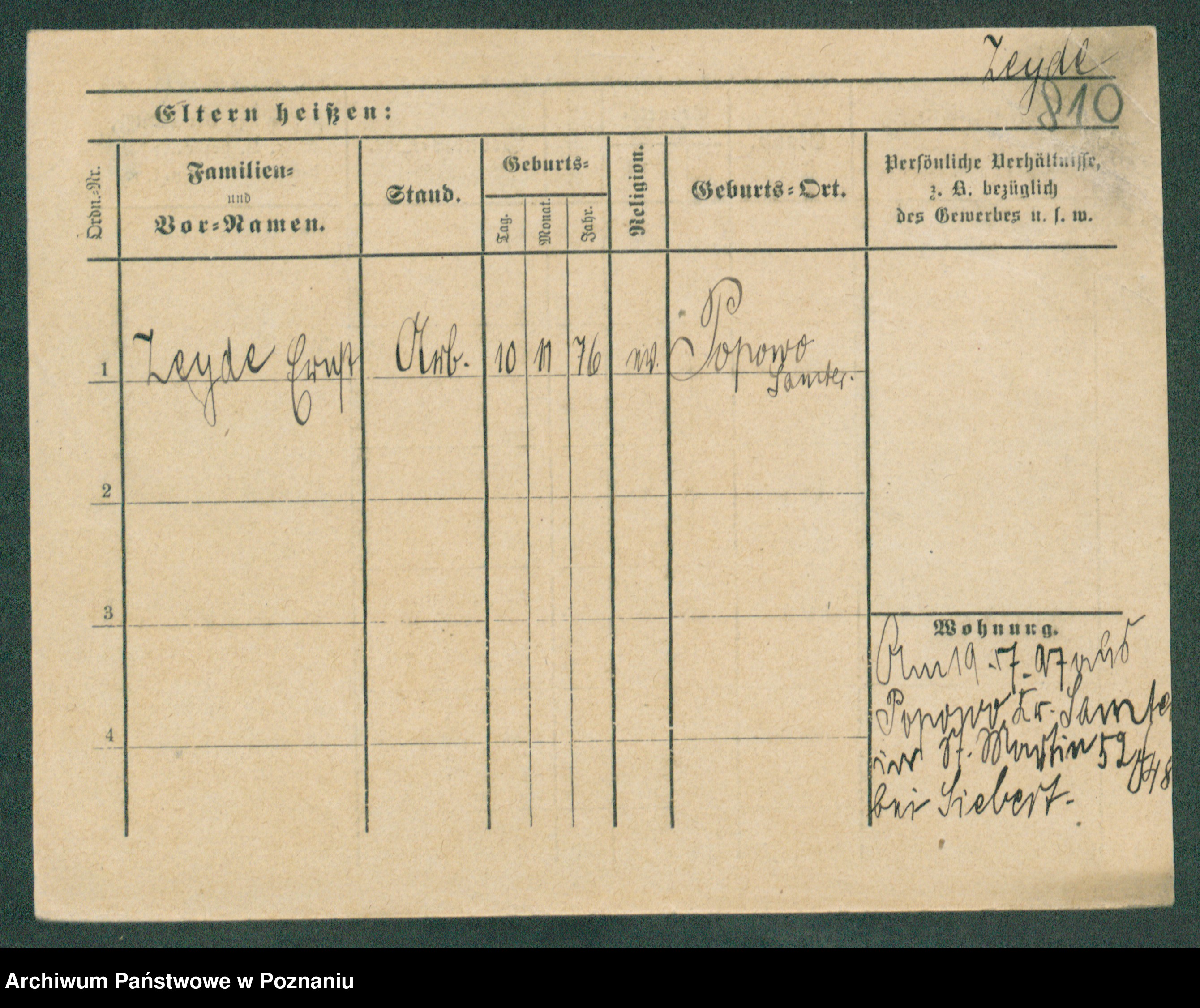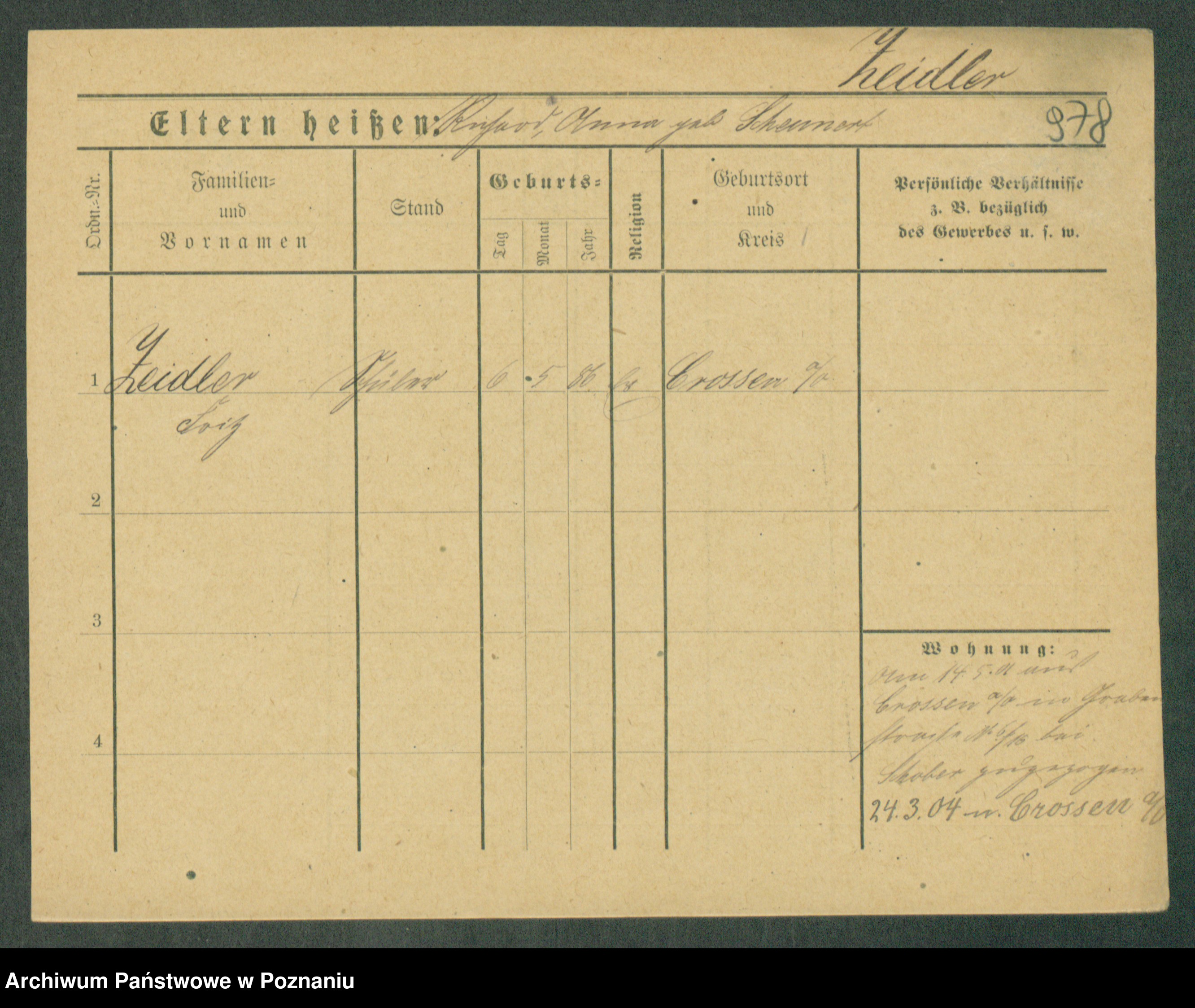 Podgląd karty osobowej dostępny jest po kliknięciu na nazwisko lub ikonkę karty. Można dokonywać powiększenia (ikony na górze) lub przechodzić między kolejnymi skanami (strzałki po bokach).