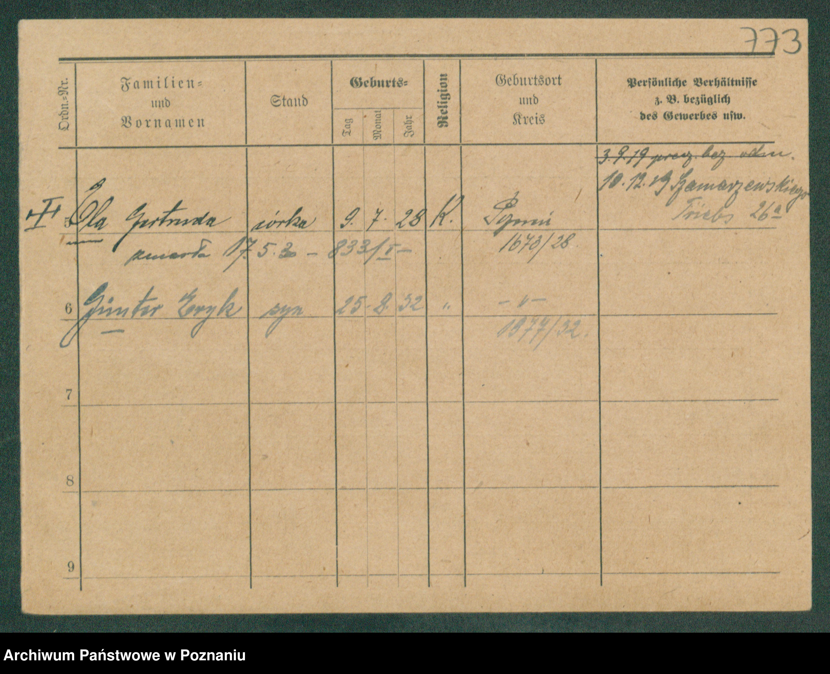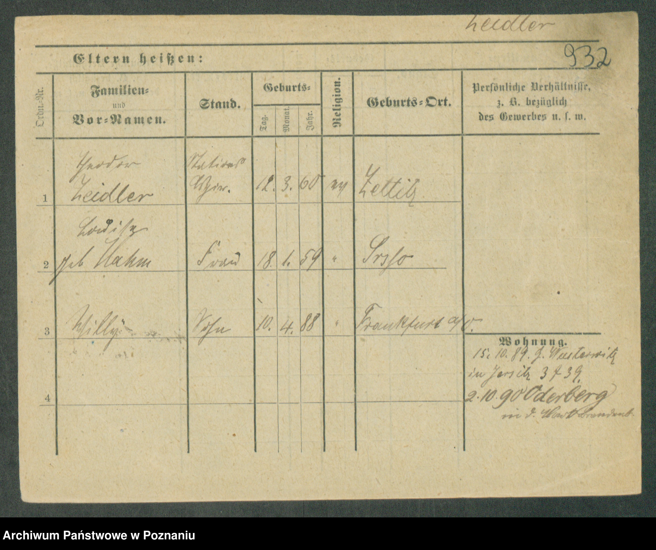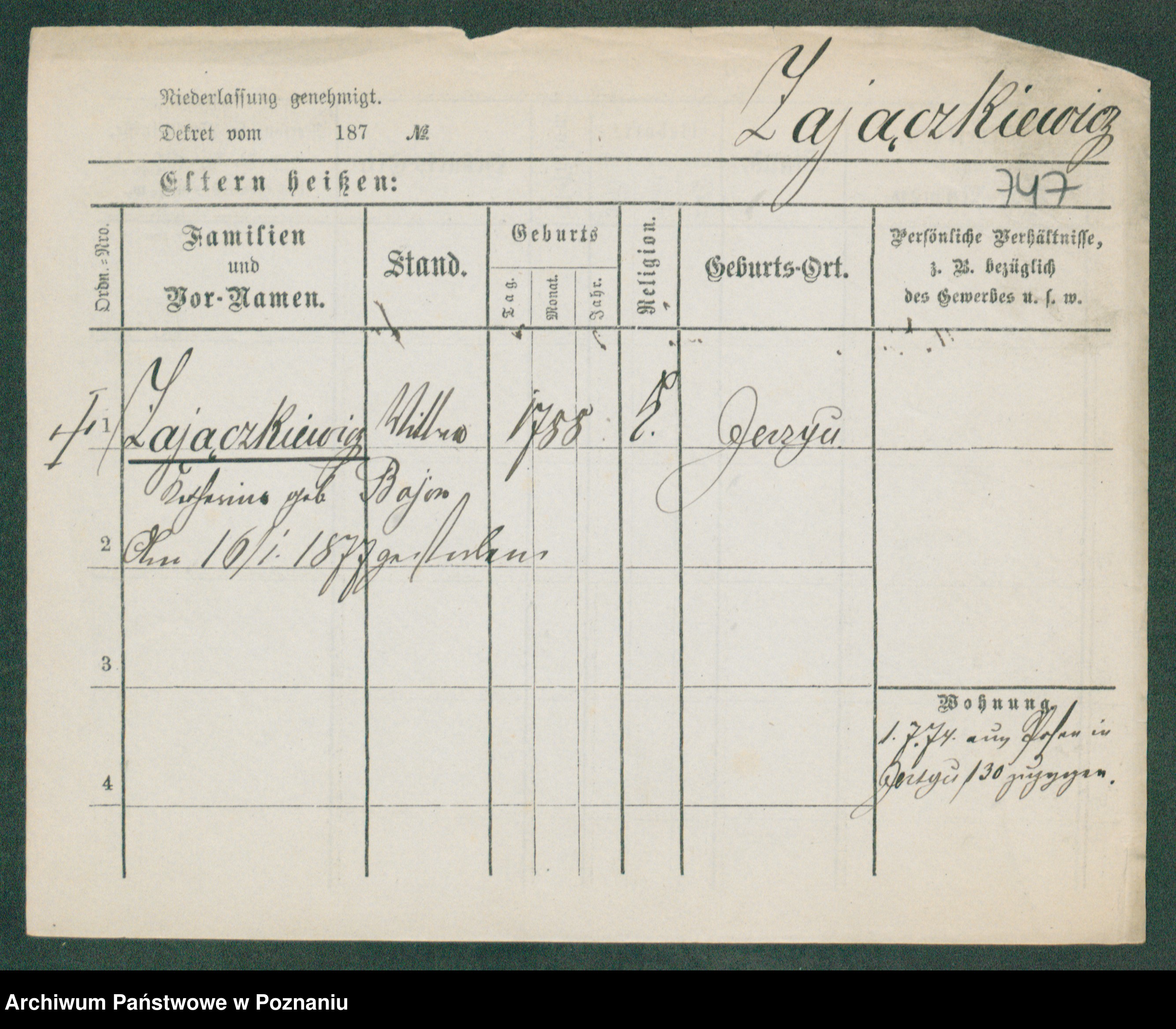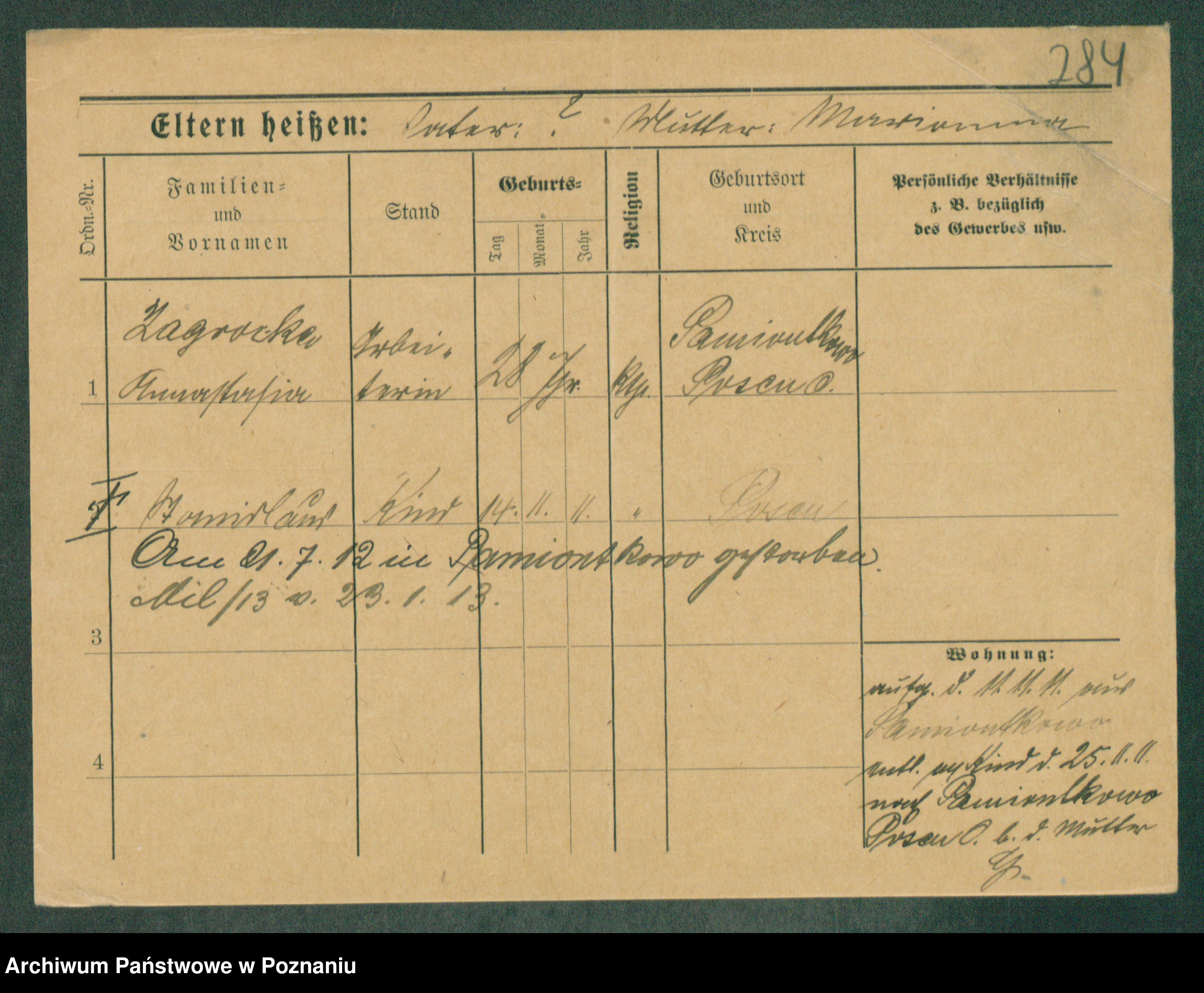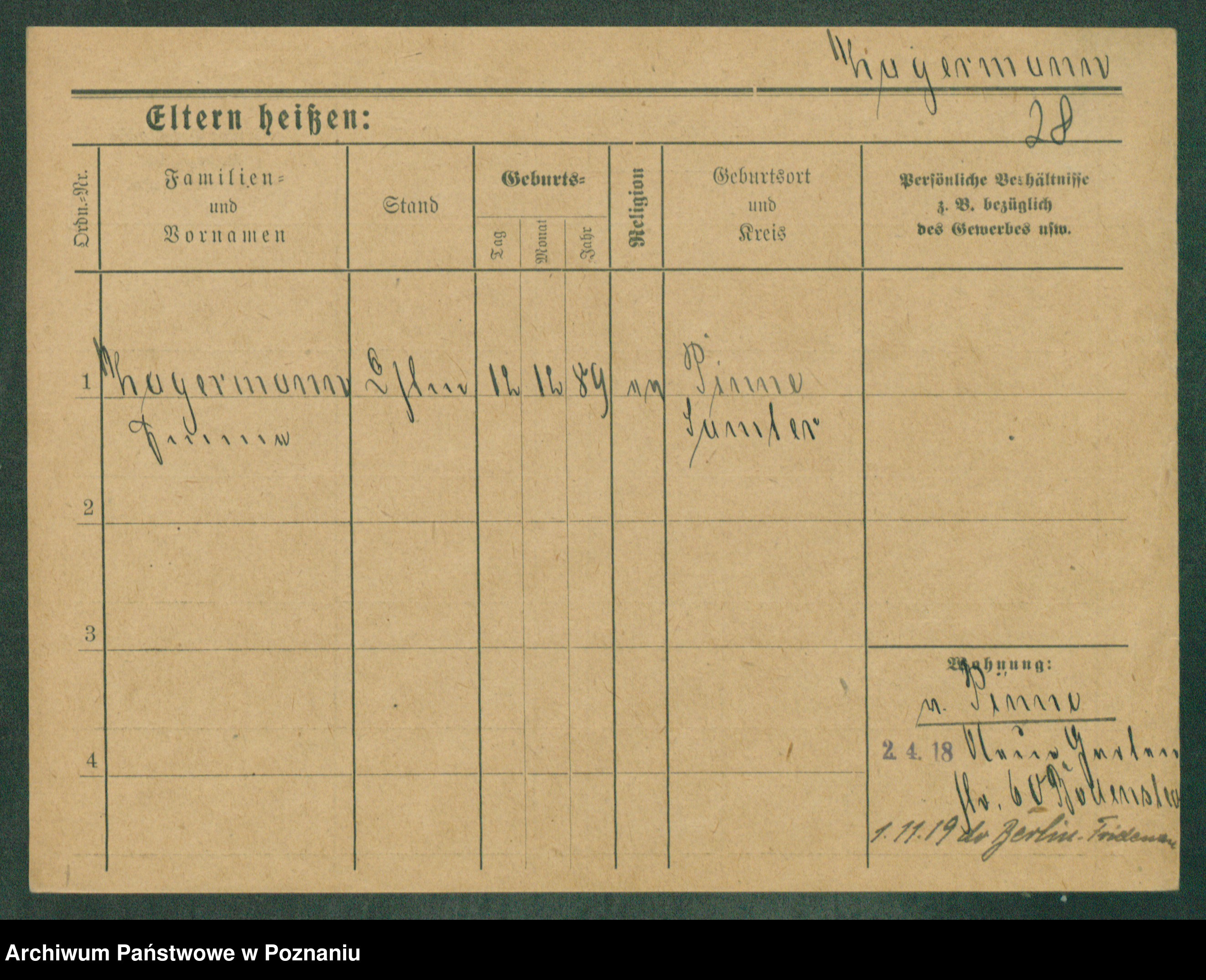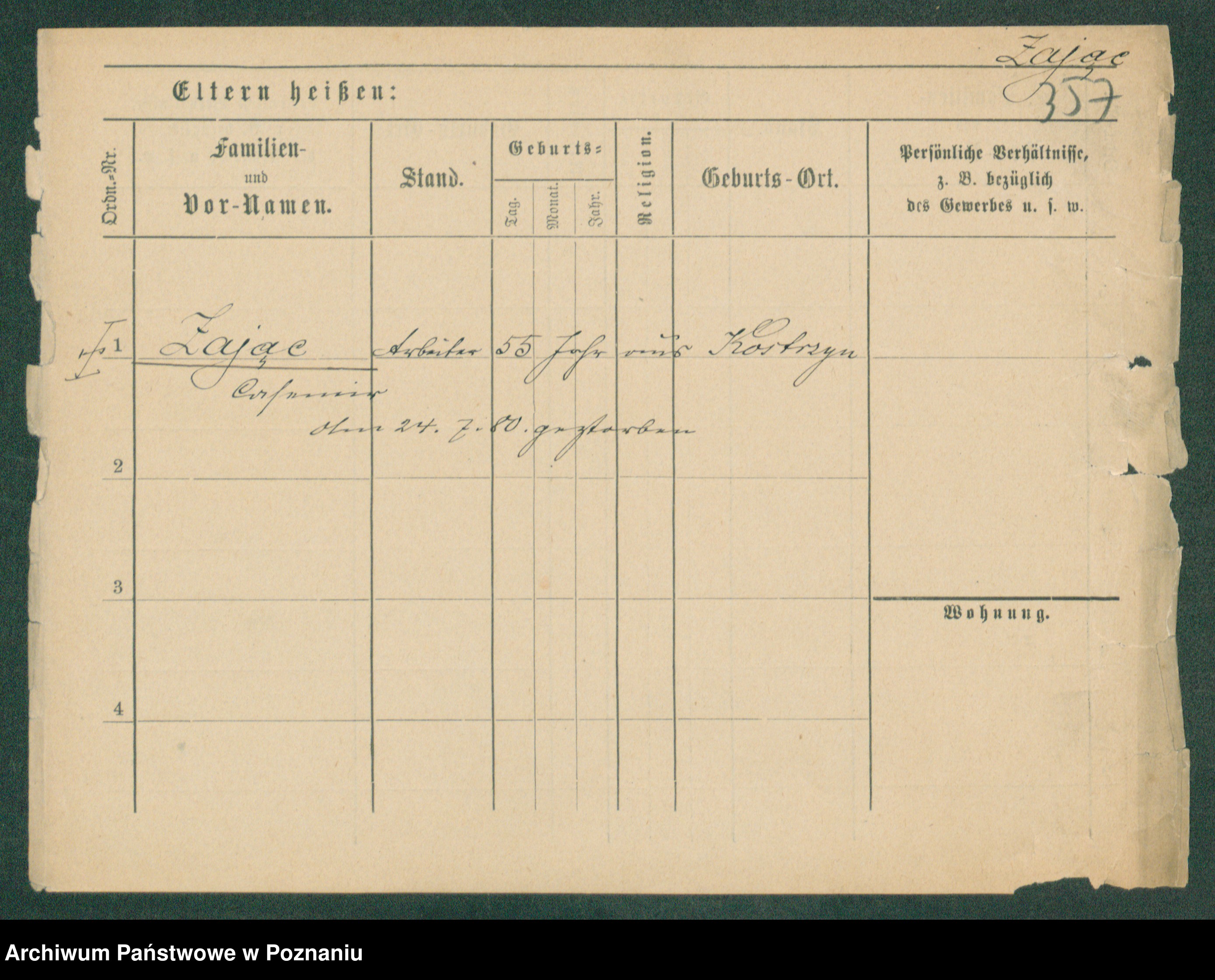 Podgląd karty osobowej dostępny jest po kliknięciu na nazwisko lub ikonkę karty. Można dokonywać powiększenia (ikony na górze) lub przechodzić między kolejnymi skanami (strzałki po bokach).