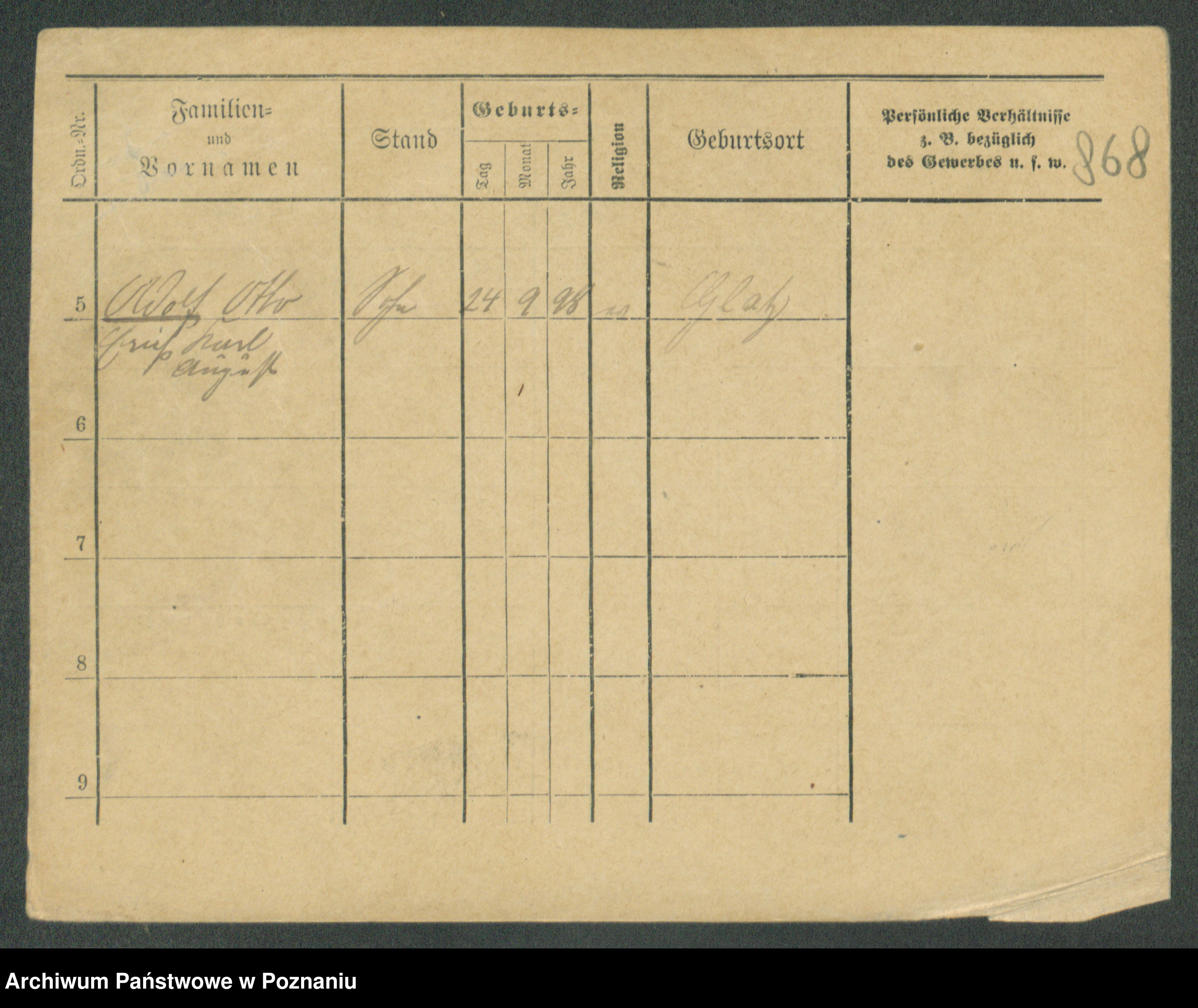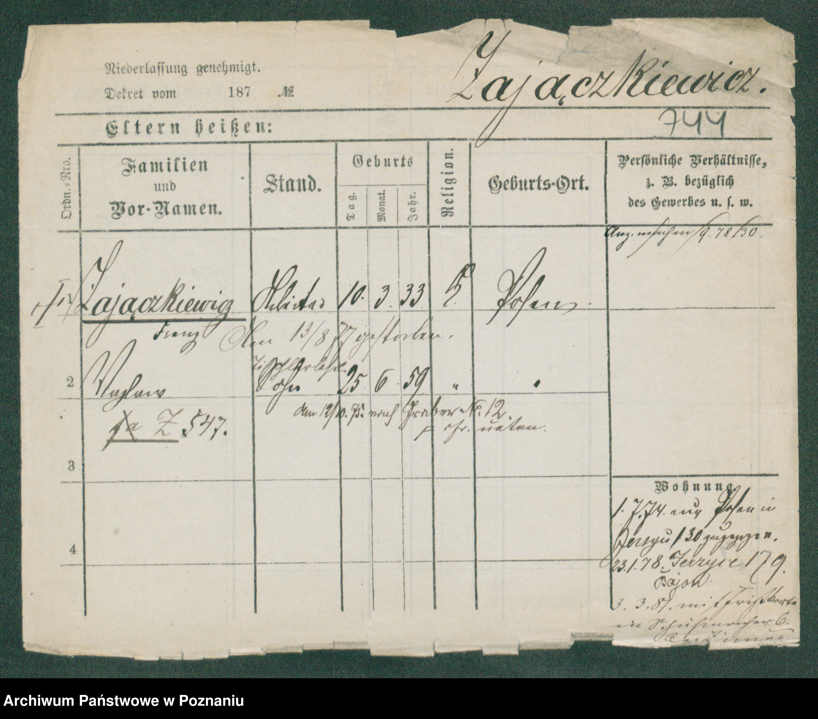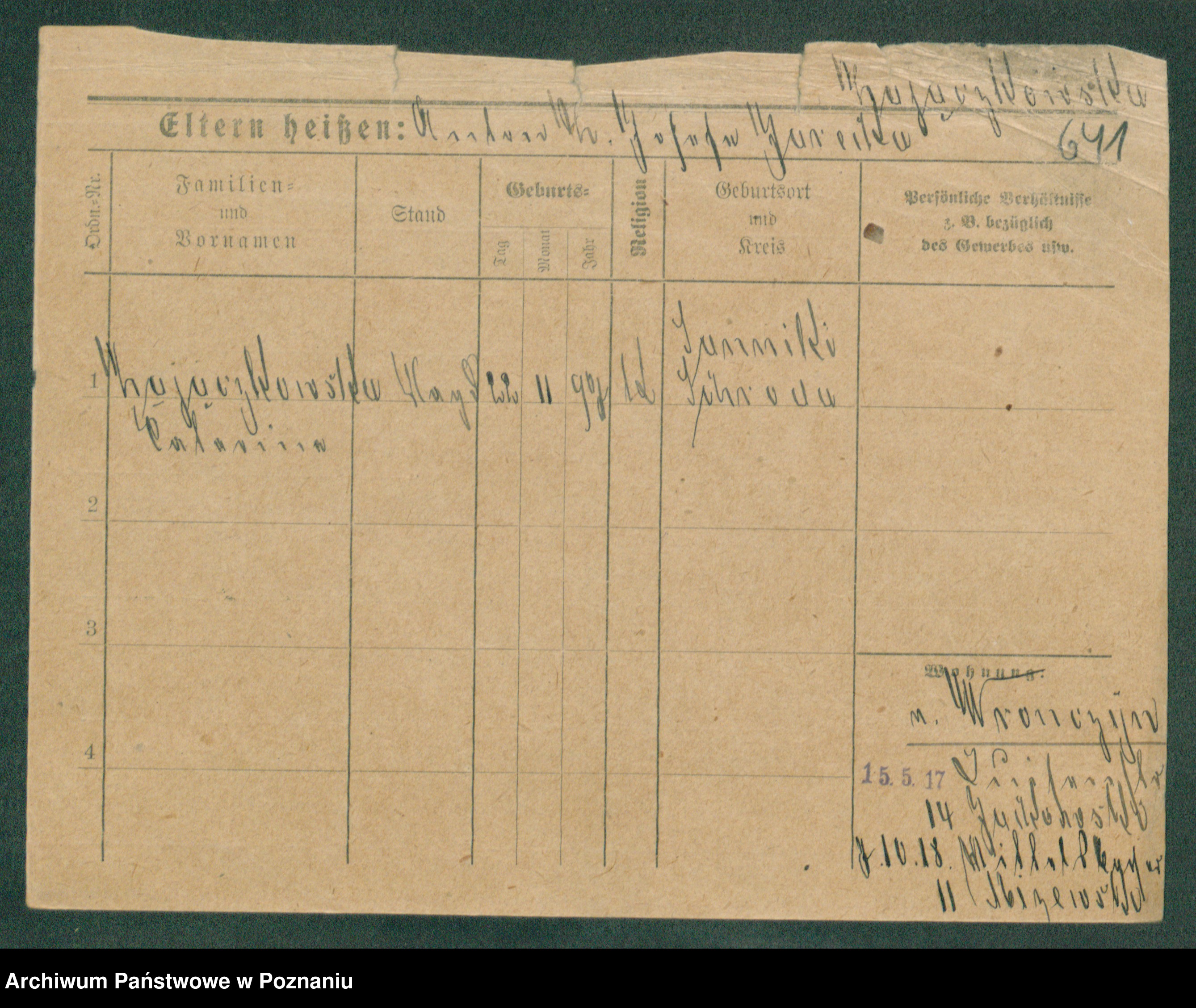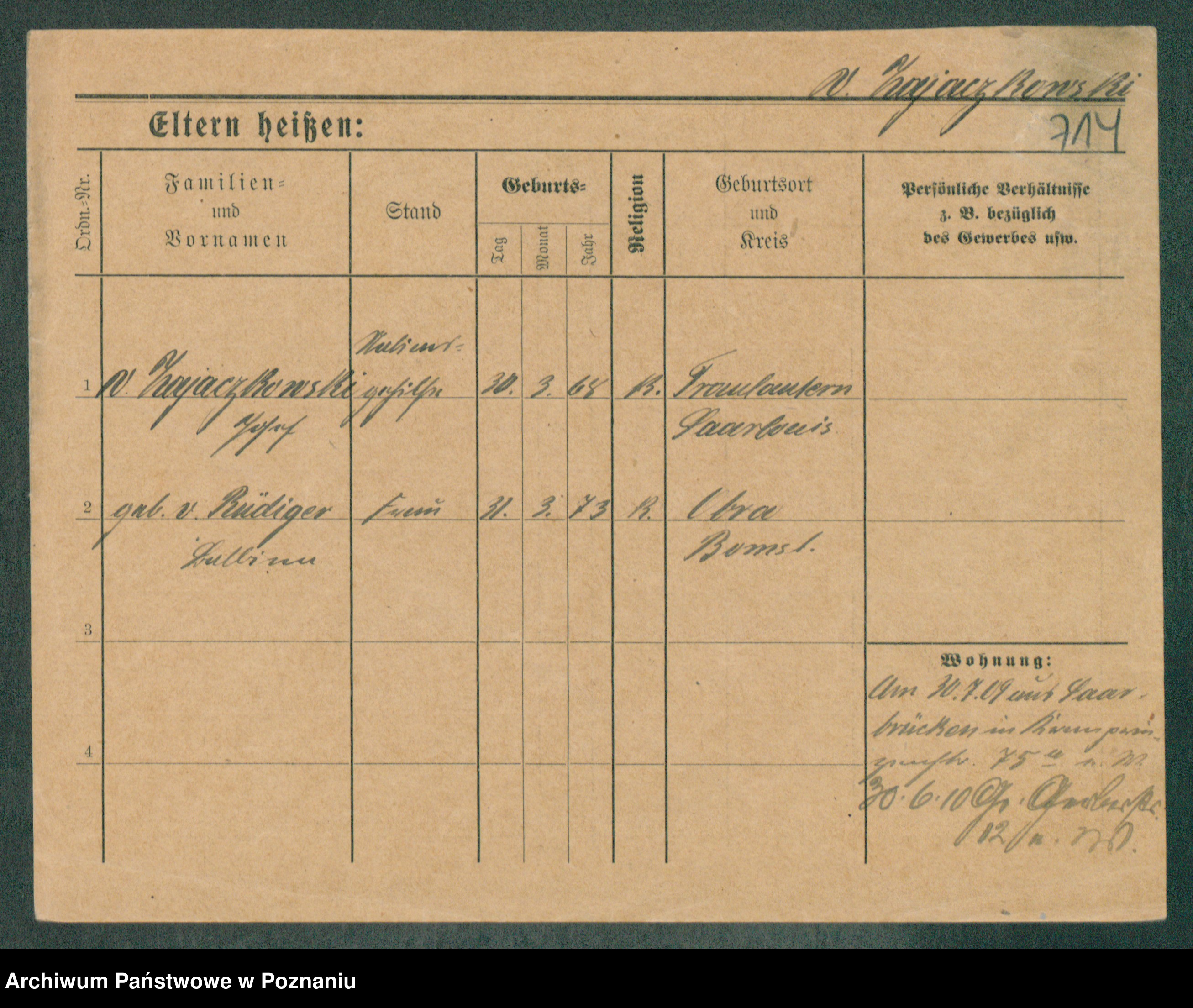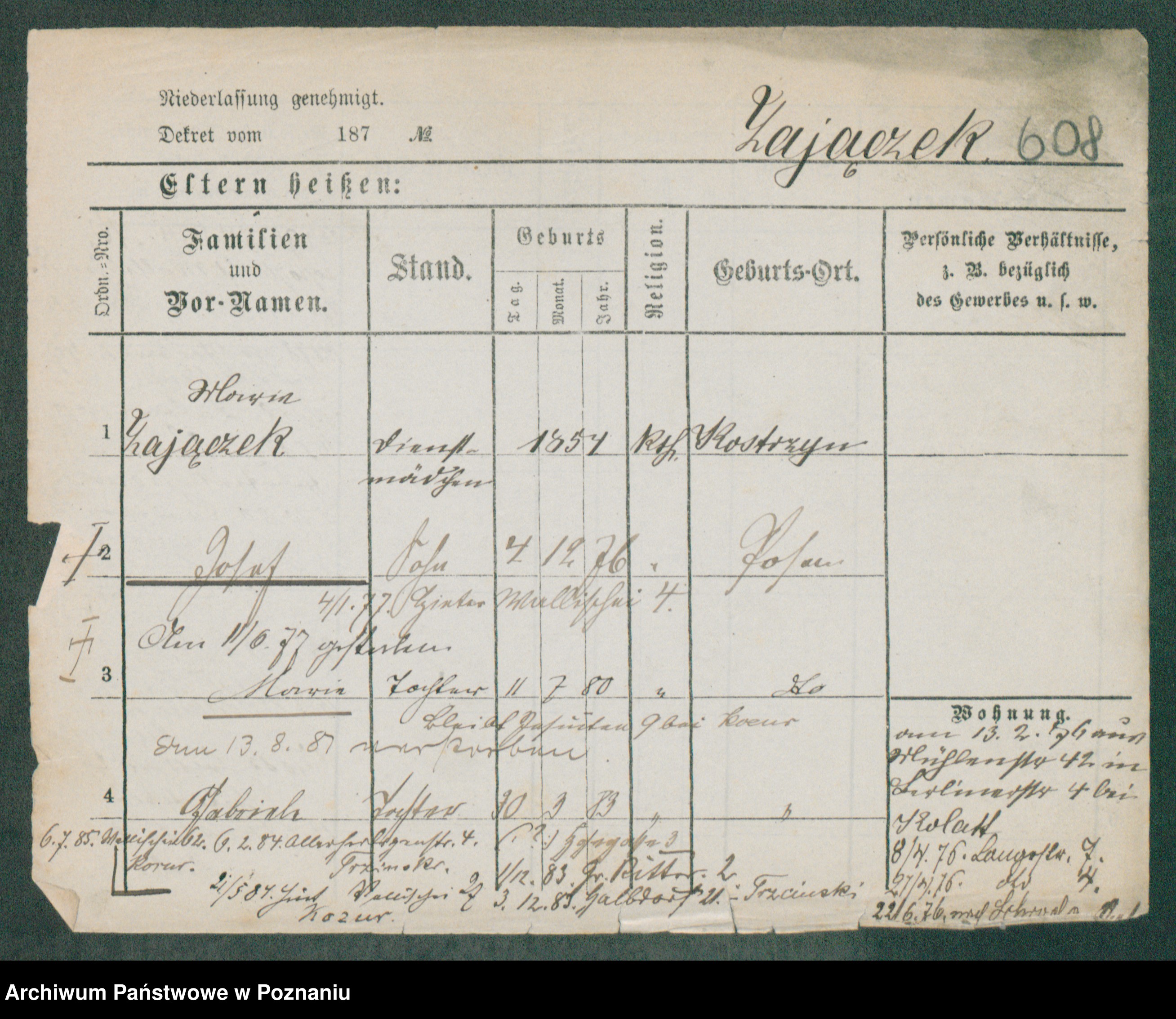 Podgląd karty osobowej dostępny jest po kliknięciu na nazwisko lub ikonkę karty. Można dokonywać powiększenia (ikony na górze) lub przechodzić między kolejnymi skanami (strzałki po bokach).