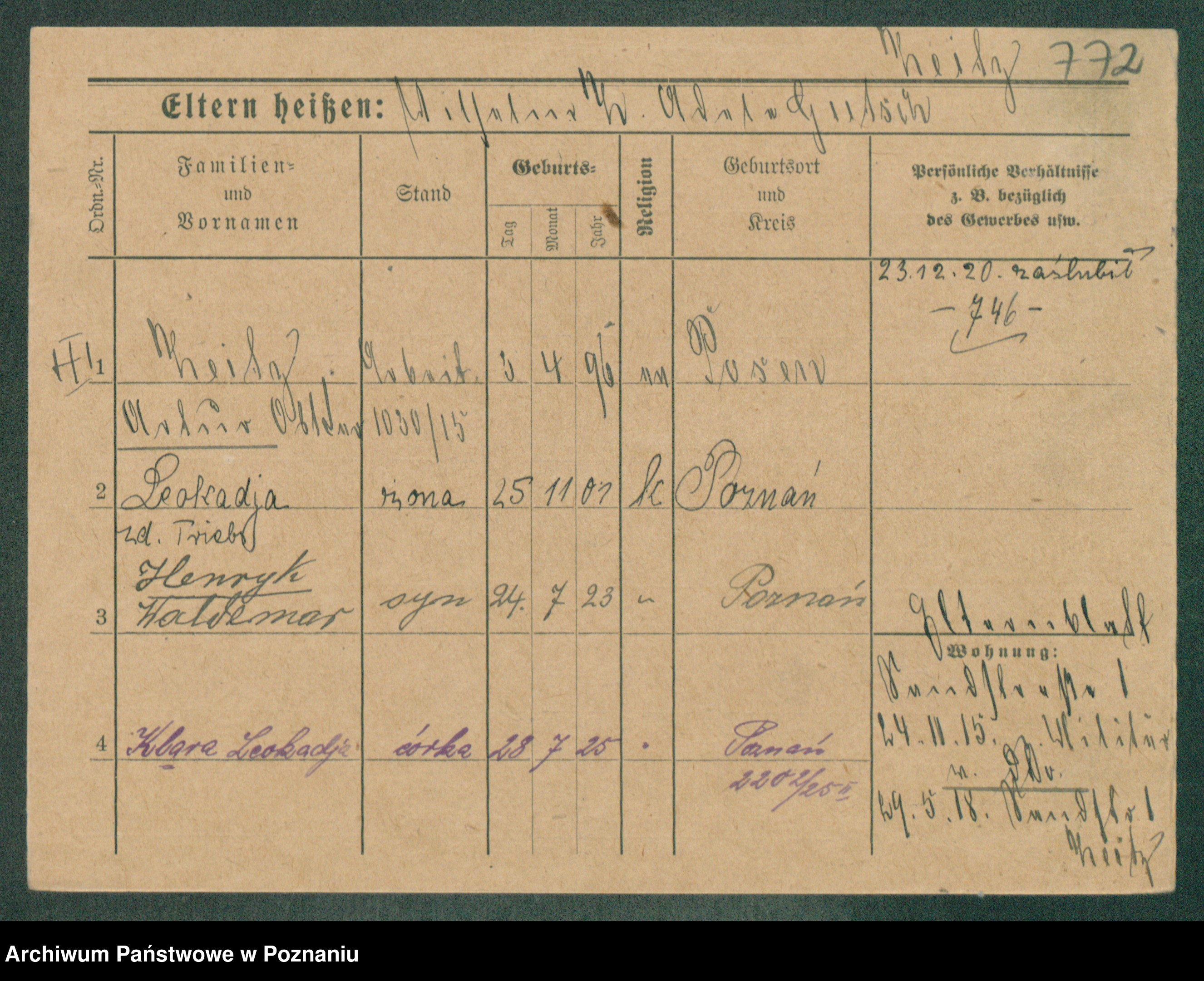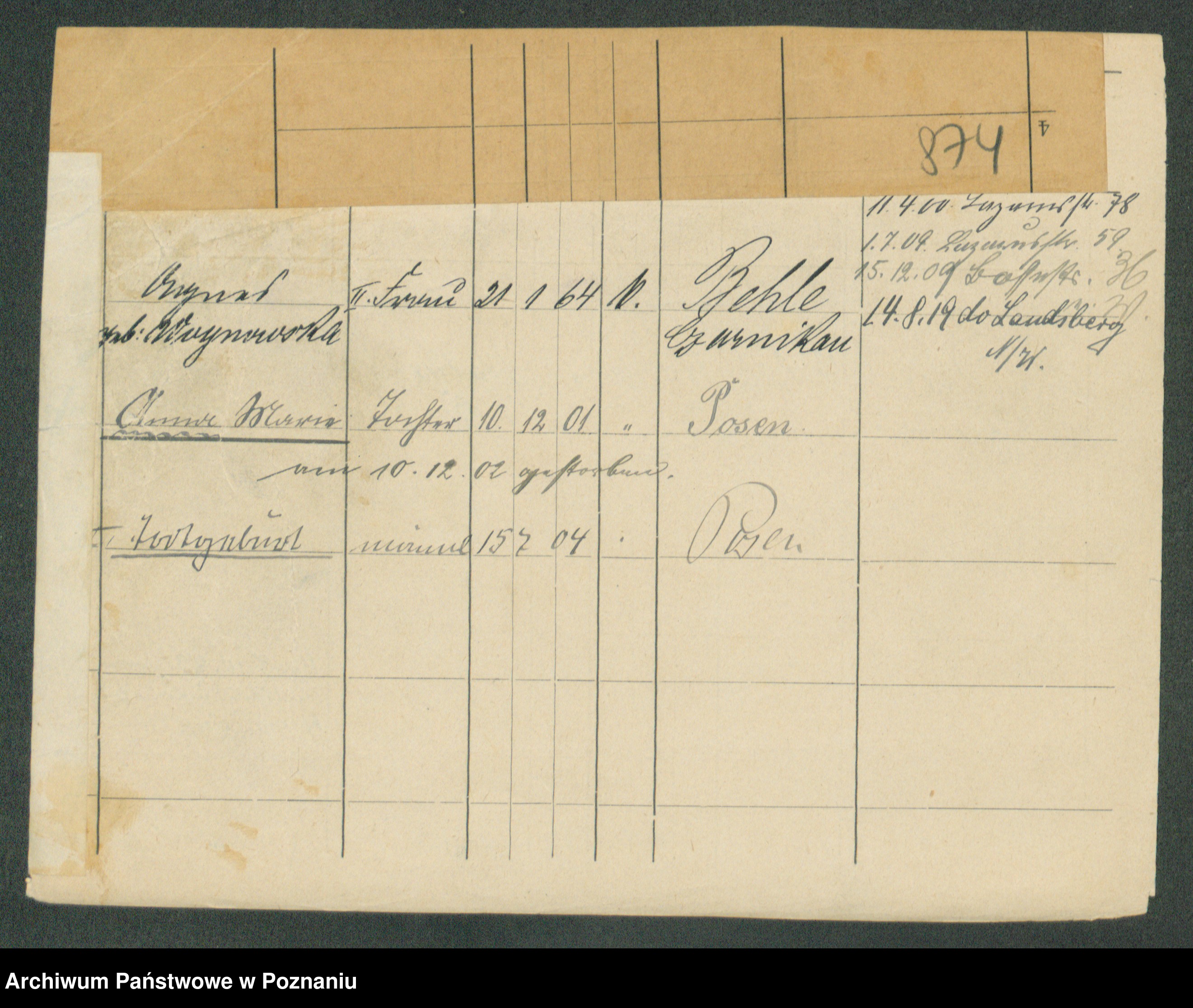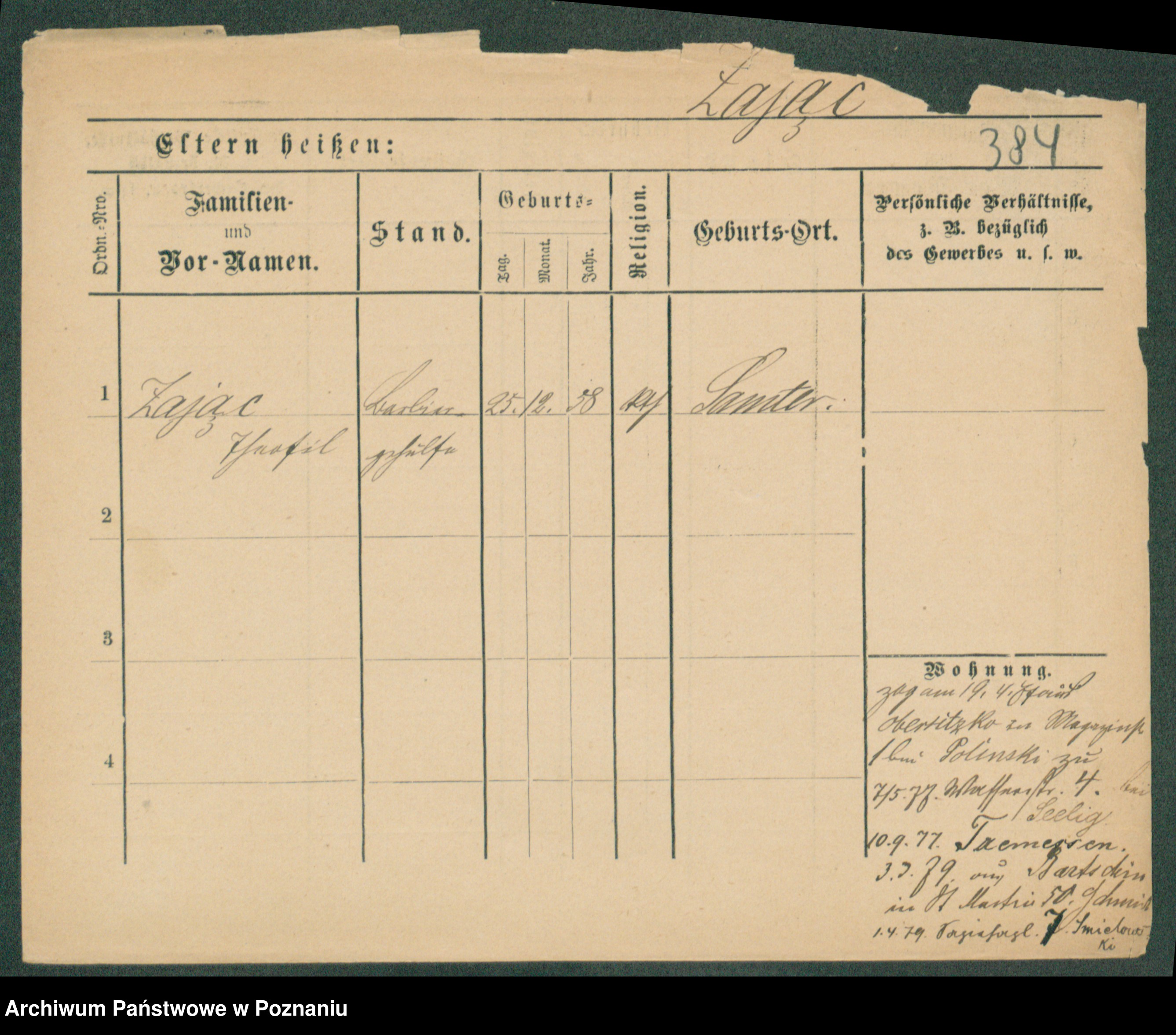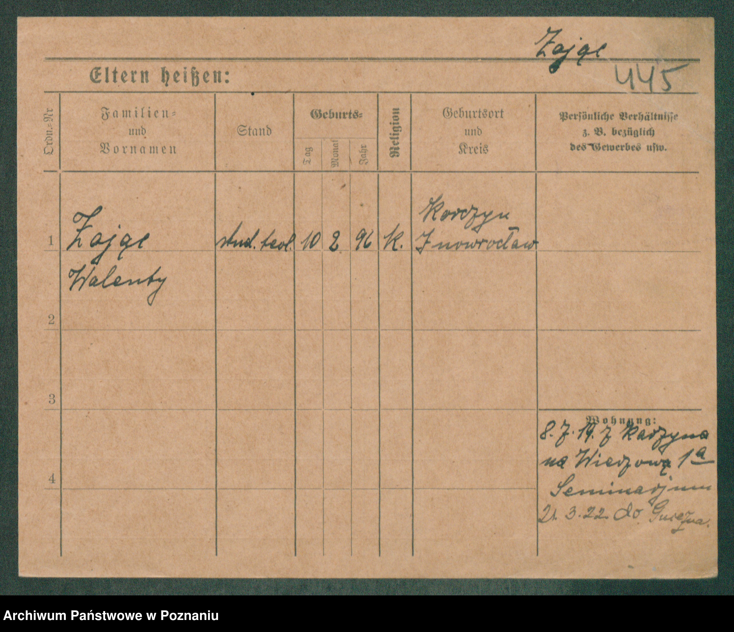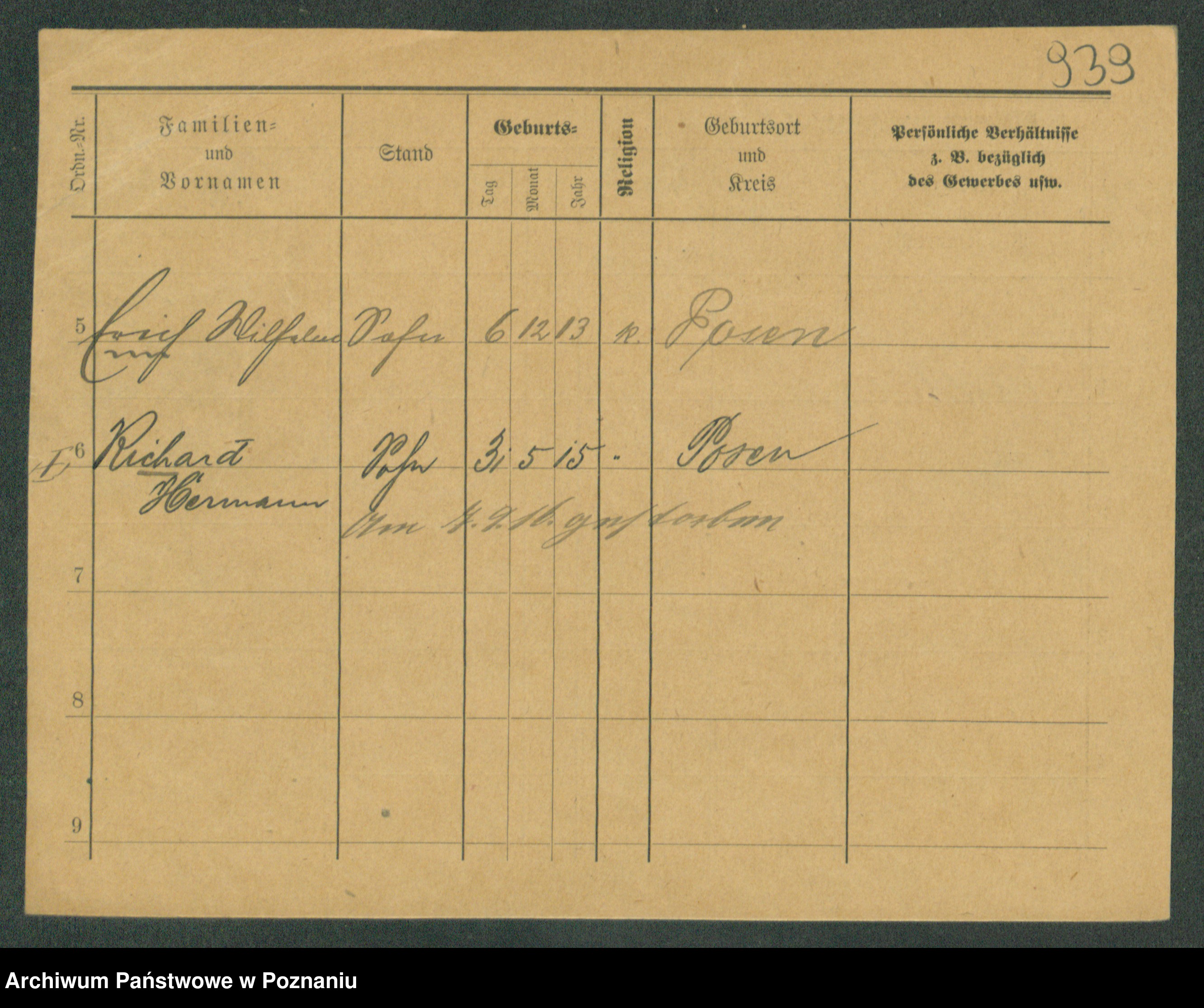 Podgląd karty osobowej dostępny jest po kliknięciu na nazwisko lub ikonkę karty. Można dokonywać powiększenia (ikony na górze) lub przechodzić między kolejnymi skanami (strzałki po bokach).