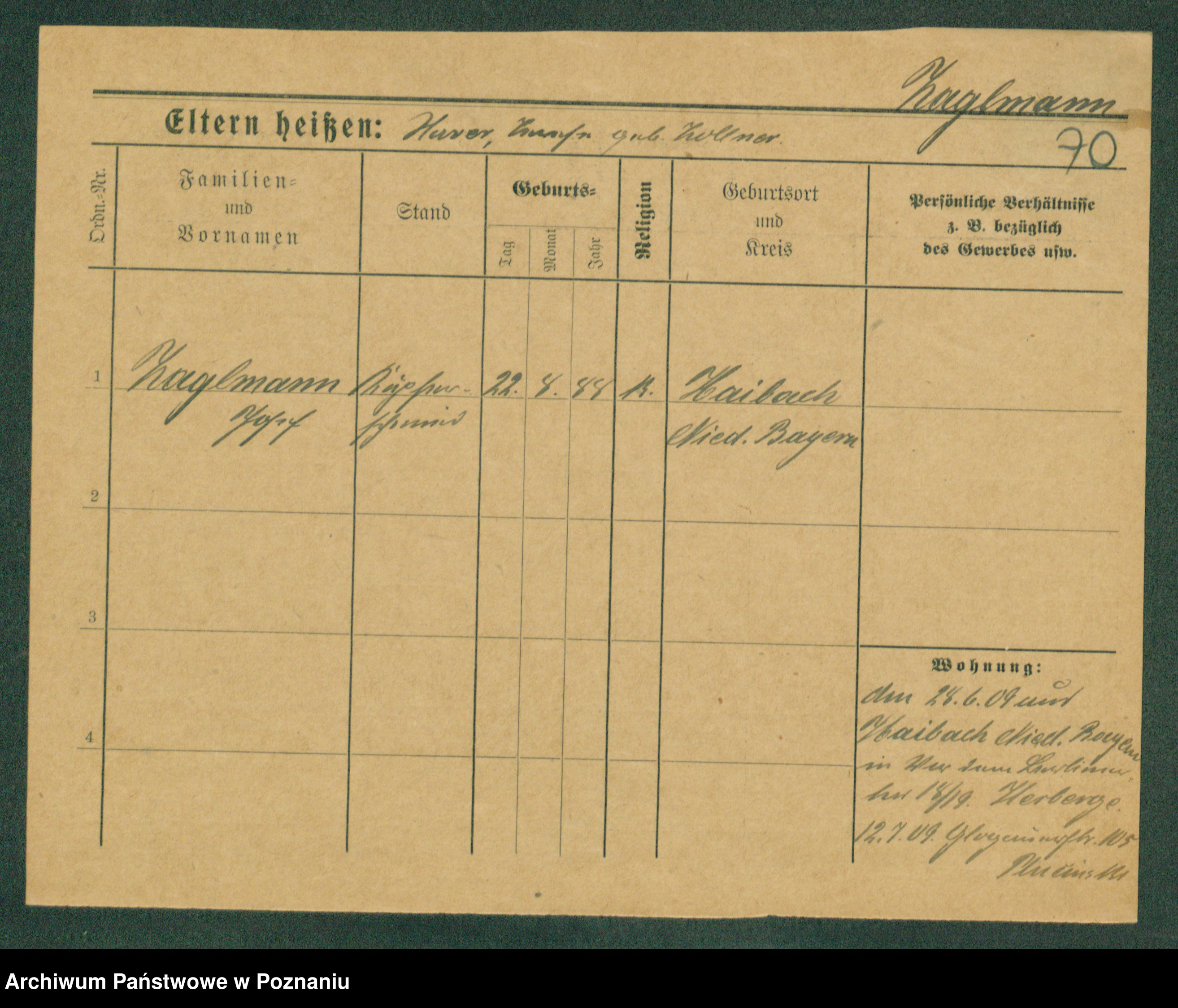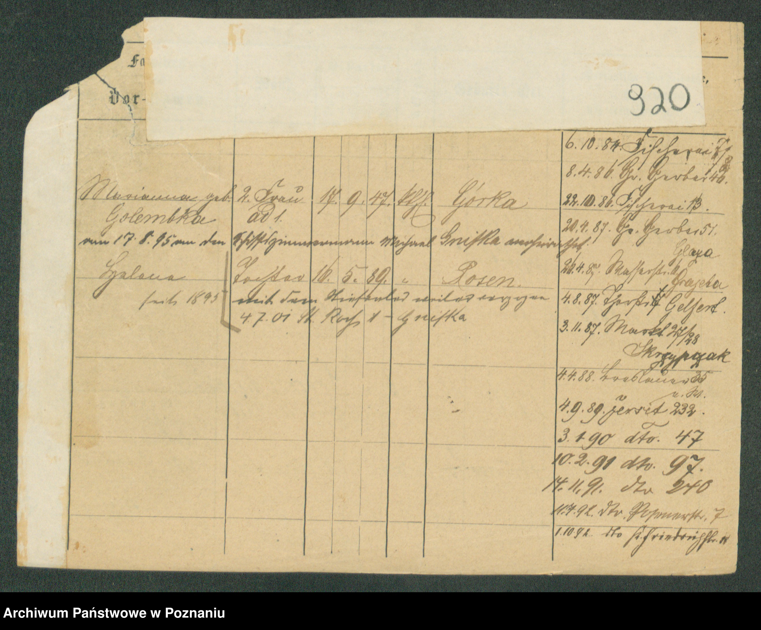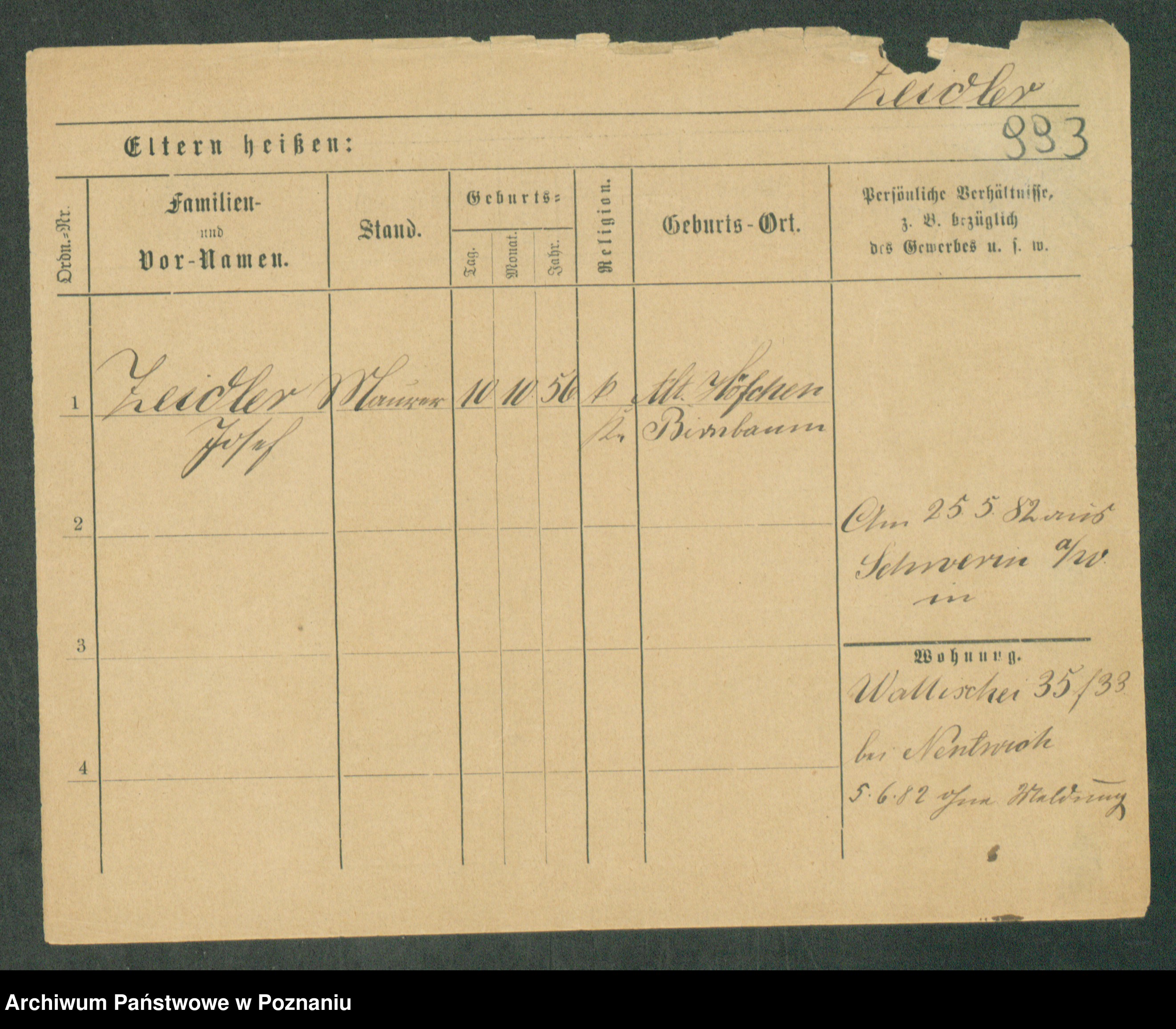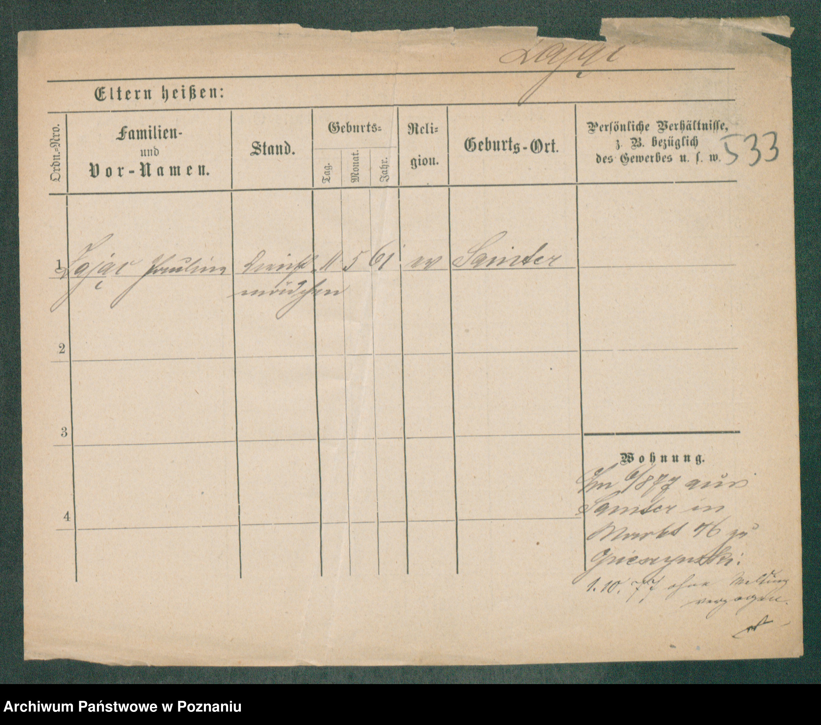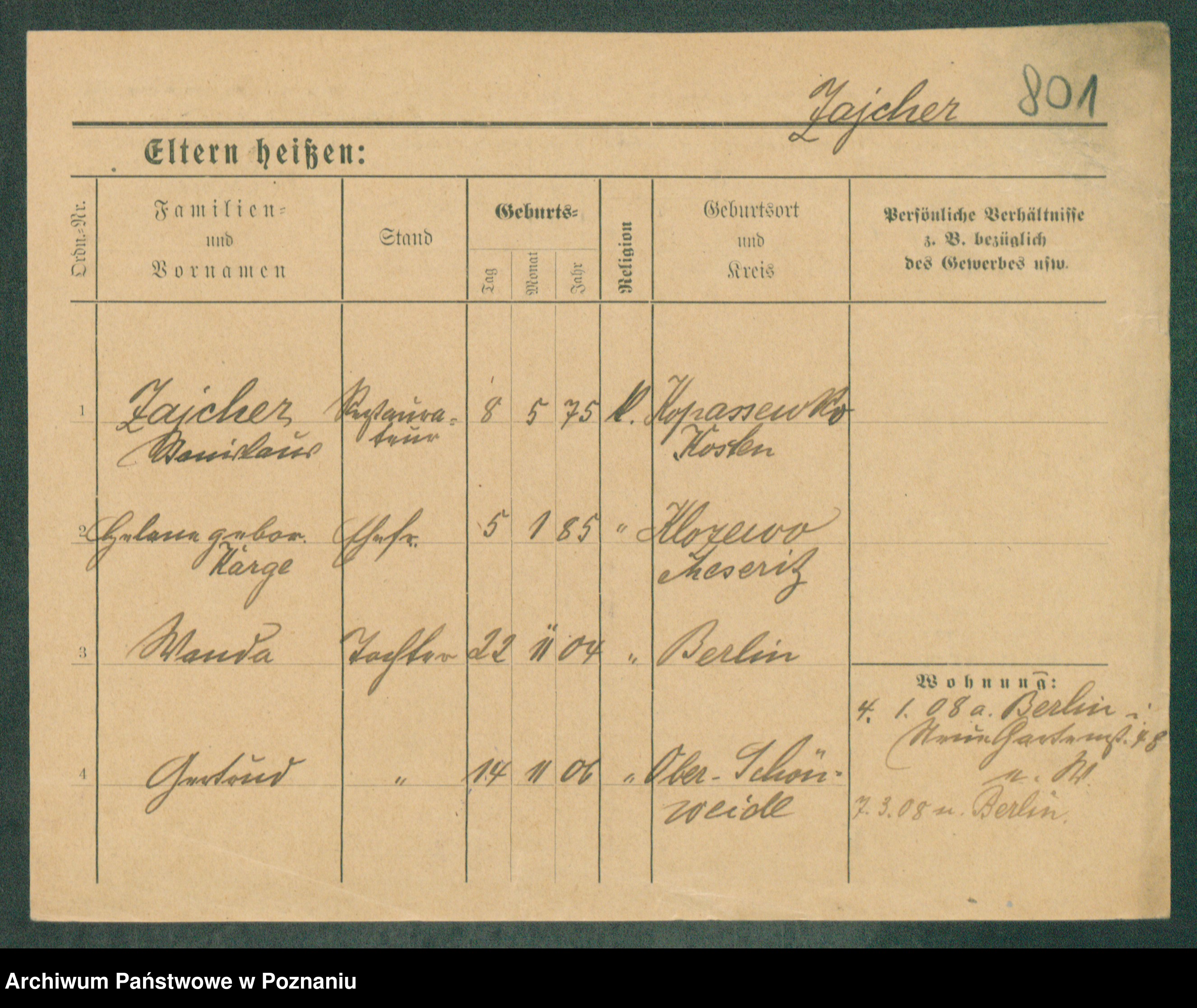 Podgląd karty osobowej dostępny jest po kliknięciu na nazwisko lub ikonkę karty. Można dokonywać powiększenia (ikony na górze) lub przechodzić między kolejnymi skanami (strzałki po bokach).