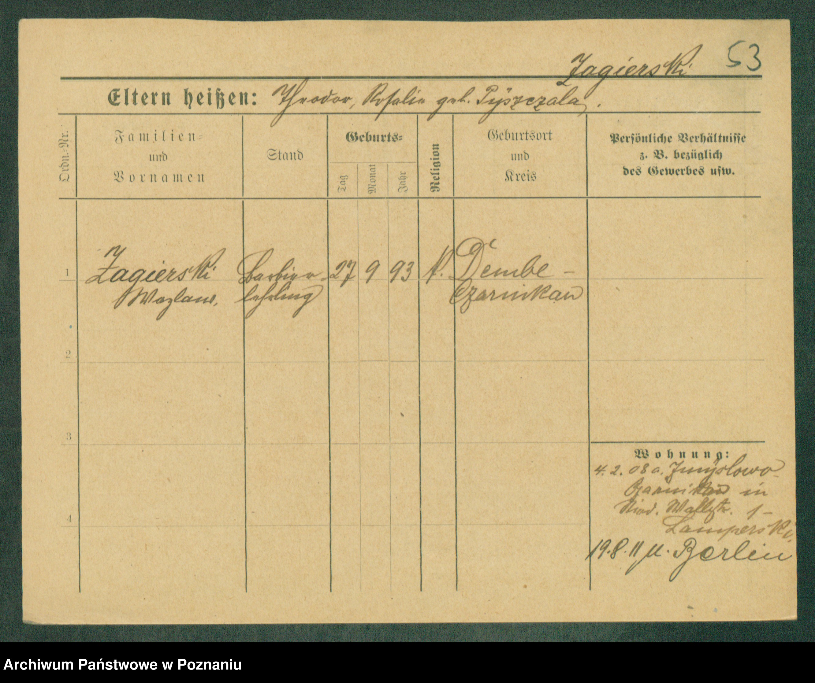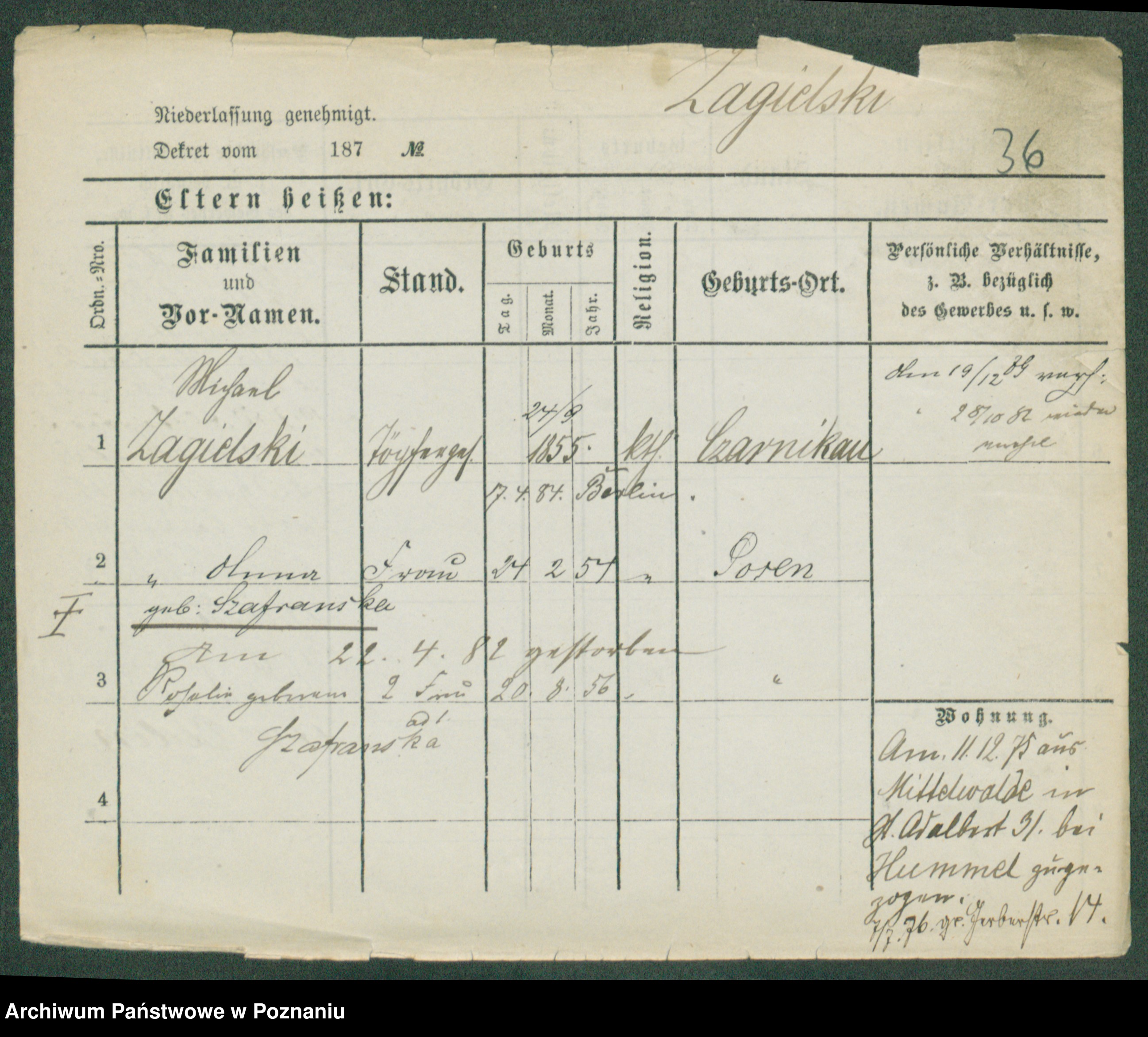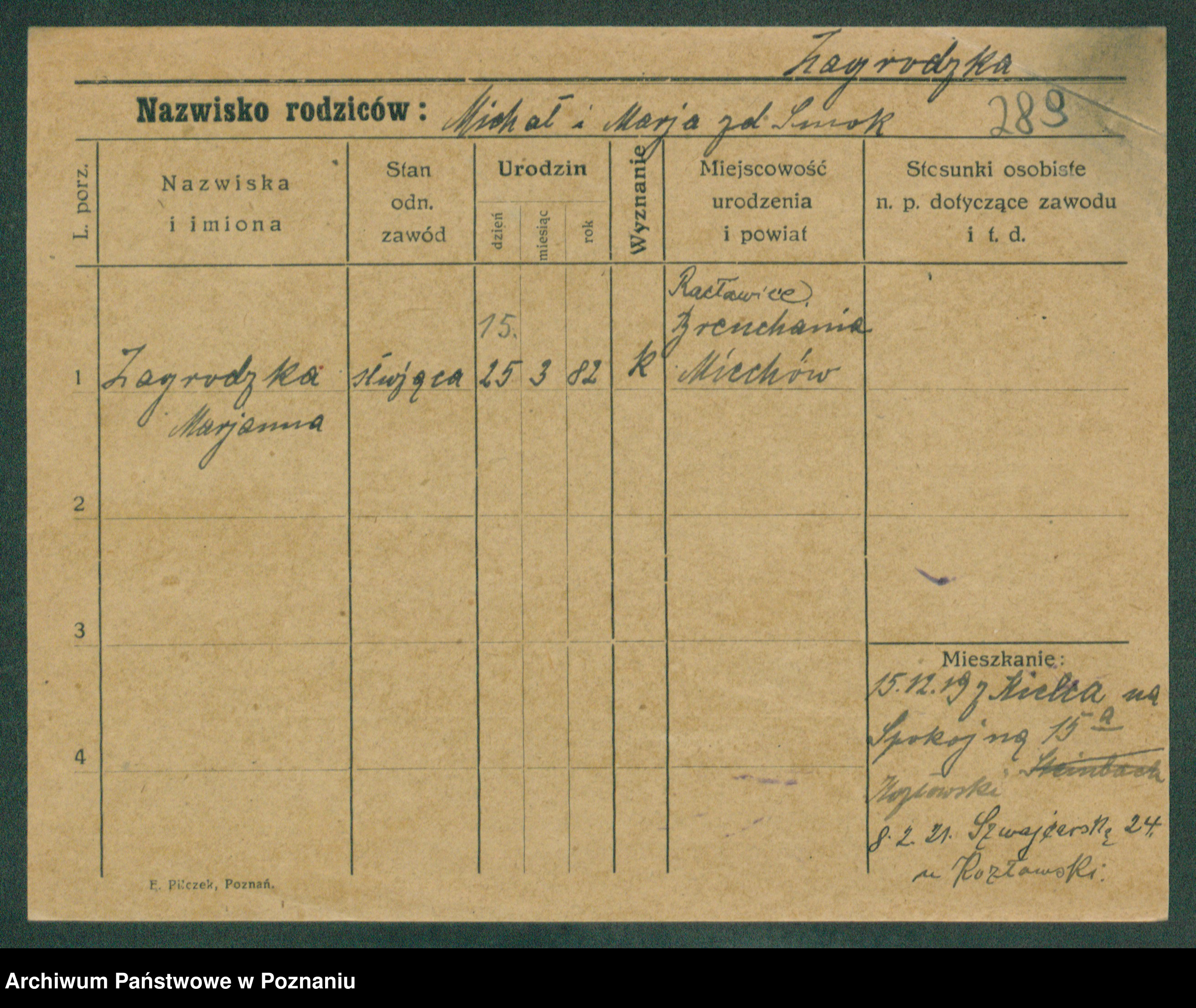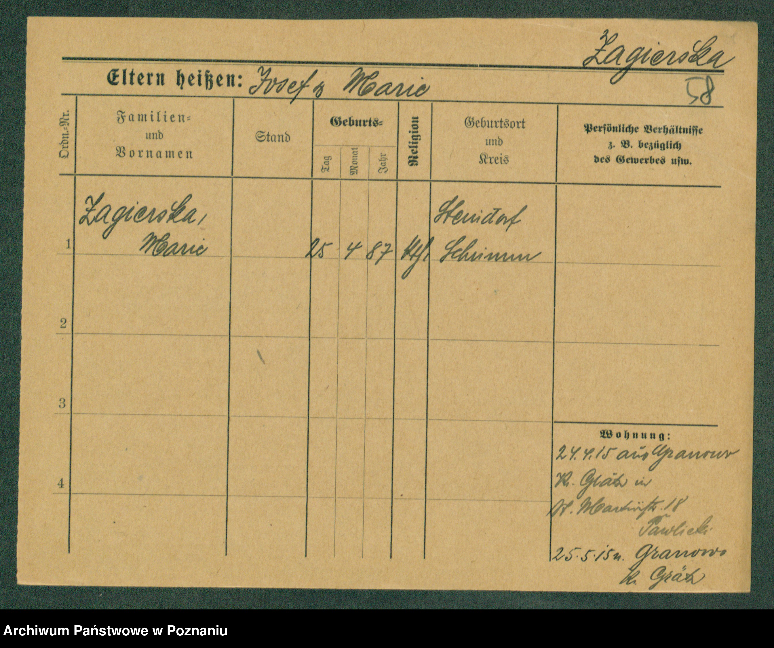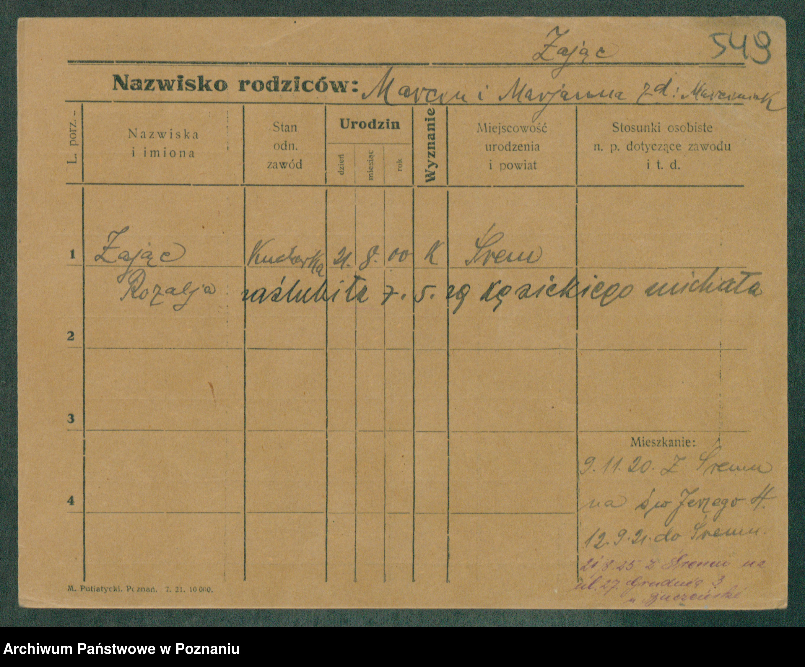 Zagielski z.d. Szafranska, Rosalie