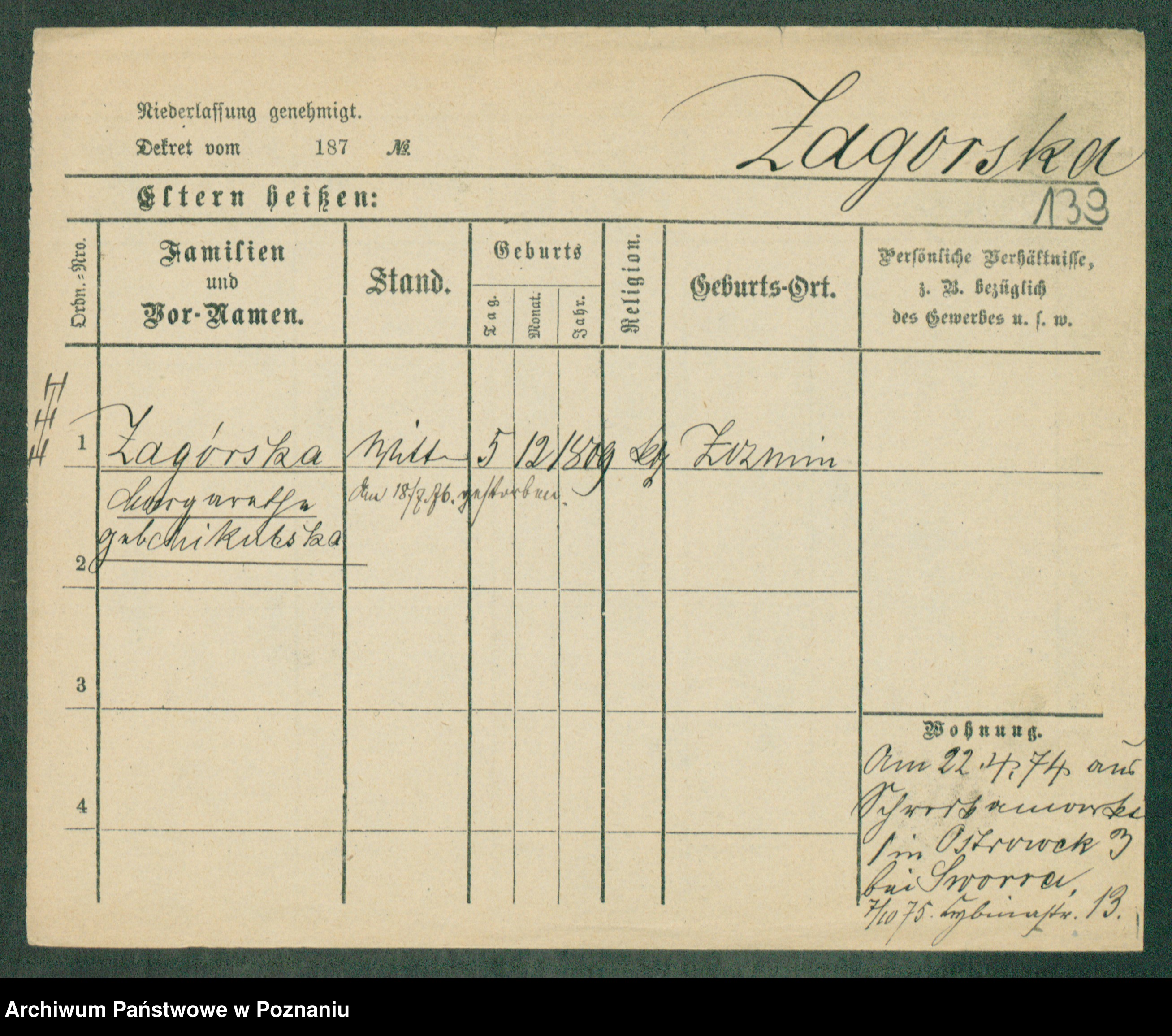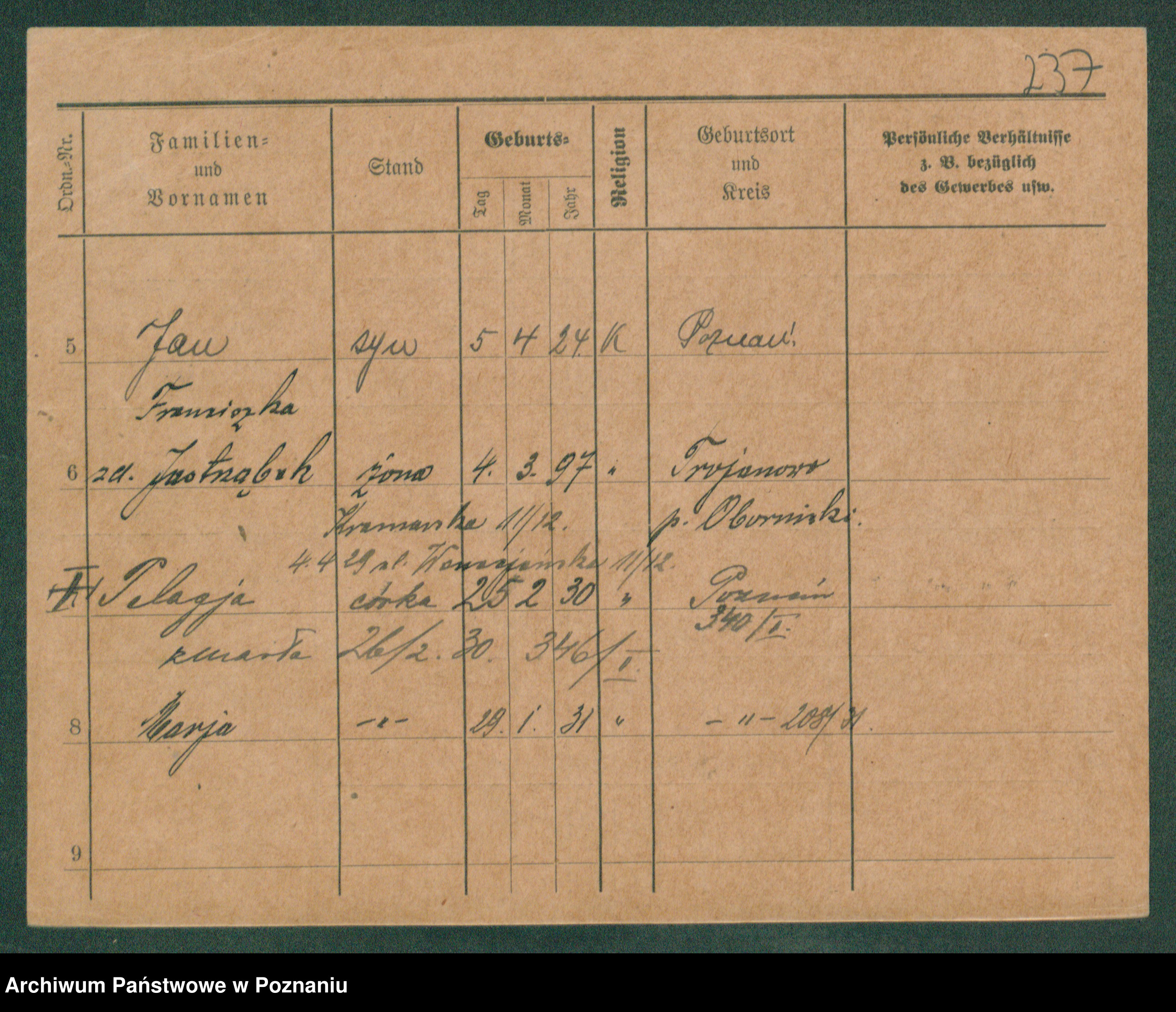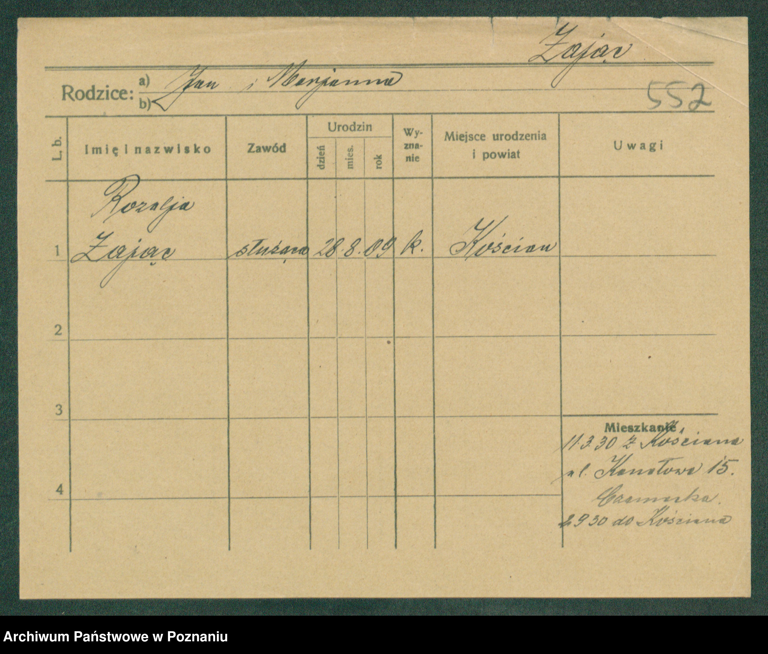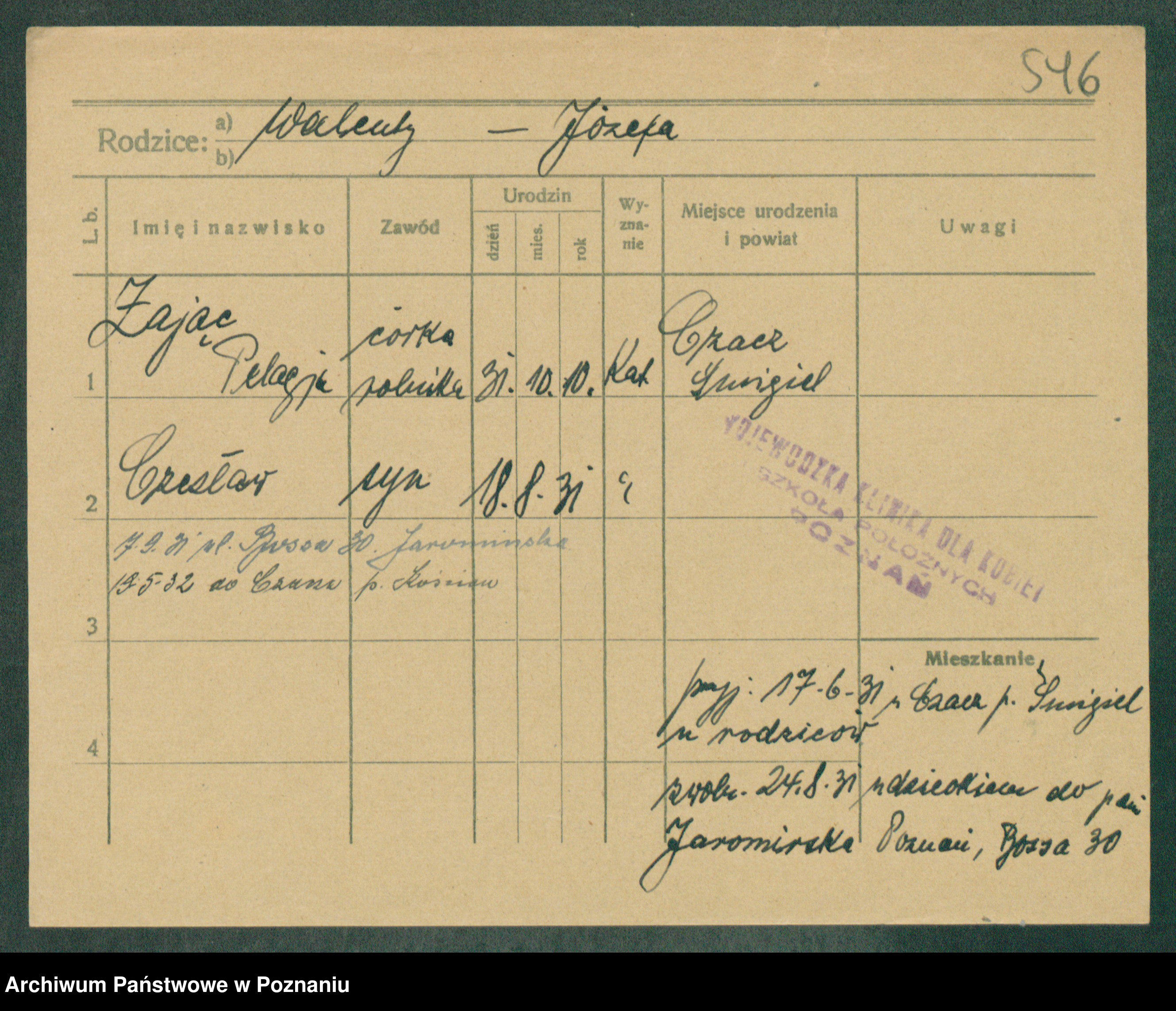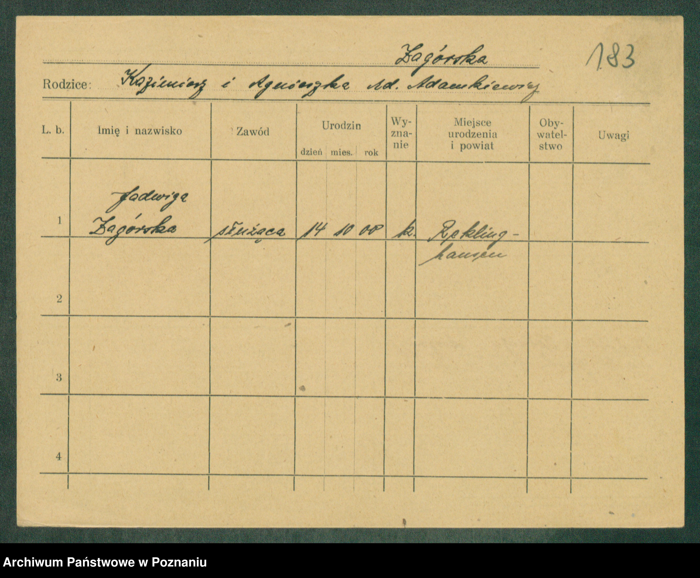 Zagielski z.d. Szafranska, Rosalie