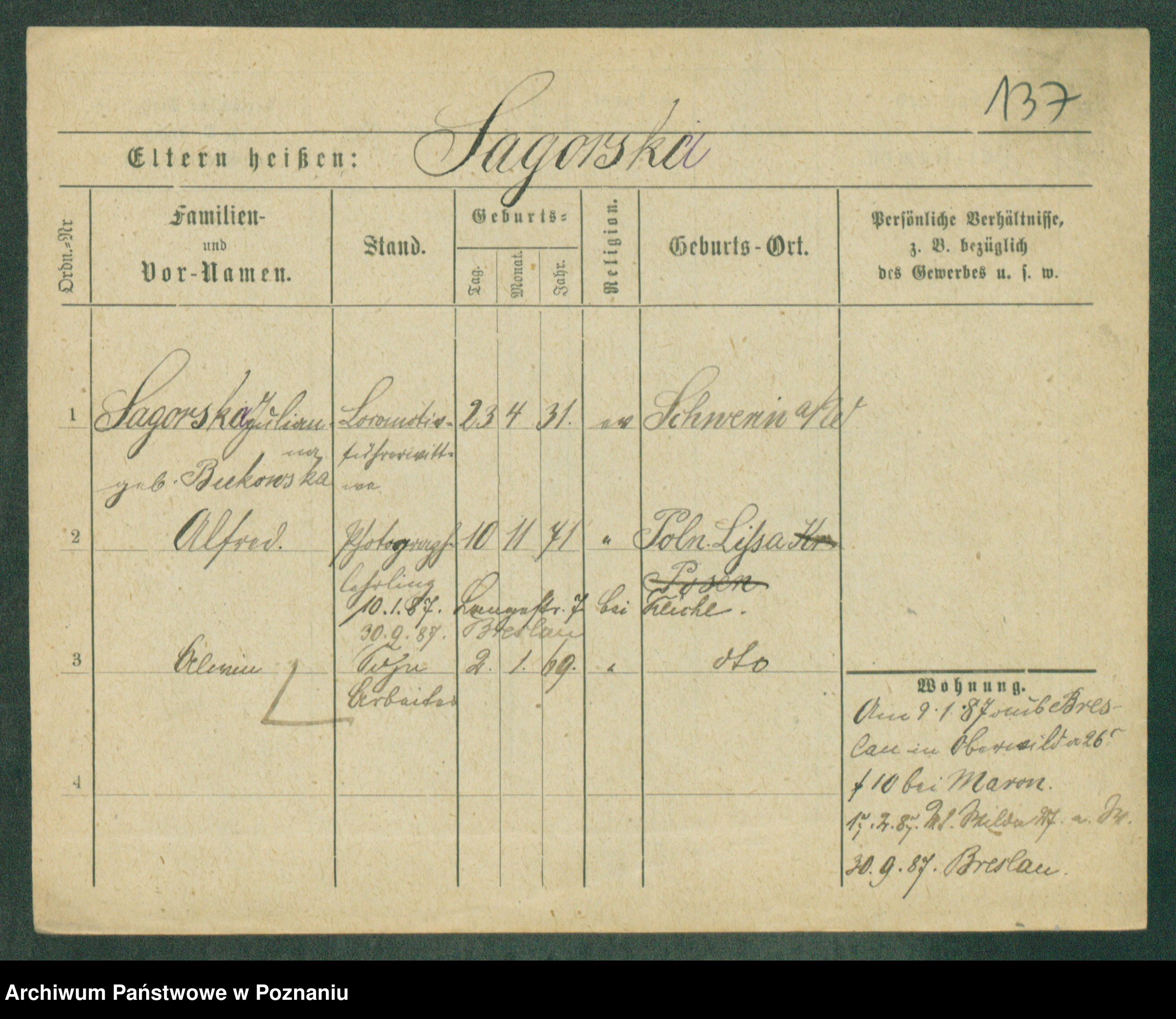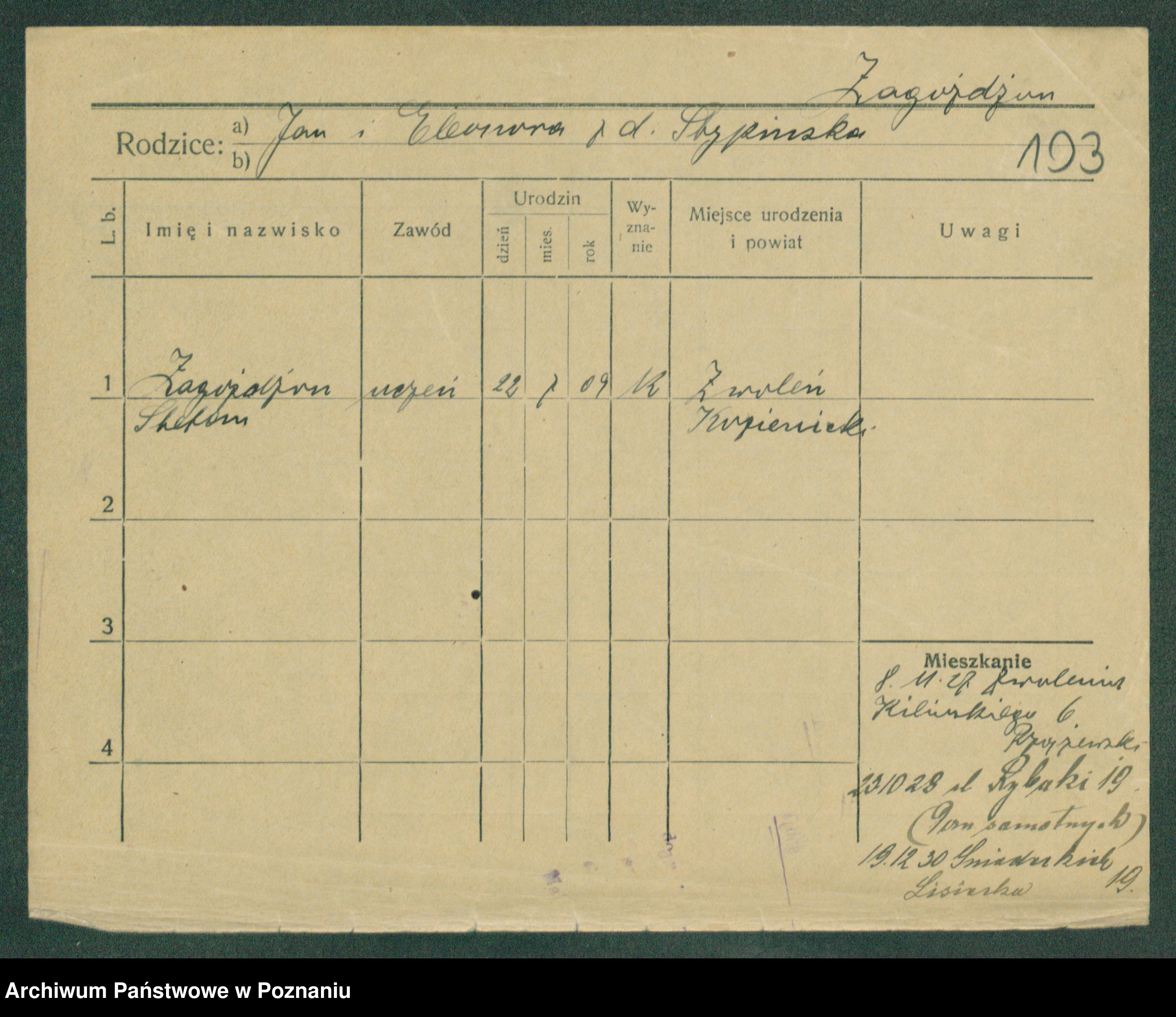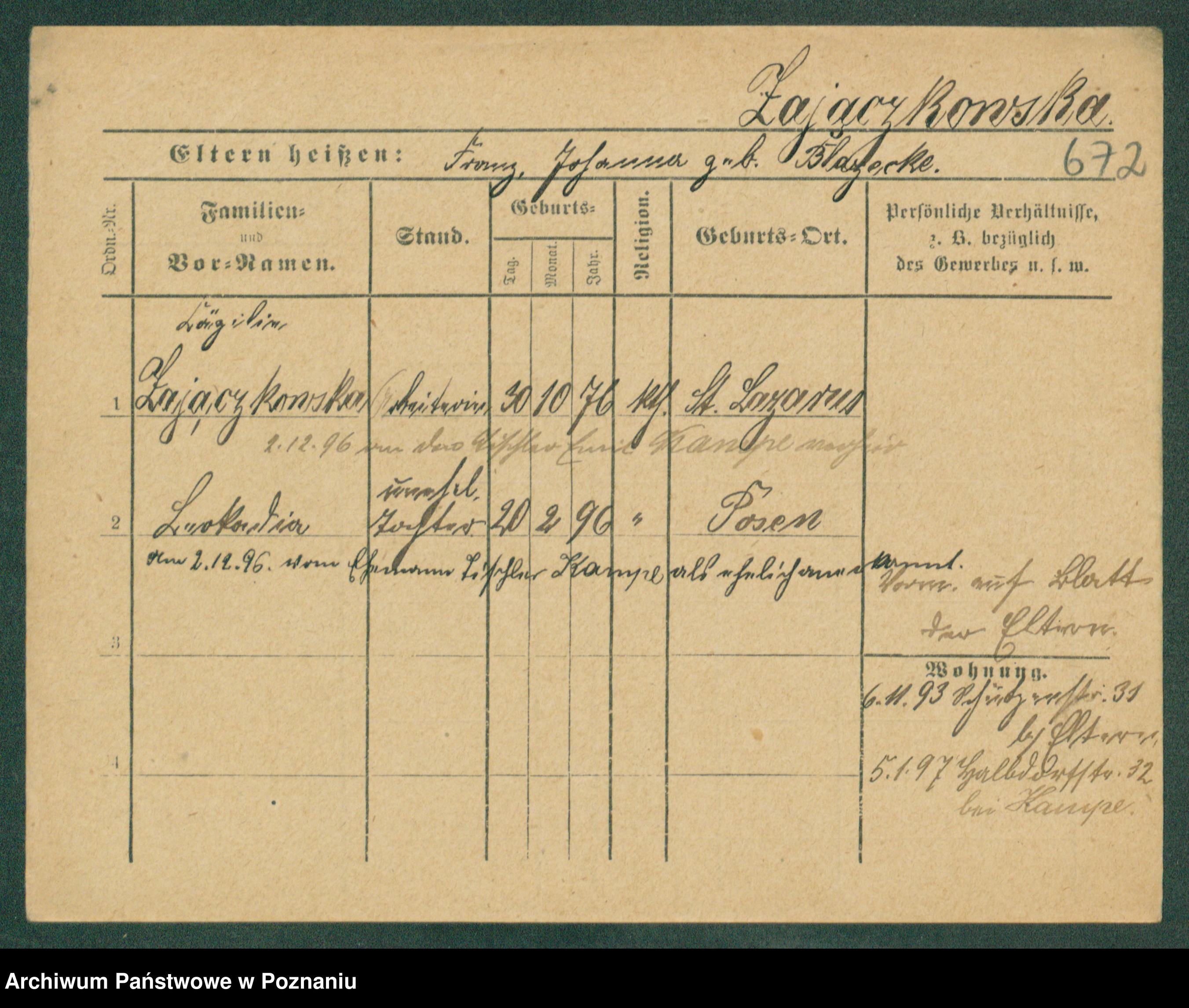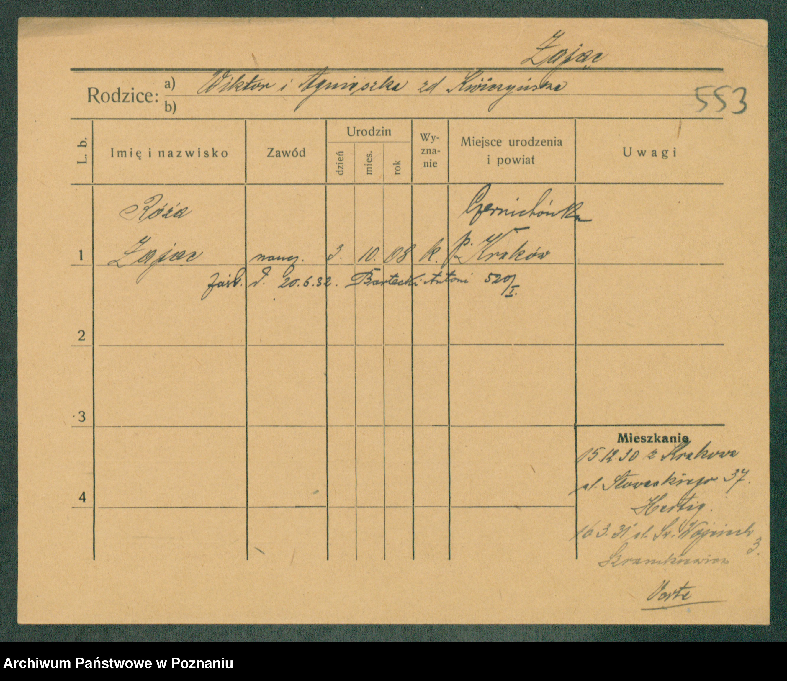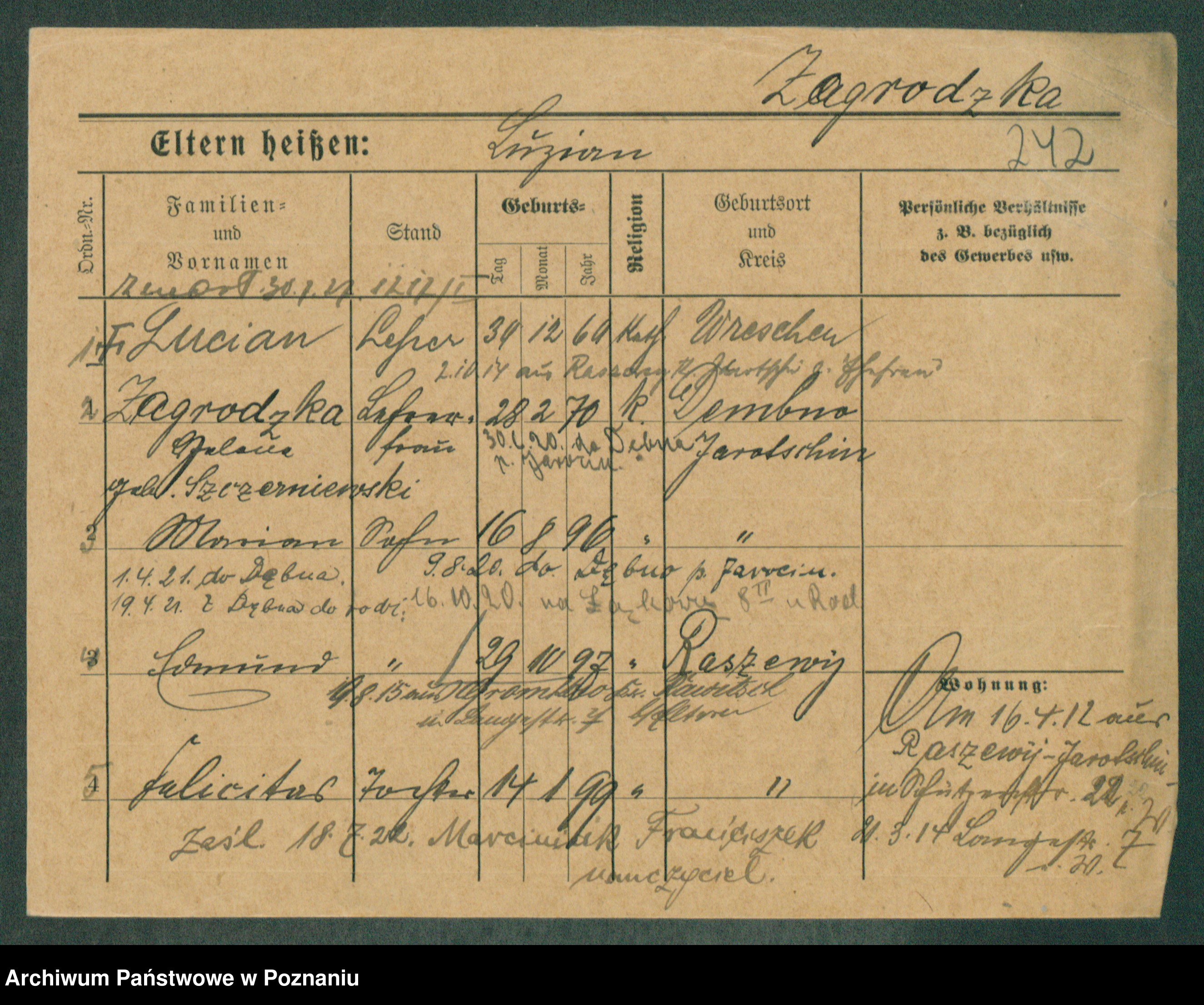 Zagielski z.d. Szafranska, Rosalie