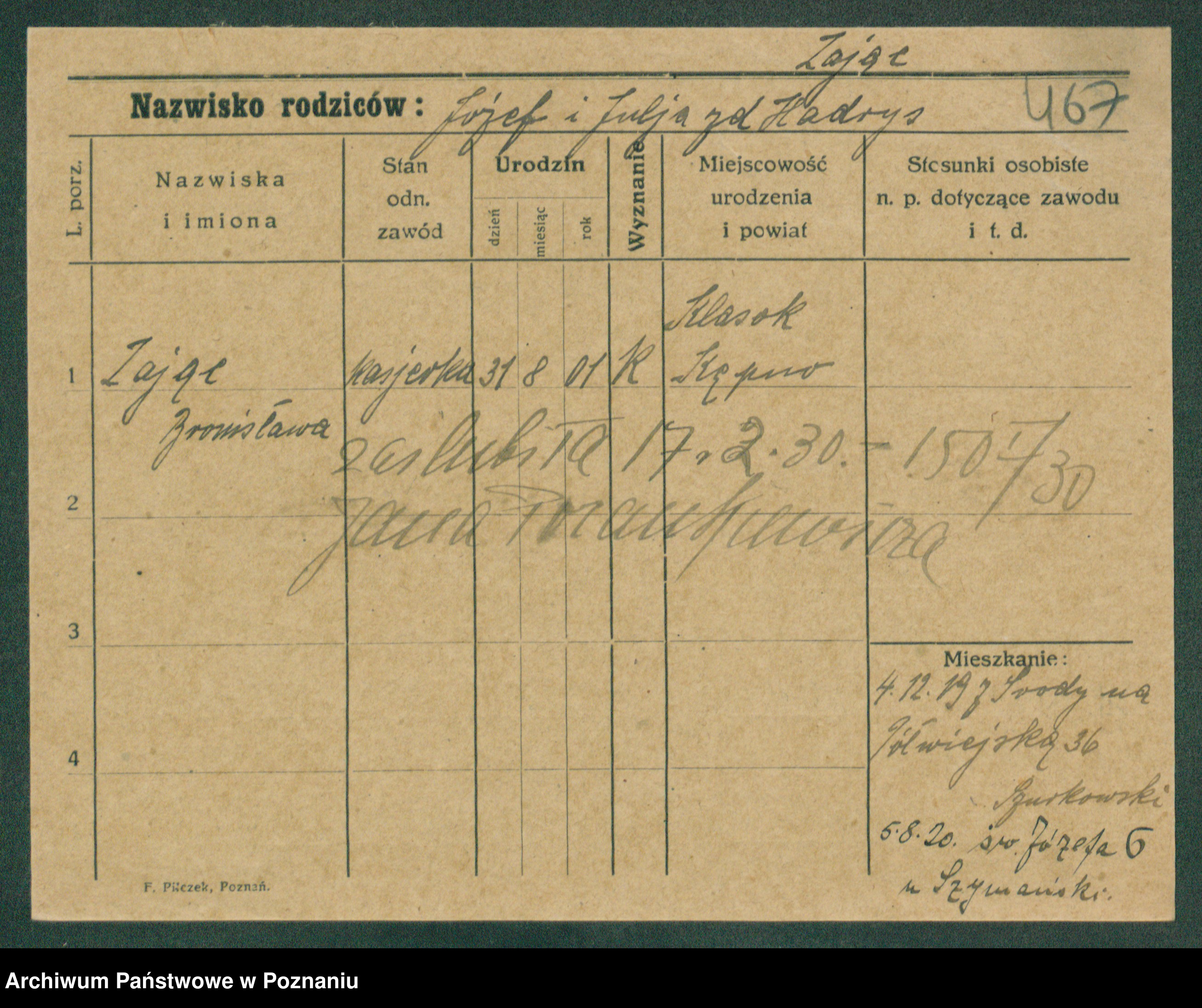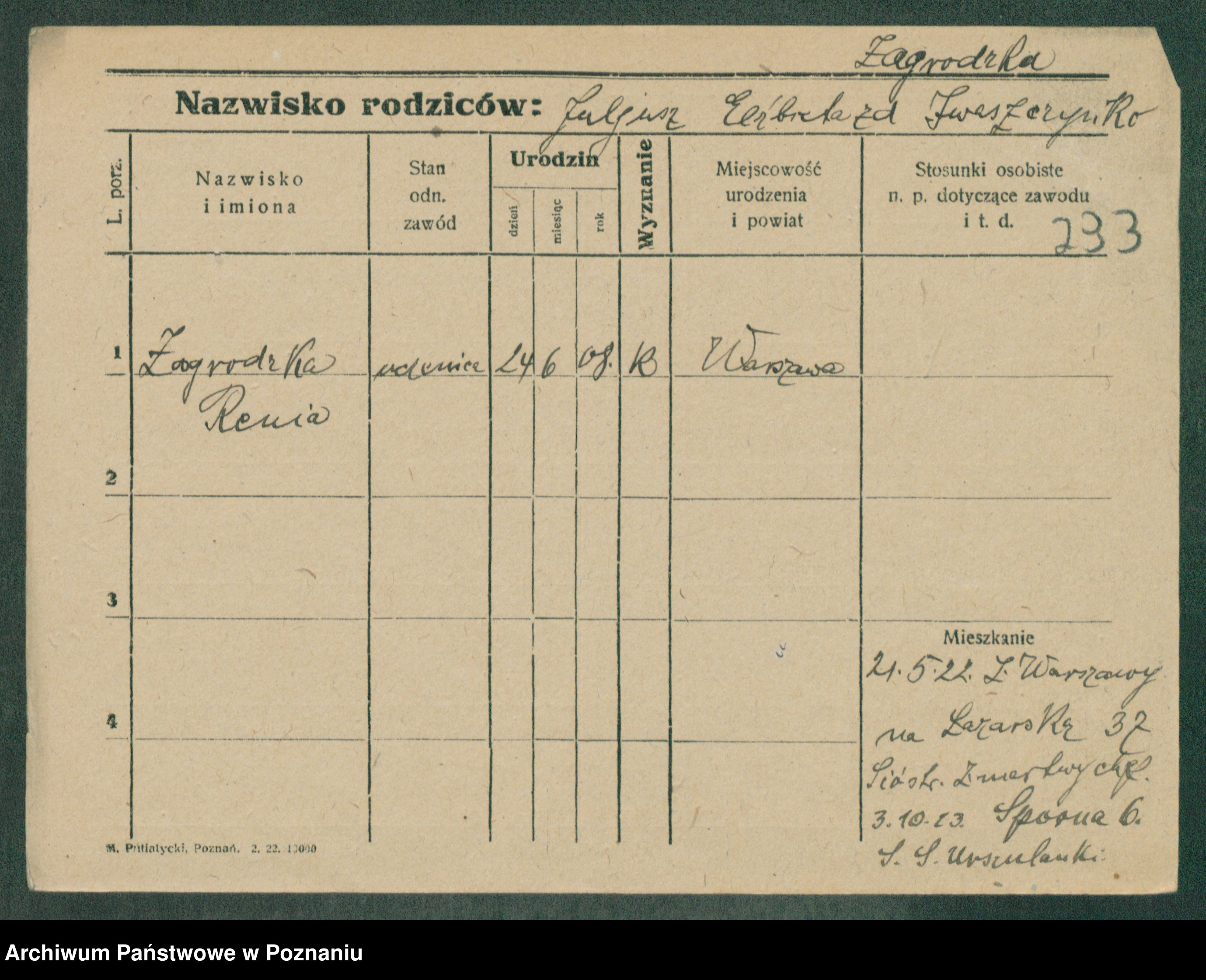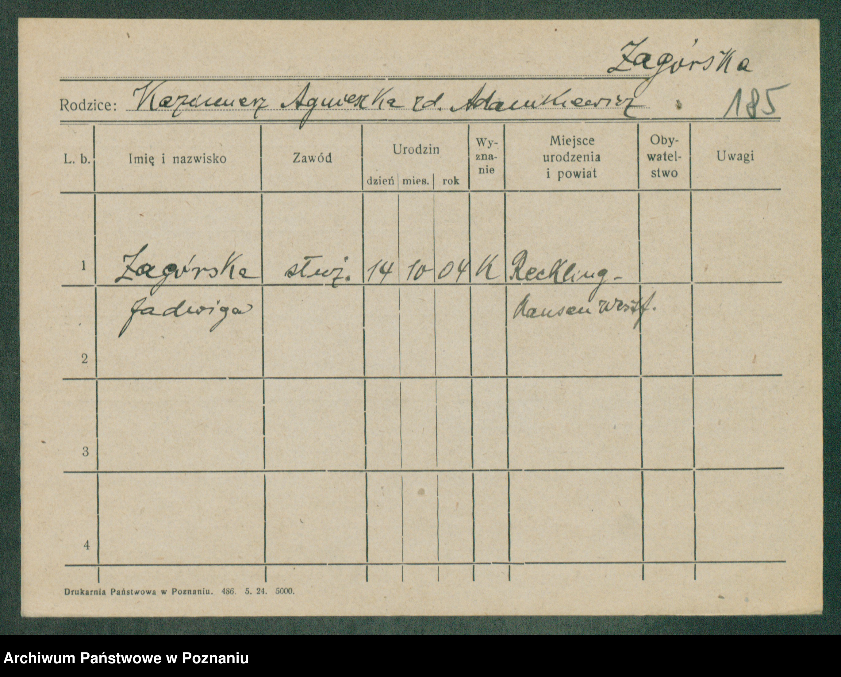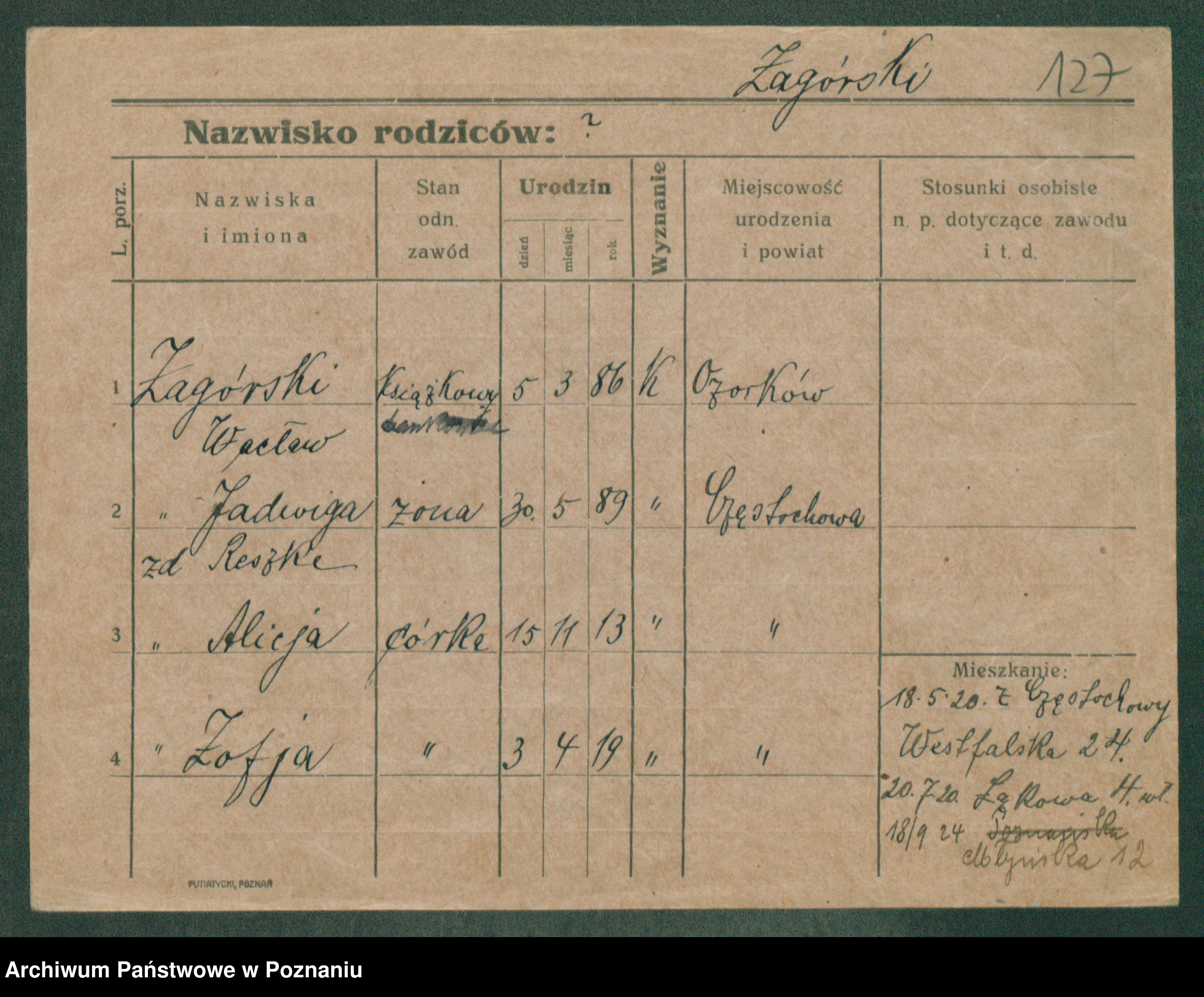 Zagierski, Wanda Wladisl [Wladislawa]