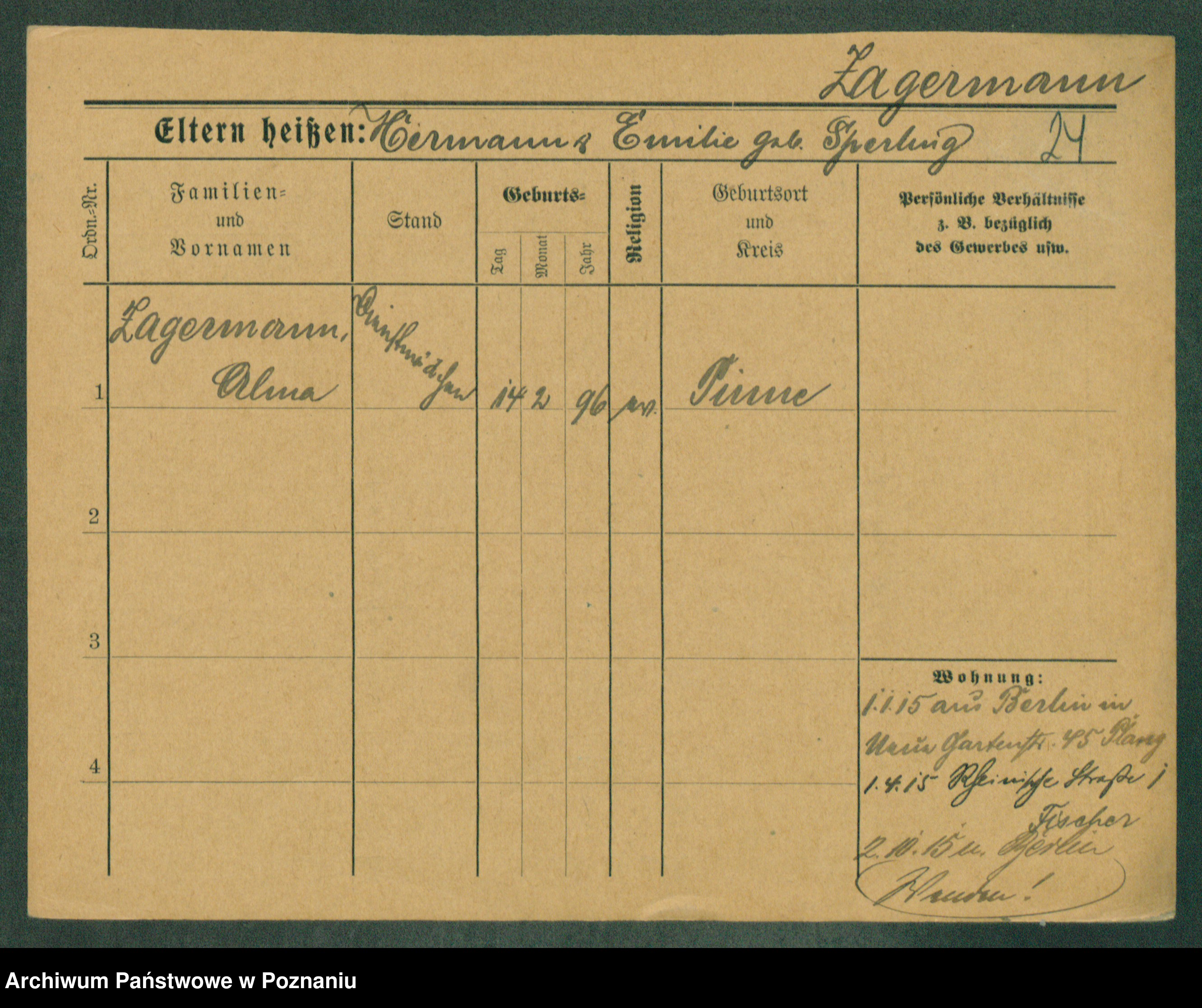 Zagermann, Alma