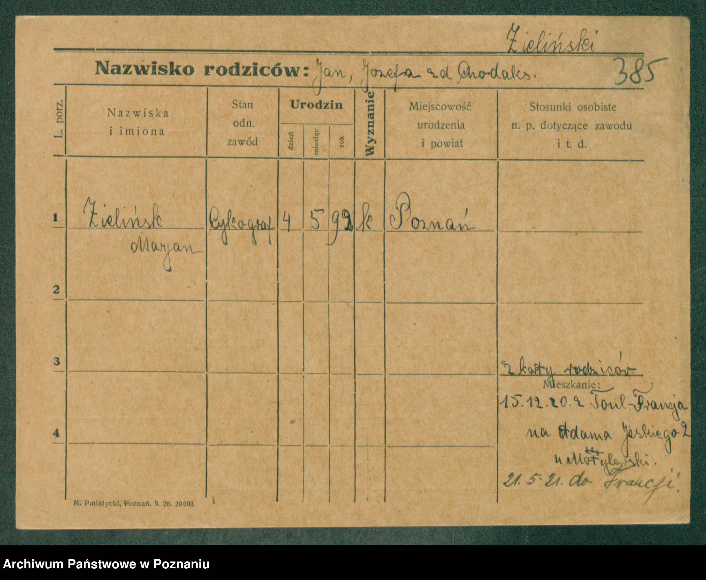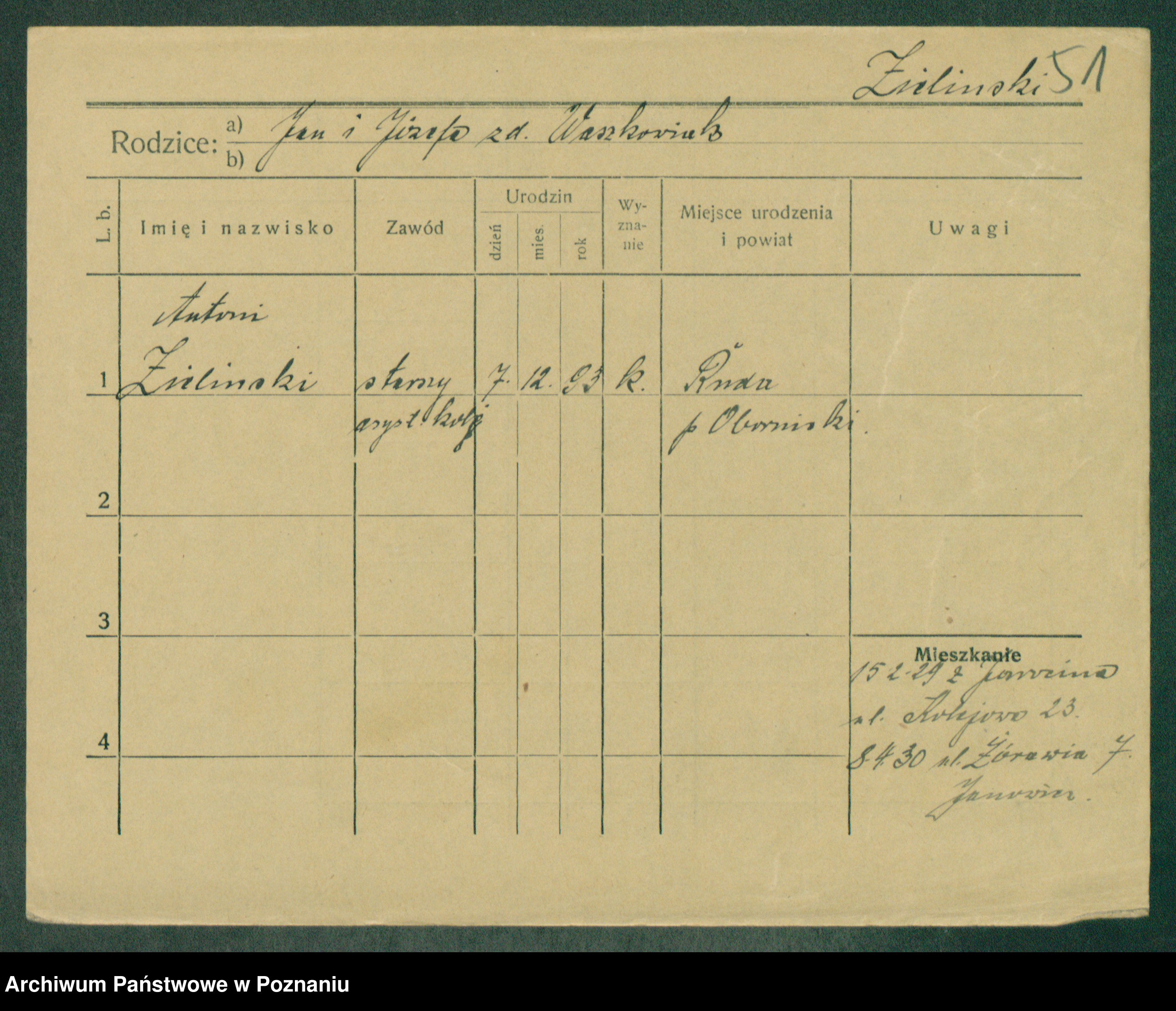 Zielinski, Wincenty