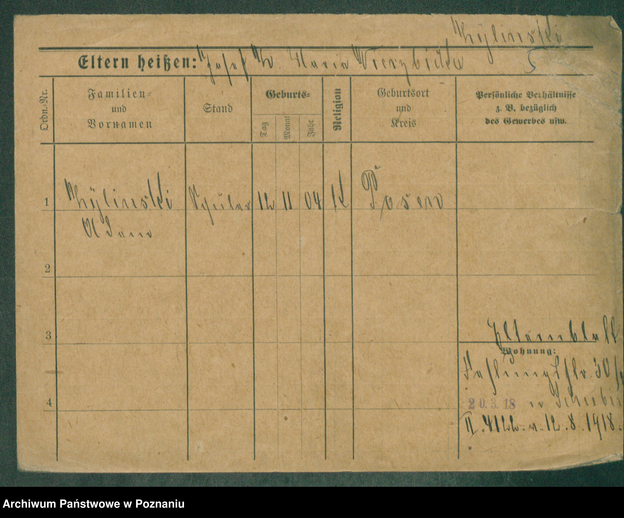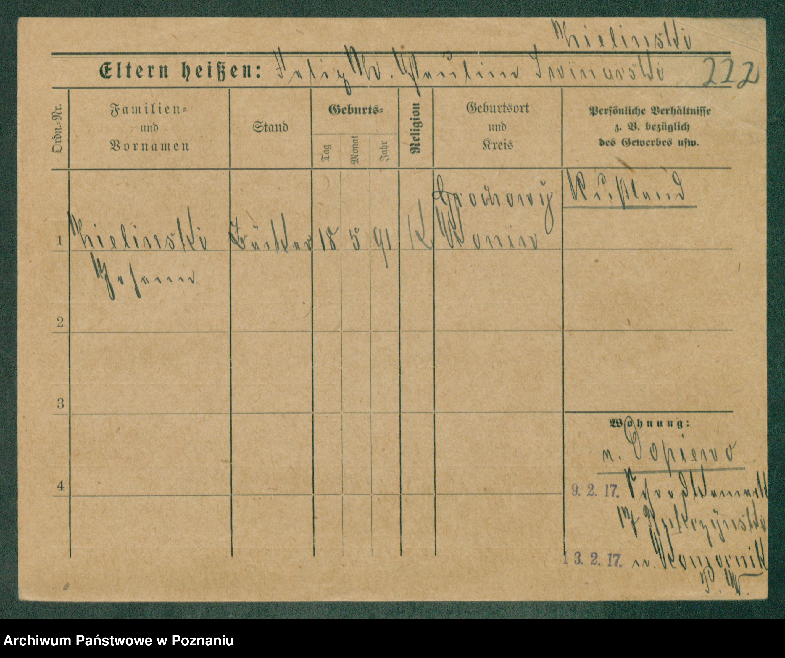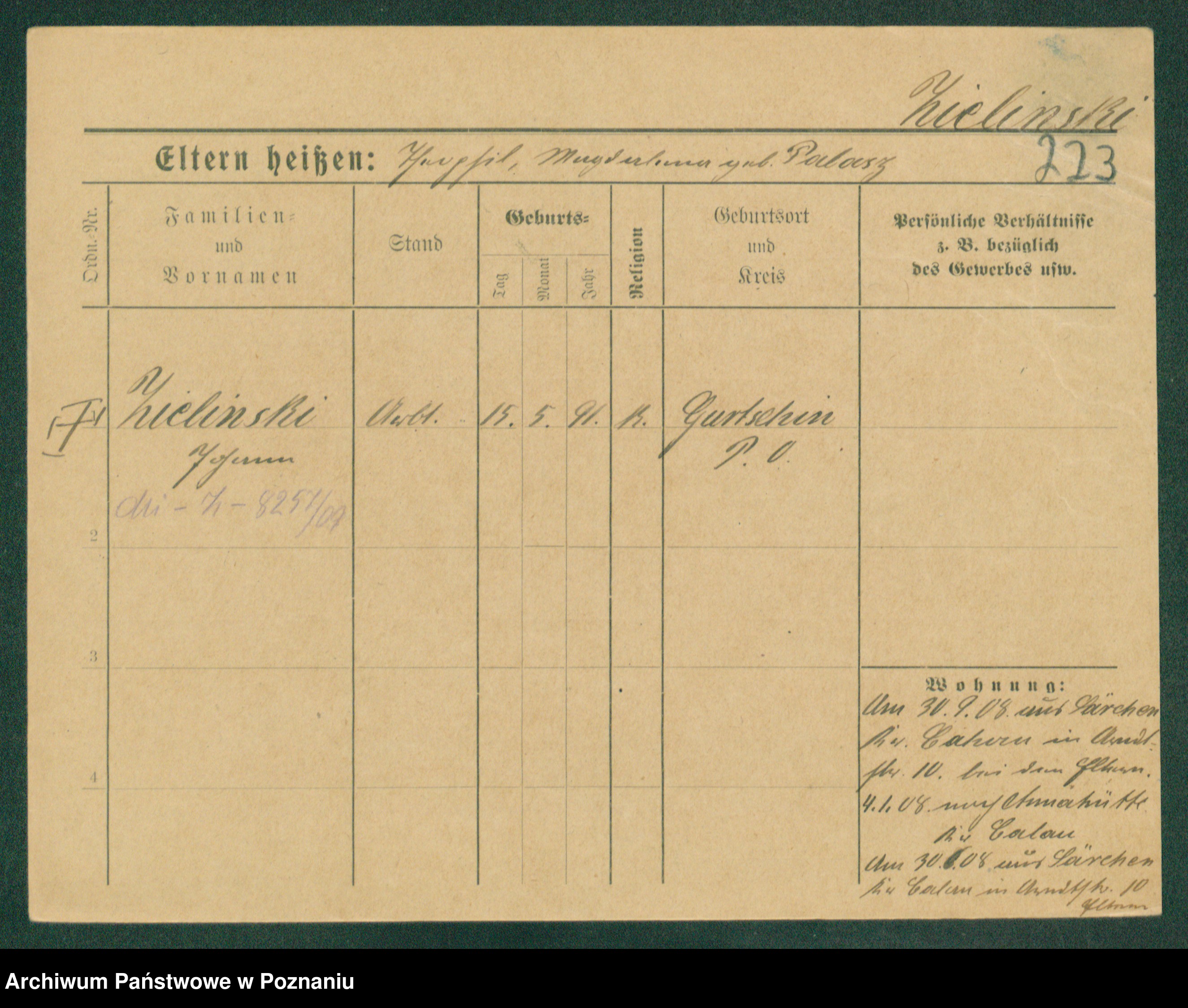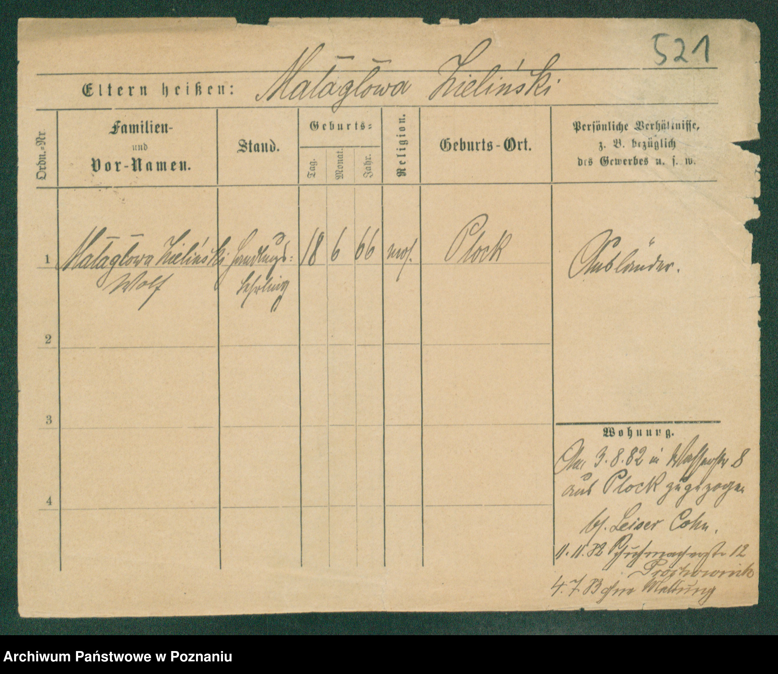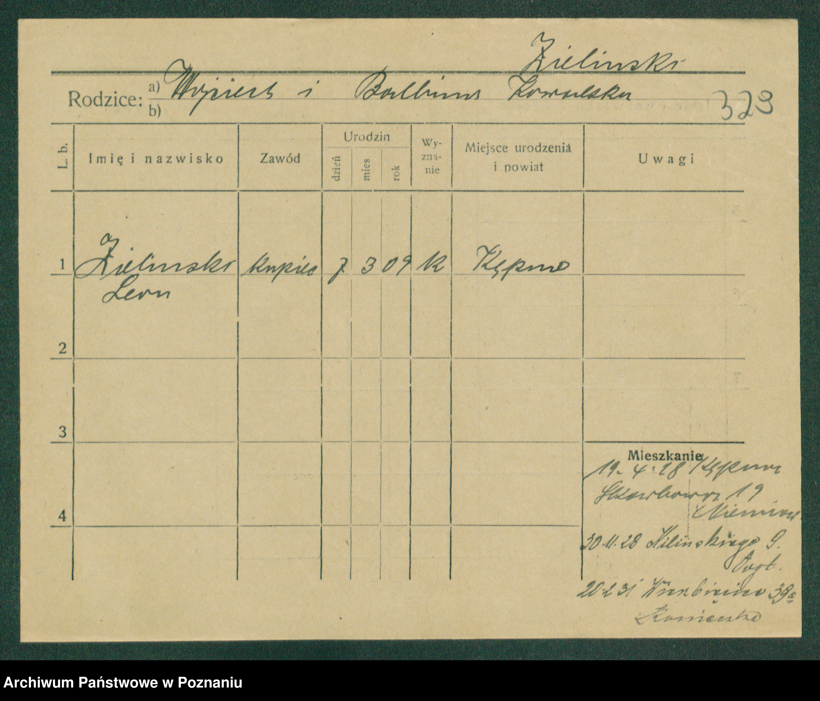 Podgląd karty osobowej dostępny jest po kliknięciu na nazwisko lub ikonkę karty. Można dokonywać powiększenia (ikony na górze) lub przechodzić między kolejnymi skanami (strzałki po bokach).