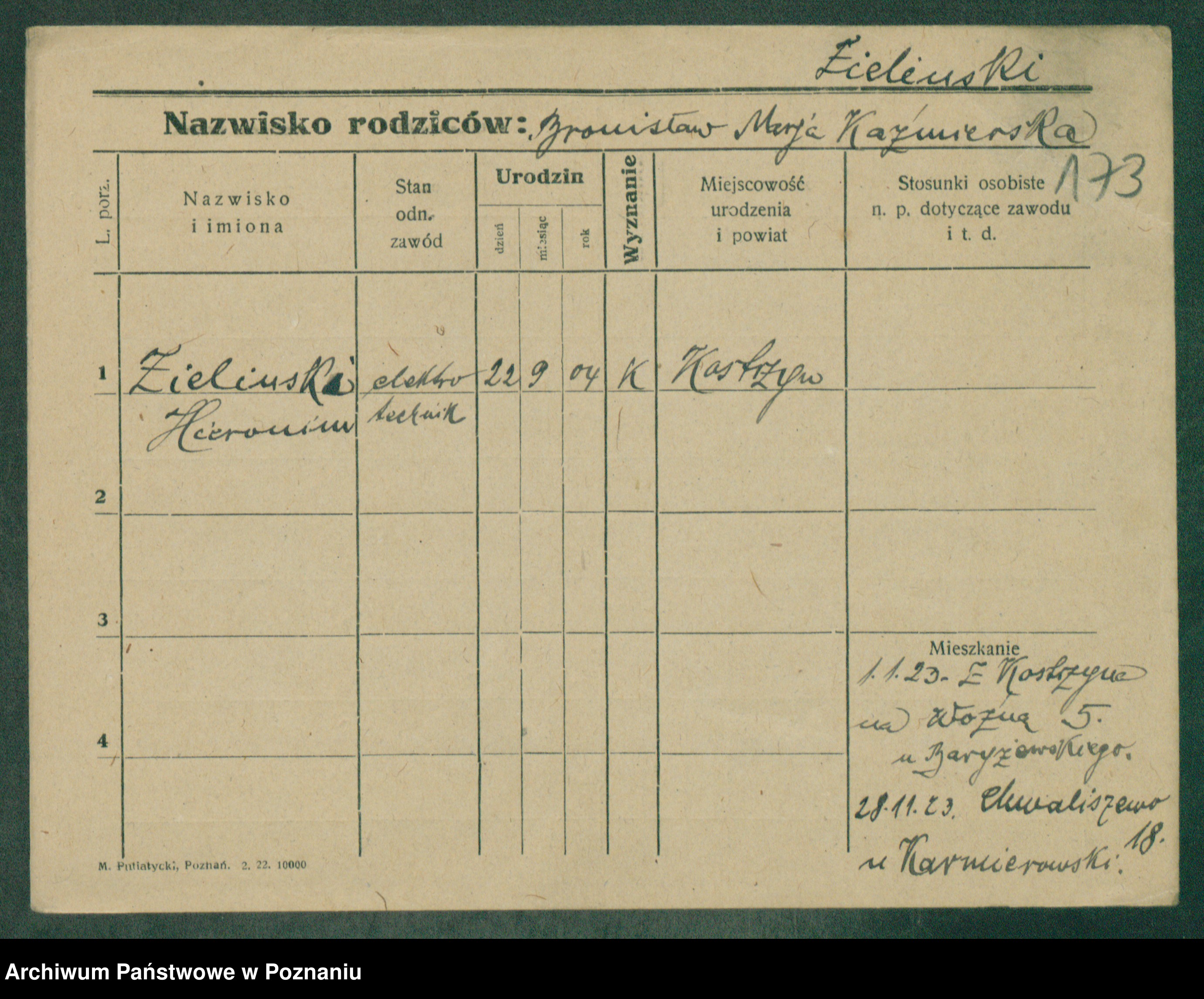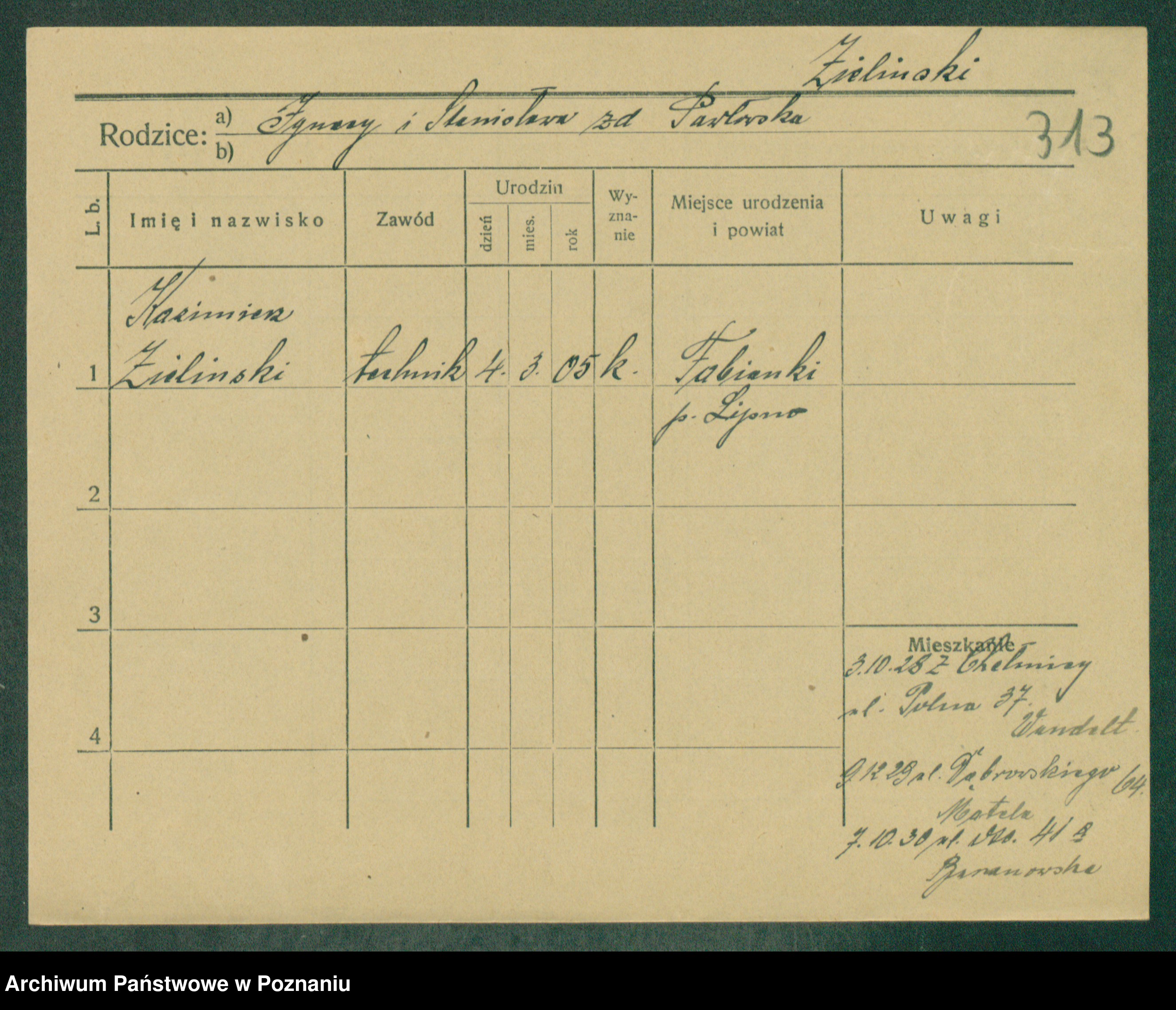 Zielinski, Adam Kasimir