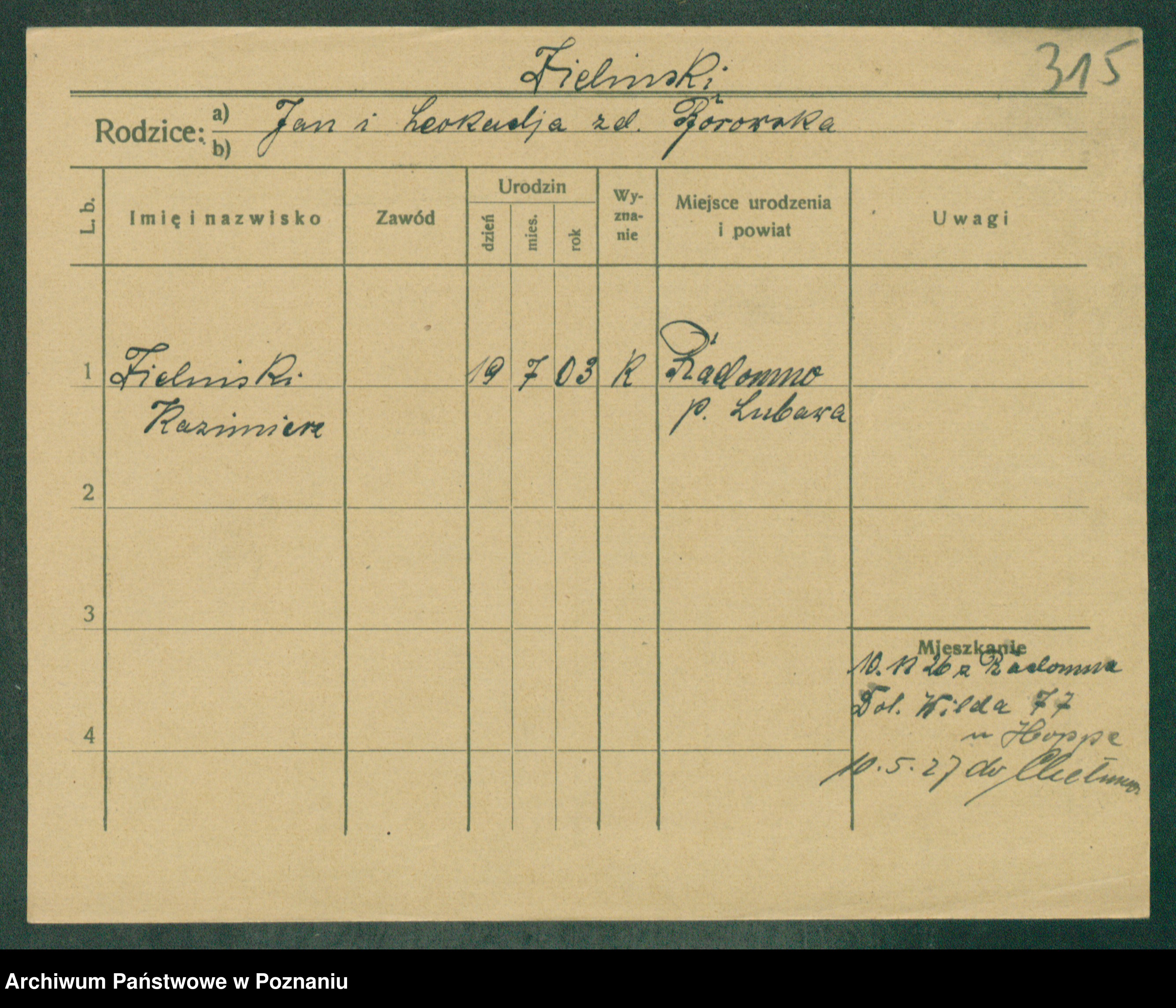 Zielinski, Alojzy