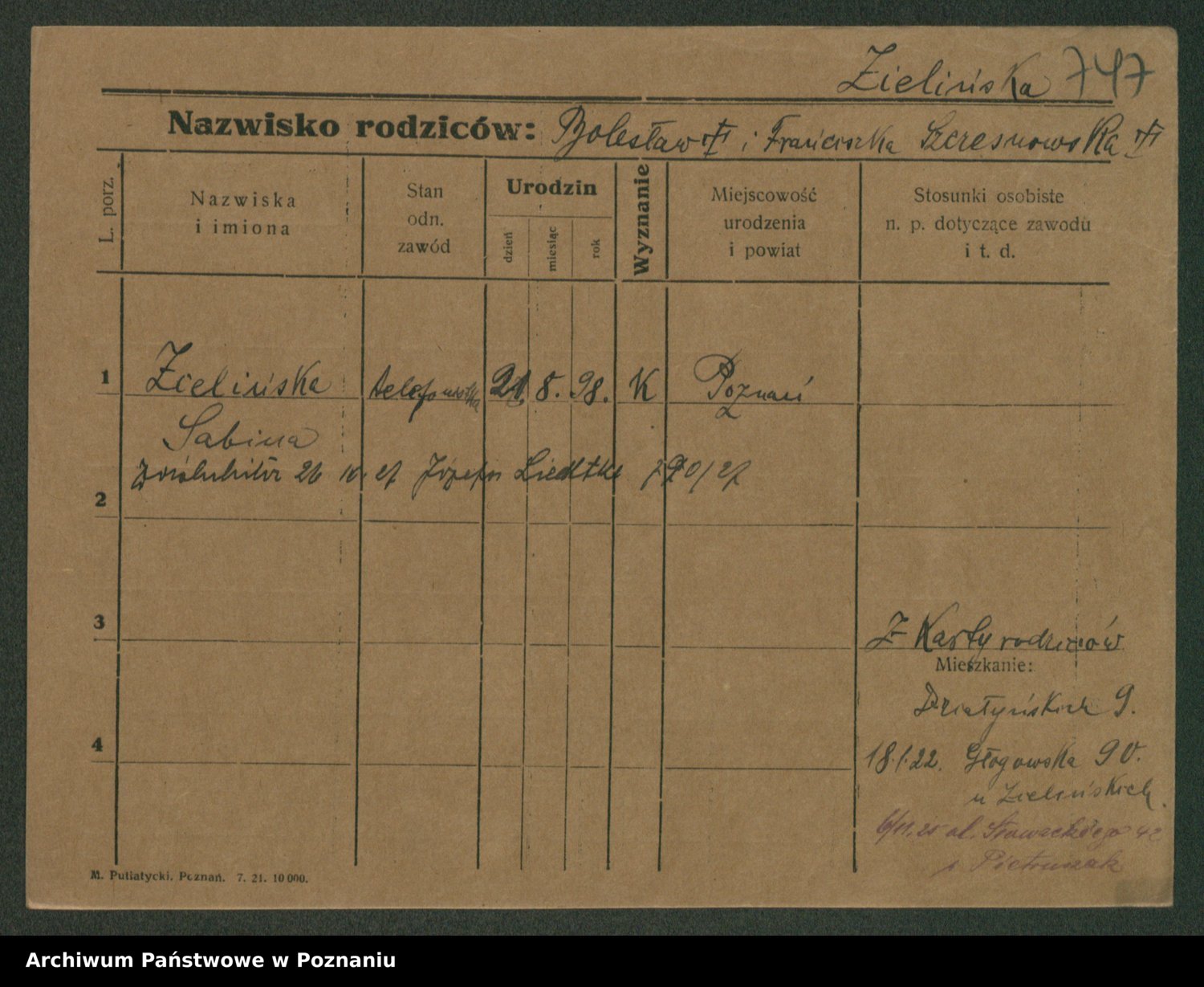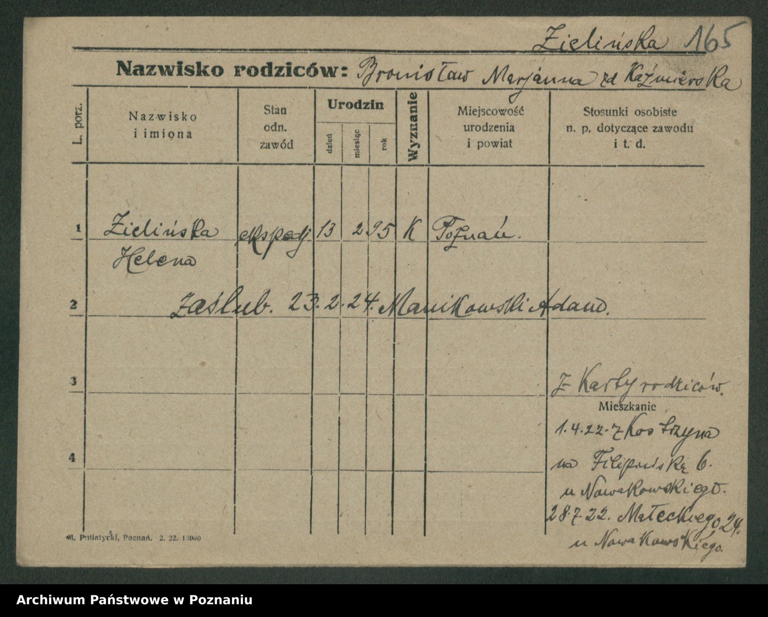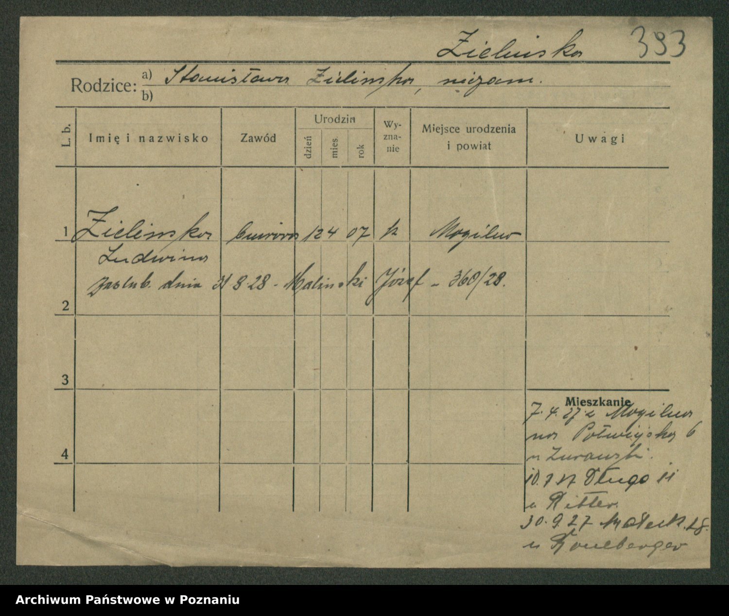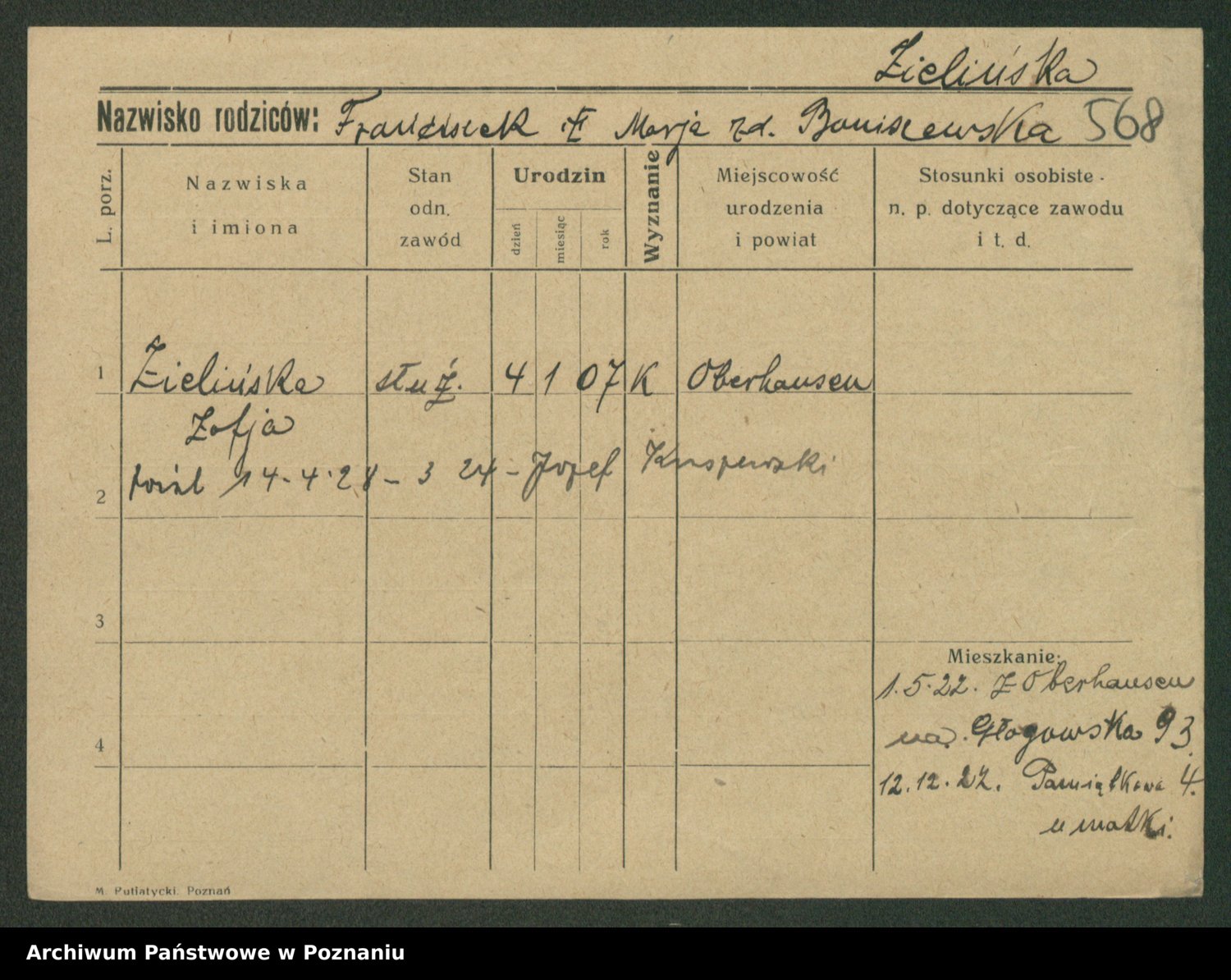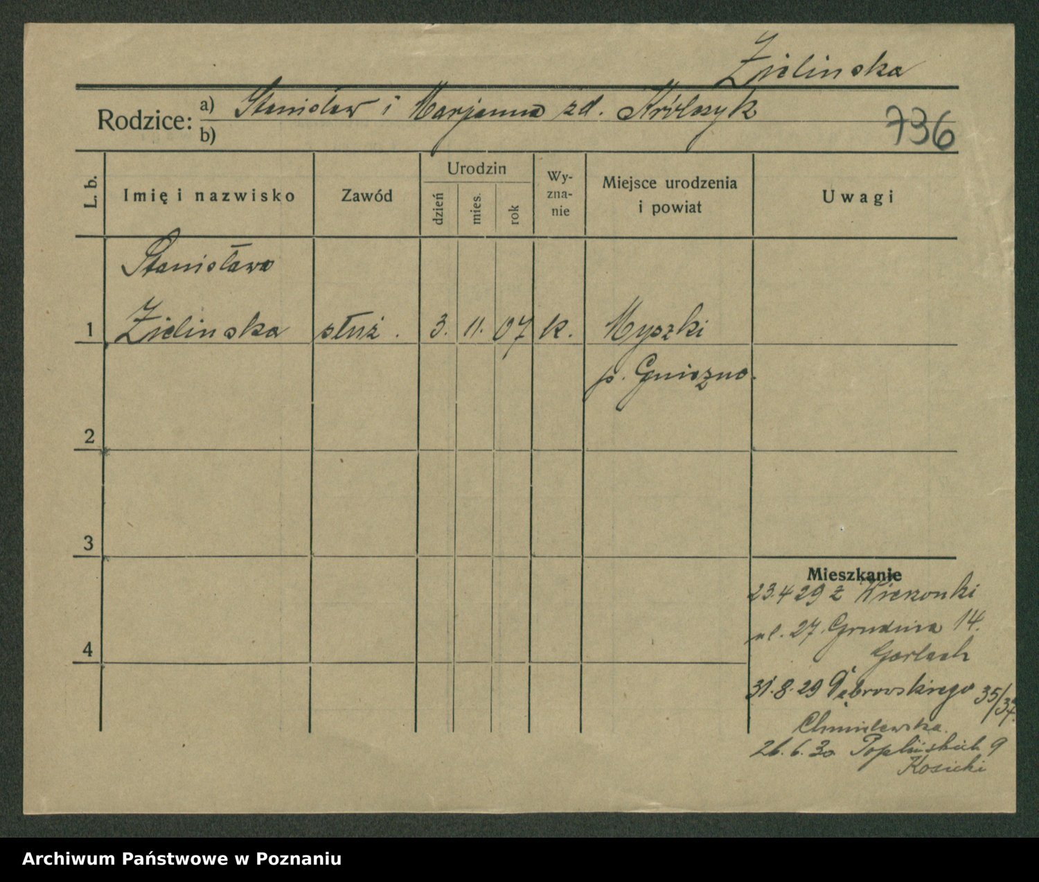 Zielinski, Stanislawa