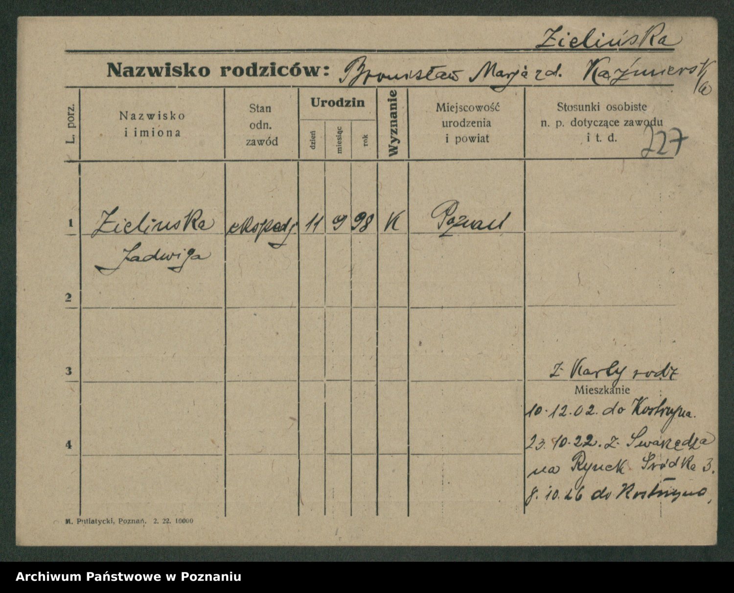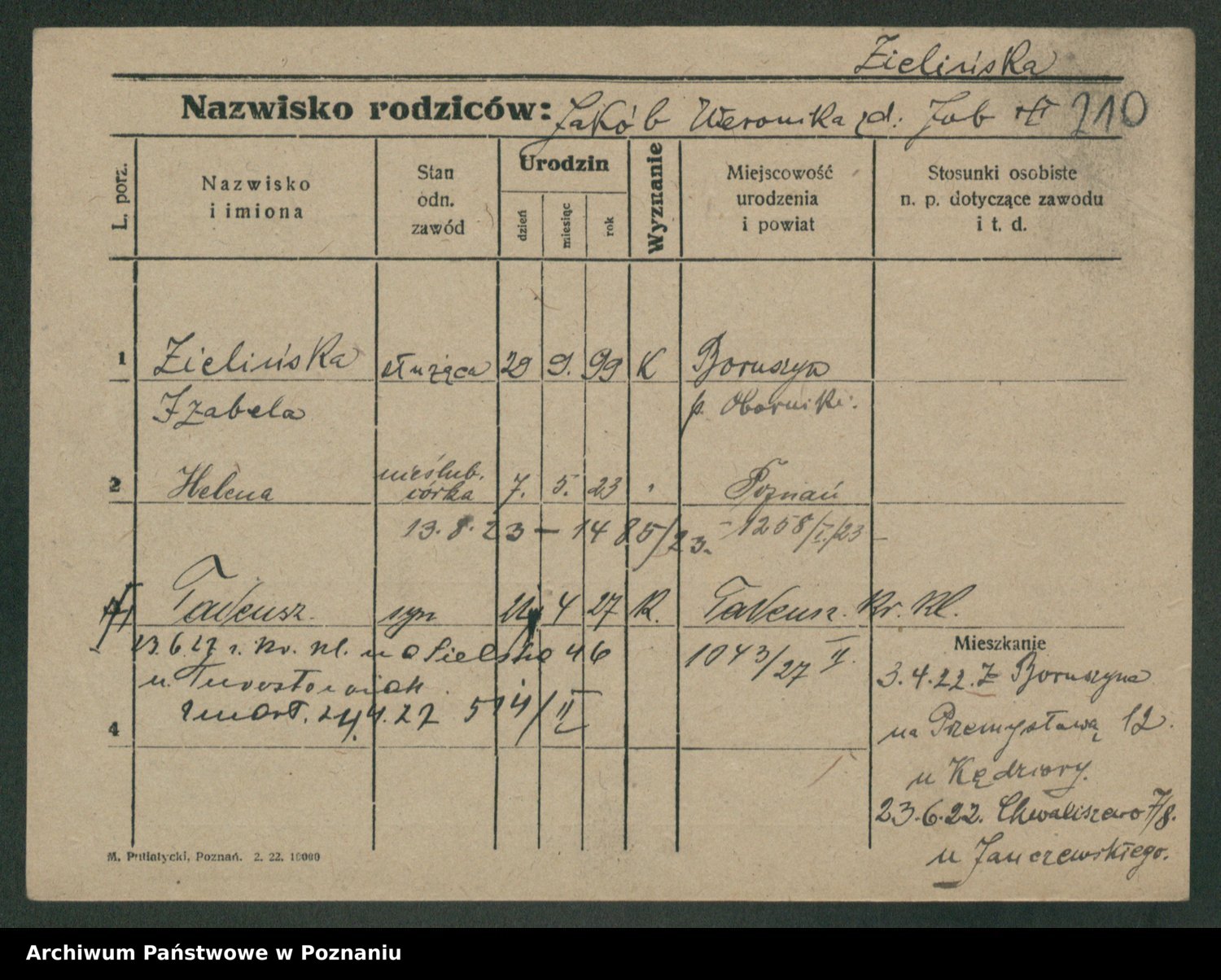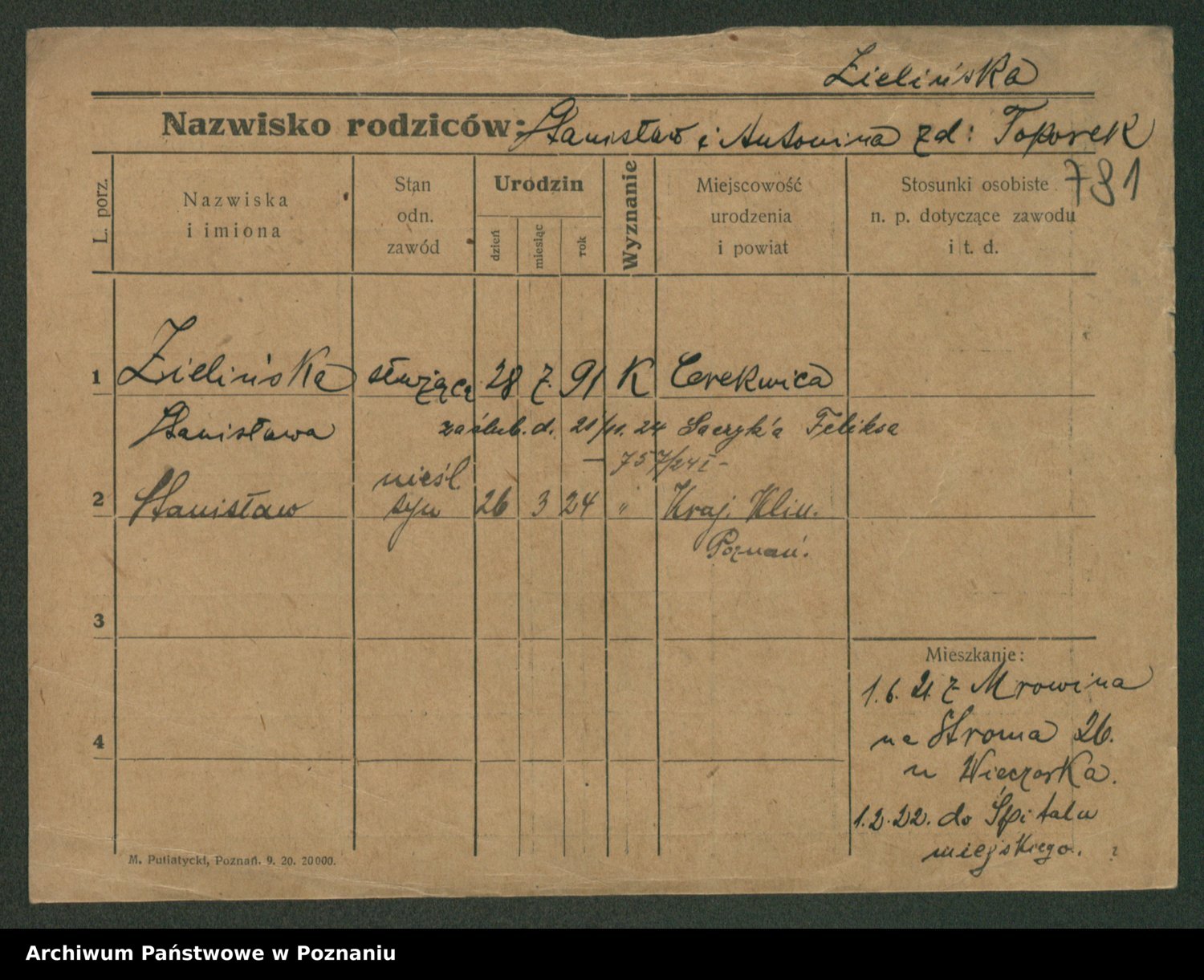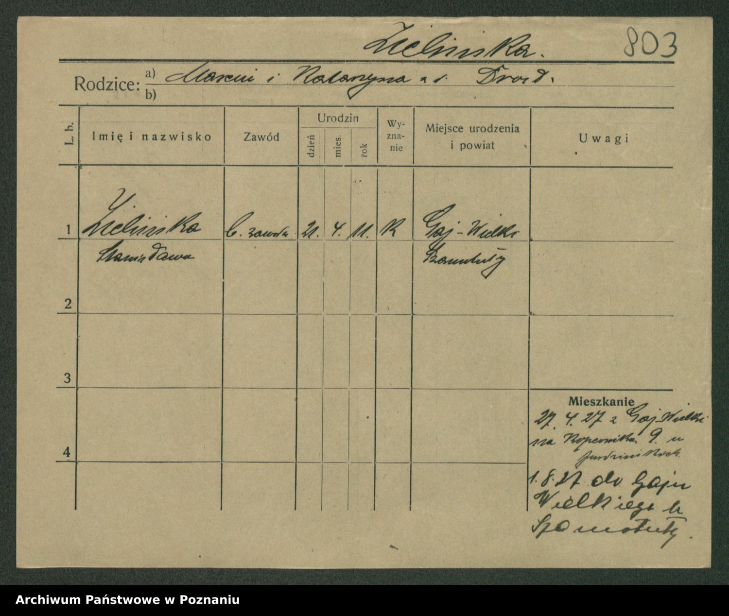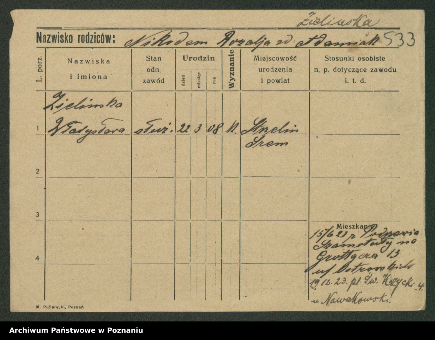 Zielinski, Stanislawa
