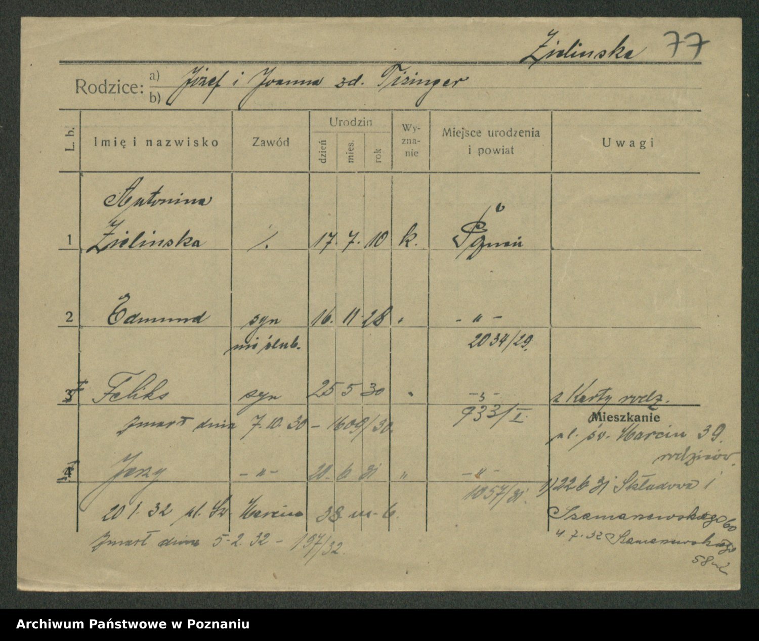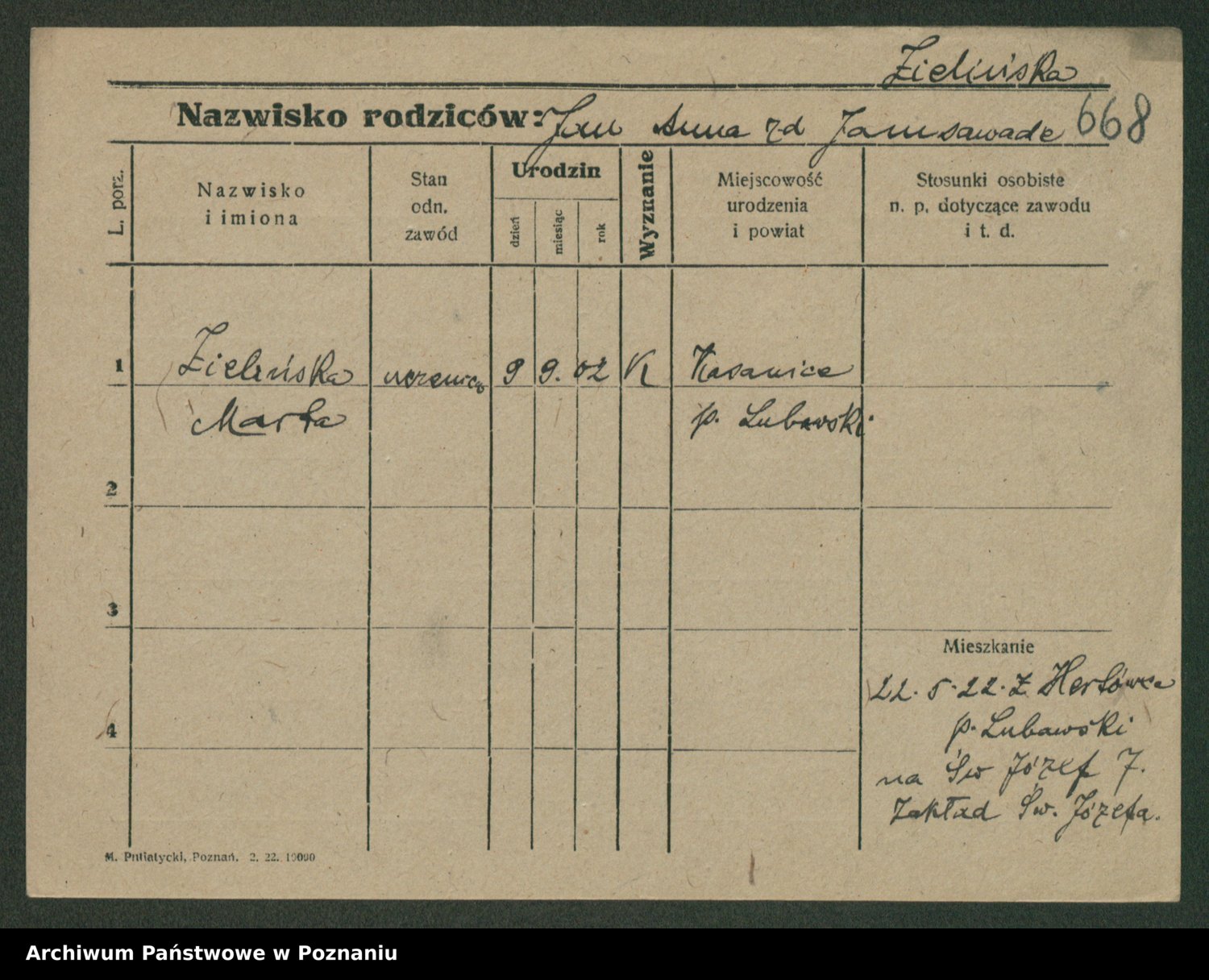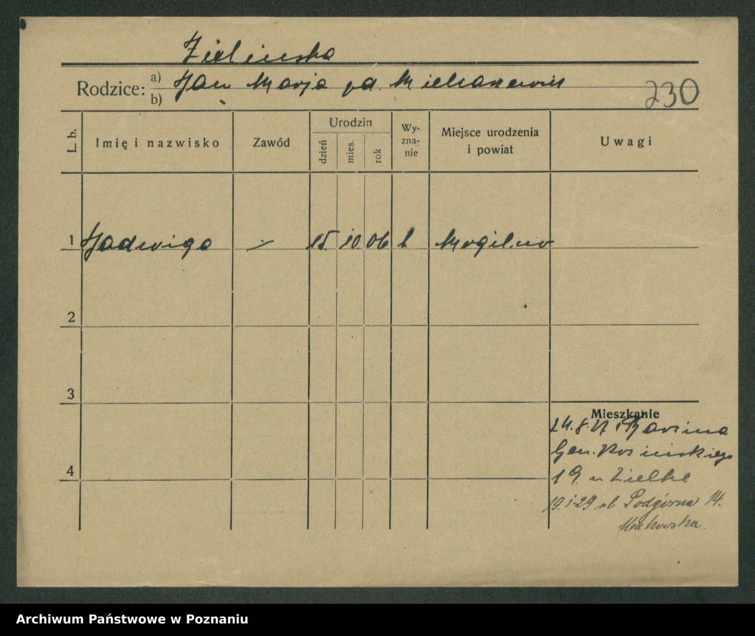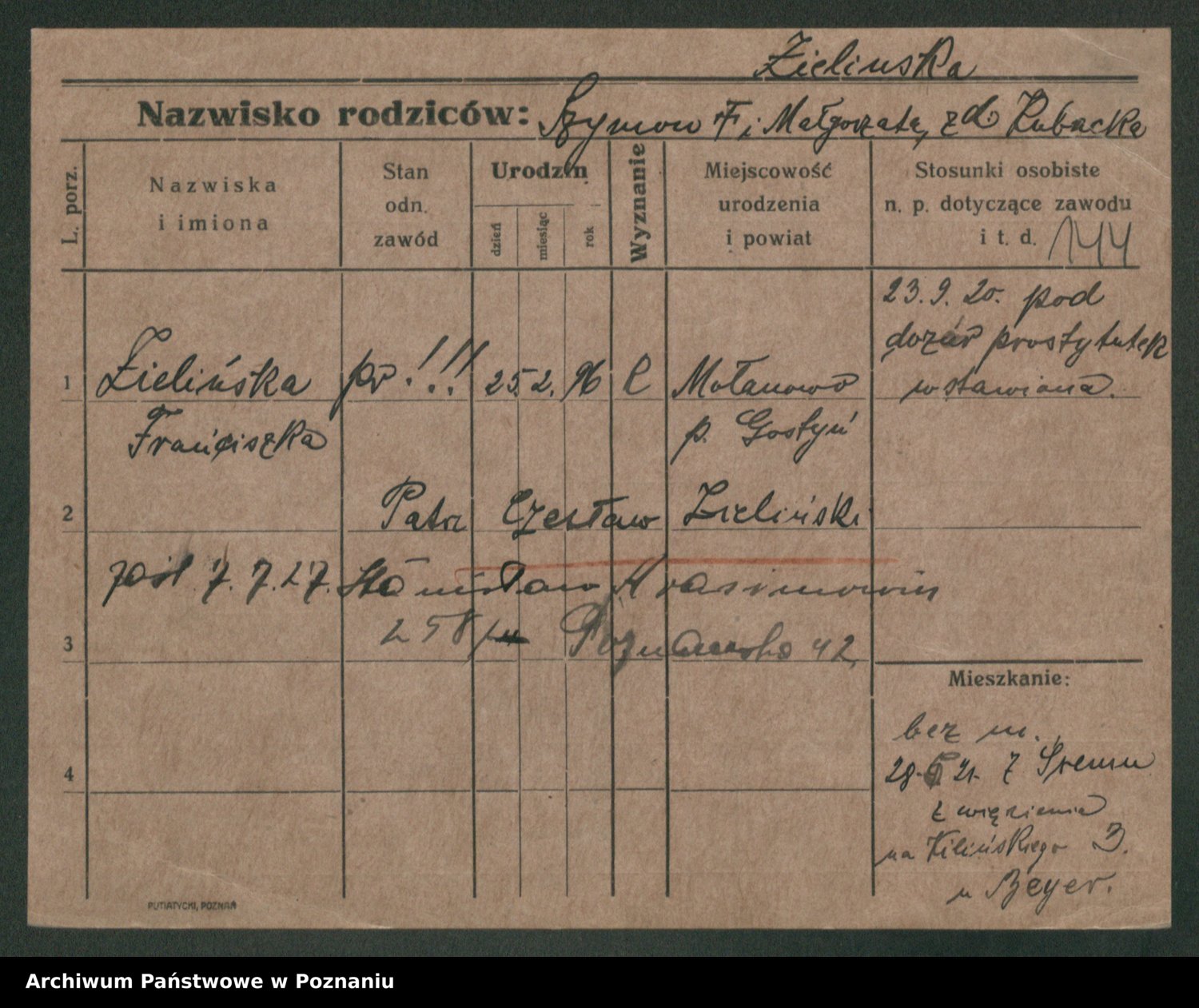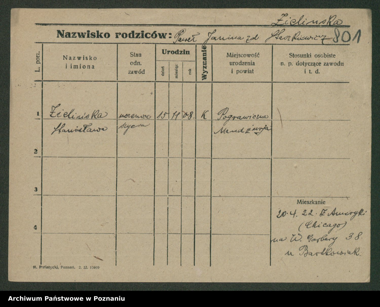 Zielinski, Stanislawa