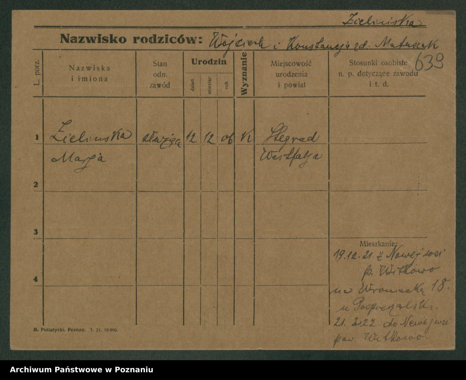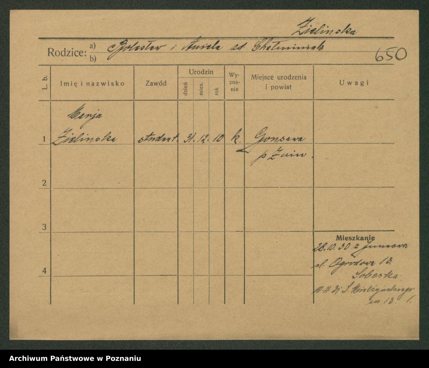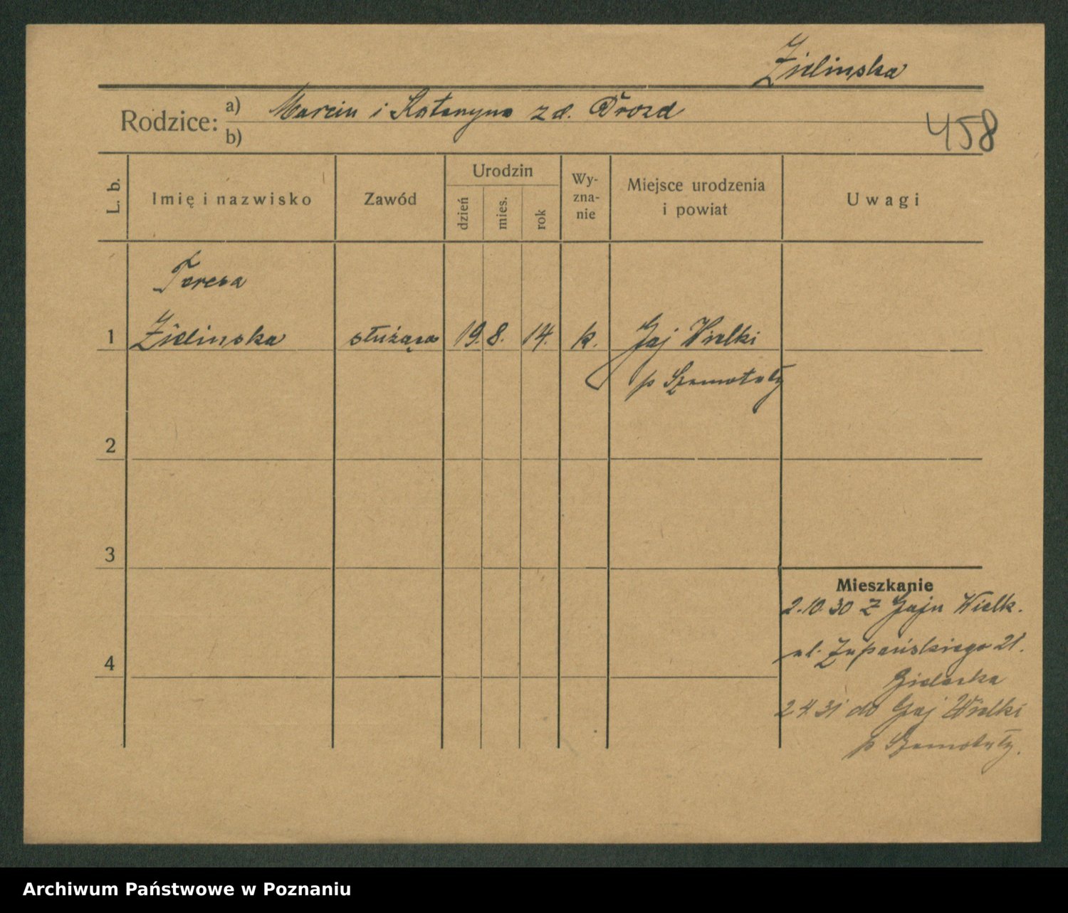 Zielinska, Regina Marja
