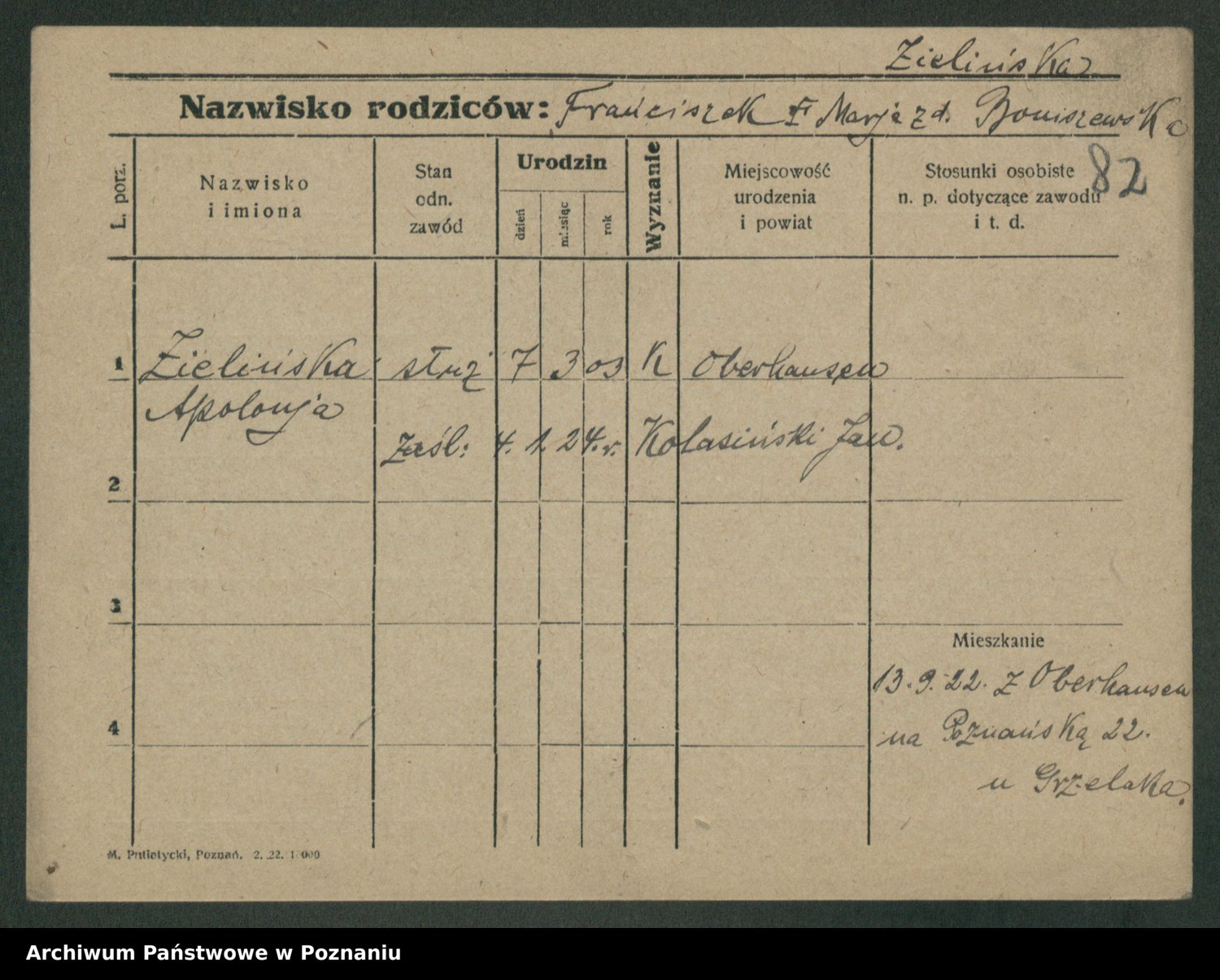 Zielinska, Apolonia