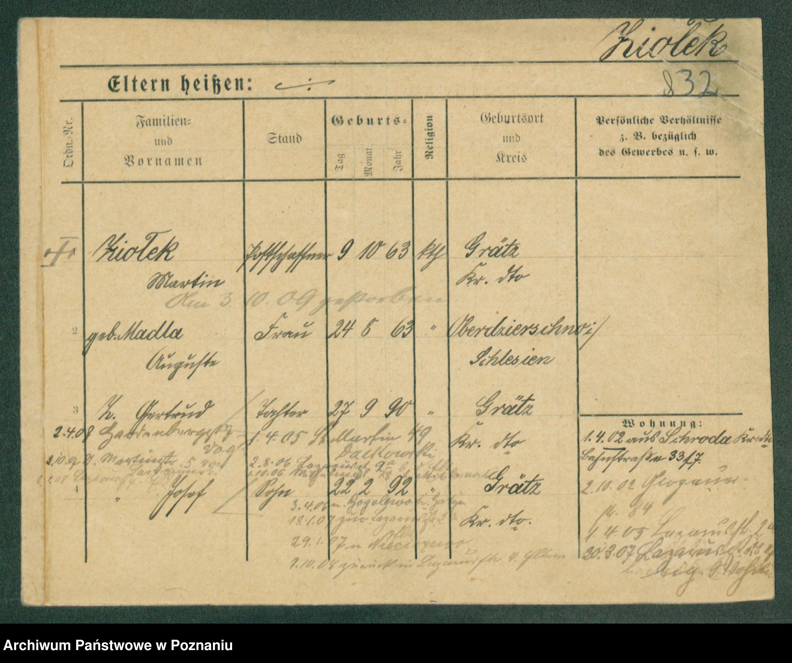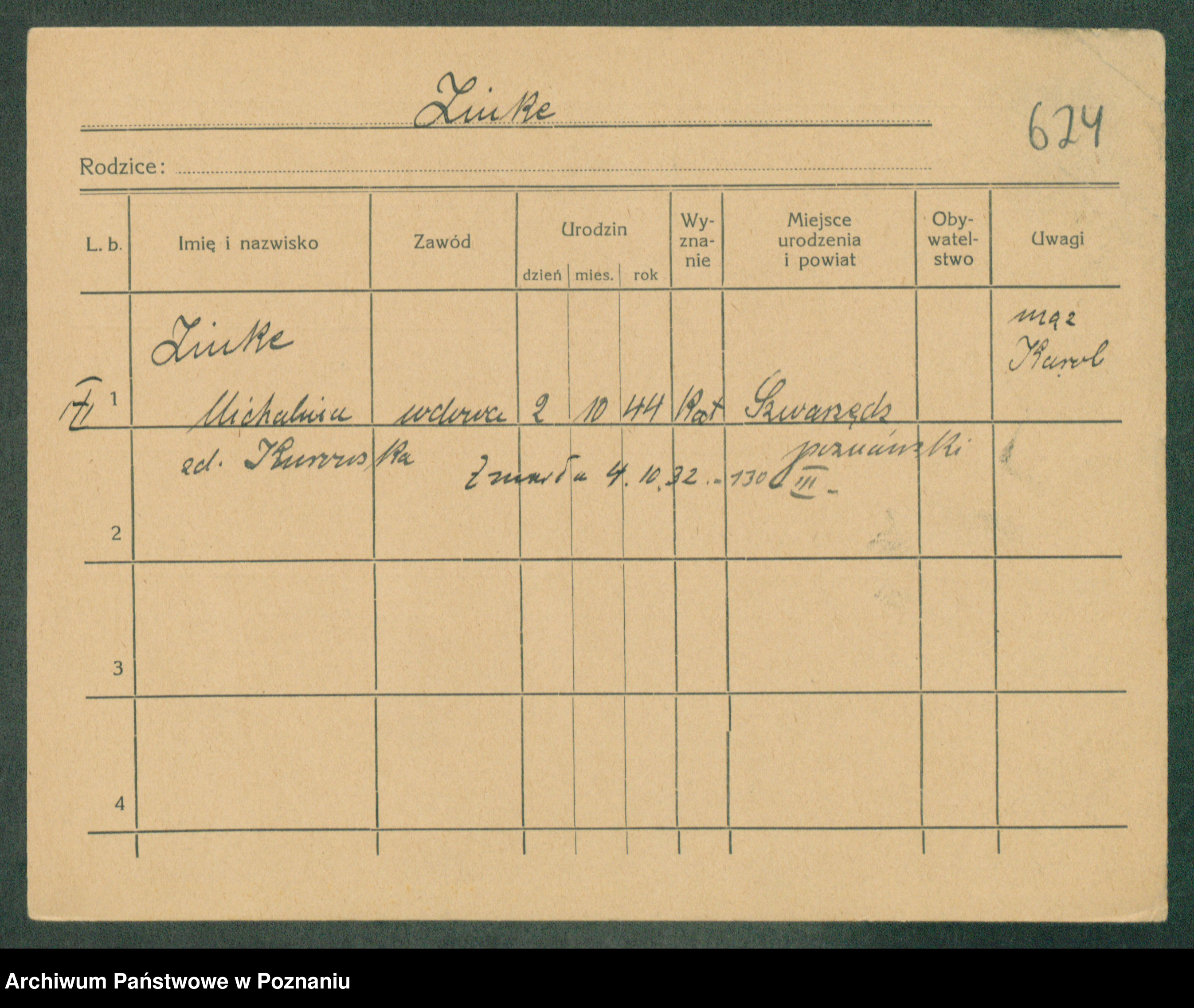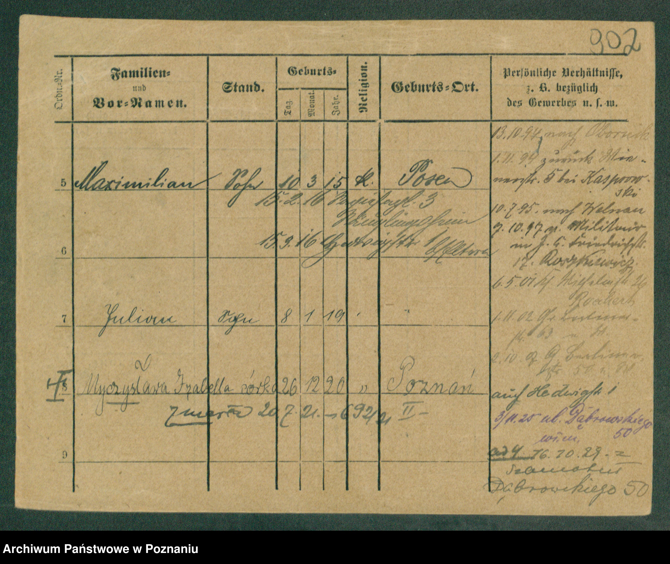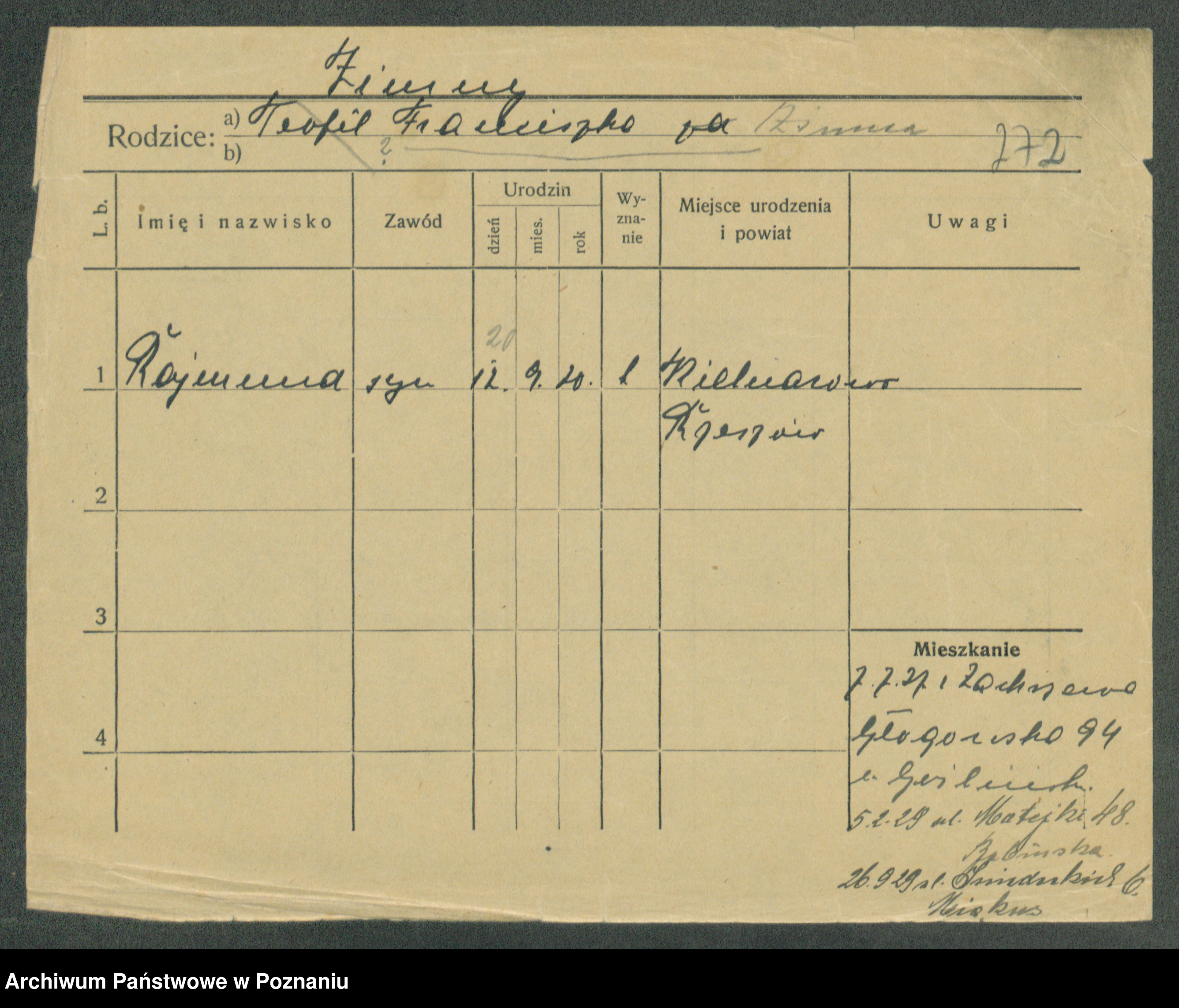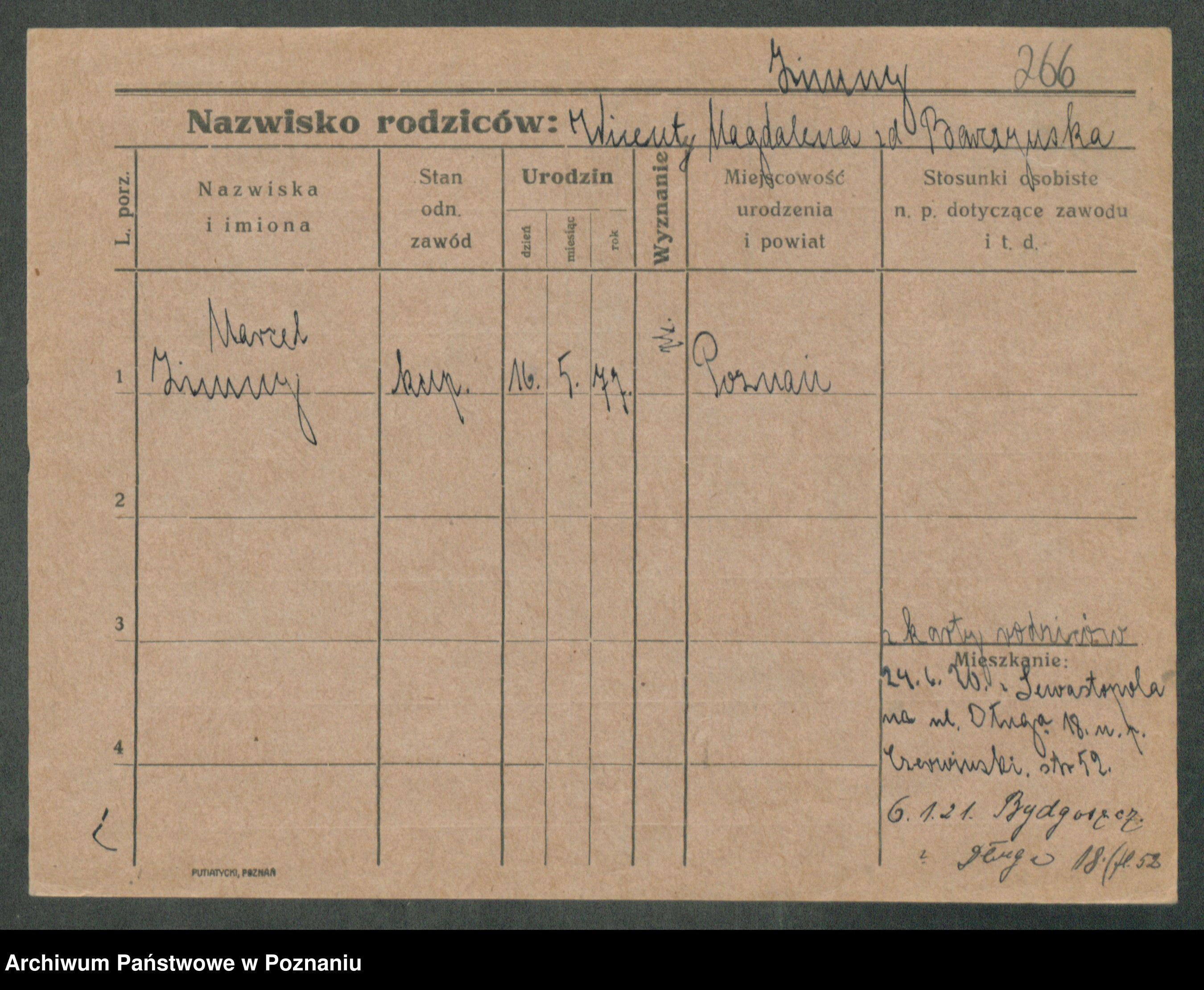 Podgląd karty osobowej dostępny jest po kliknięciu na nazwisko lub ikonkę karty. Można dokonywać powiększenia (ikony na górze) lub przechodzić między kolejnymi skanami (strzałki po bokach).