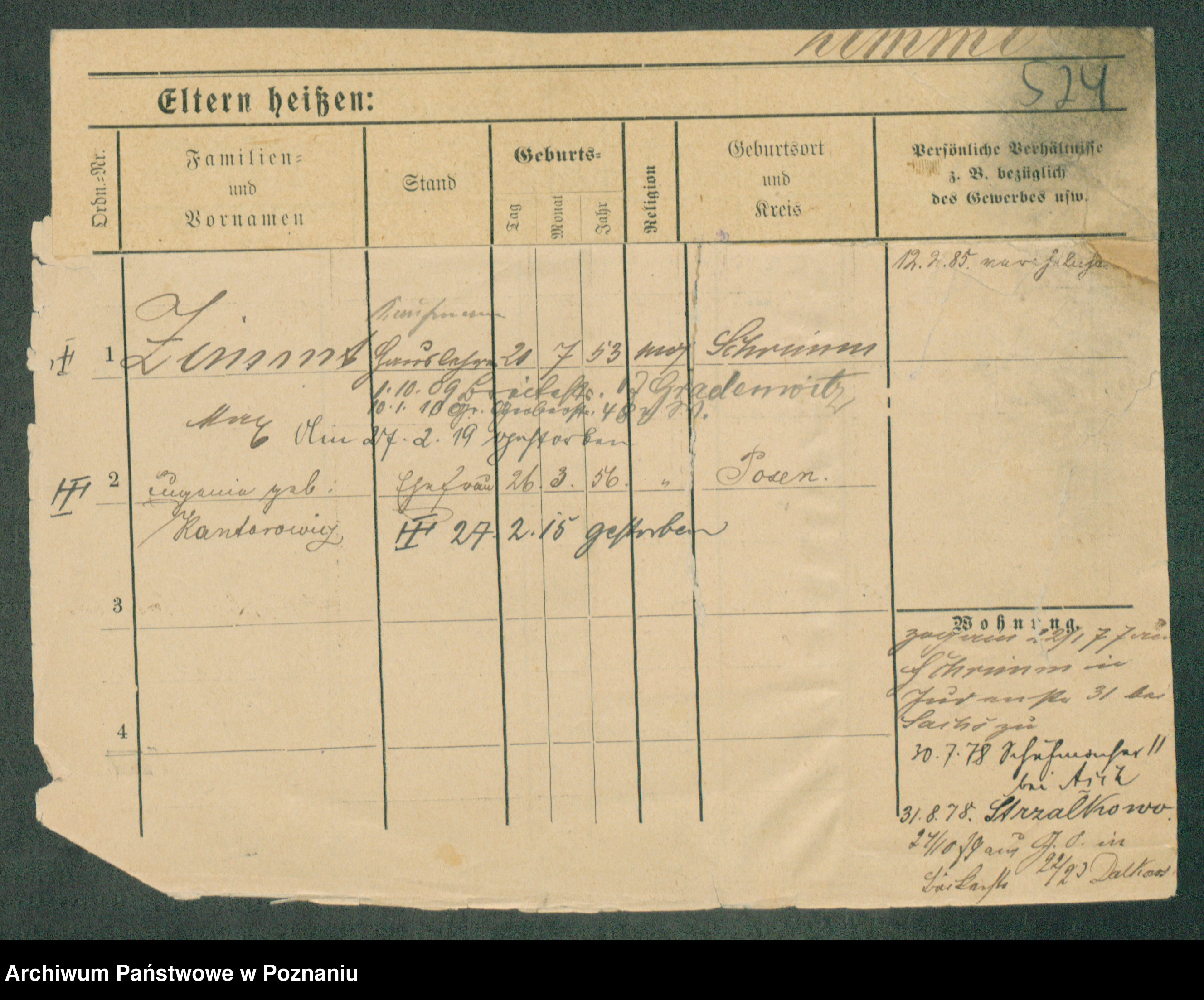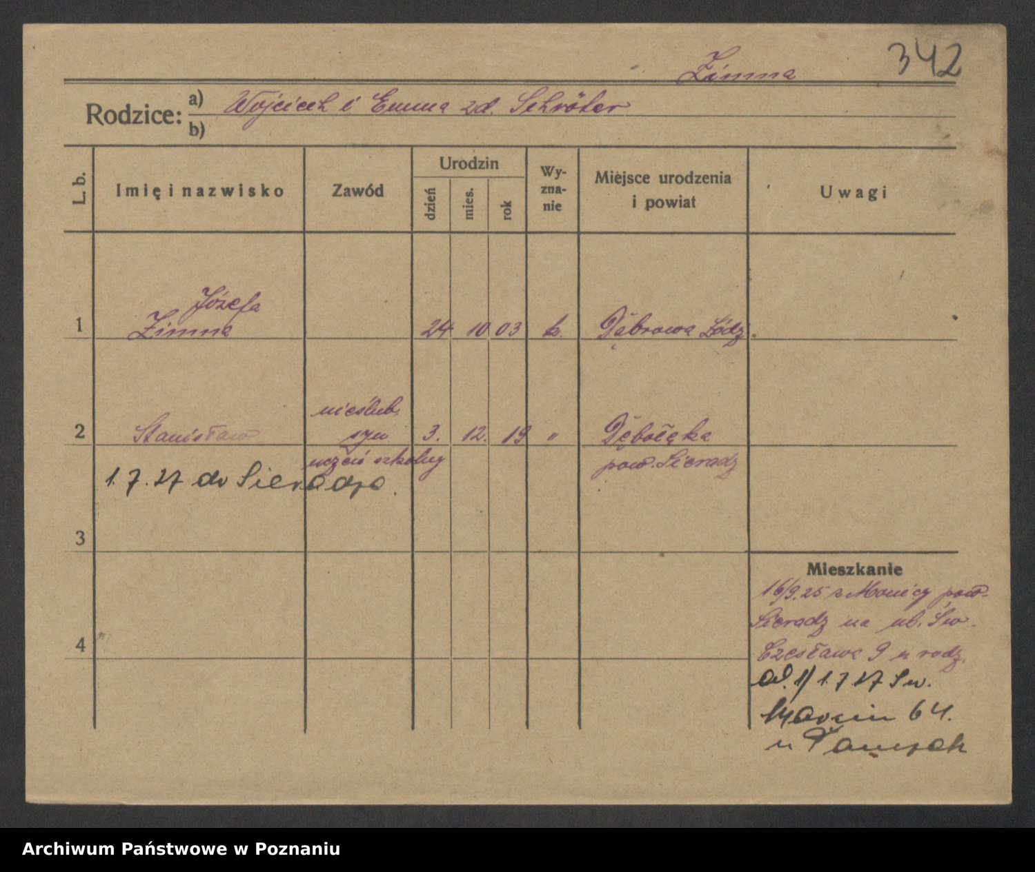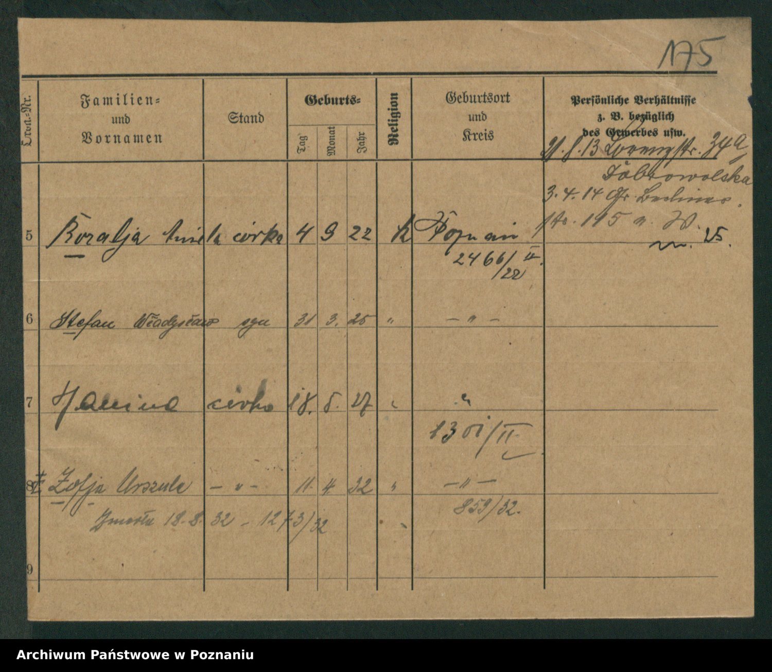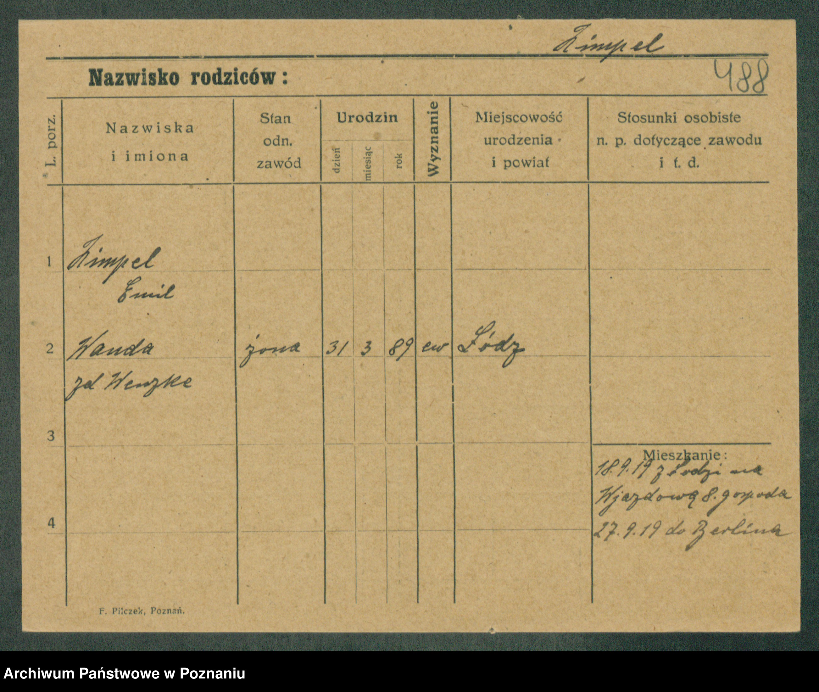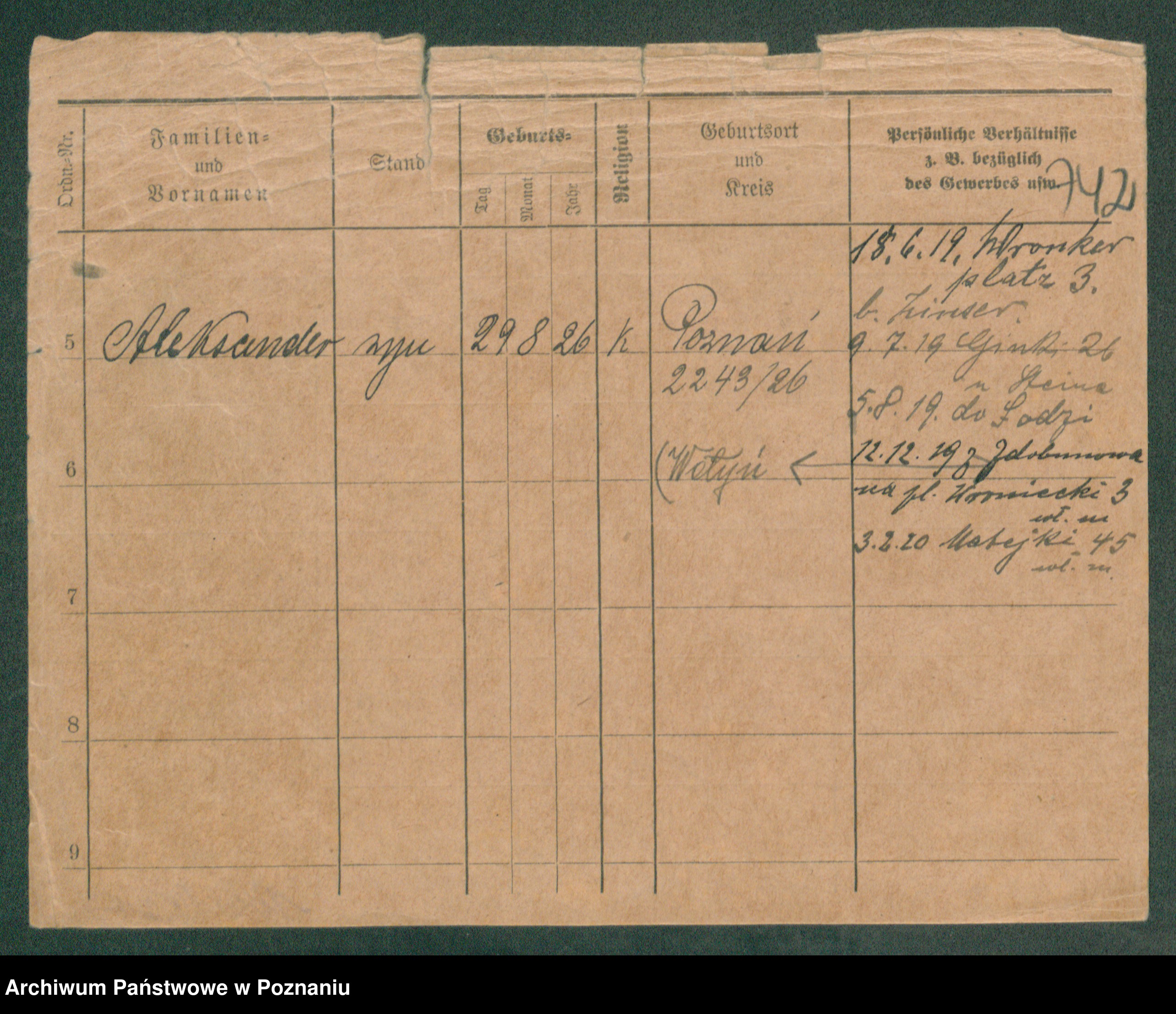 Podgląd karty osobowej dostępny jest po kliknięciu na nazwisko lub ikonkę karty. Można dokonywać powiększenia (ikony na górze) lub przechodzić między kolejnymi skanami (strzałki po bokach).
