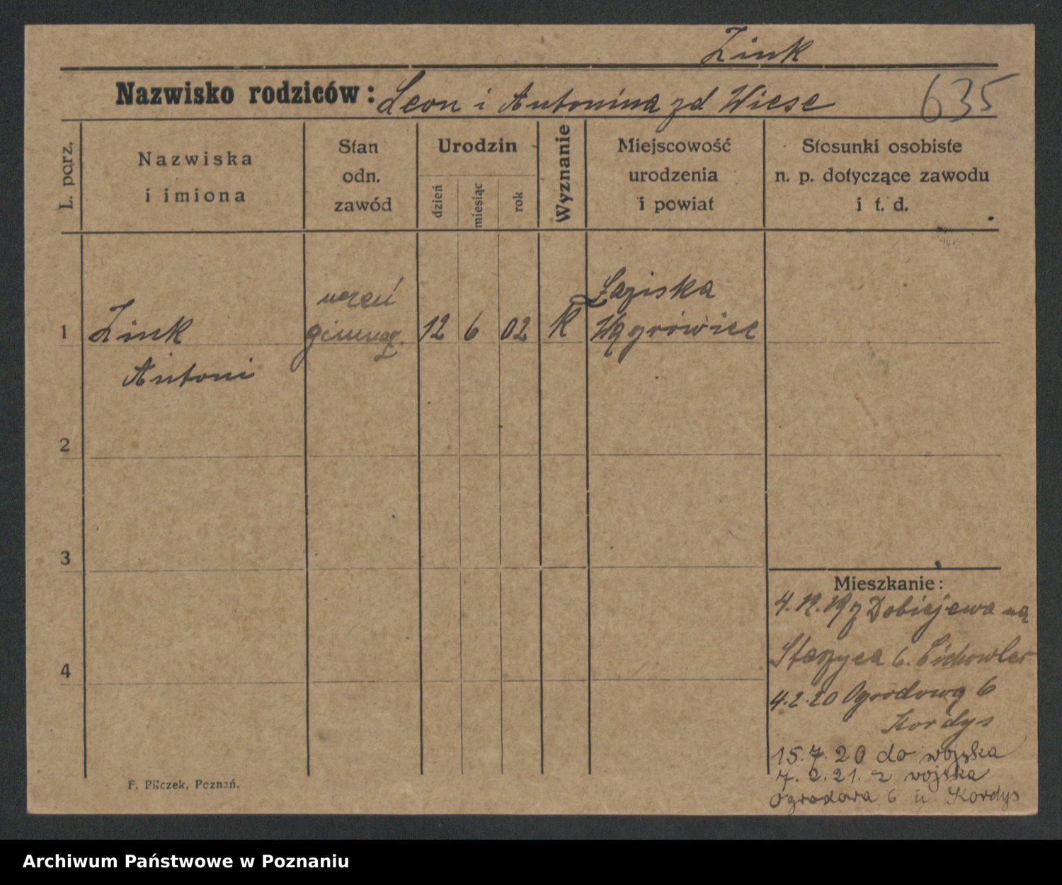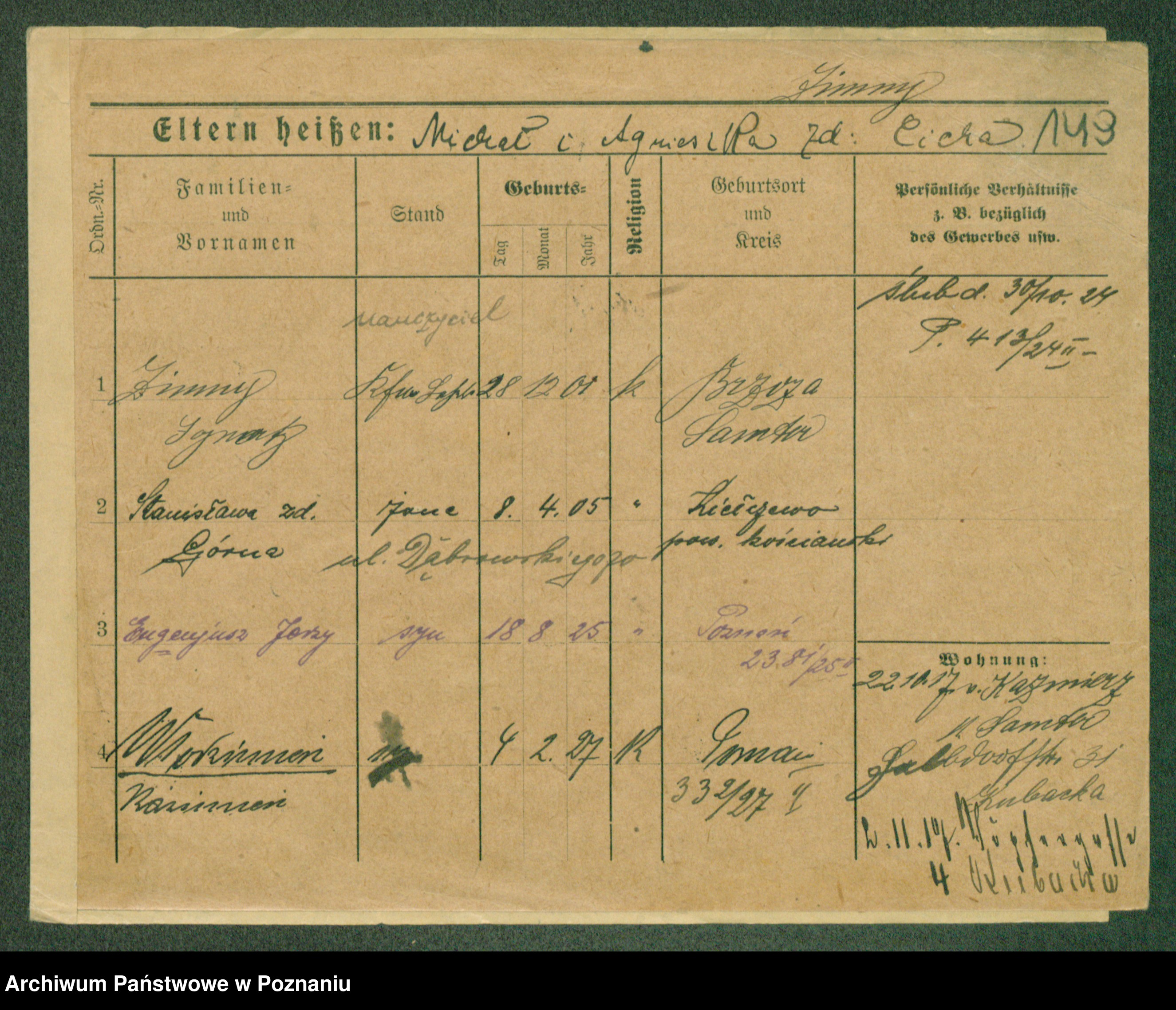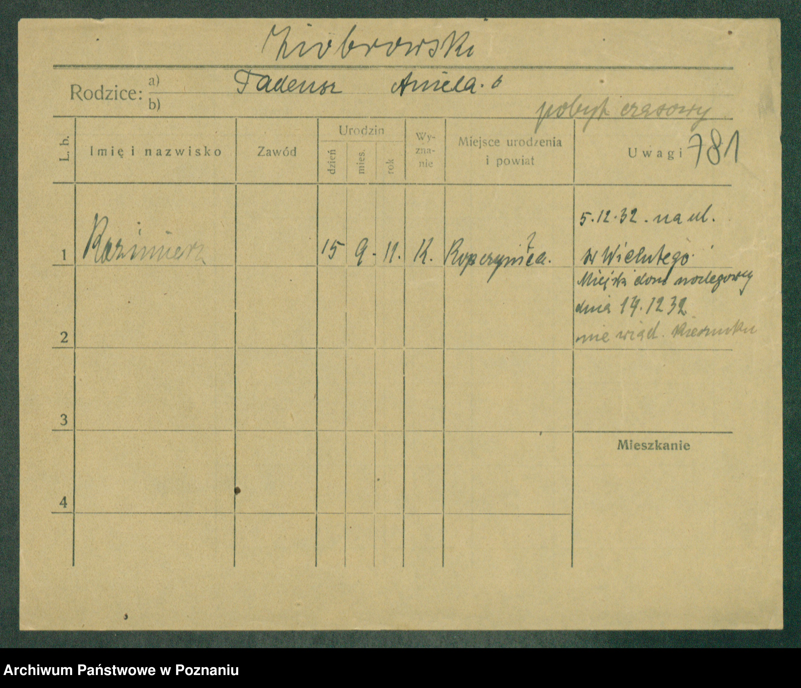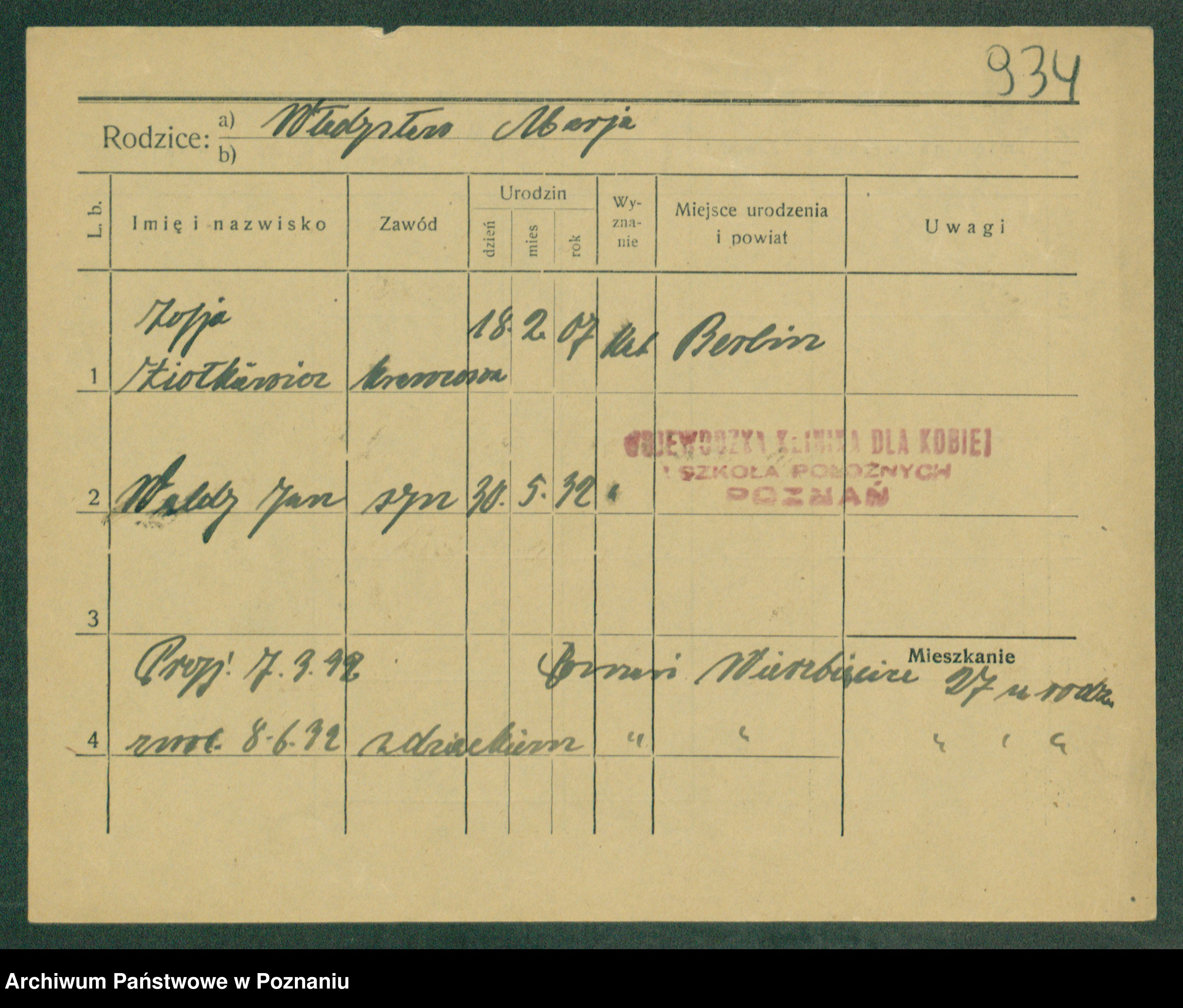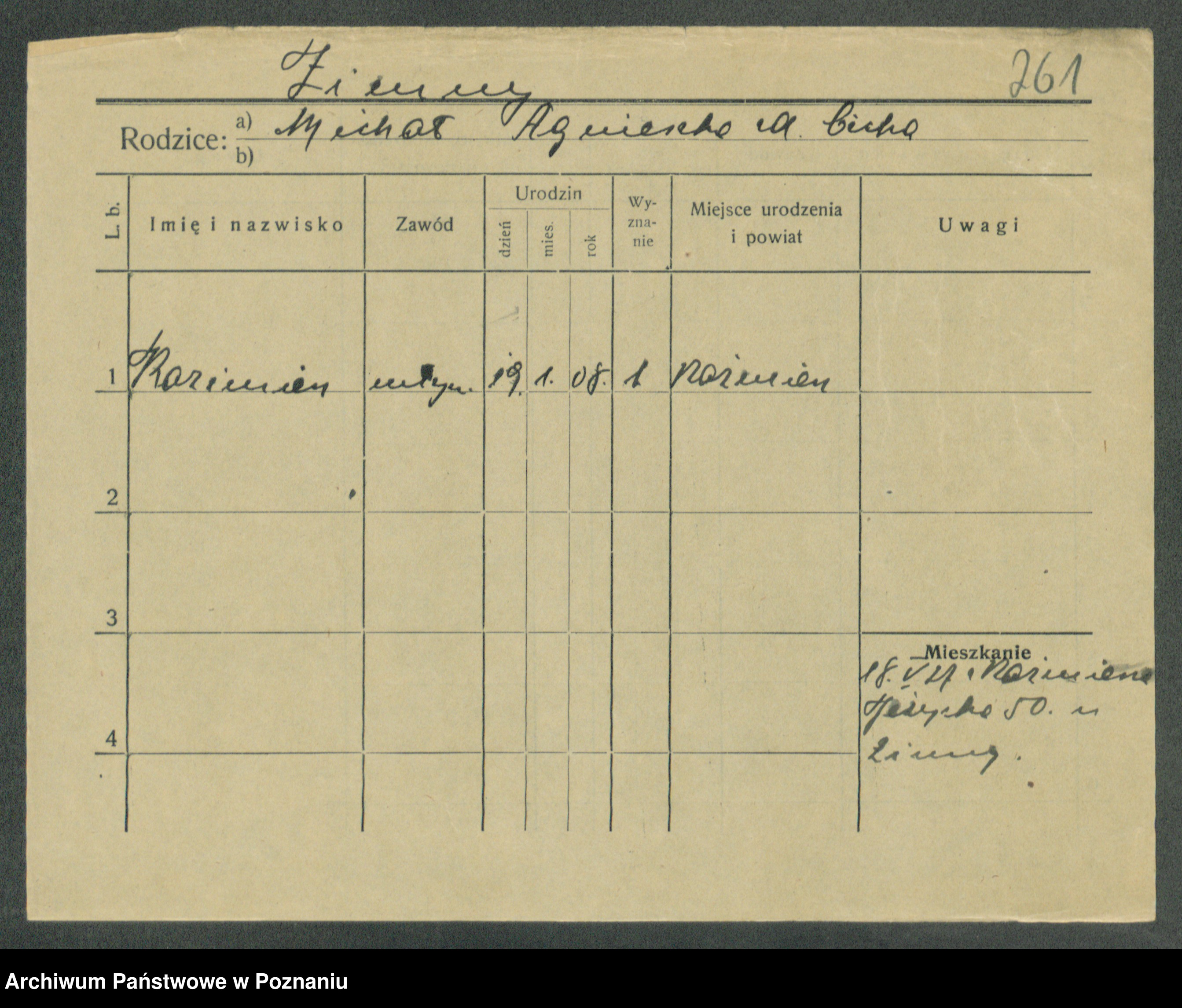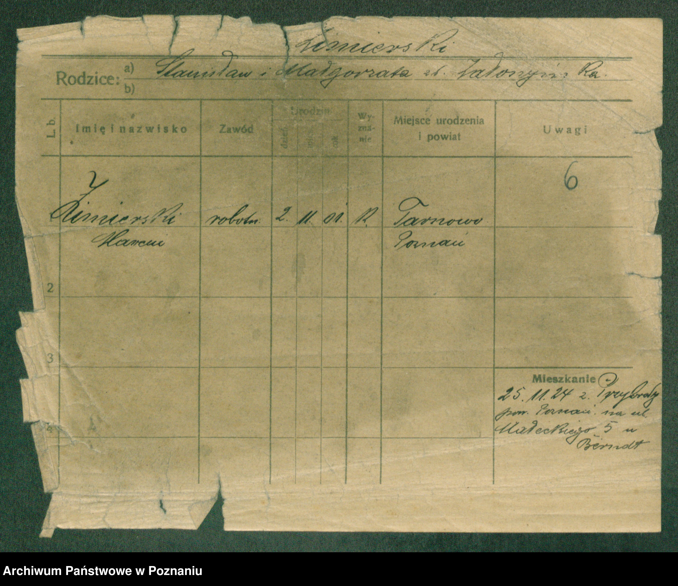Podgląd karty osobowej dostępny jest po kliknięciu na nazwisko lub ikonkę karty. Można dokonywać powiększenia (ikony na górze) lub przechodzić między kolejnymi skanami (strzałki po bokach).