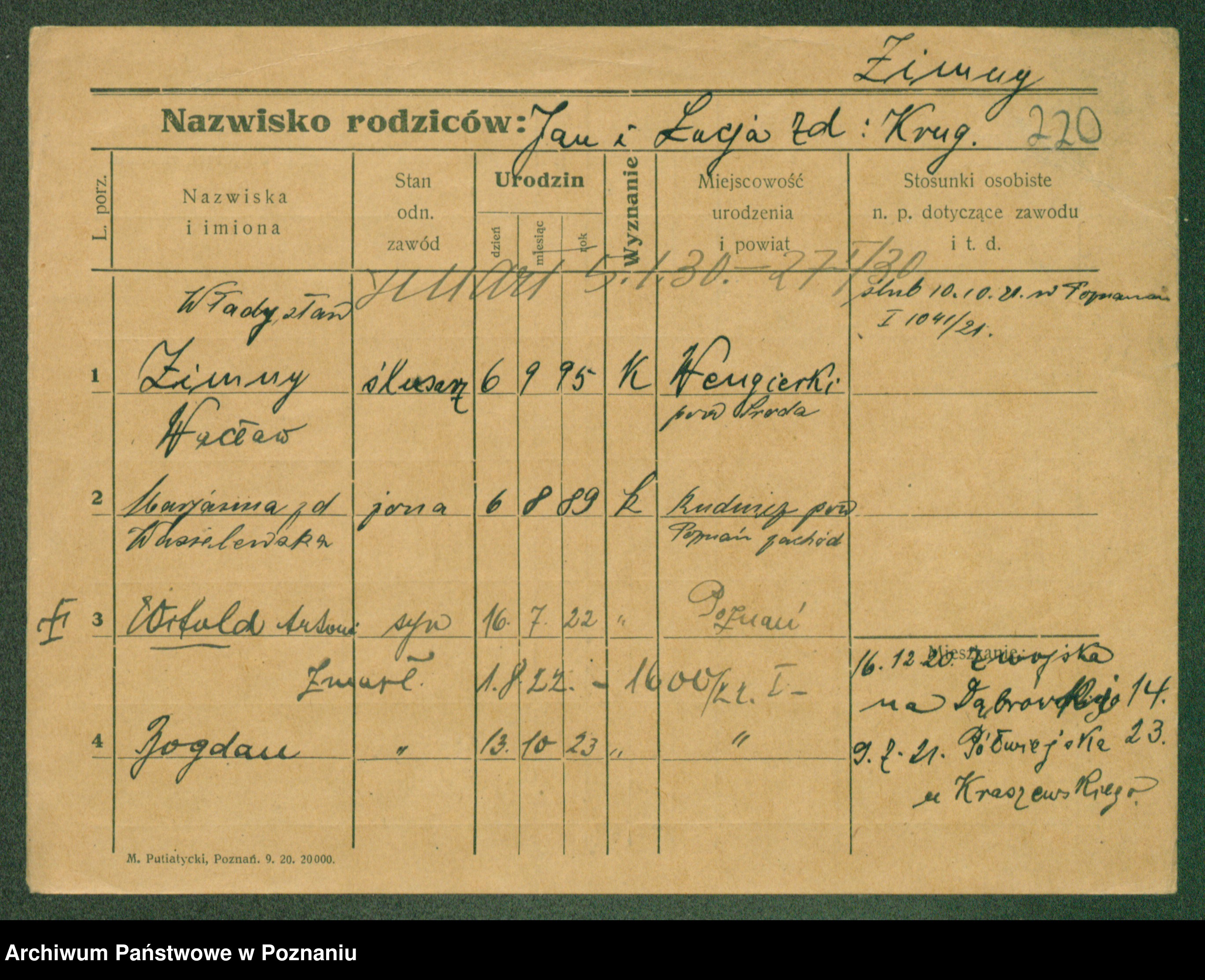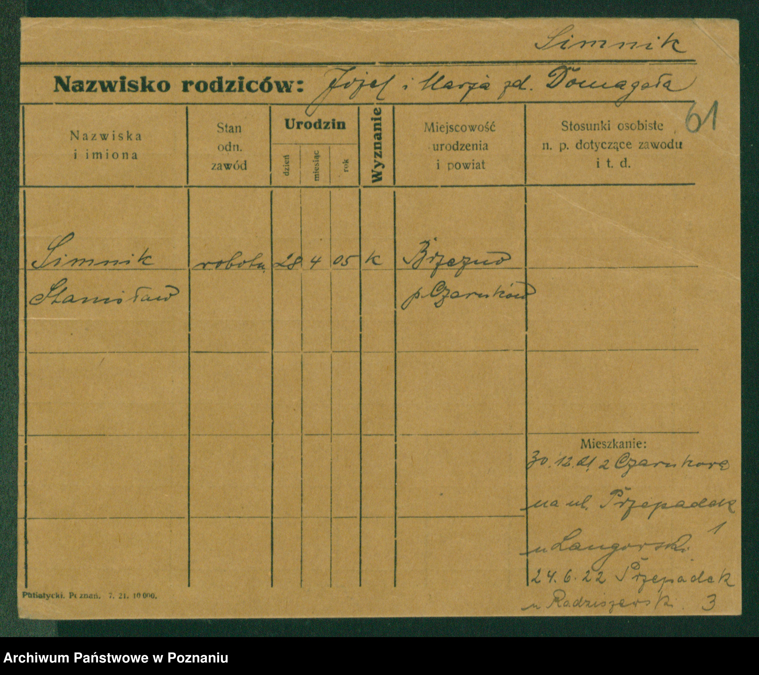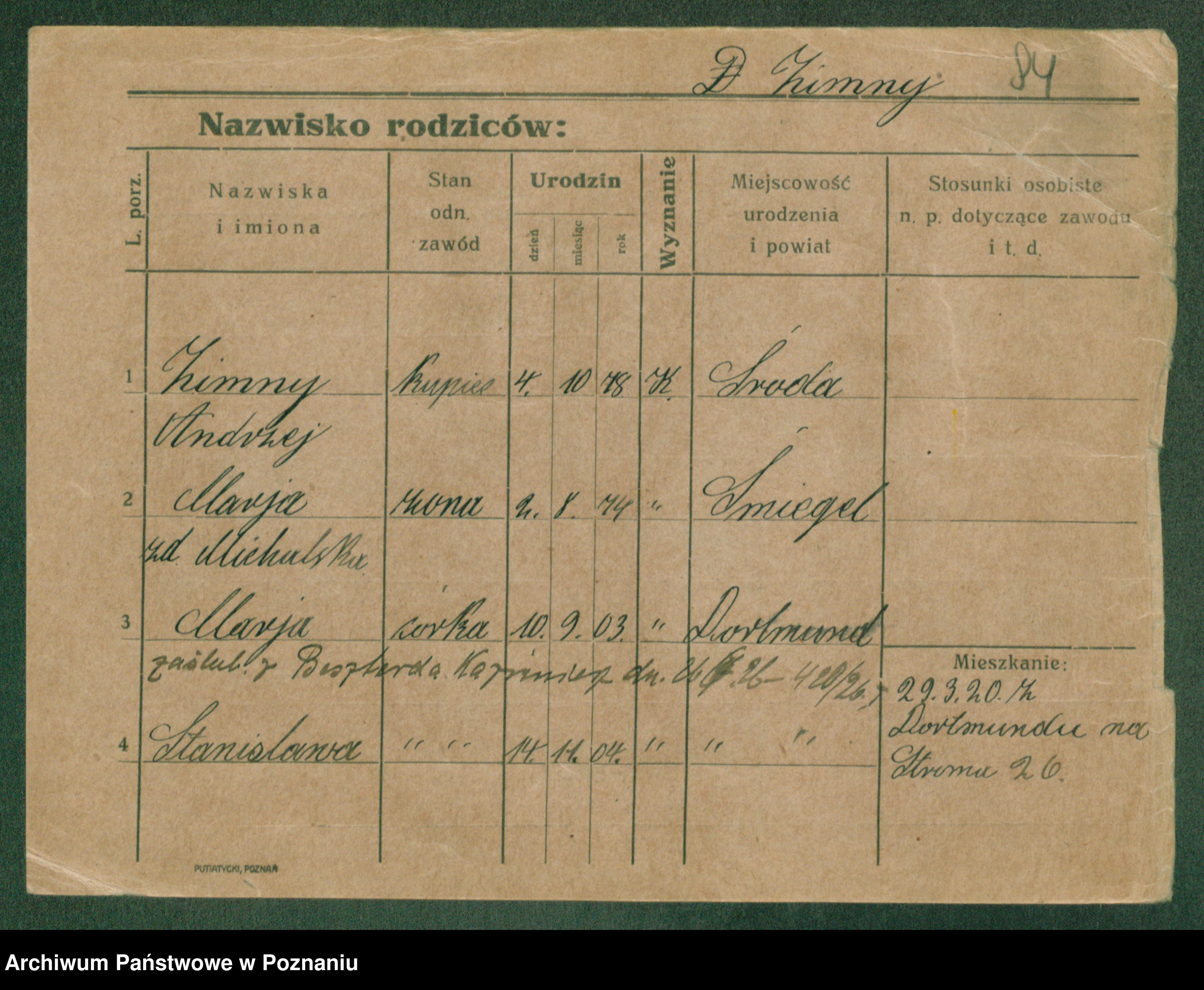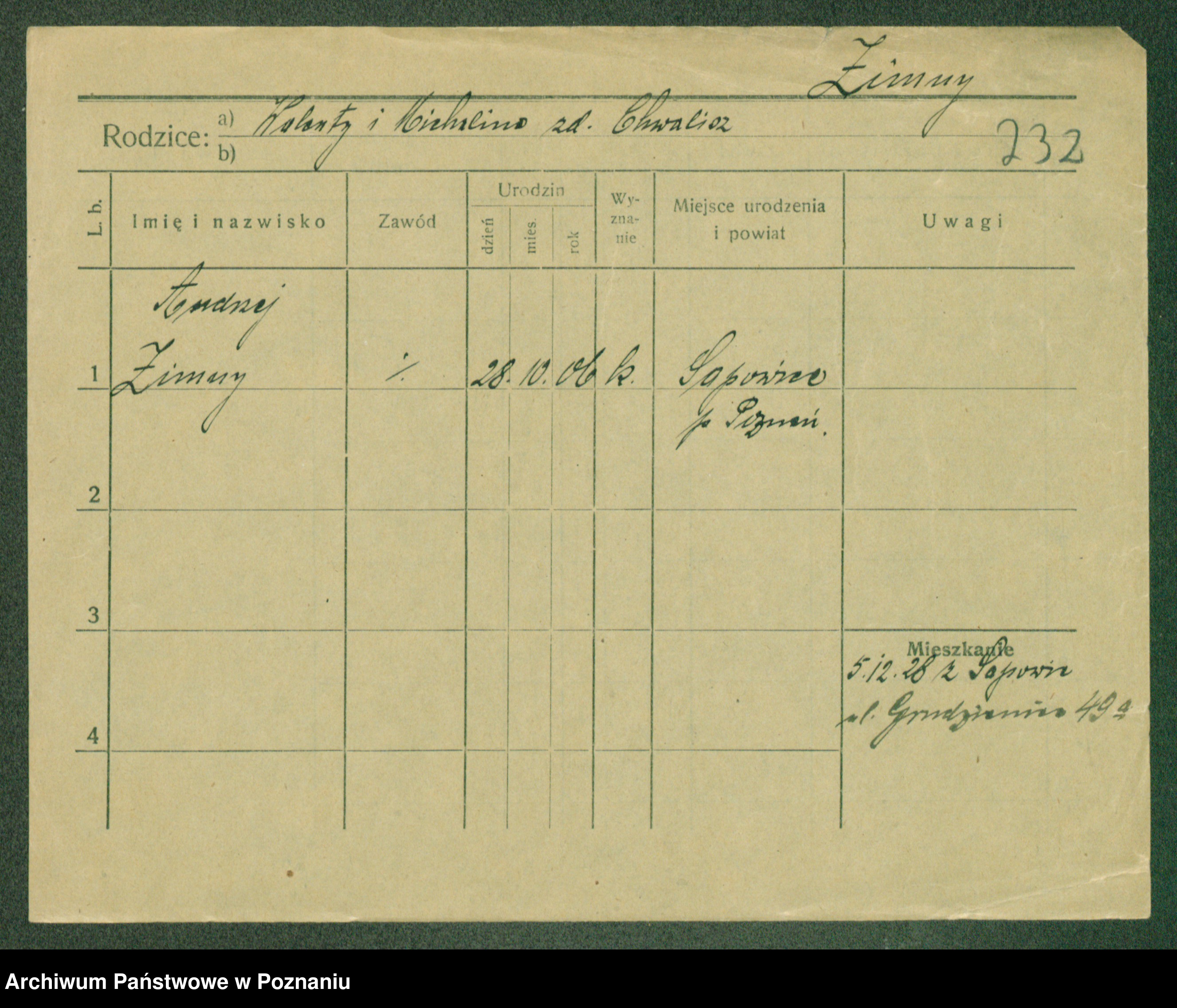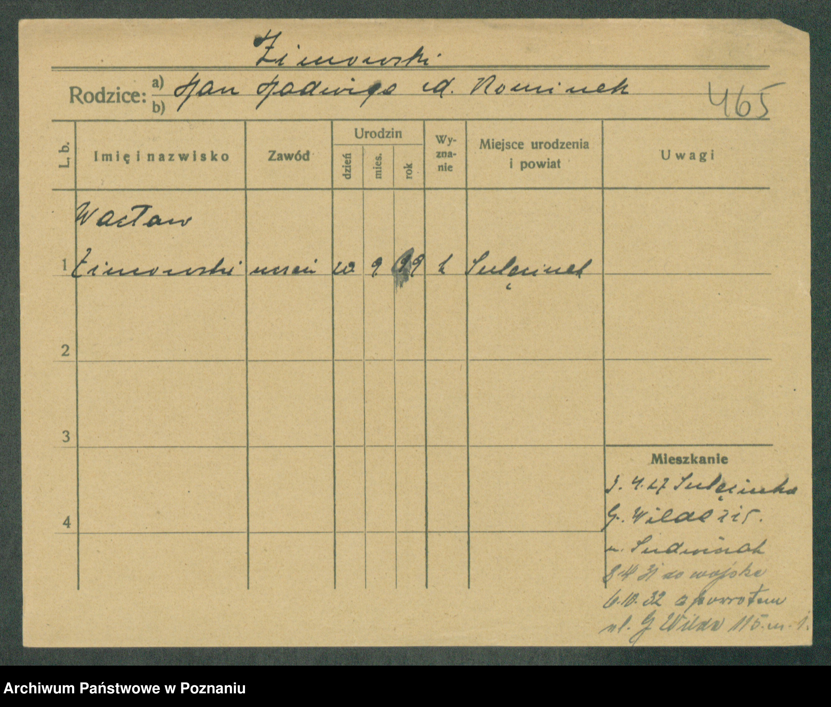 Podgląd karty osobowej dostępny jest po kliknięciu na nazwisko lub ikonkę karty. Można dokonywać powiększenia (ikony na górze) lub przechodzić między kolejnymi skanami (strzałki po bokach).