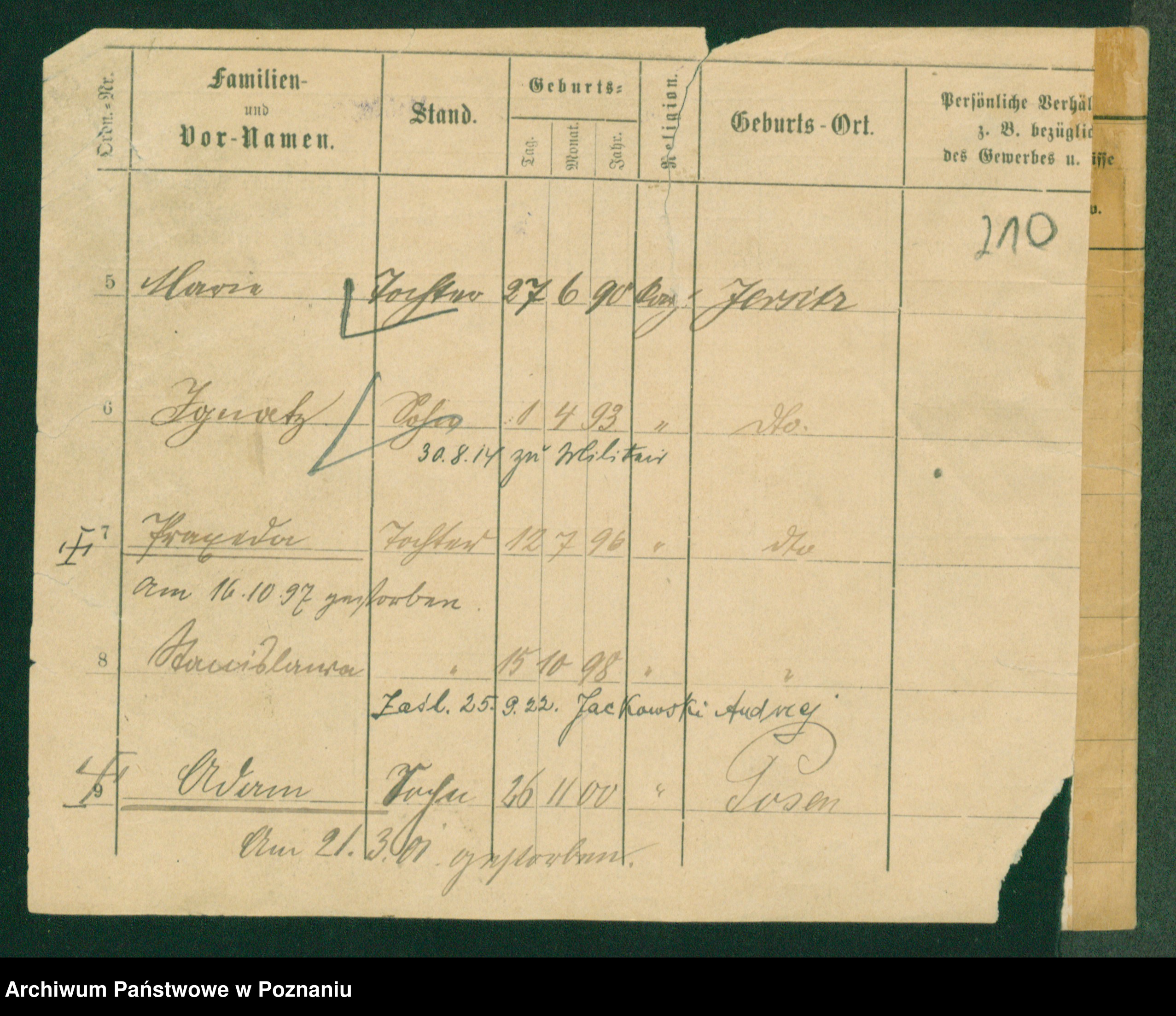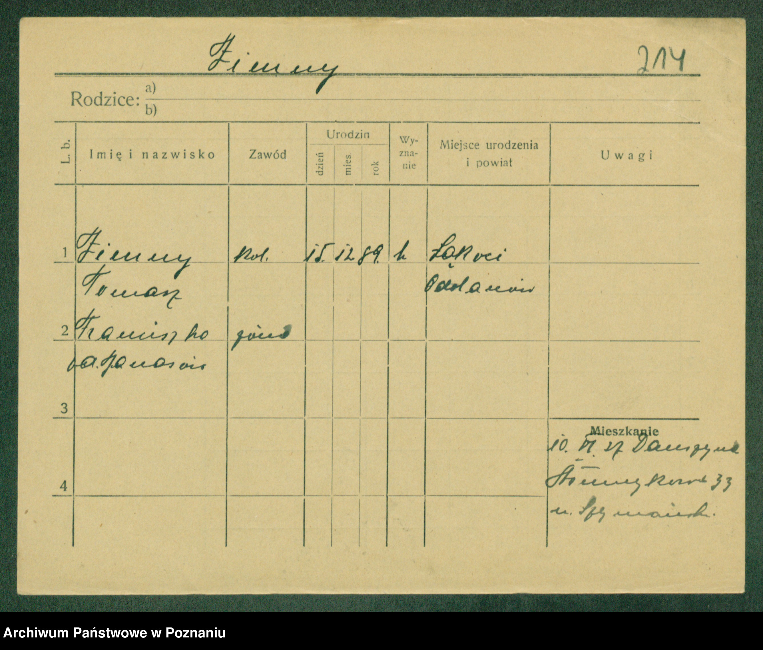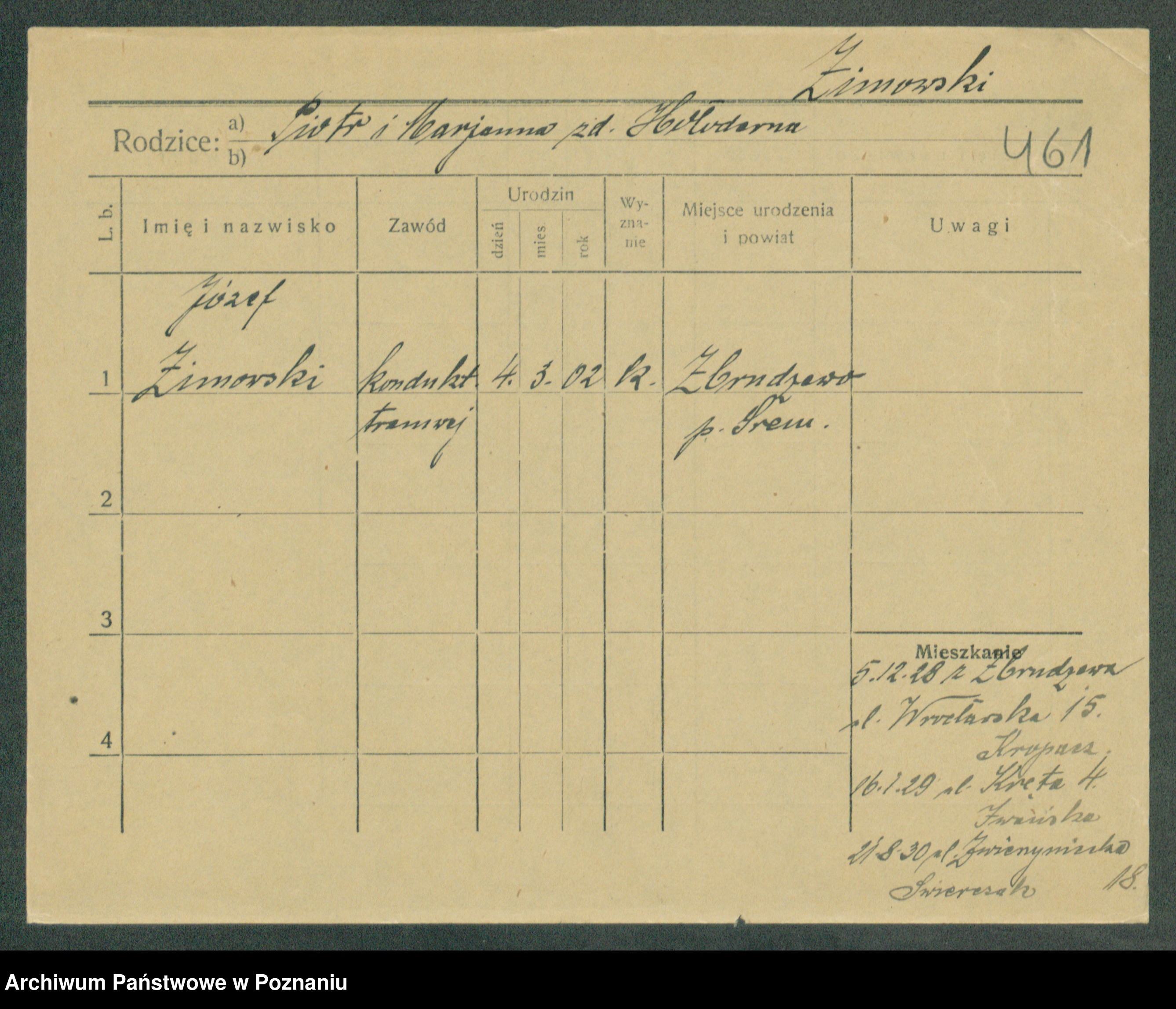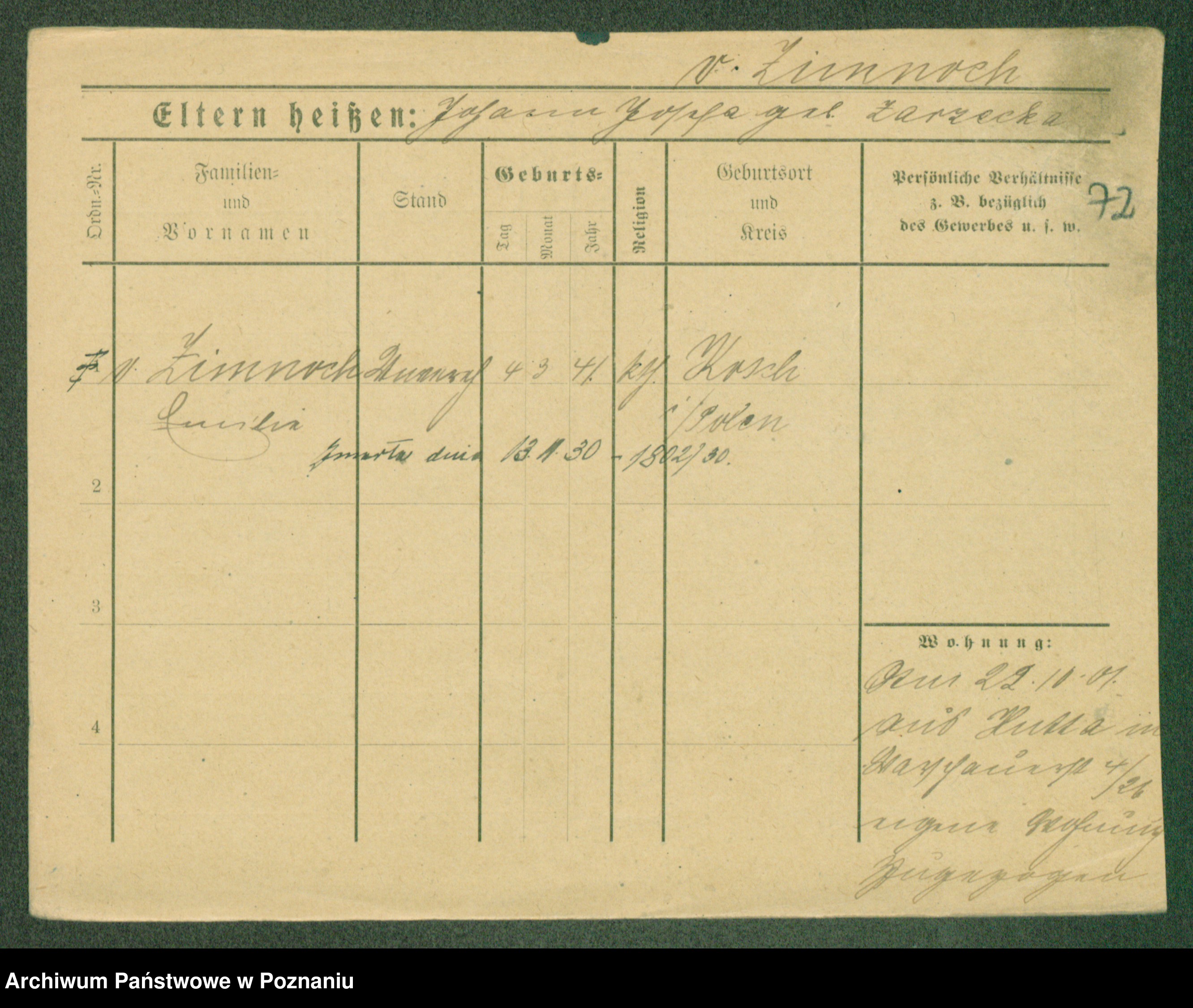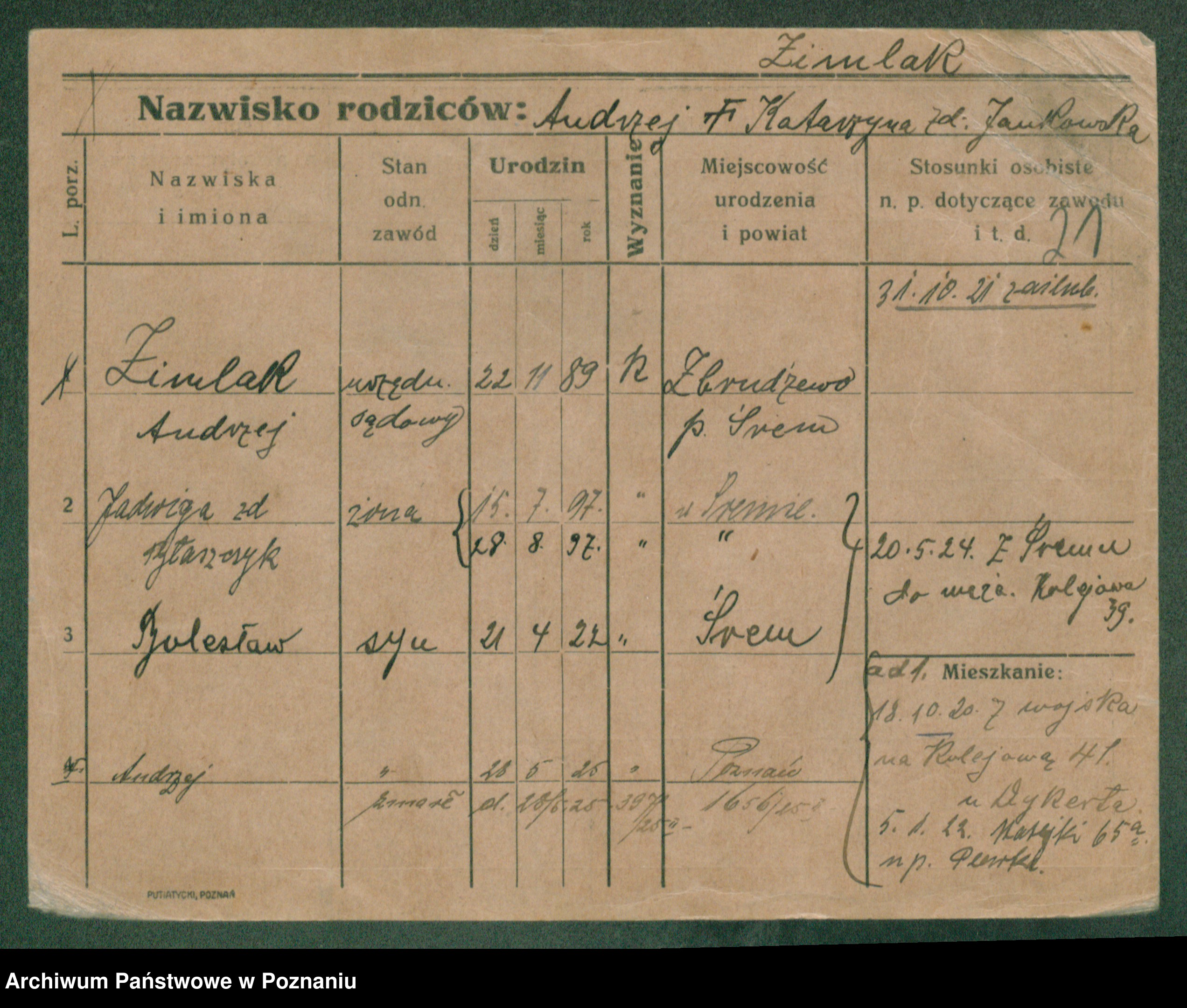 Podgląd karty osobowej dostępny jest po kliknięciu na nazwisko lub ikonkę karty. Można dokonywać powiększenia (ikony na górze) lub przechodzić między kolejnymi skanami (strzałki po bokach).