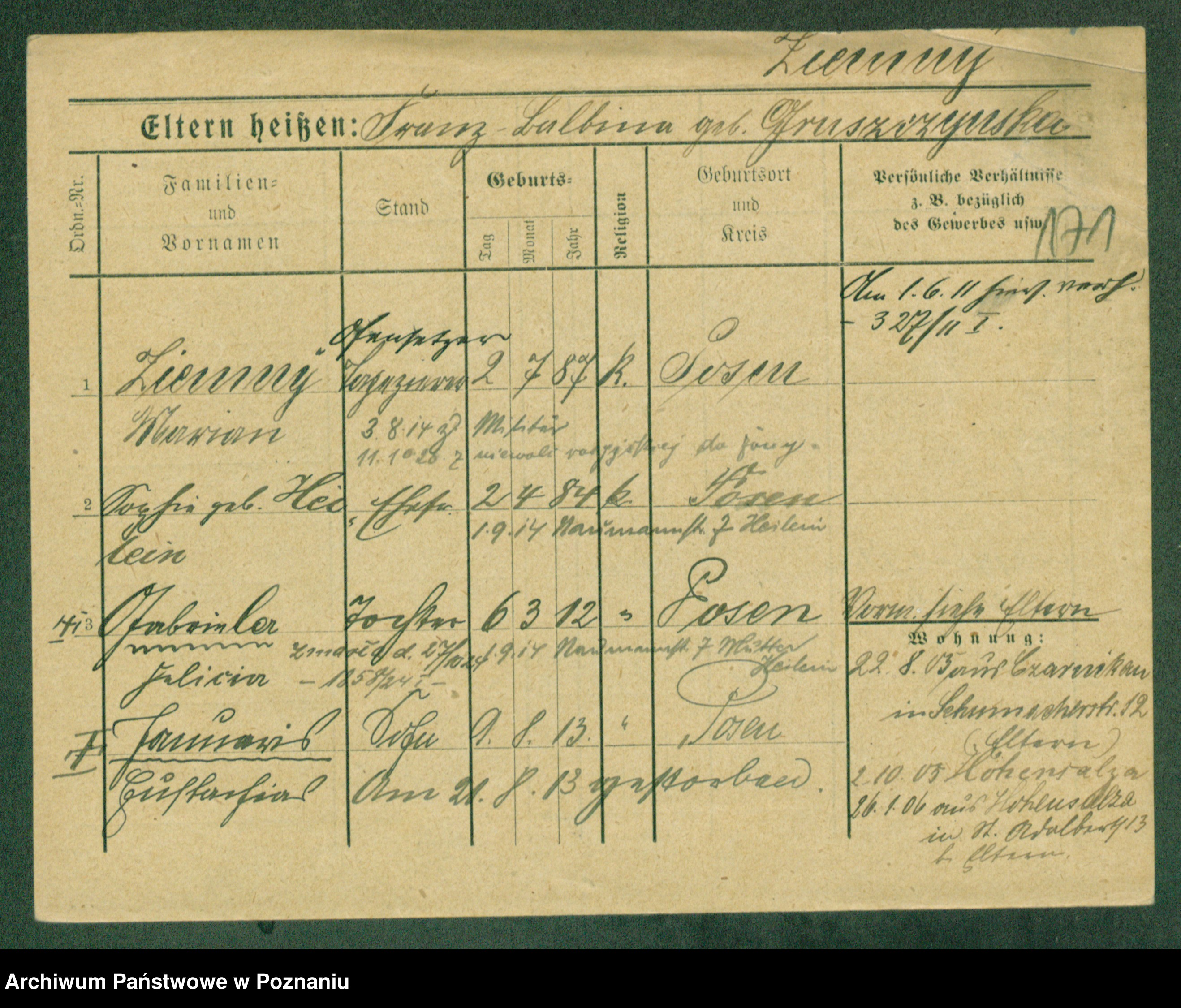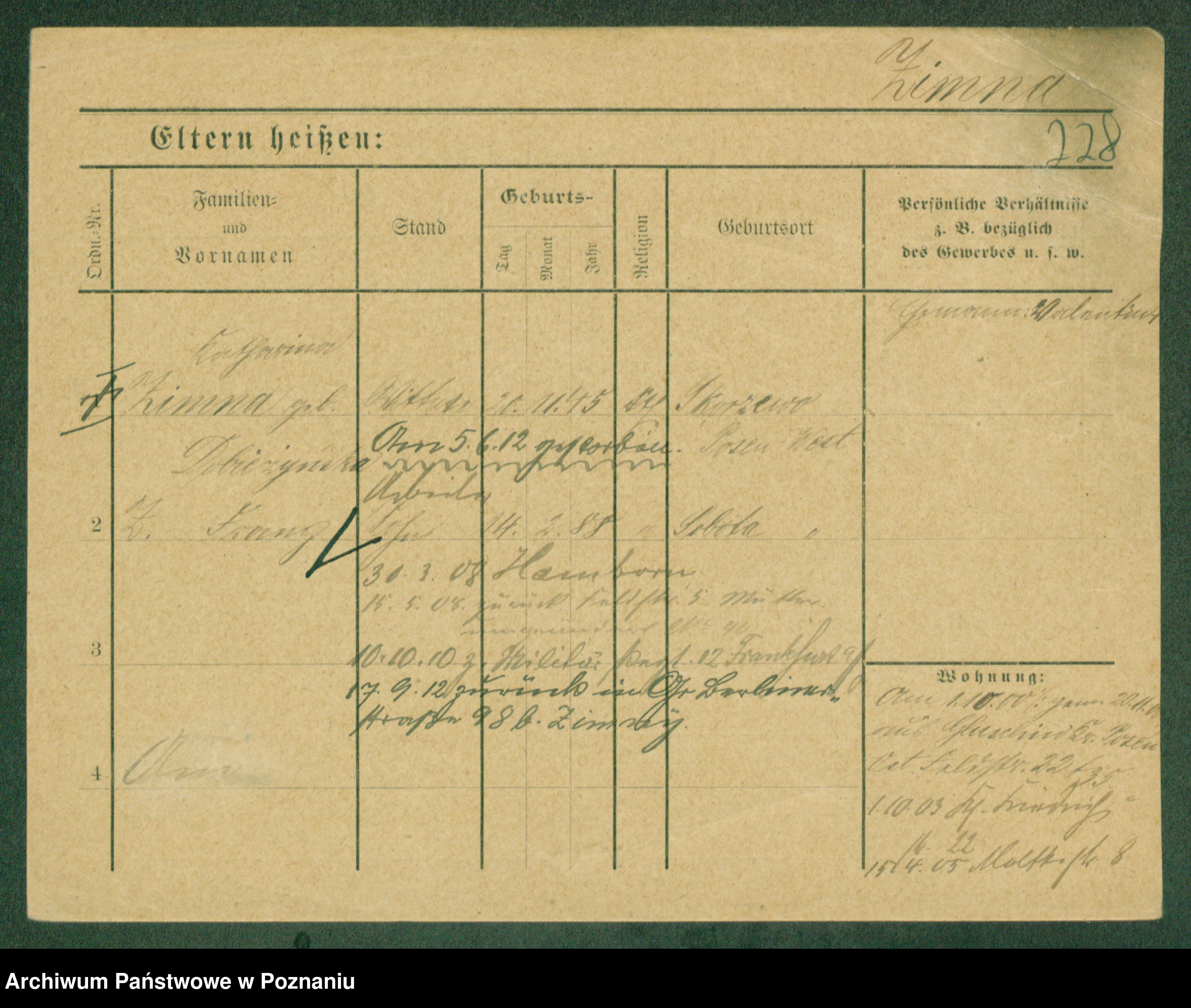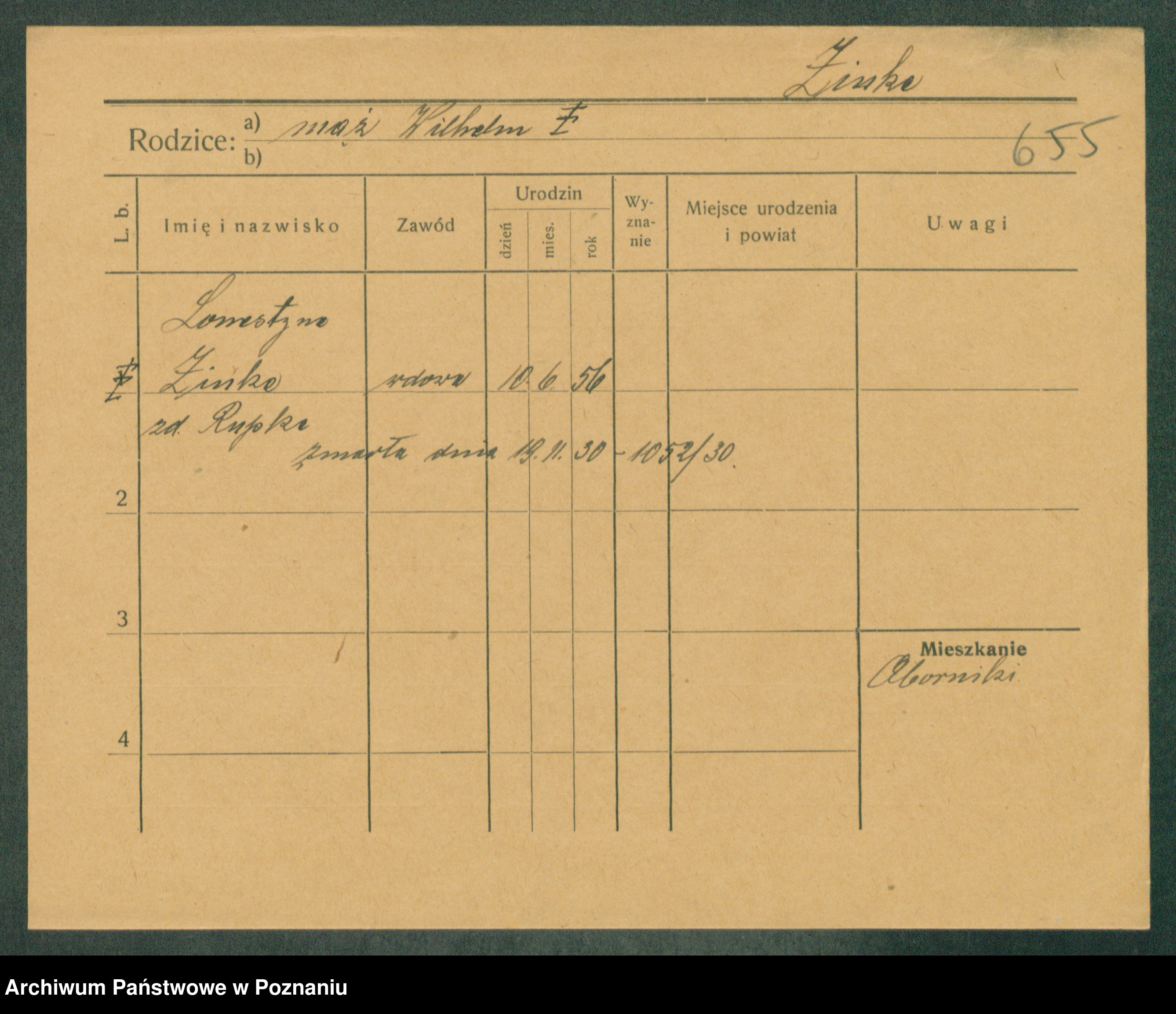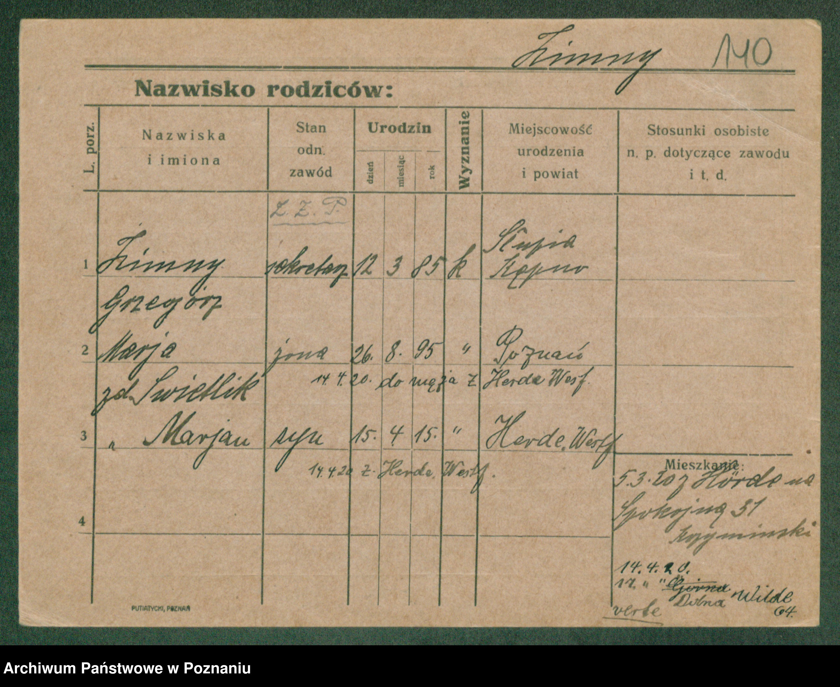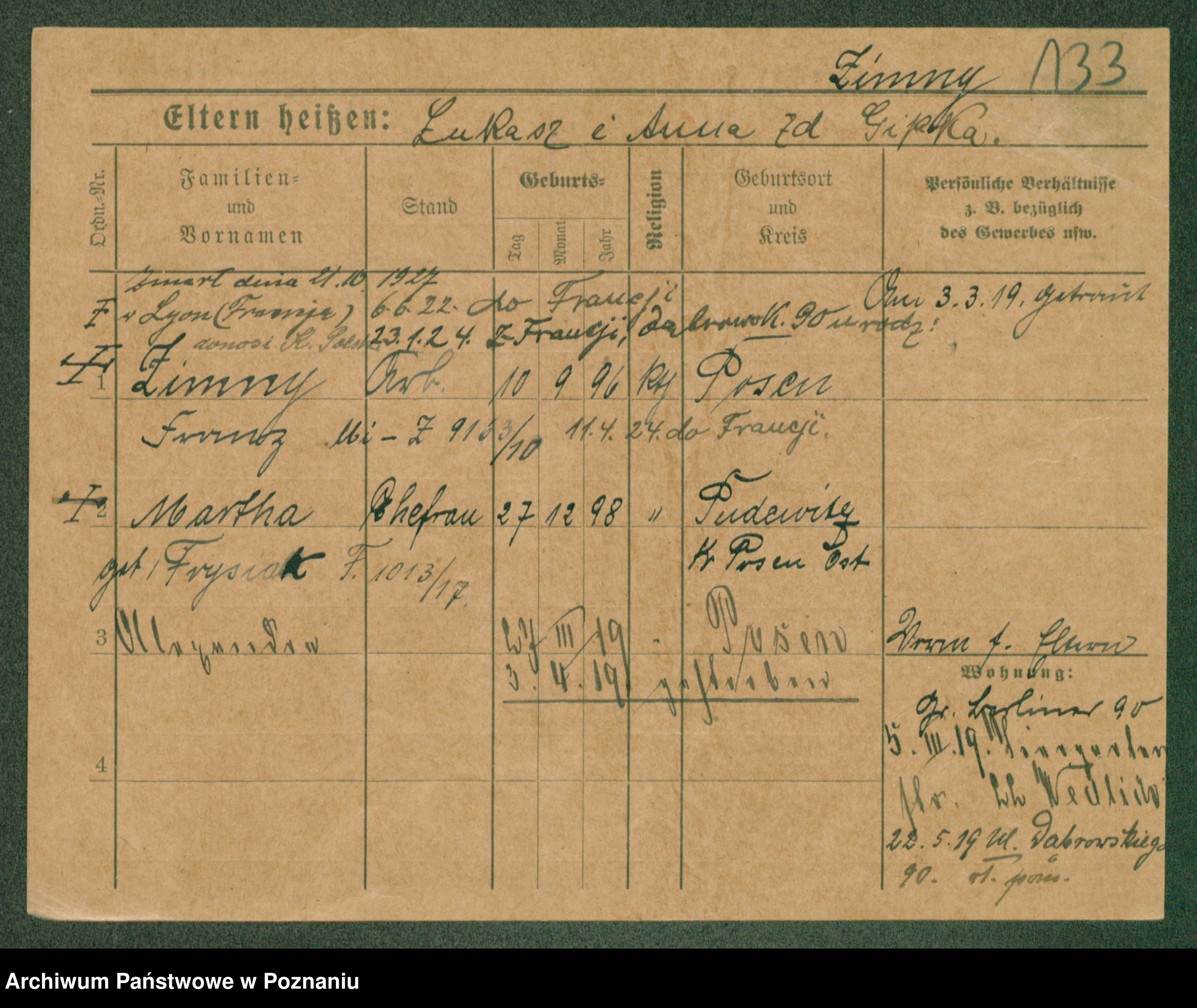 Podgląd karty osobowej dostępny jest po kliknięciu na nazwisko lub ikonkę karty. Można dokonywać powiększenia (ikony na górze) lub przechodzić między kolejnymi skanami (strzałki po bokach).