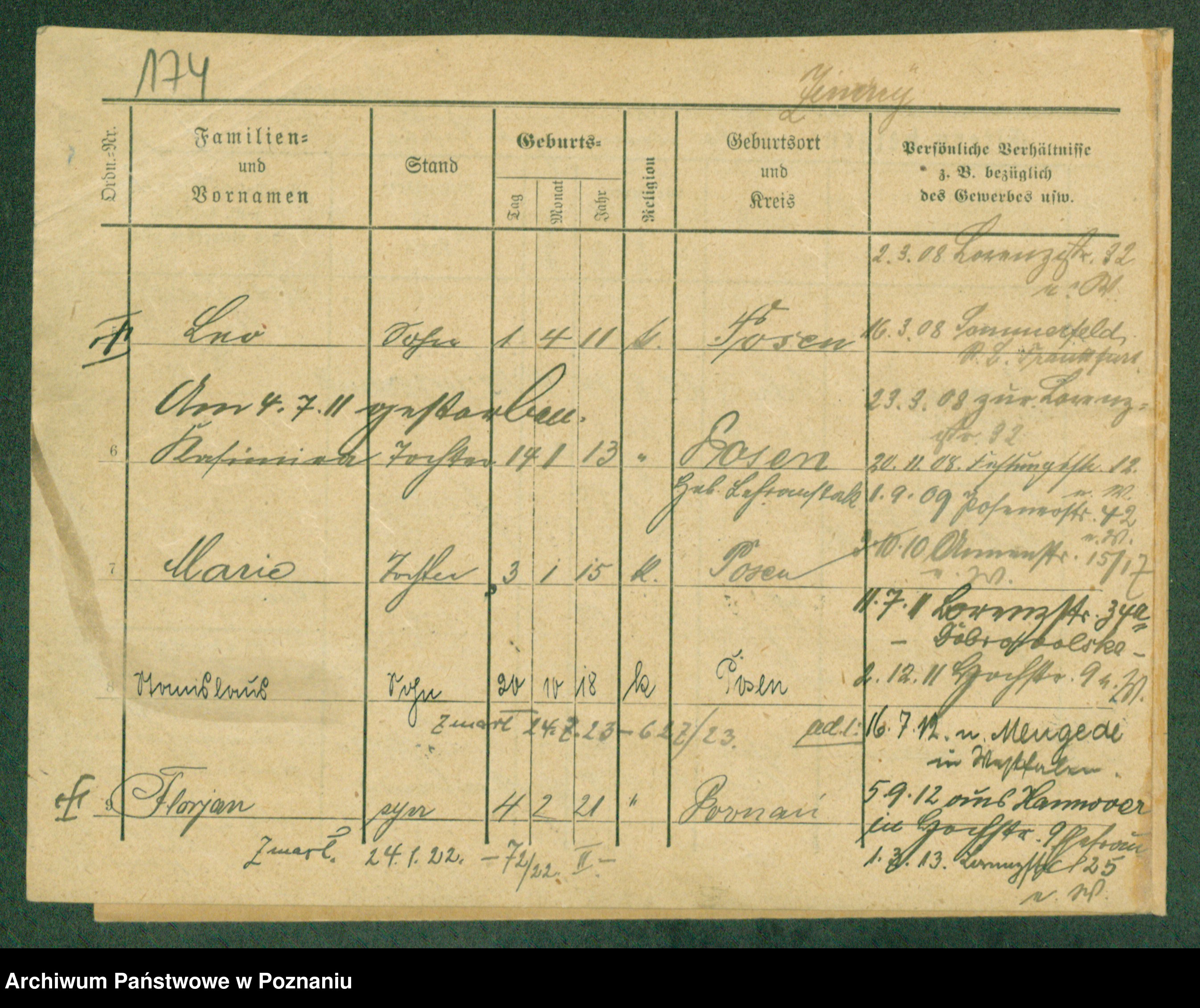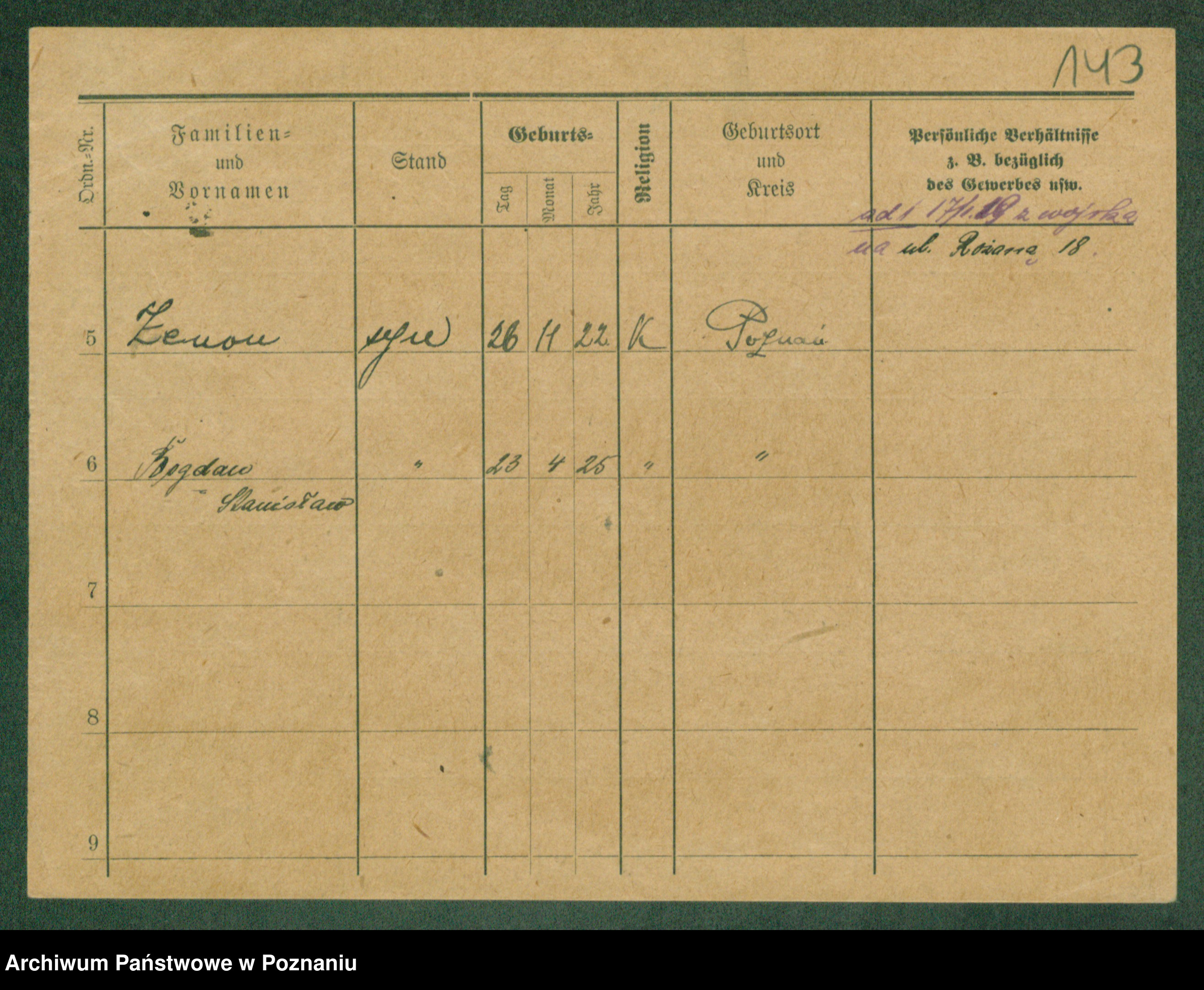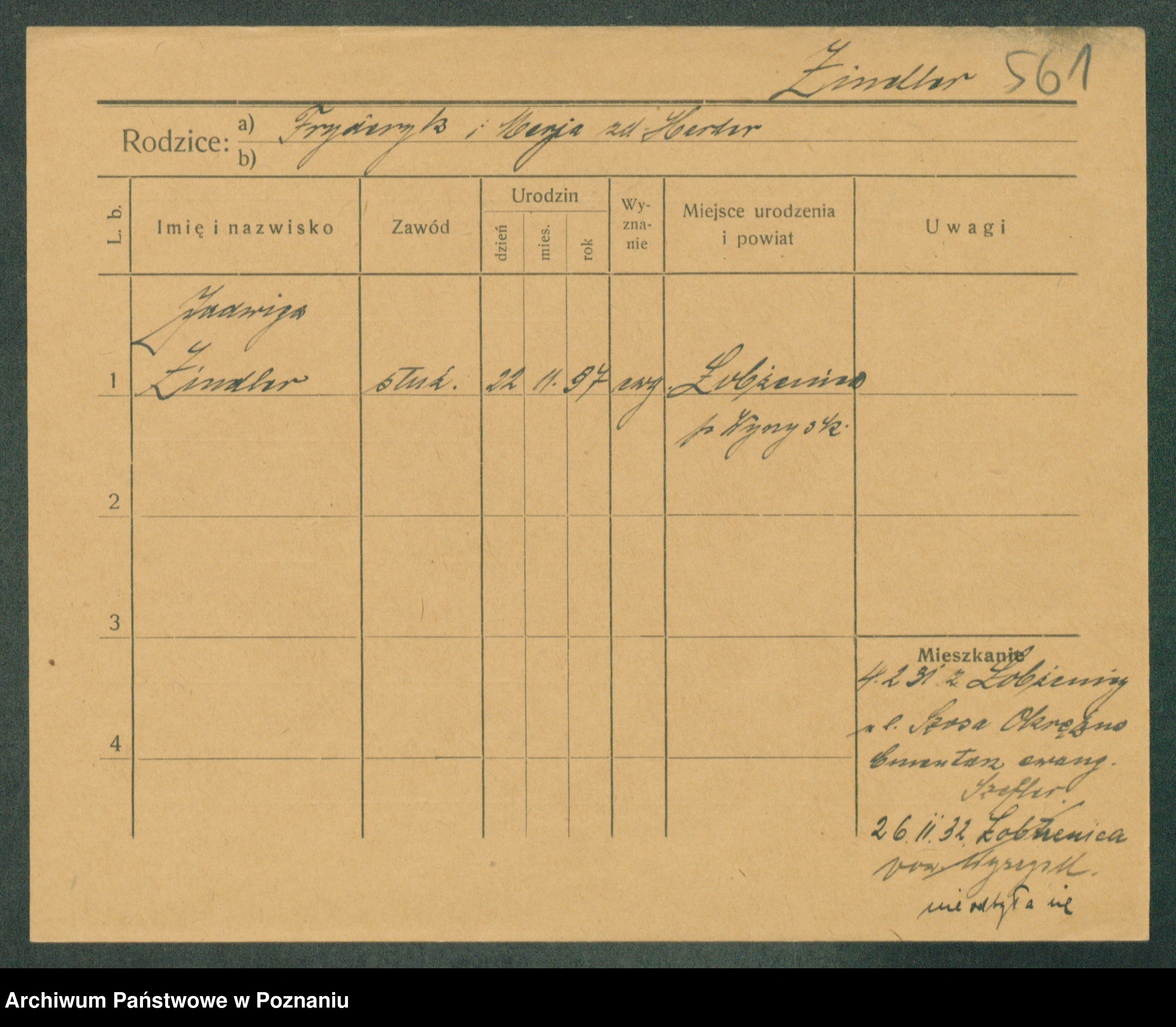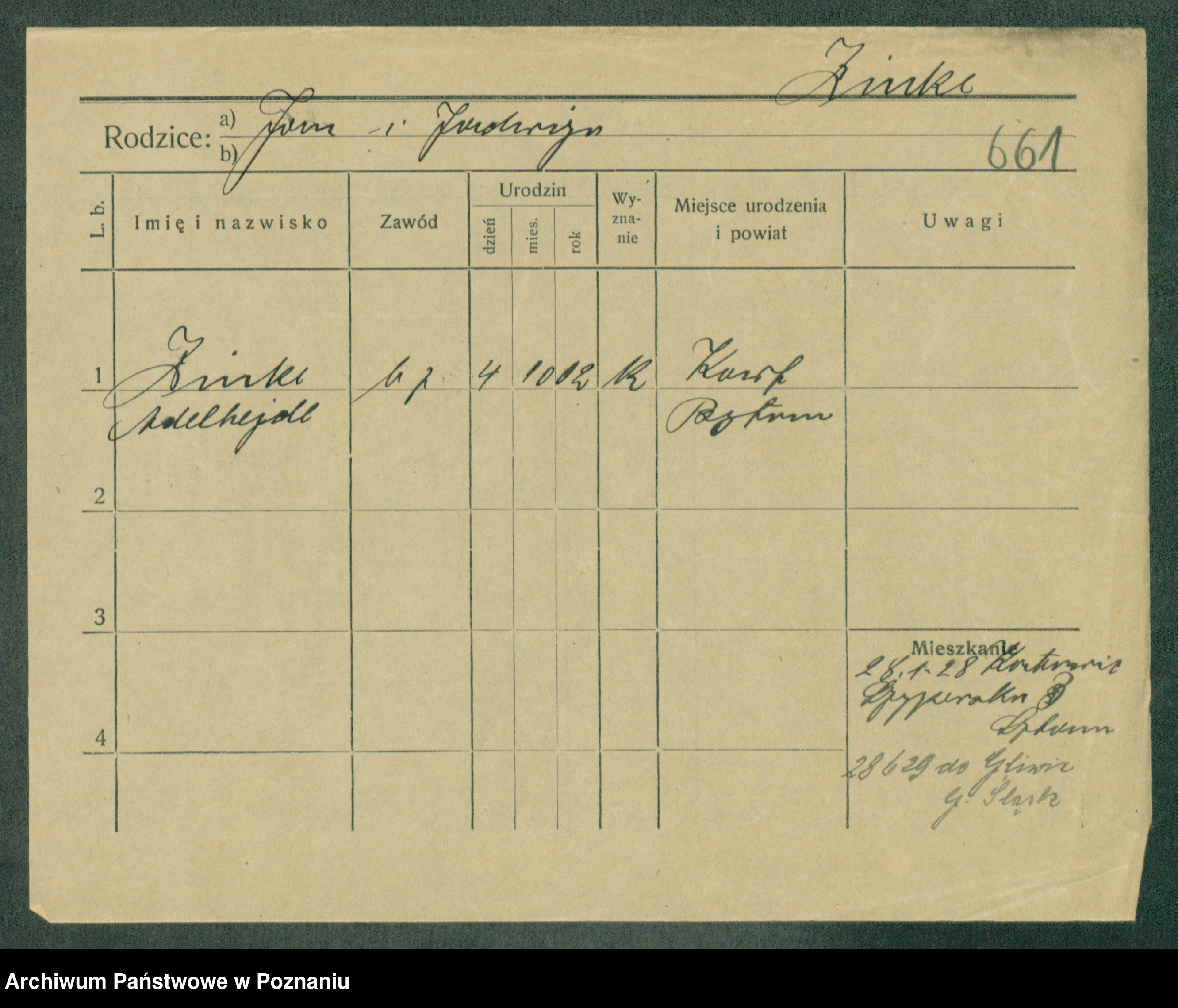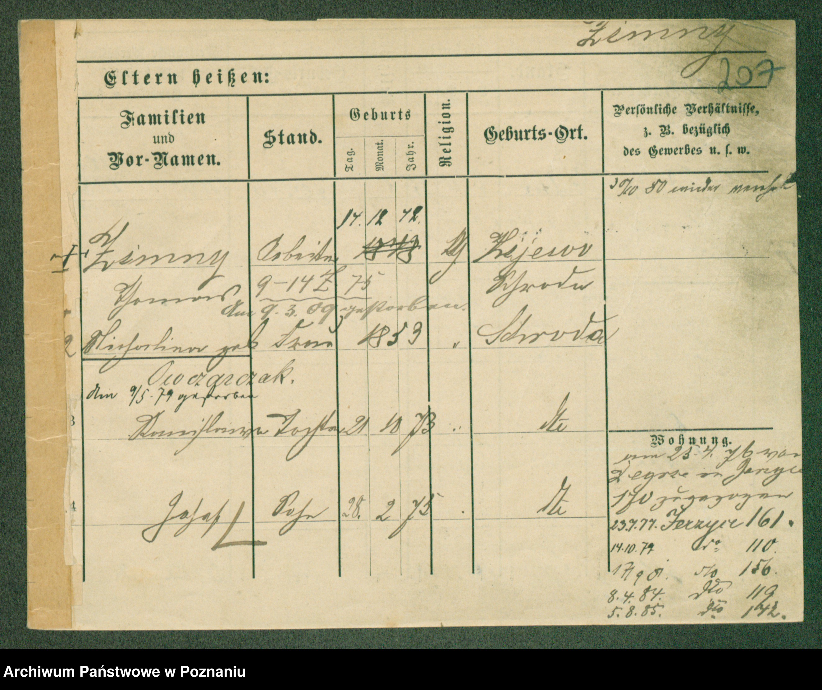 Podgląd karty osobowej dostępny jest po kliknięciu na nazwisko lub ikonkę karty. Można dokonywać powiększenia (ikony na górze) lub przechodzić między kolejnymi skanami (strzałki po bokach).