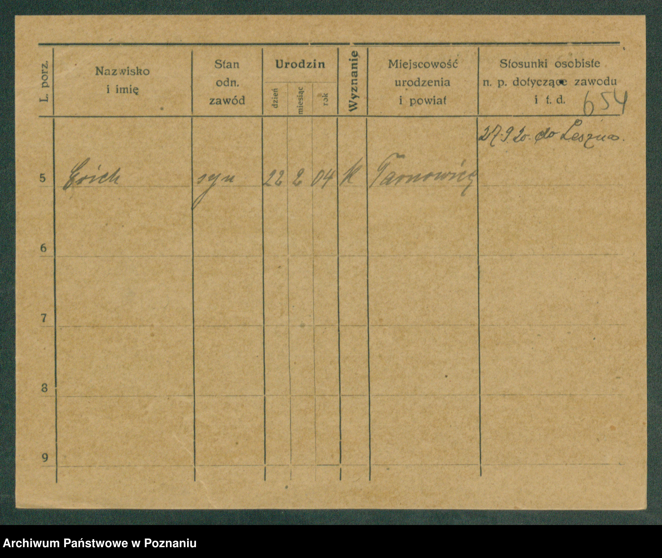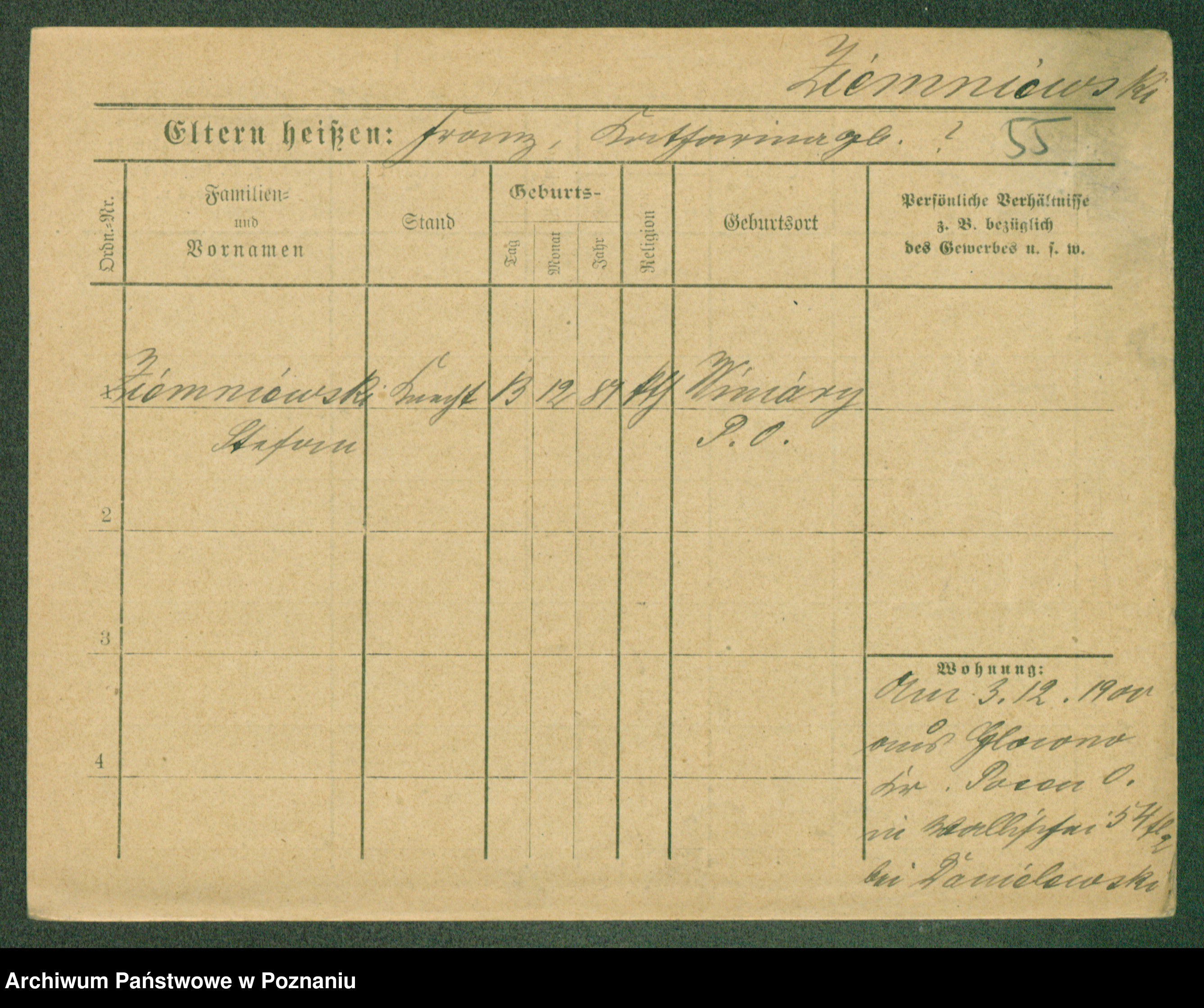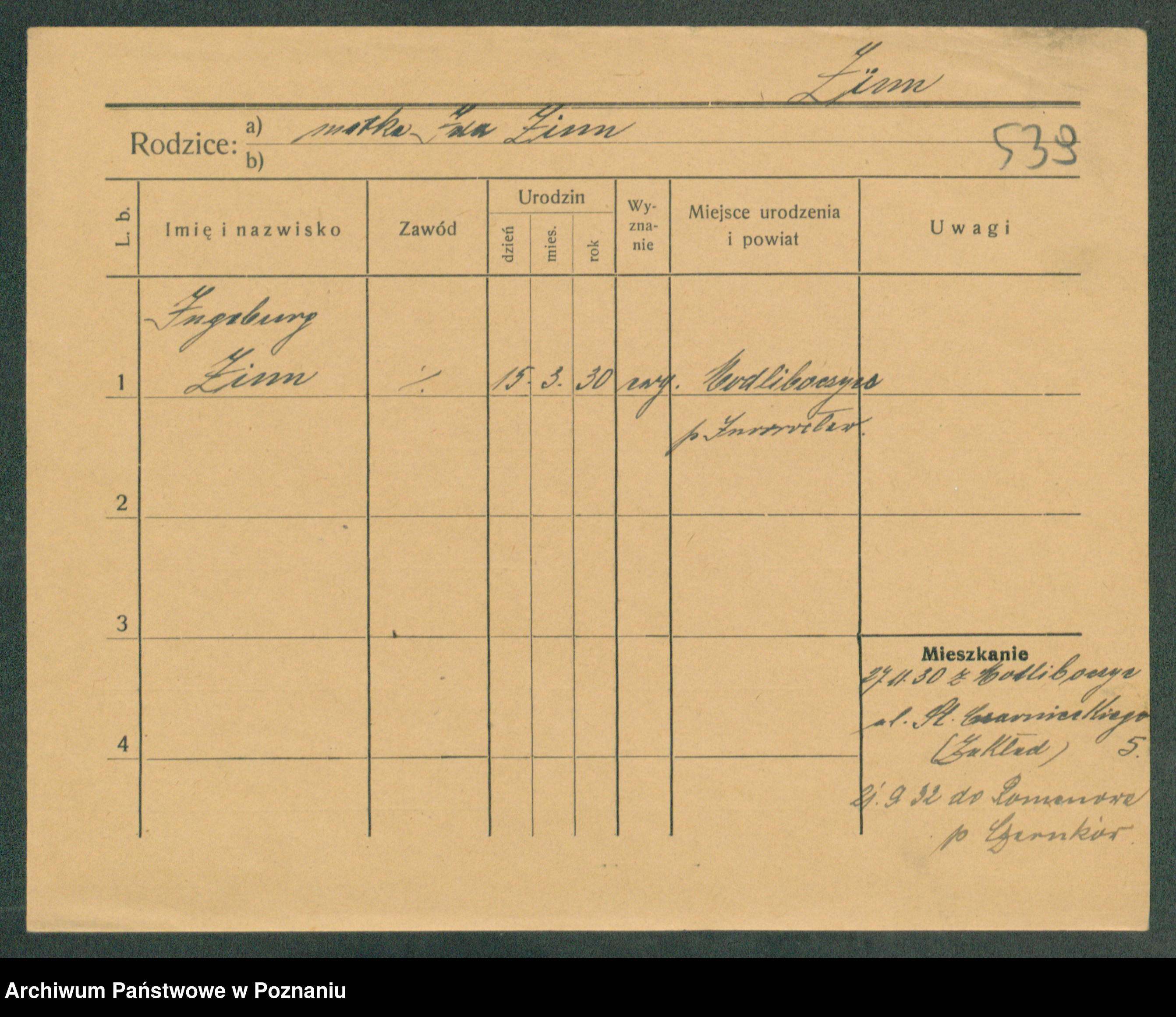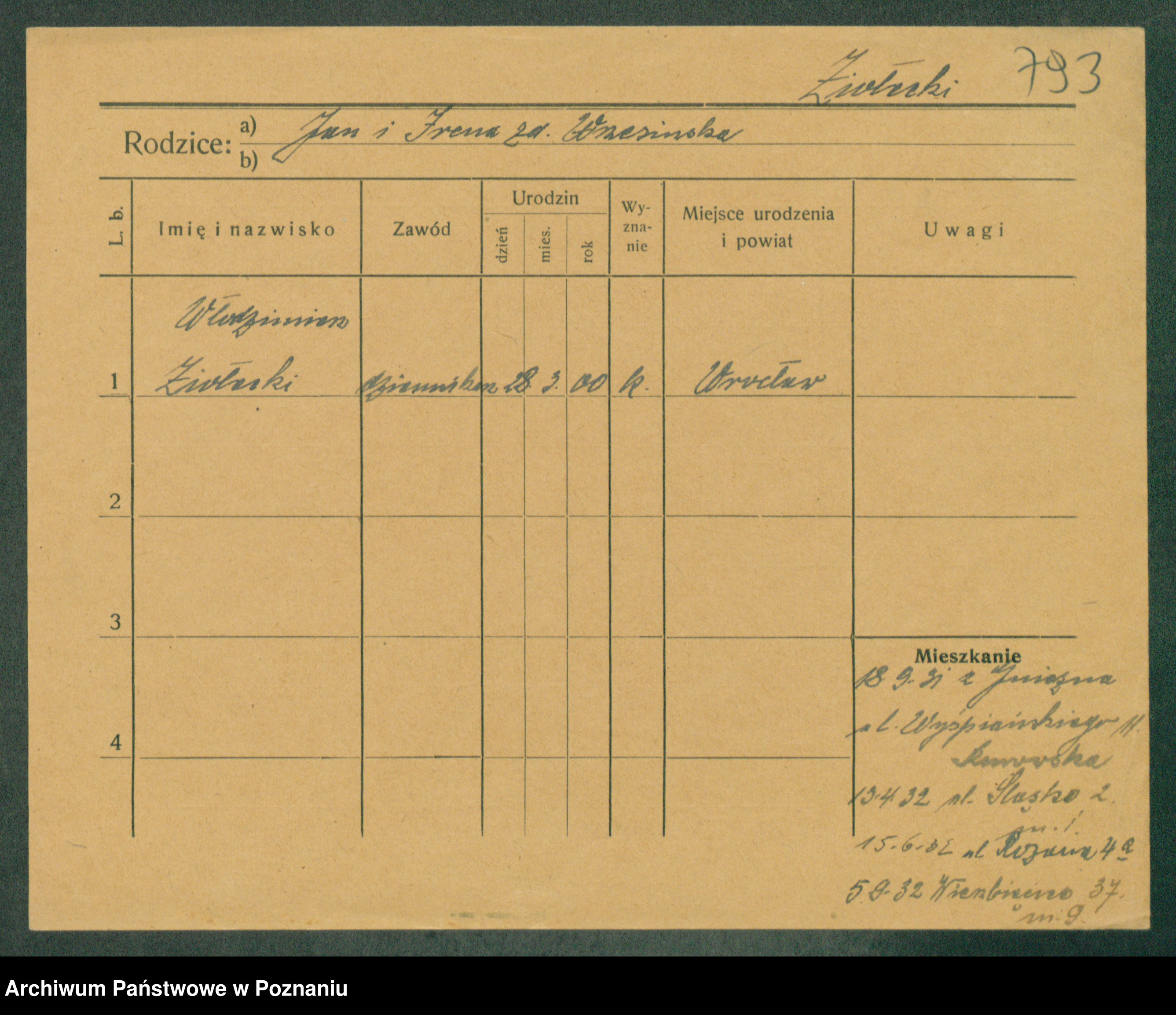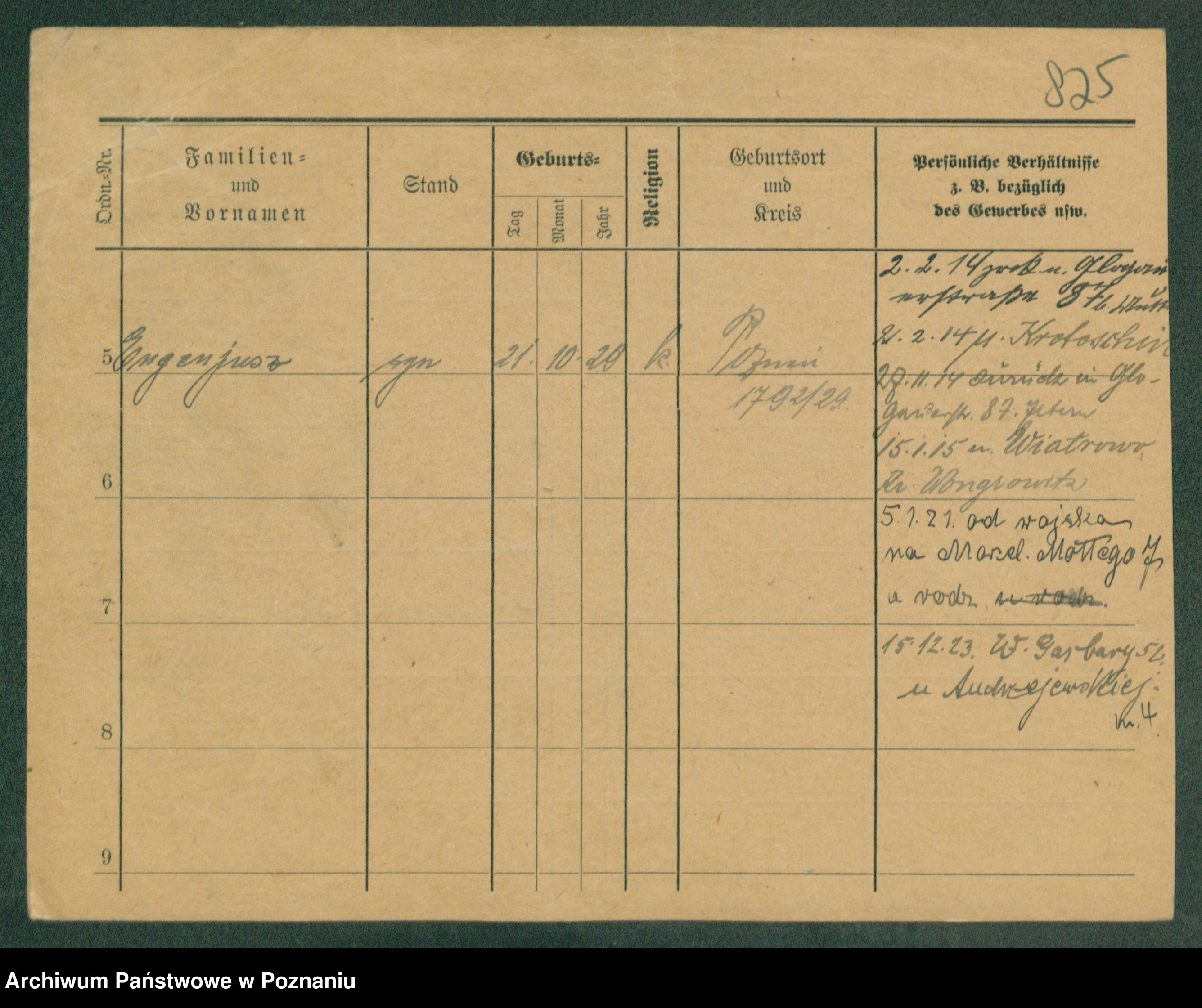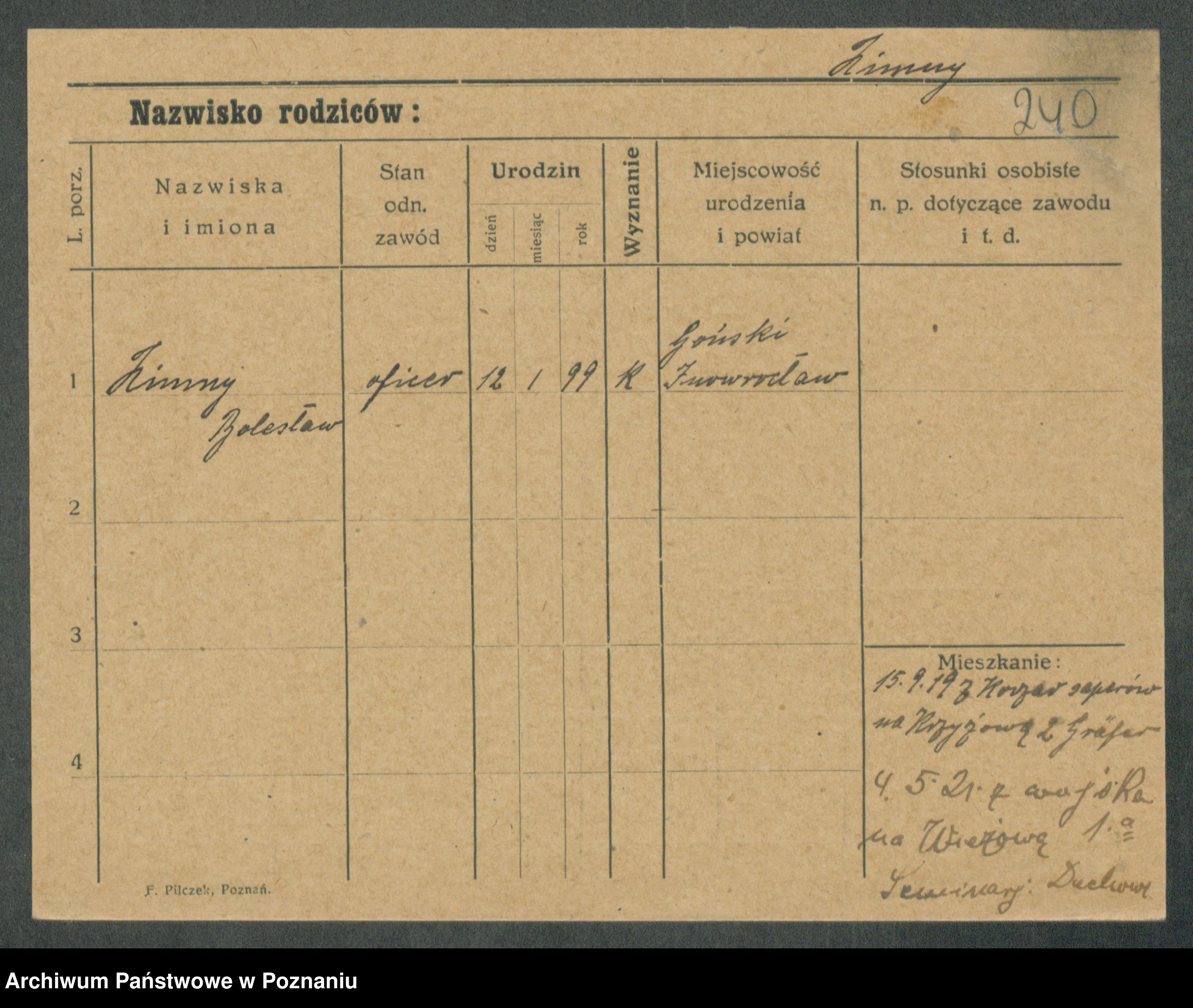 Podgląd karty osobowej dostępny jest po kliknięciu na nazwisko lub ikonkę karty. Można dokonywać powiększenia (ikony na górze) lub przechodzić między kolejnymi skanami (strzałki po bokach).