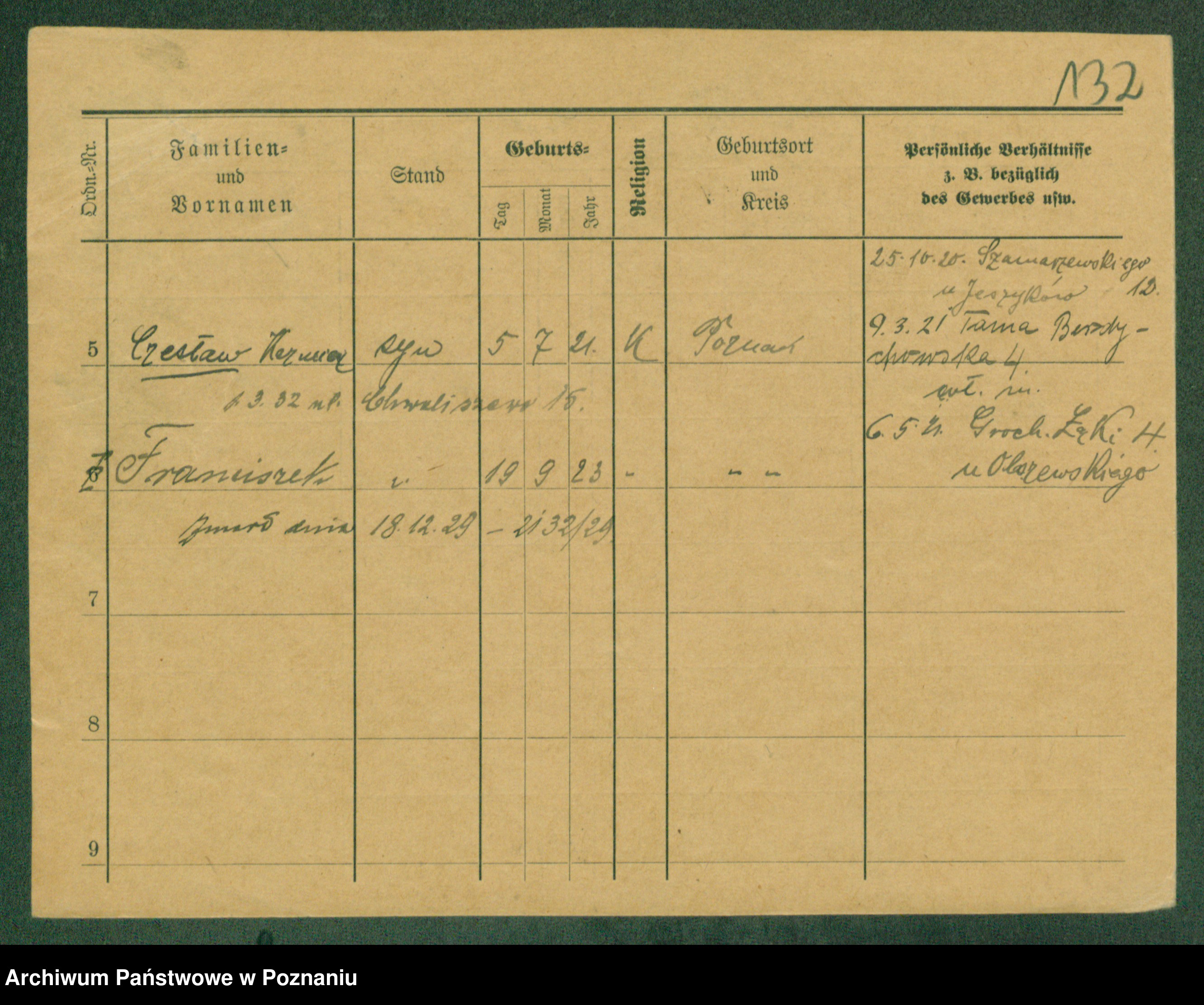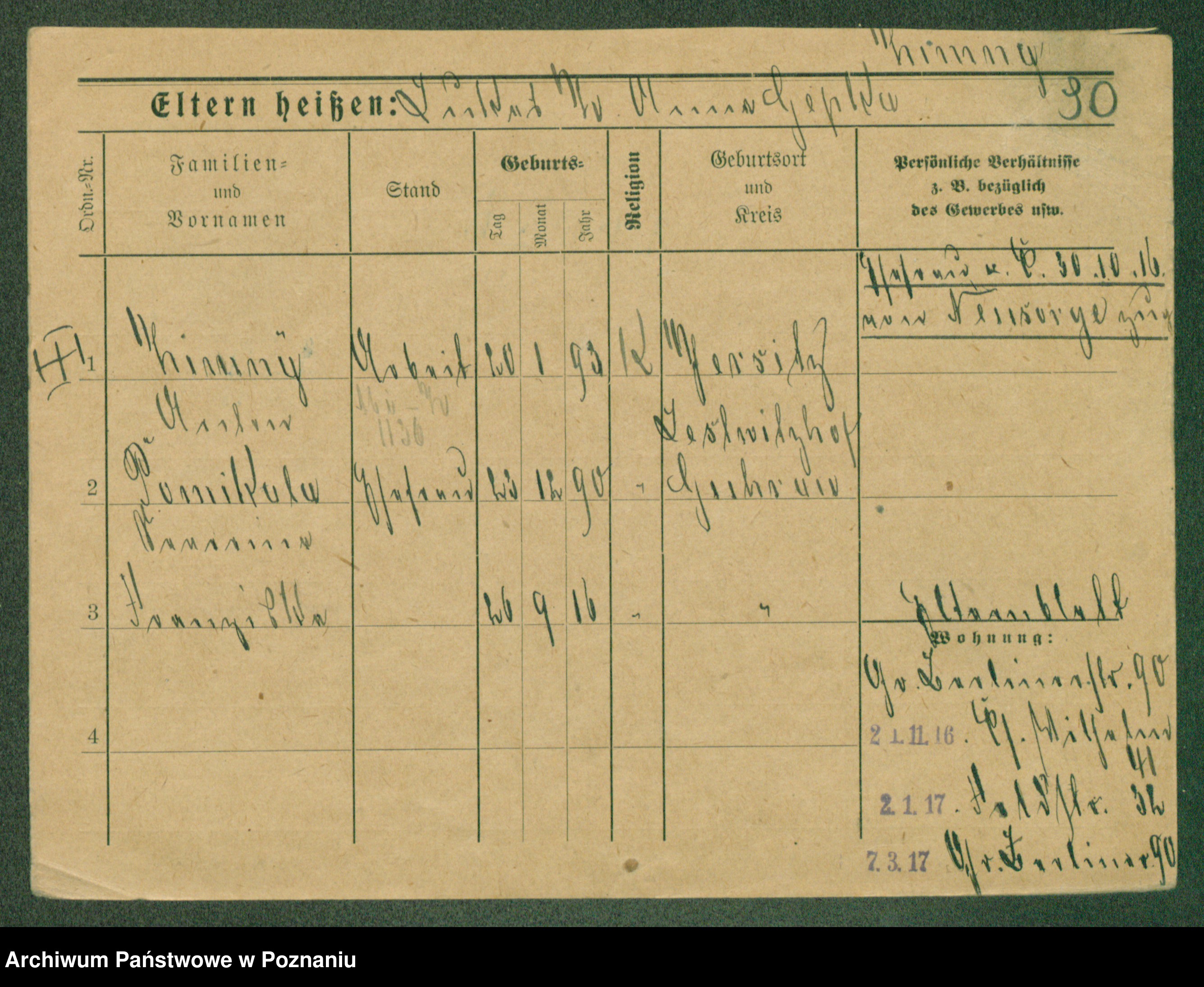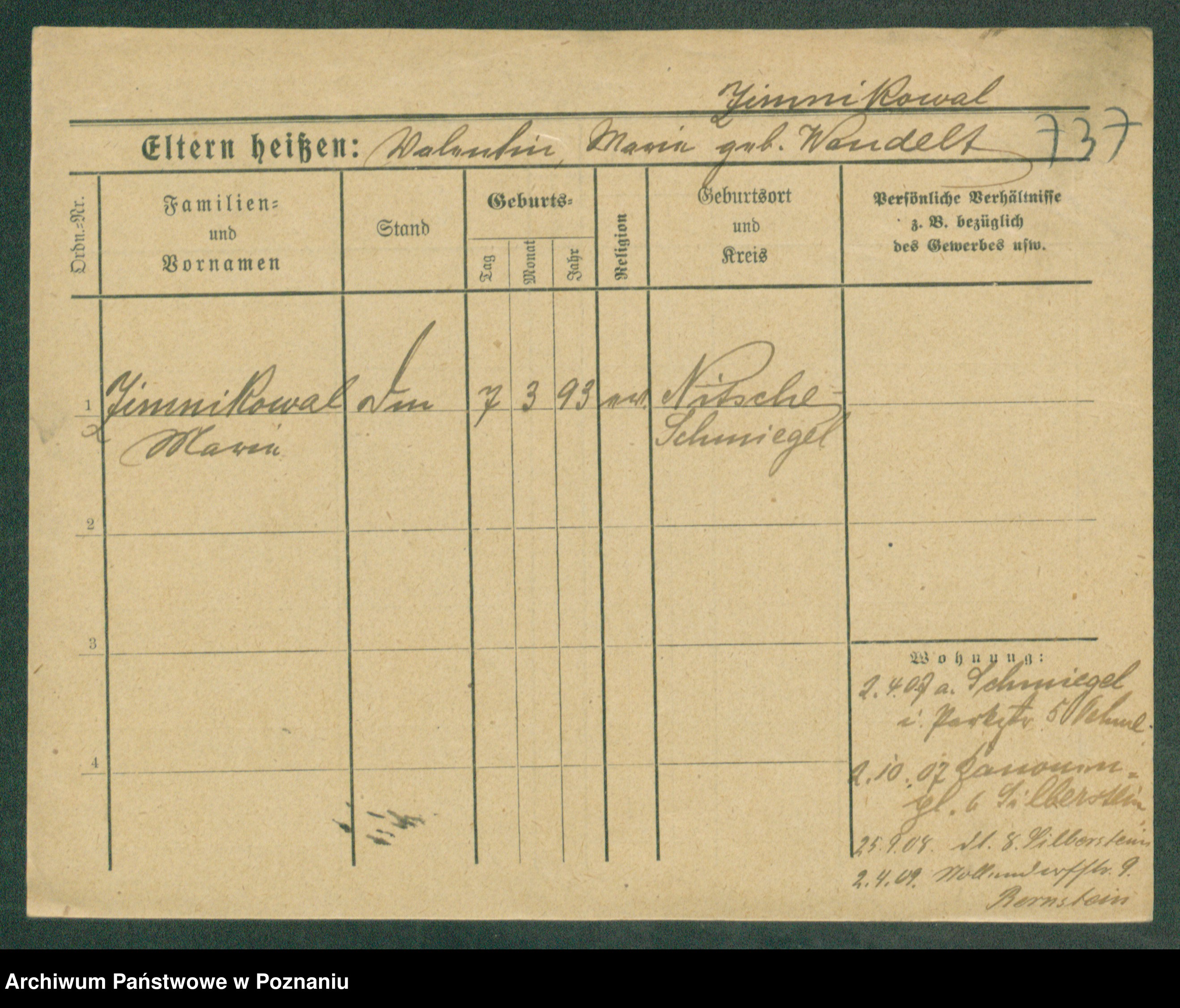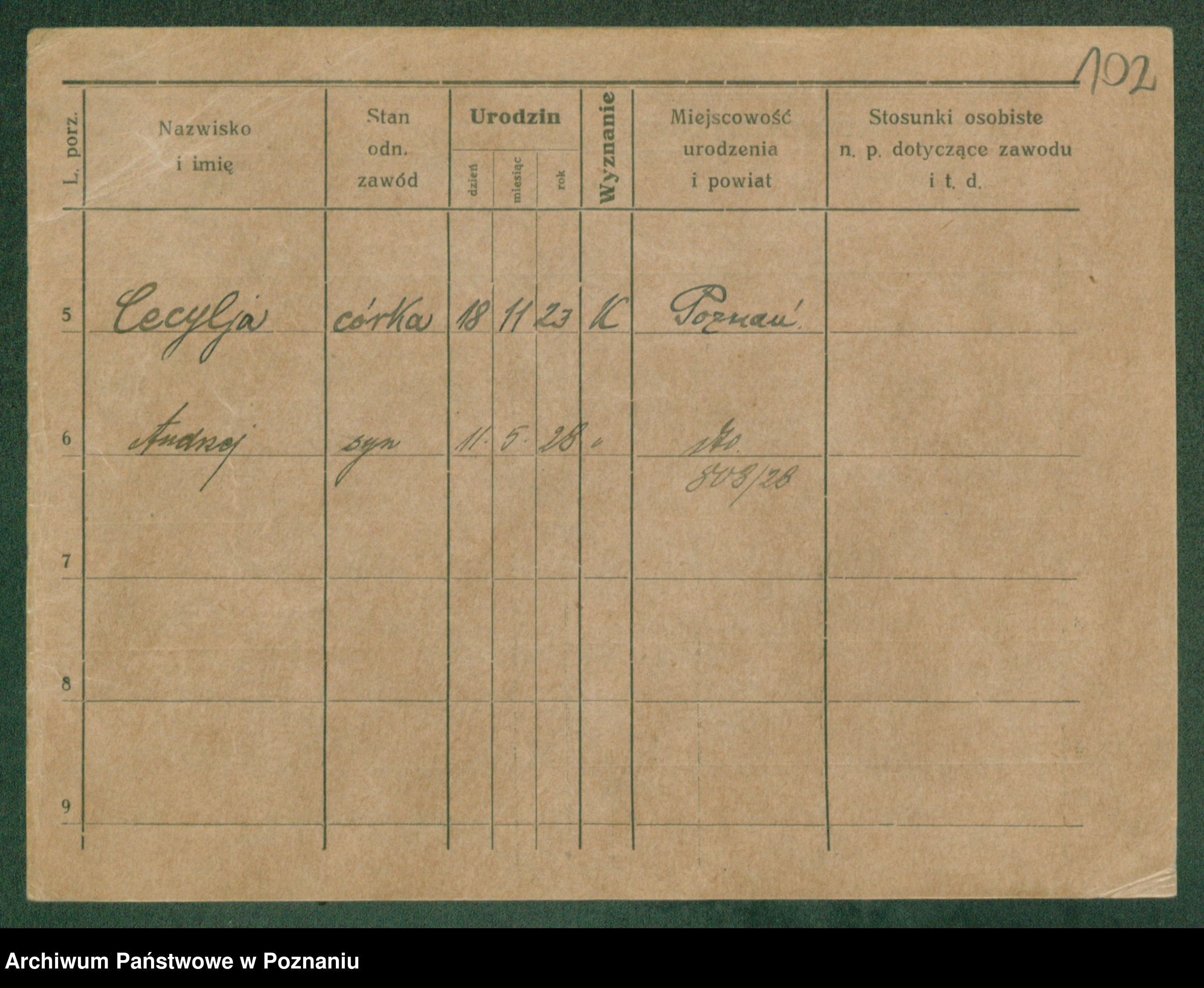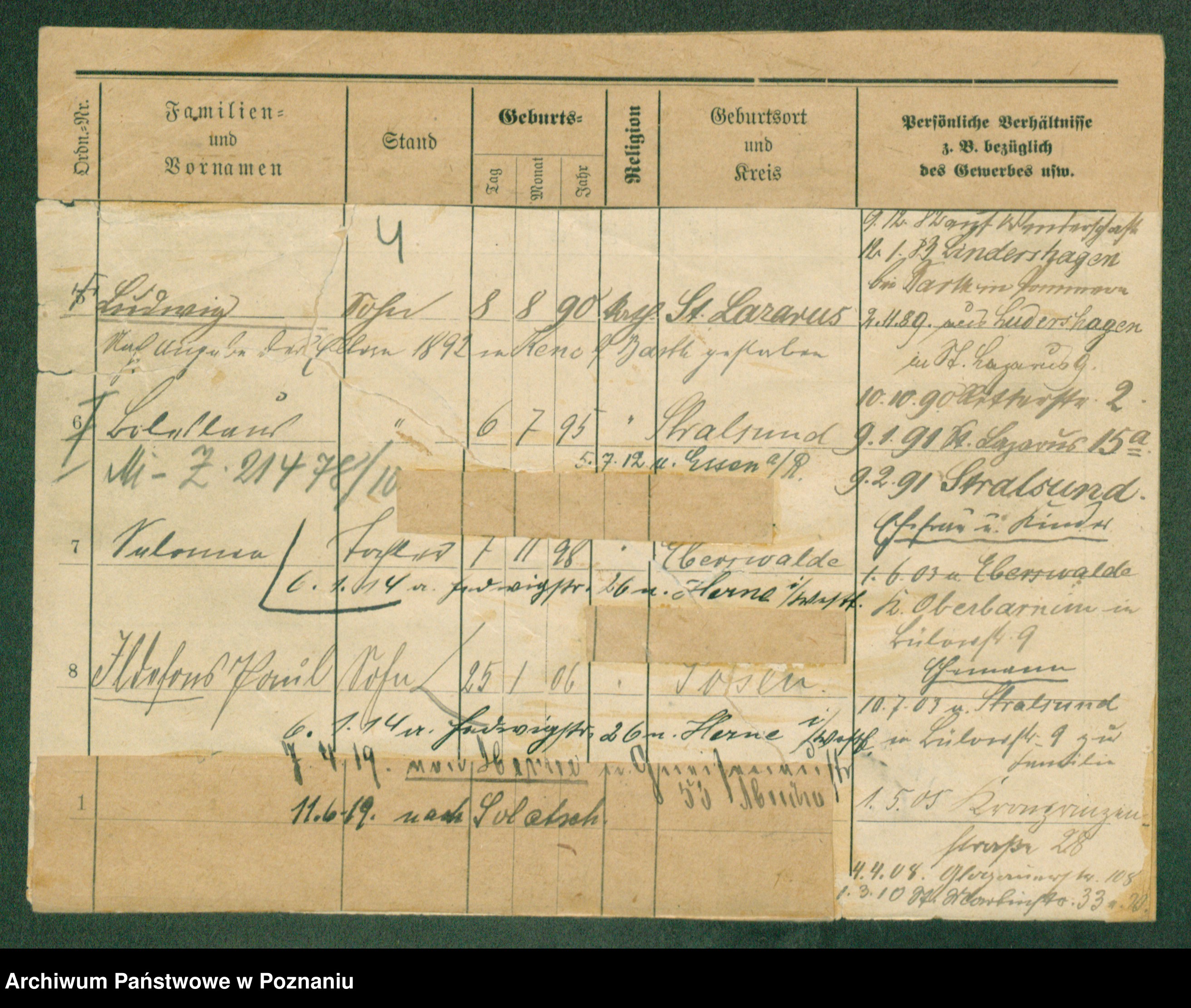 Podgląd karty osobowej dostępny jest po kliknięciu na nazwisko lub ikonkę karty. Można dokonywać powiększenia (ikony na górze) lub przechodzić między kolejnymi skanami (strzałki po bokach).