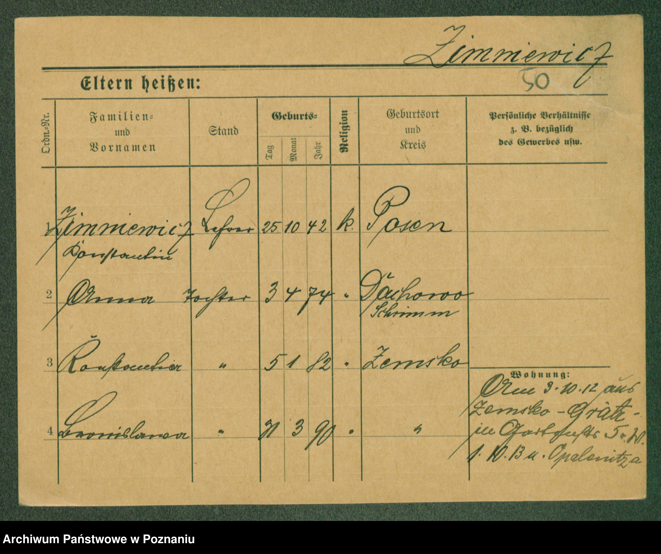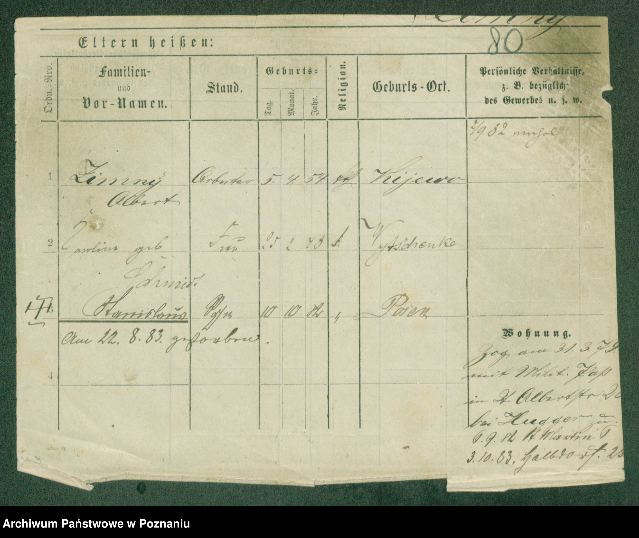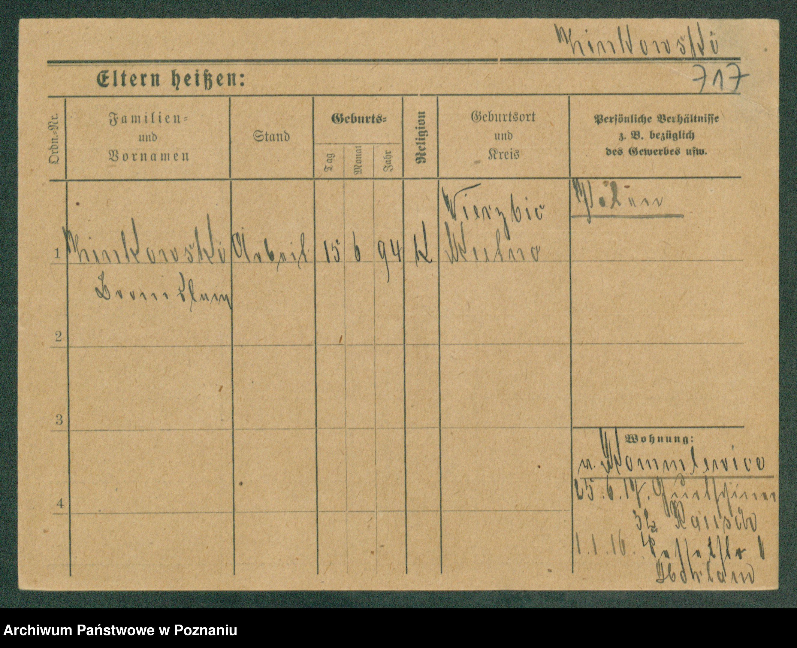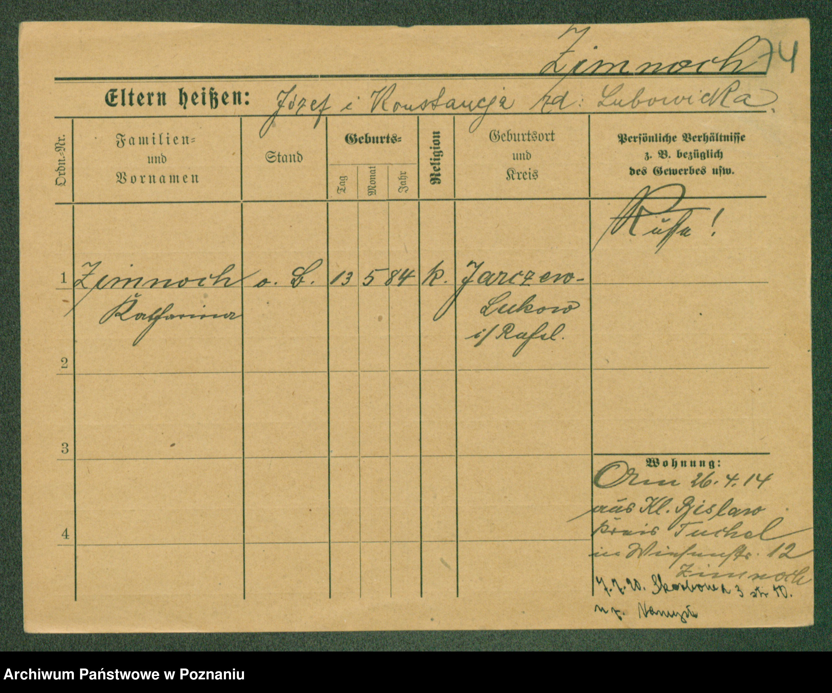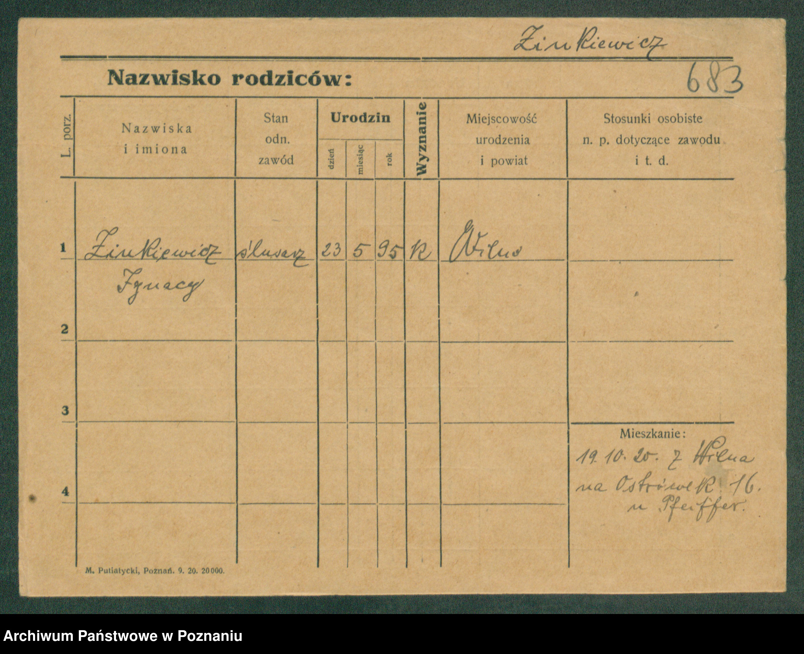 Podgląd karty osobowej dostępny jest po kliknięciu na nazwisko lub ikonkę karty. Można dokonywać powiększenia (ikony na górze) lub przechodzić między kolejnymi skanami (strzałki po bokach).