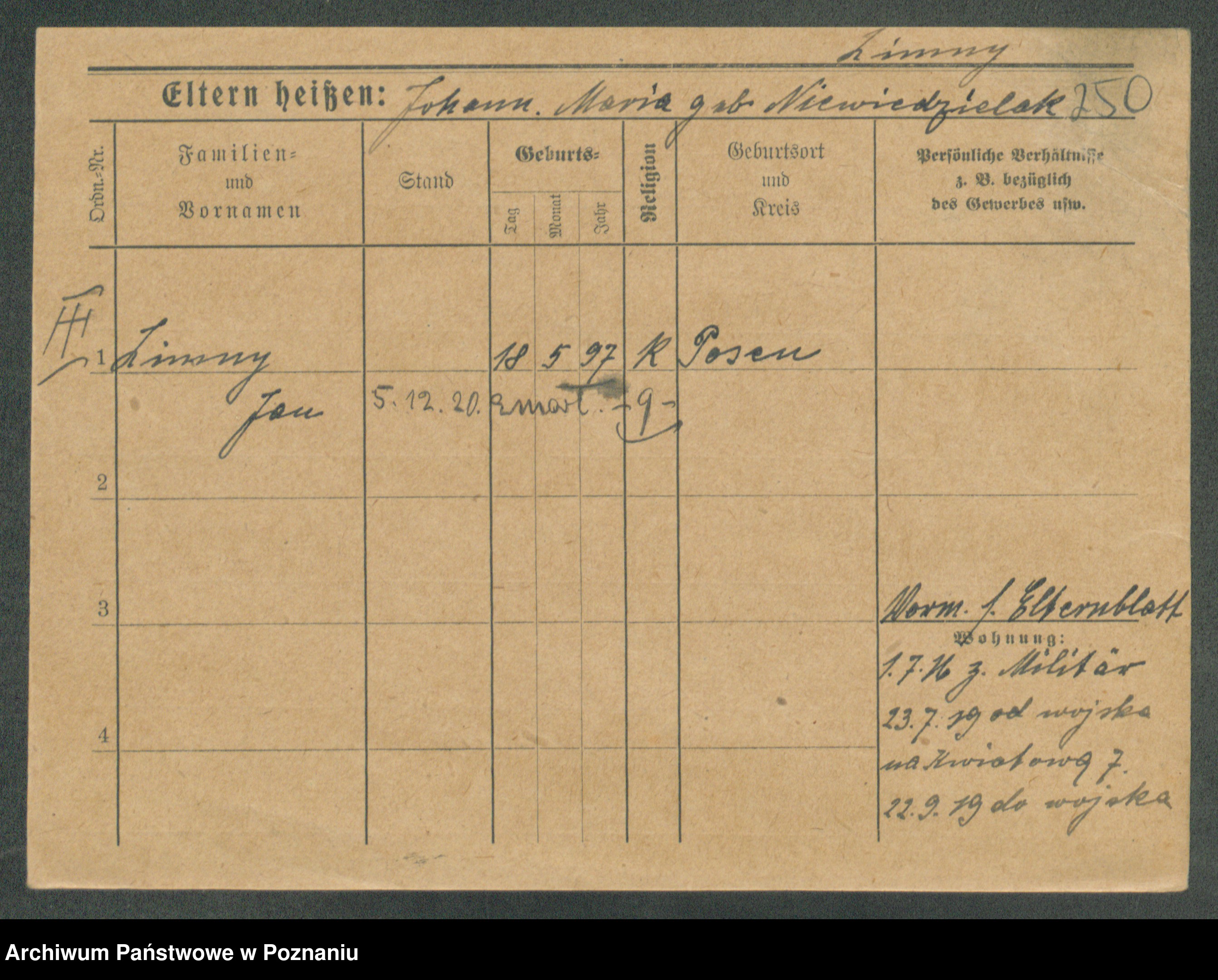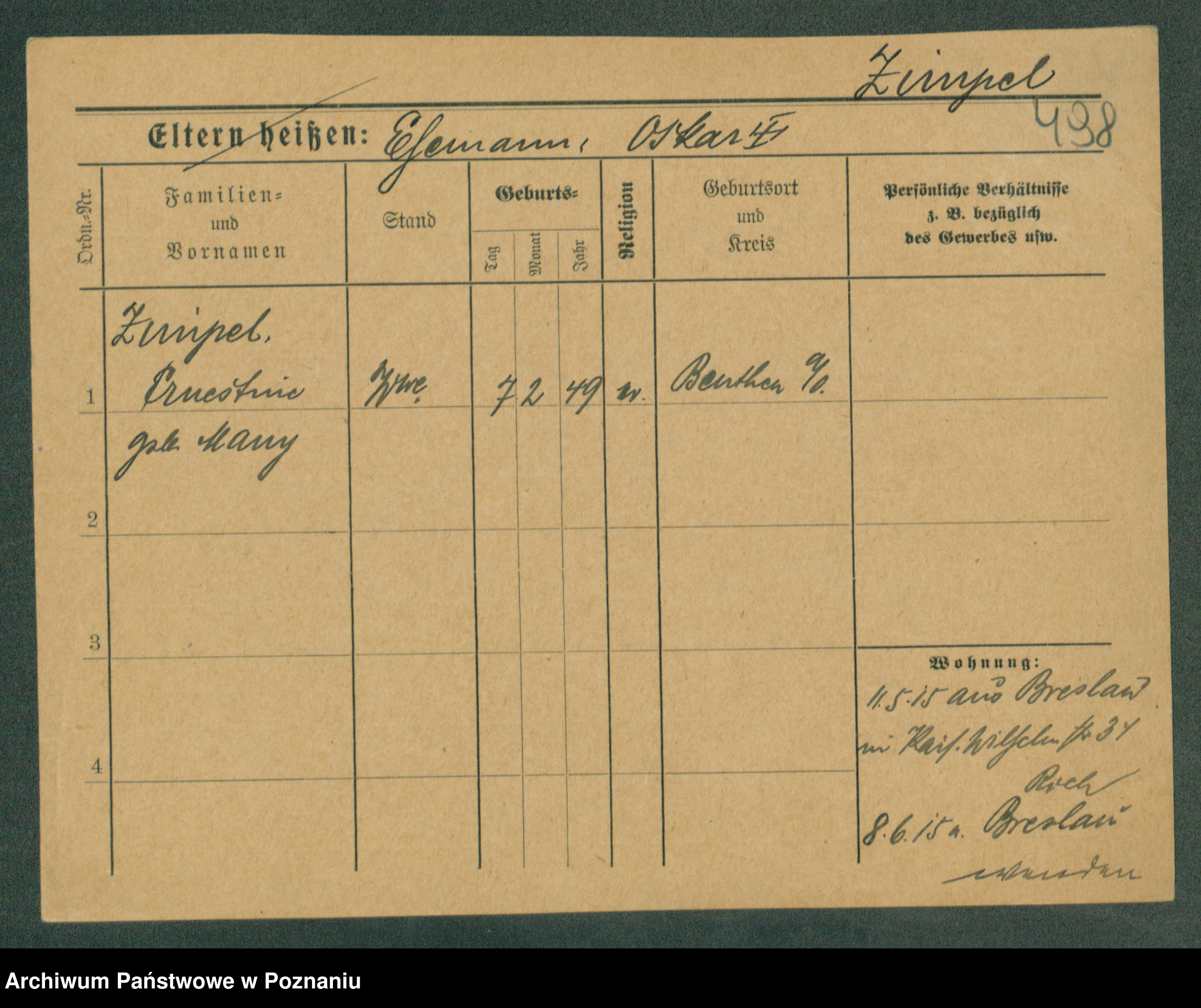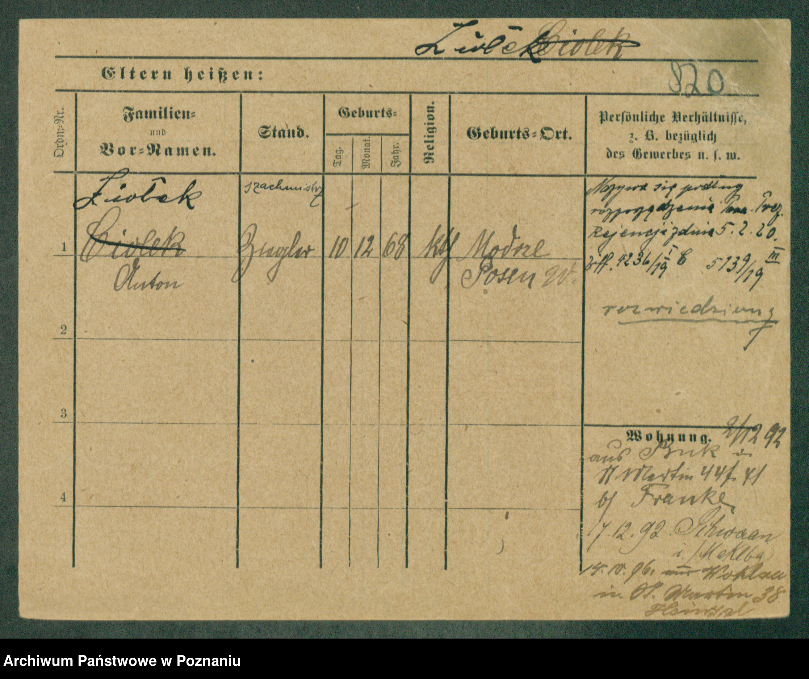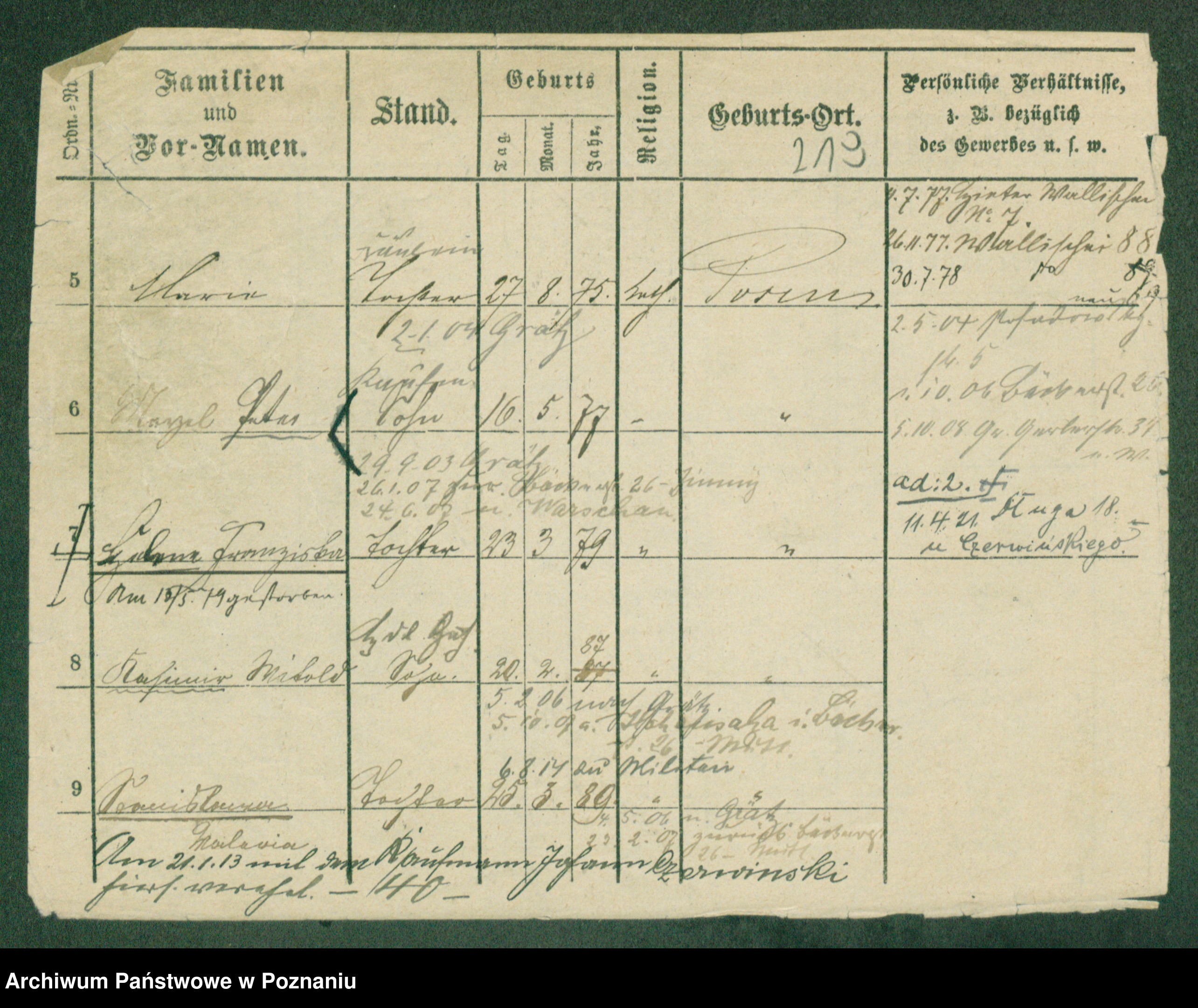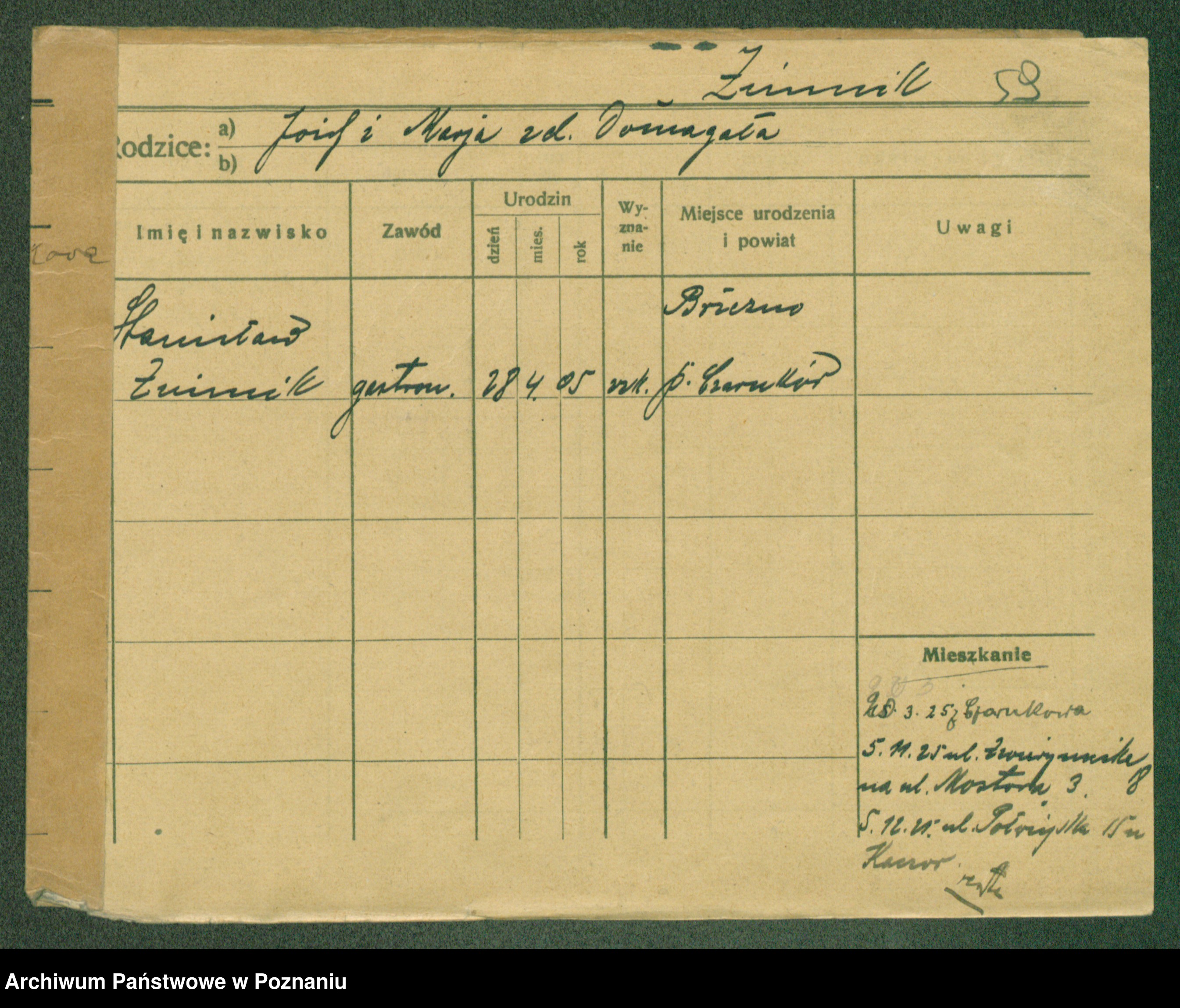 Podgląd karty osobowej dostępny jest po kliknięciu na nazwisko lub ikonkę karty. Można dokonywać powiększenia (ikony na górze) lub przechodzić między kolejnymi skanami (strzałki po bokach).