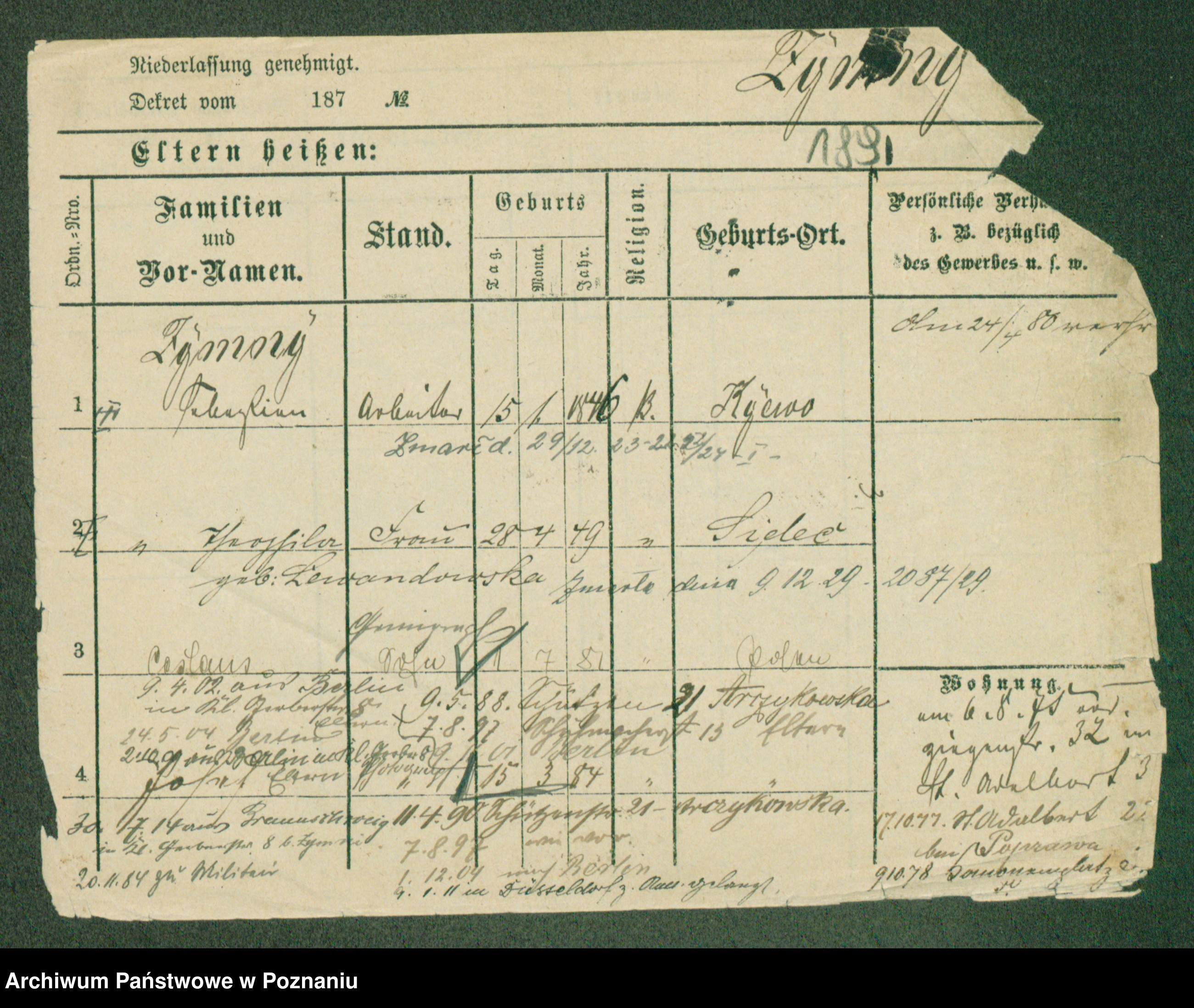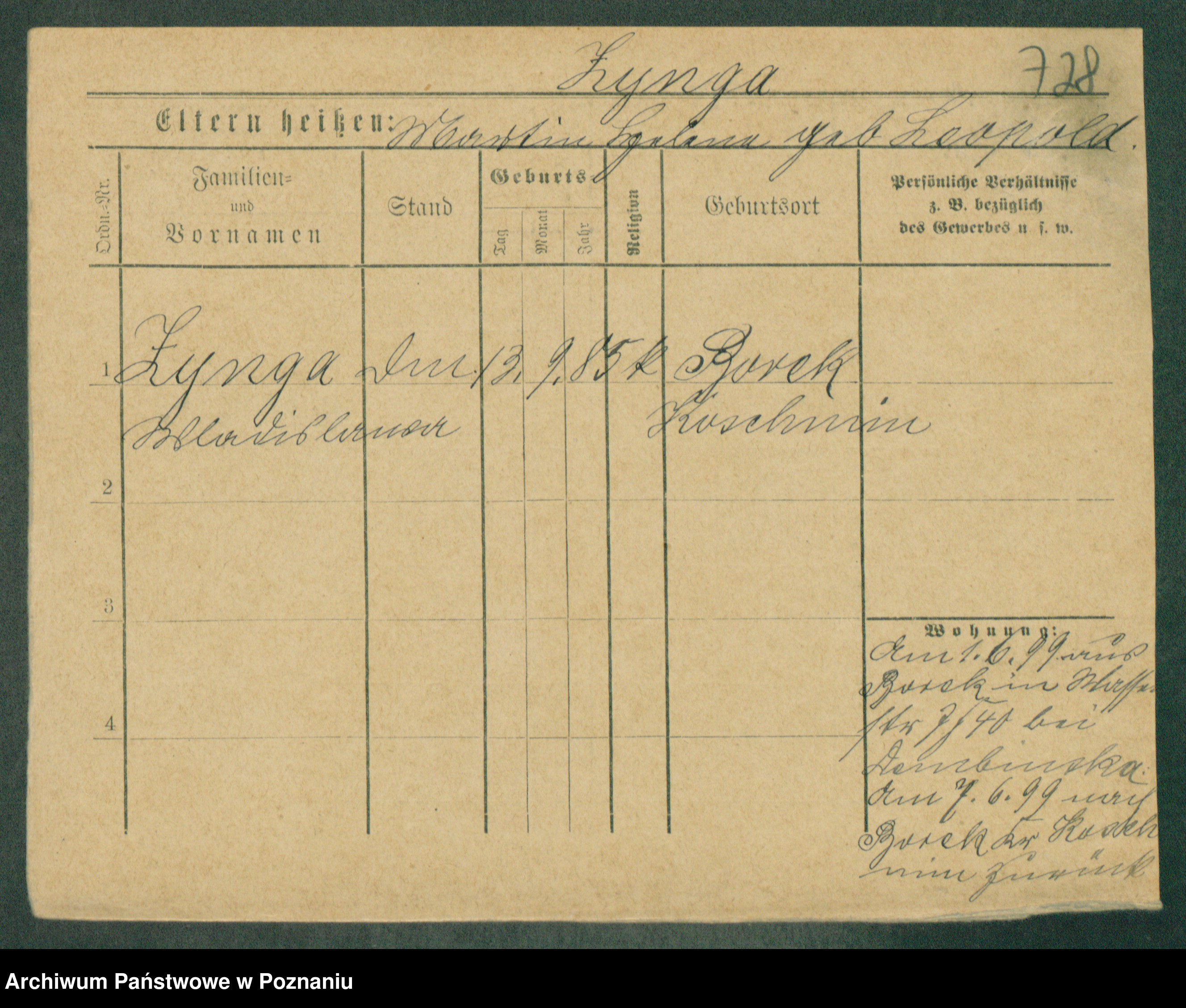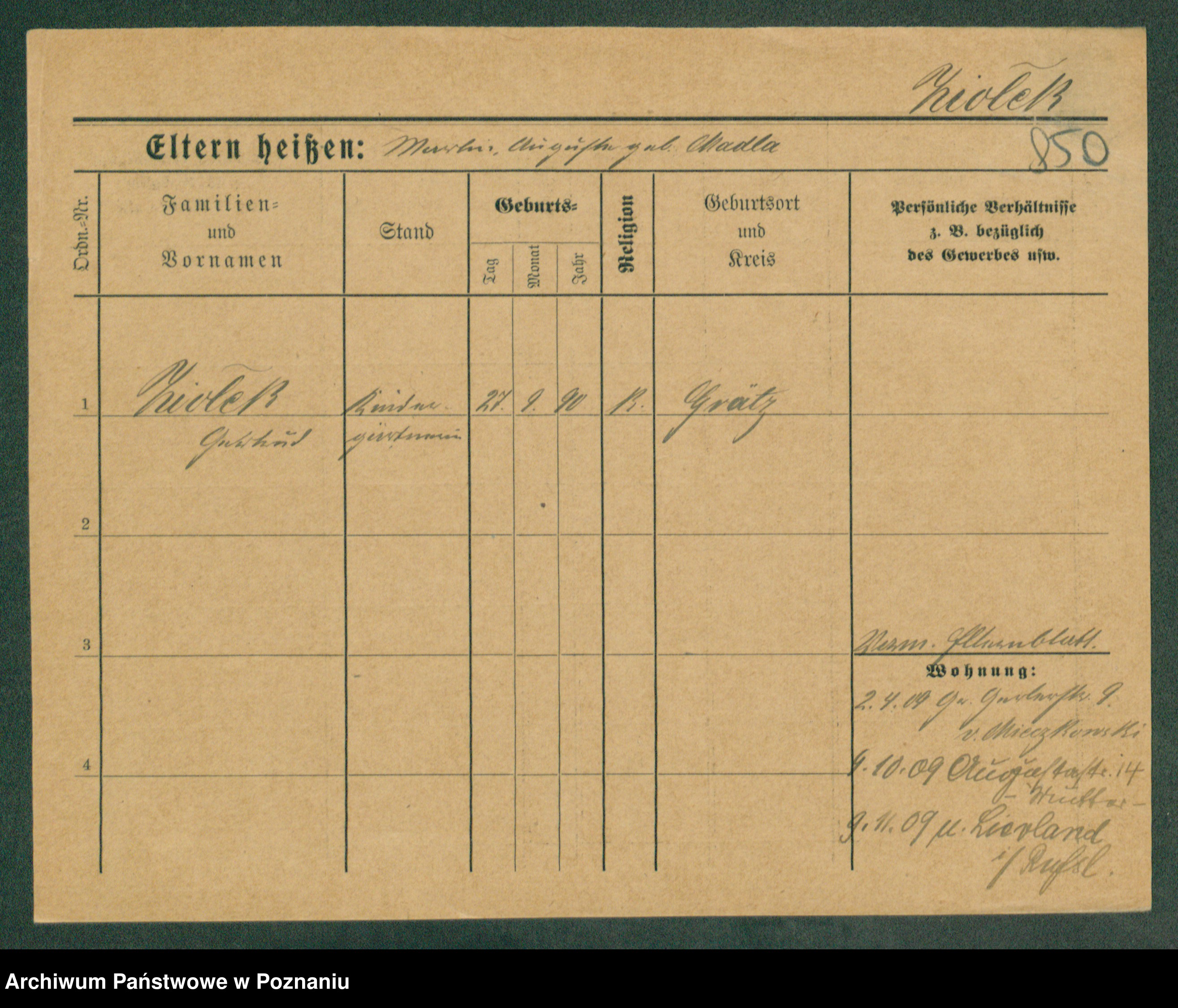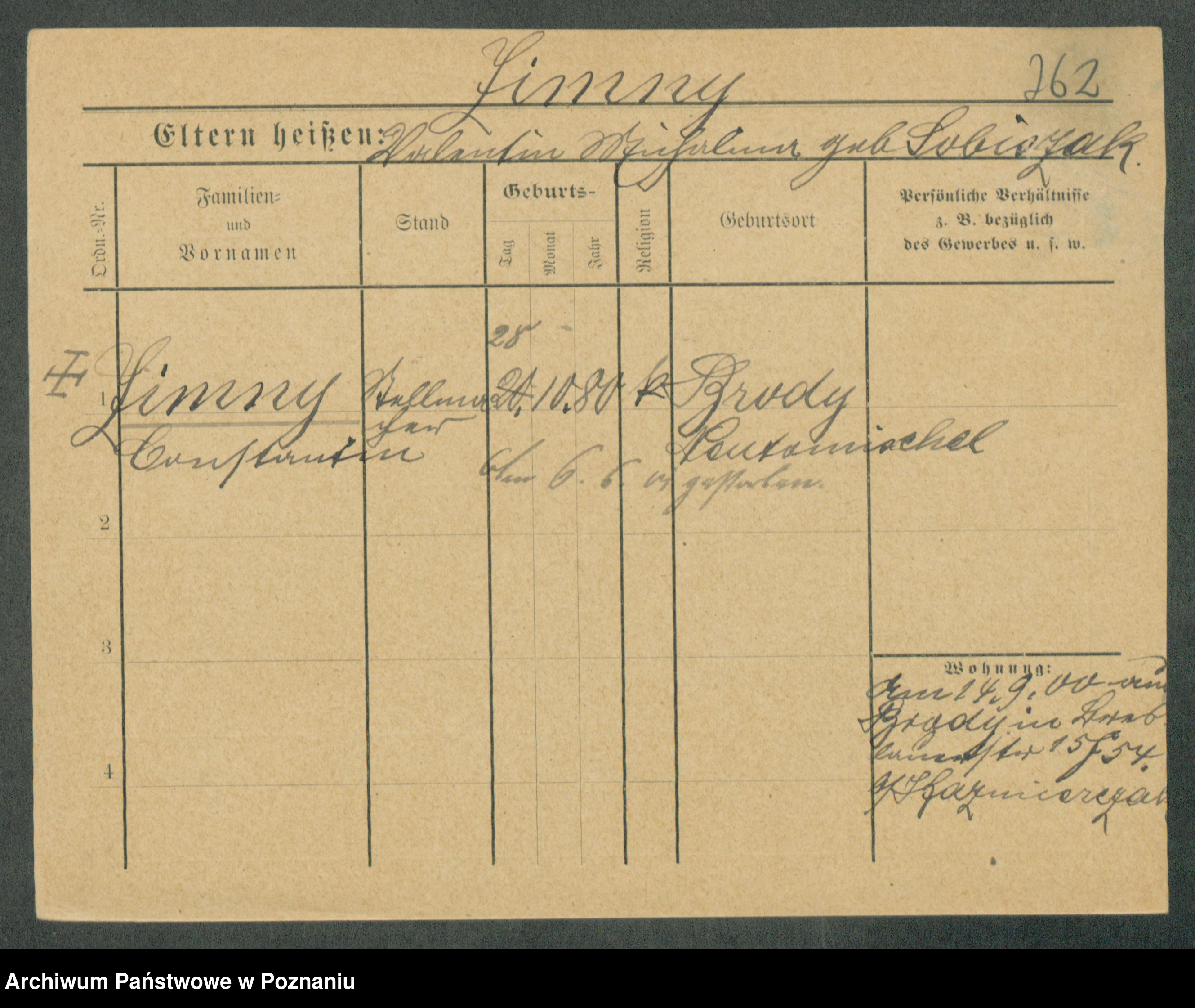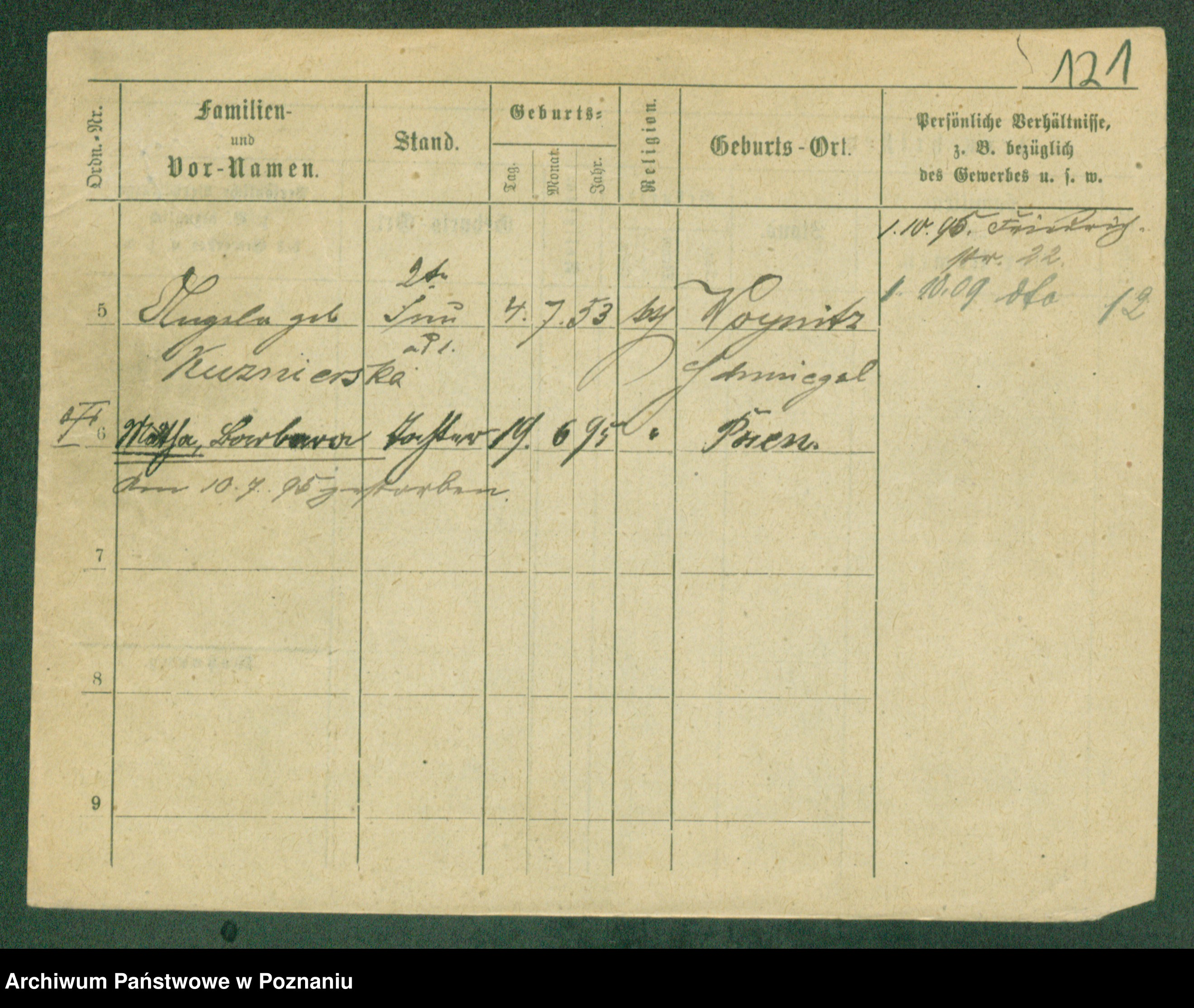 Podgląd karty osobowej dostępny jest po kliknięciu na nazwisko lub ikonkę karty. Można dokonywać powiększenia (ikony na górze) lub przechodzić między kolejnymi skanami (strzałki po bokach).