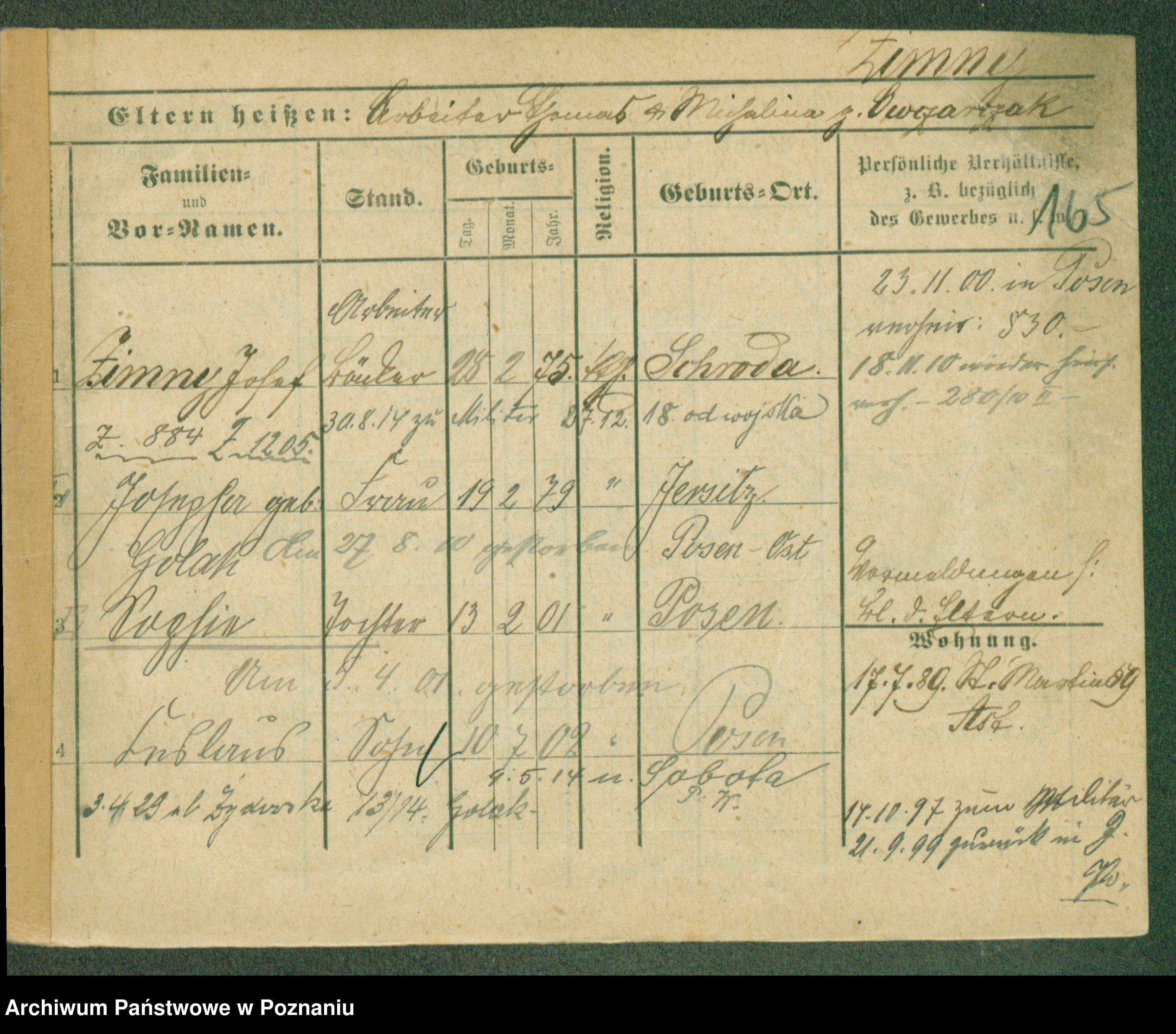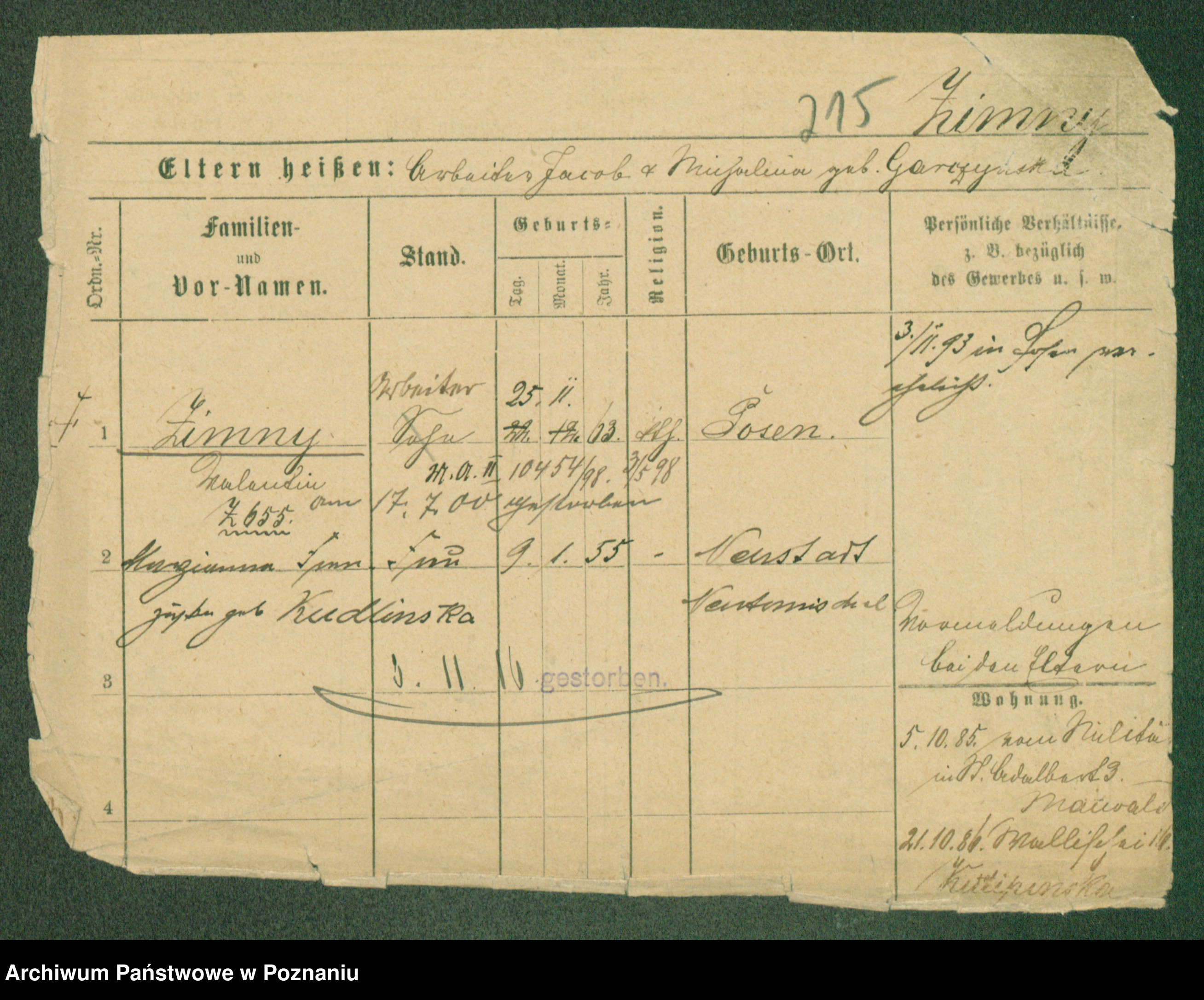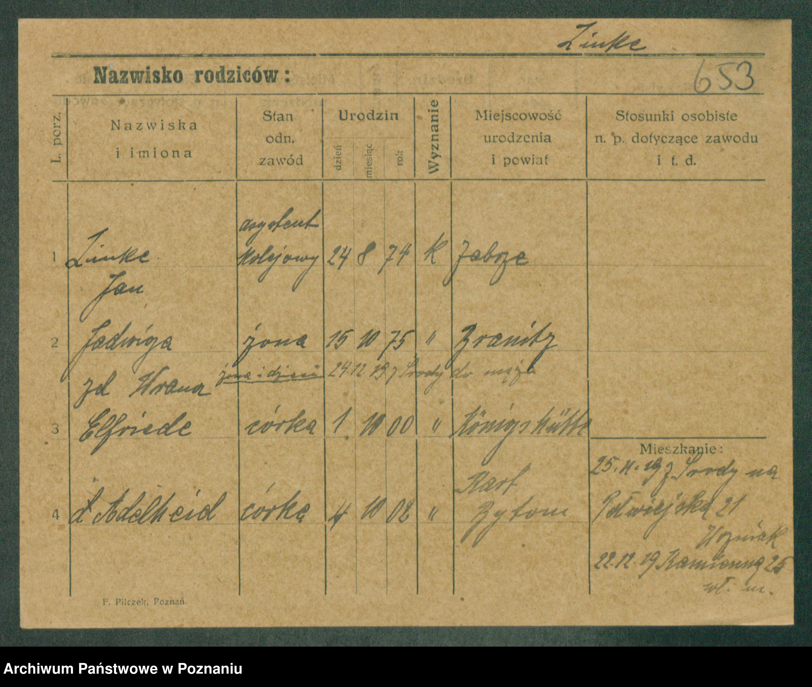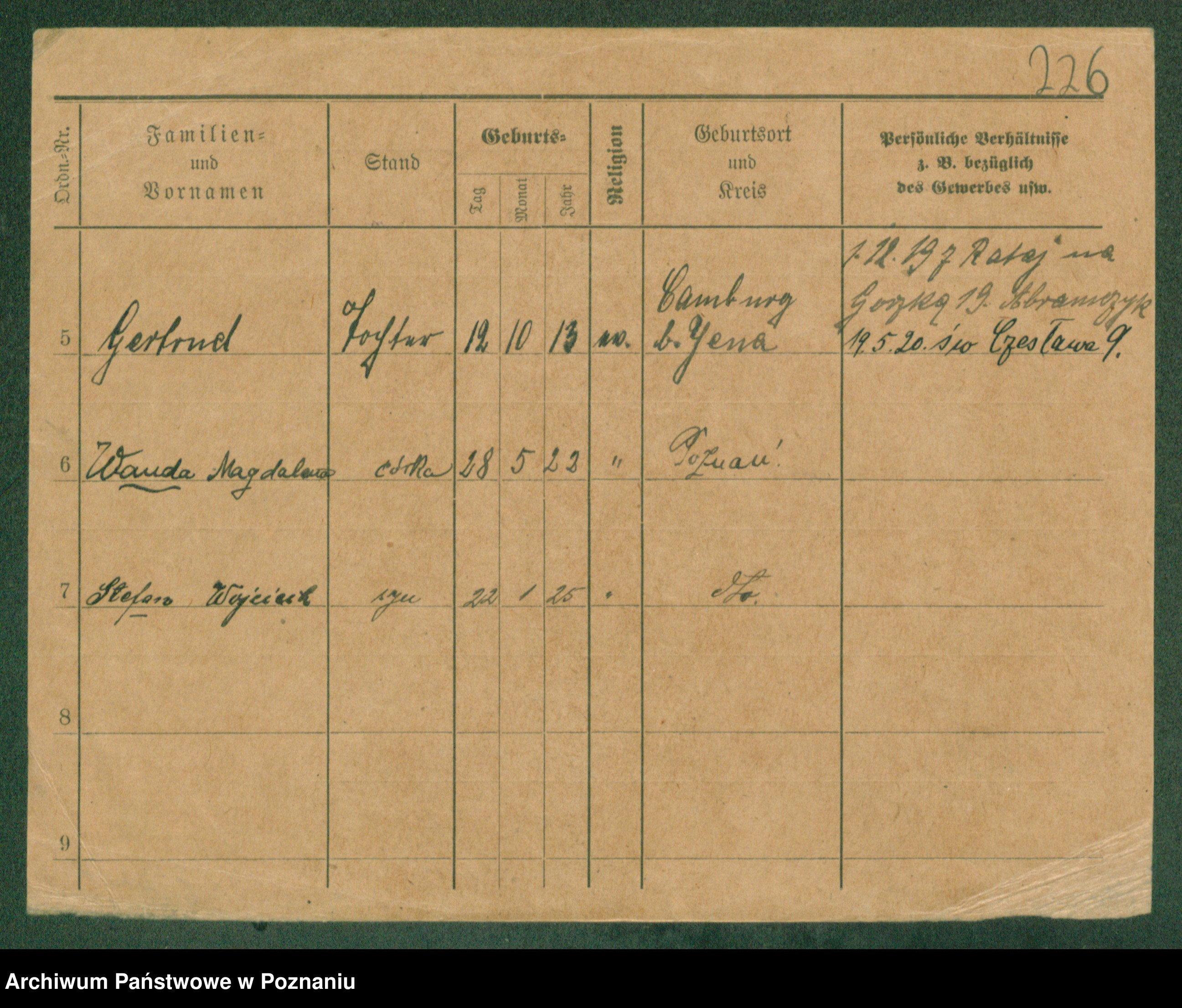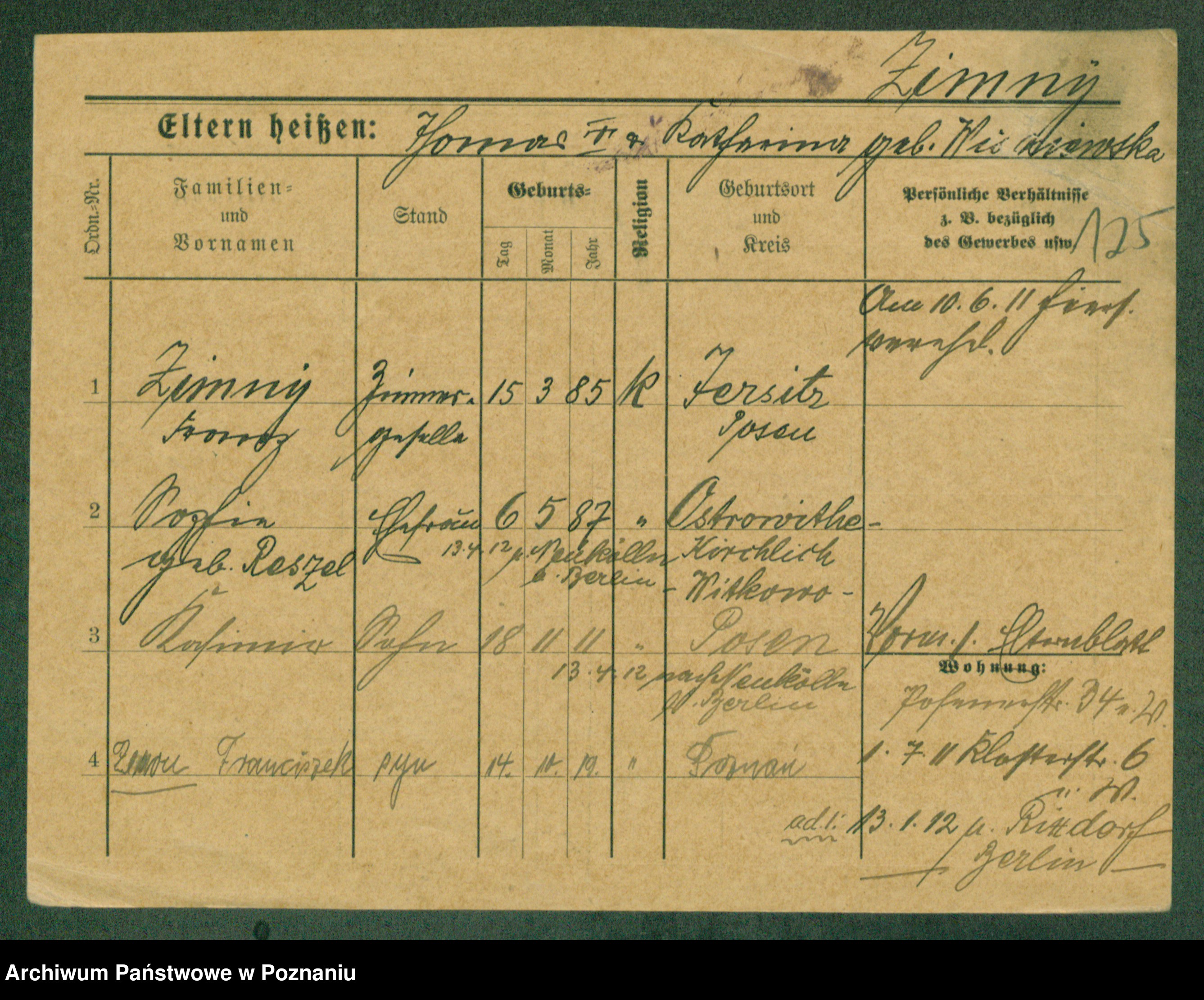 Podgląd karty osobowej dostępny jest po kliknięciu na nazwisko lub ikonkę karty. Można dokonywać powiększenia (ikony na górze) lub przechodzić między kolejnymi skanami (strzałki po bokach).