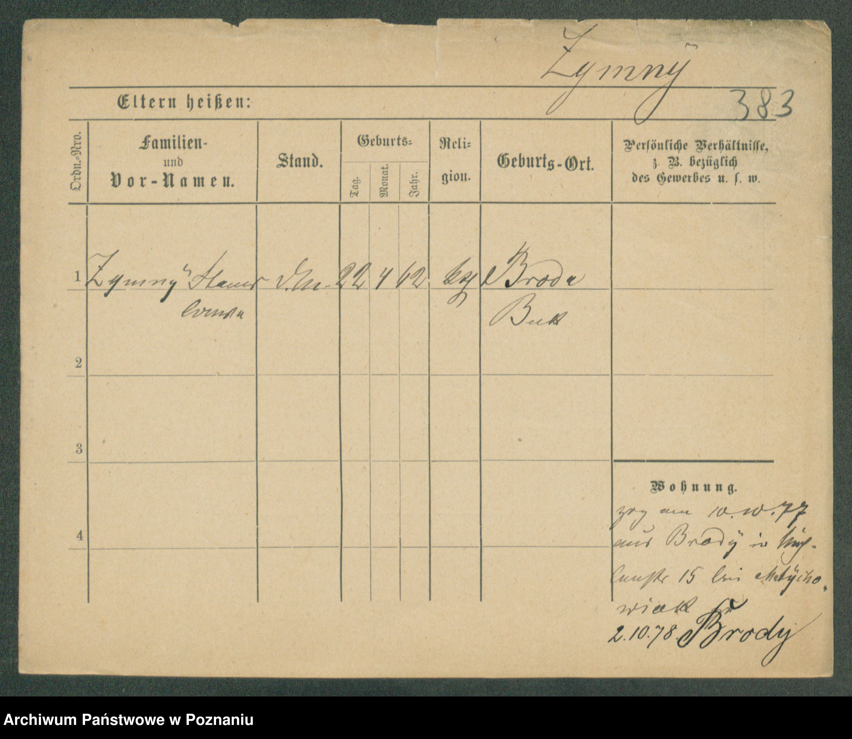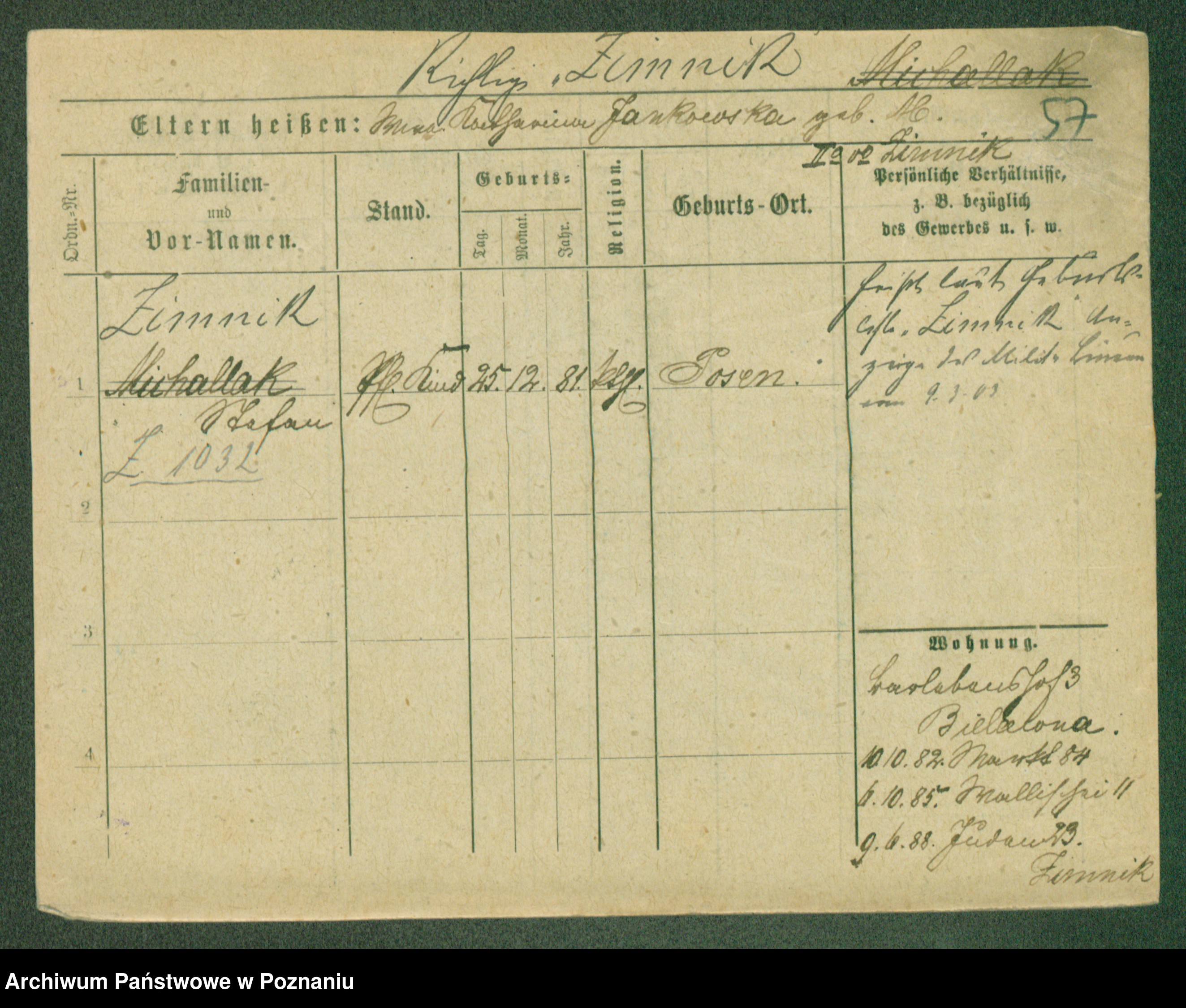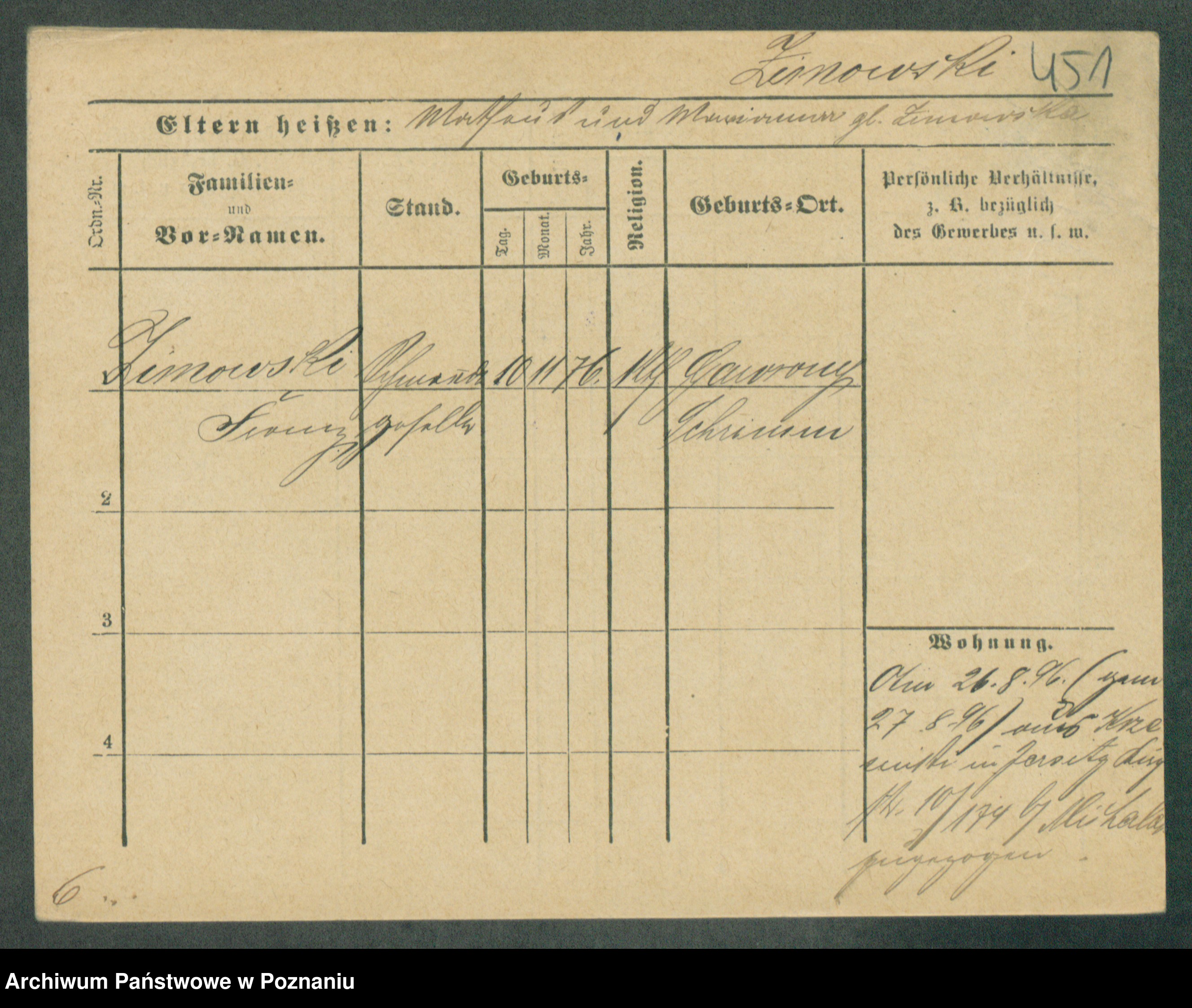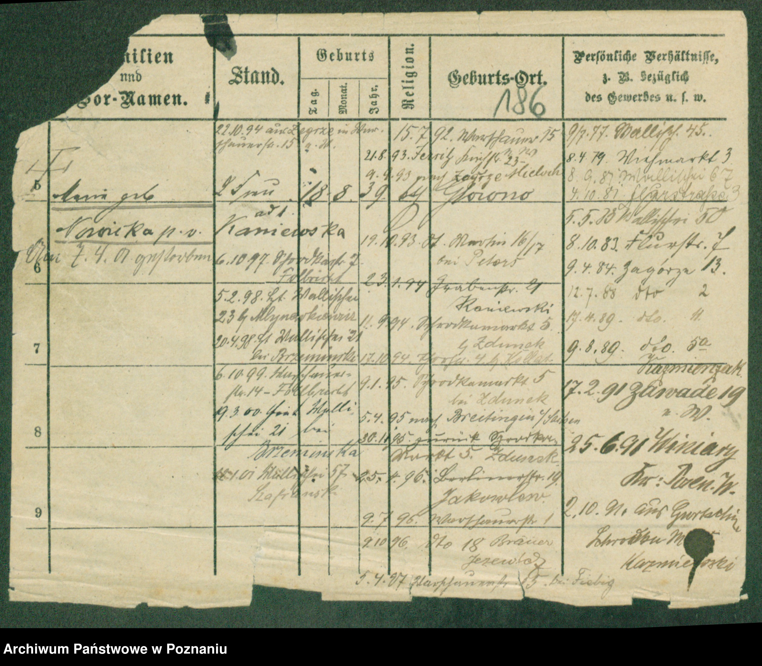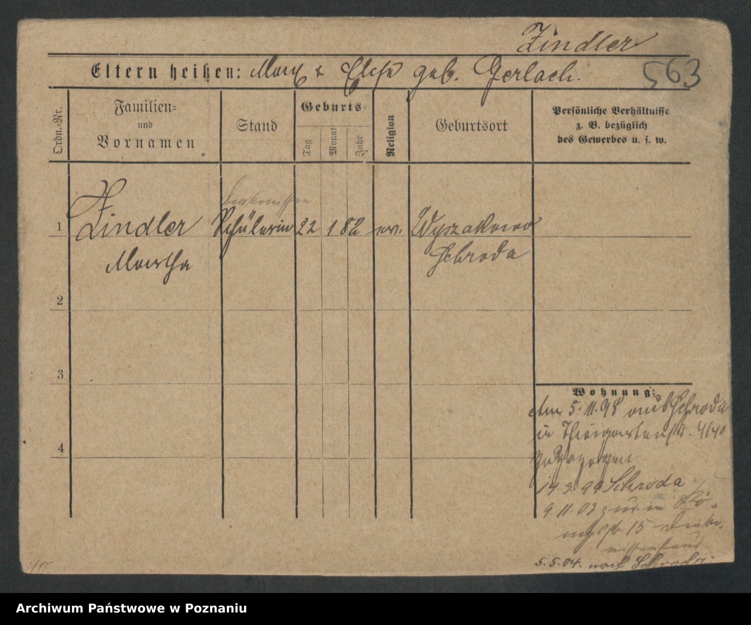 Podgląd karty osobowej dostępny jest po kliknięciu na nazwisko lub ikonkę karty. Można dokonywać powiększenia (ikony na górze) lub przechodzić między kolejnymi skanami (strzałki po bokach).