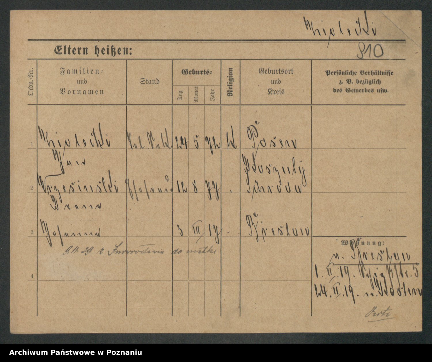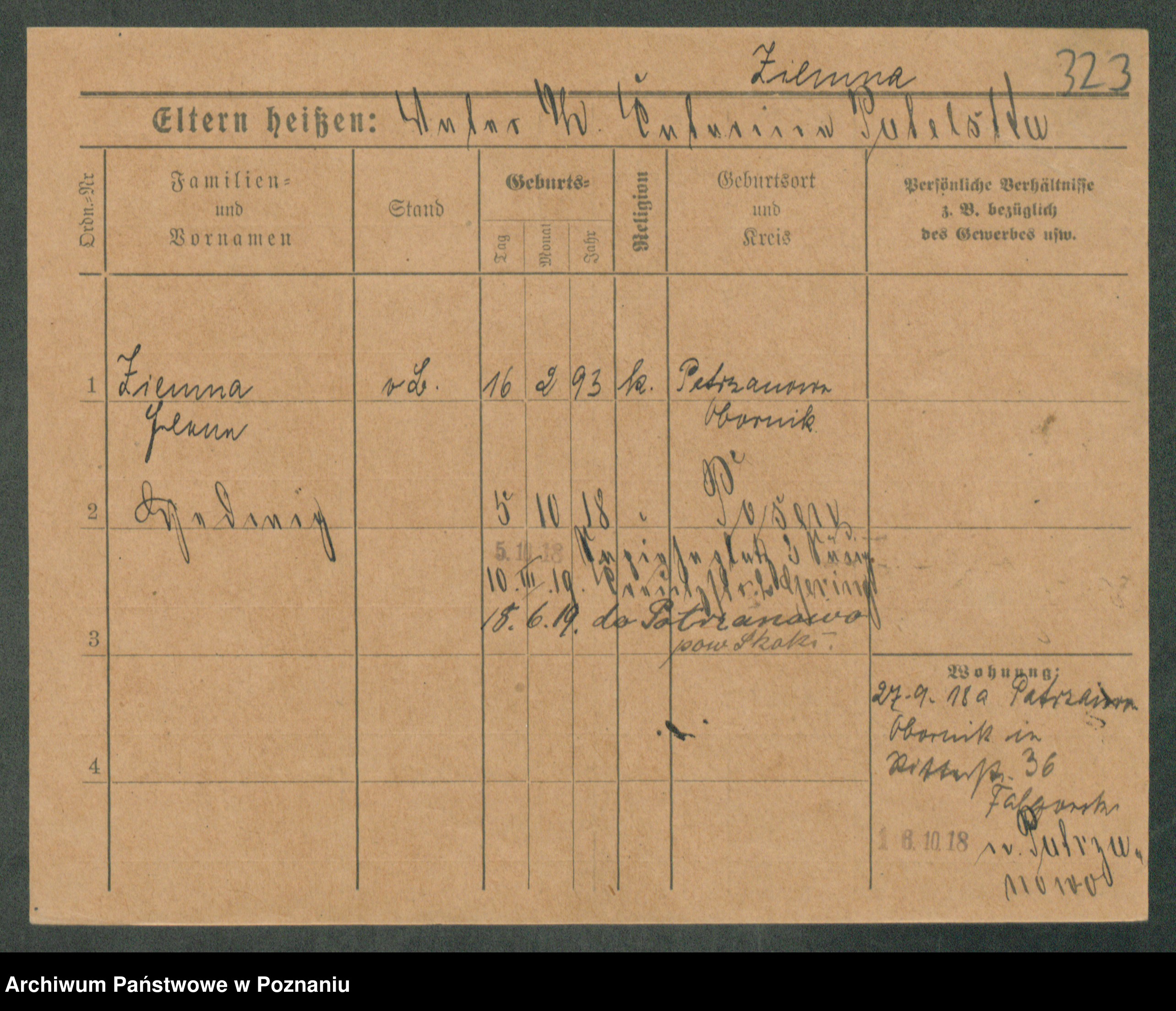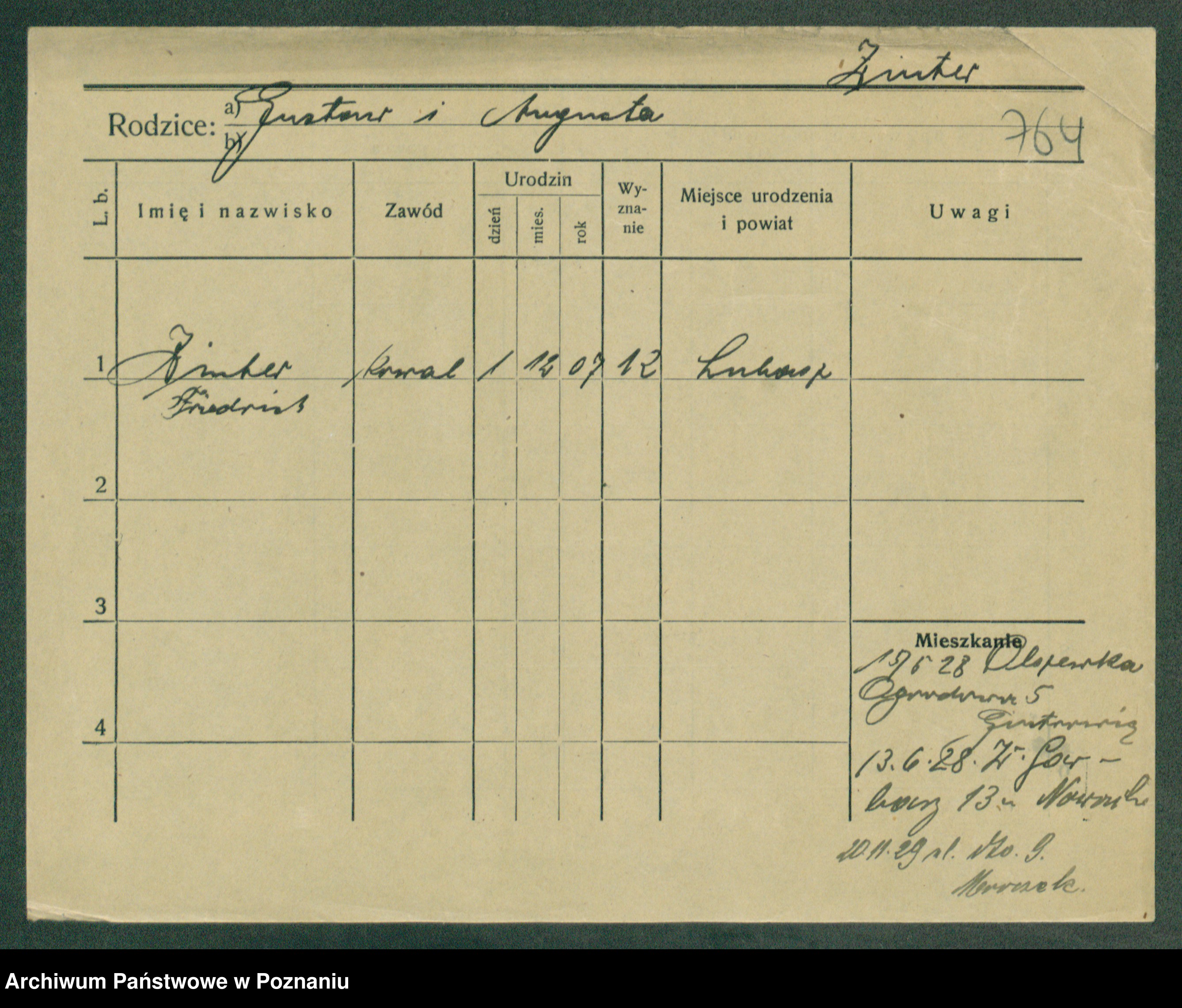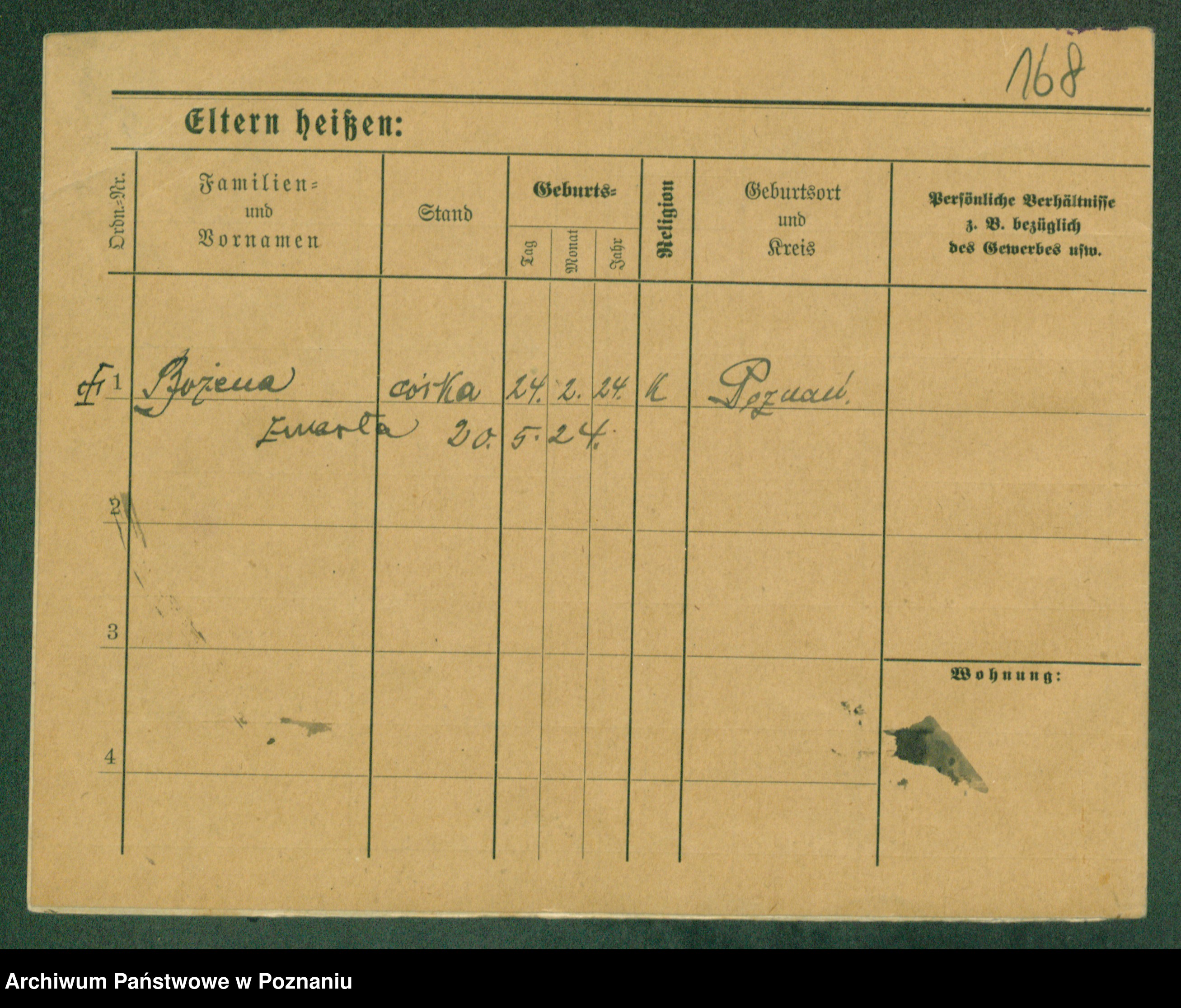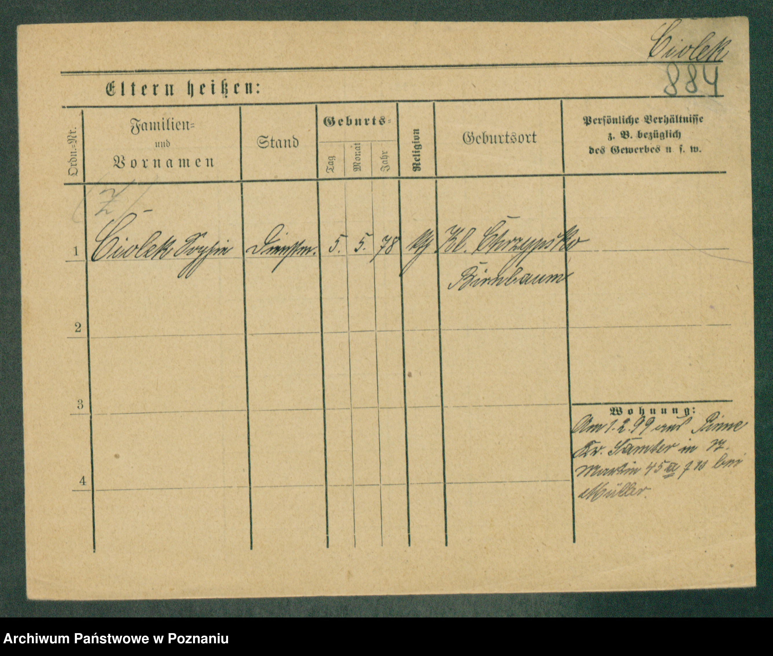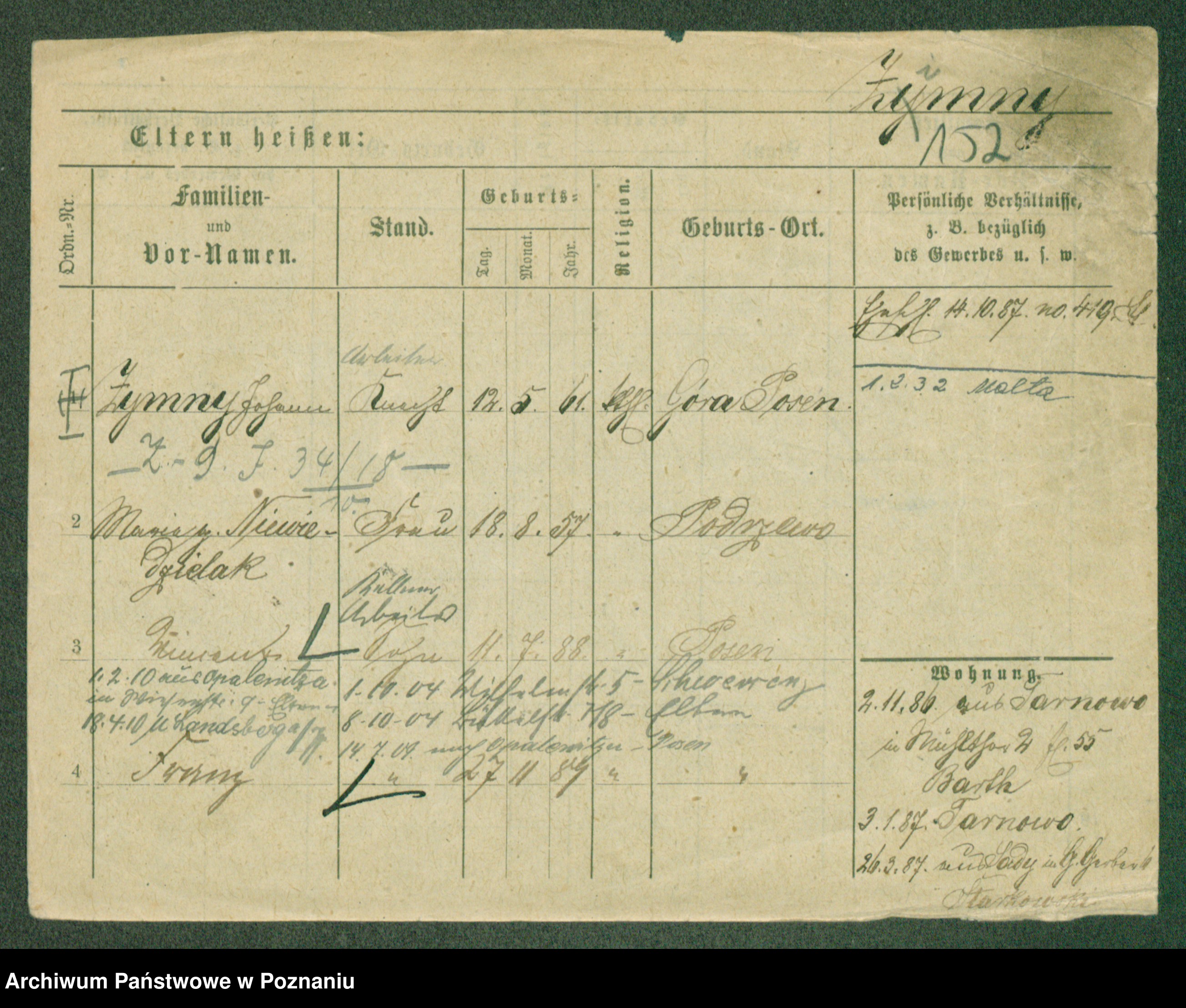 Podgląd karty osobowej dostępny jest po kliknięciu na nazwisko lub ikonkę karty. Można dokonywać powiększenia (ikony na górze) lub przechodzić między kolejnymi skanami (strzałki po bokach).