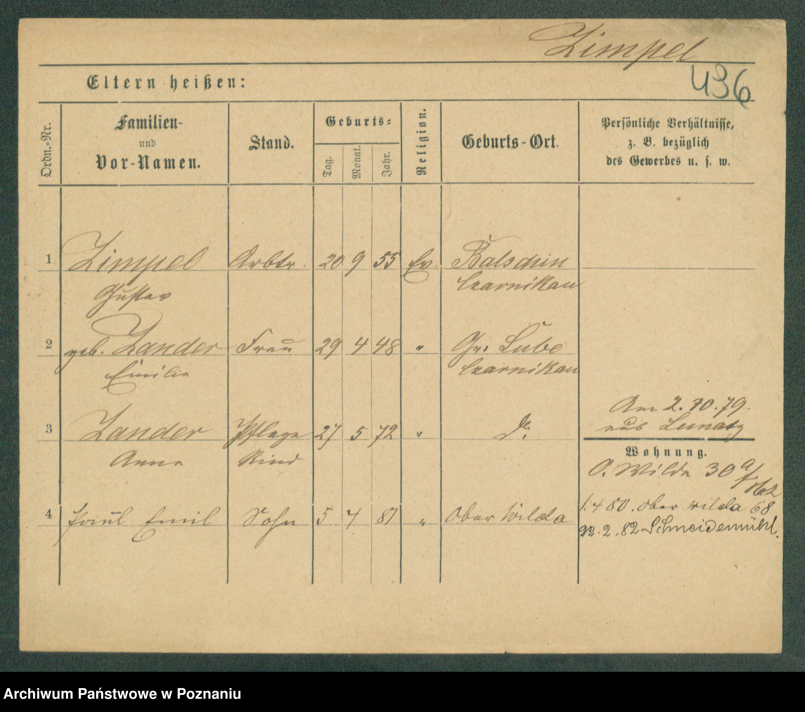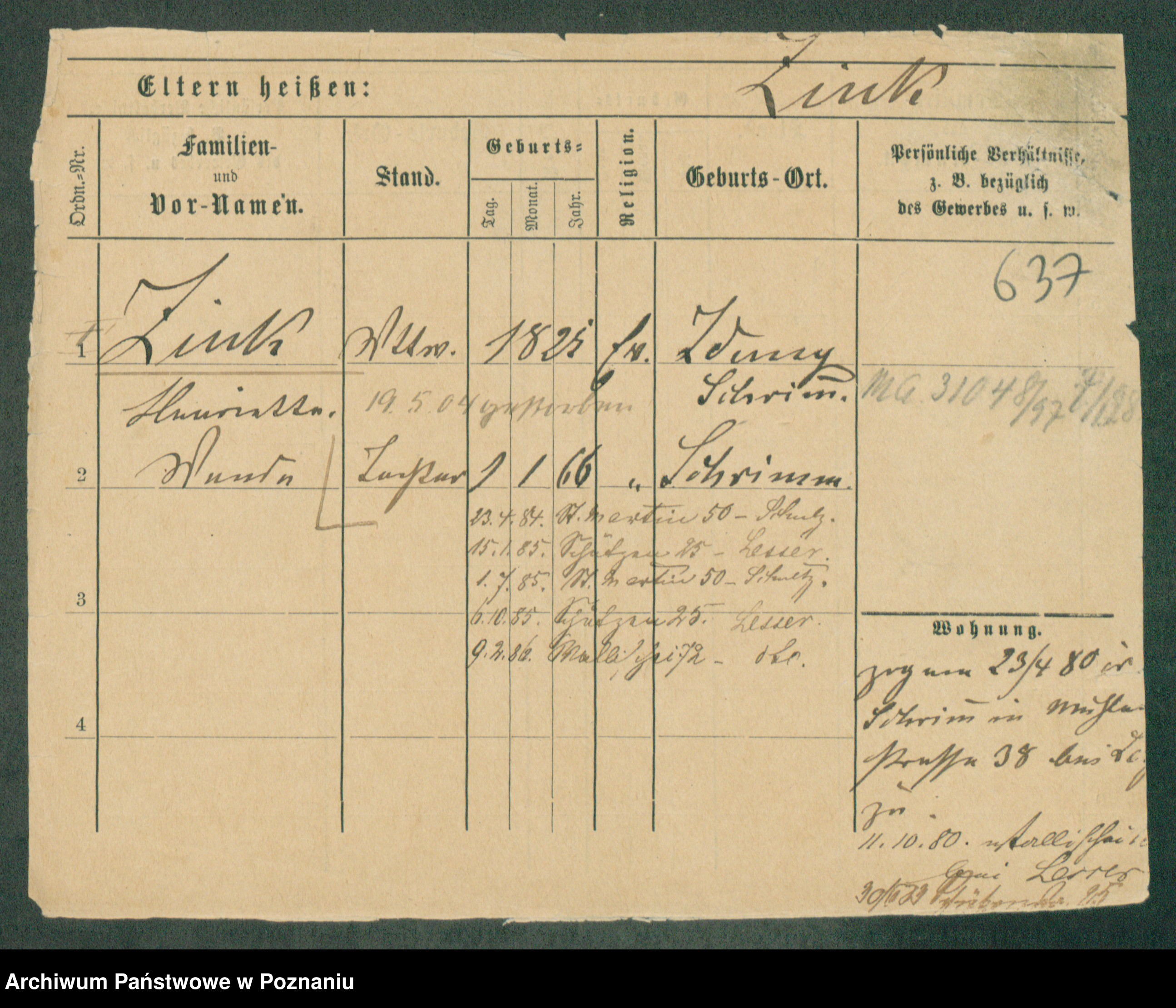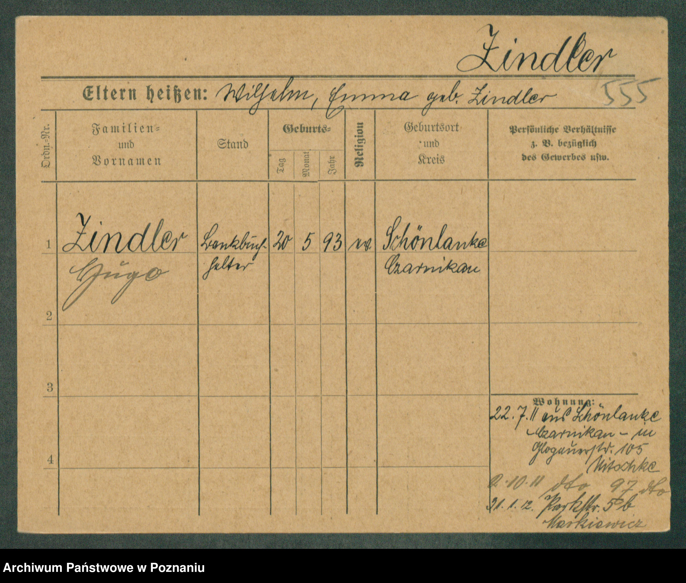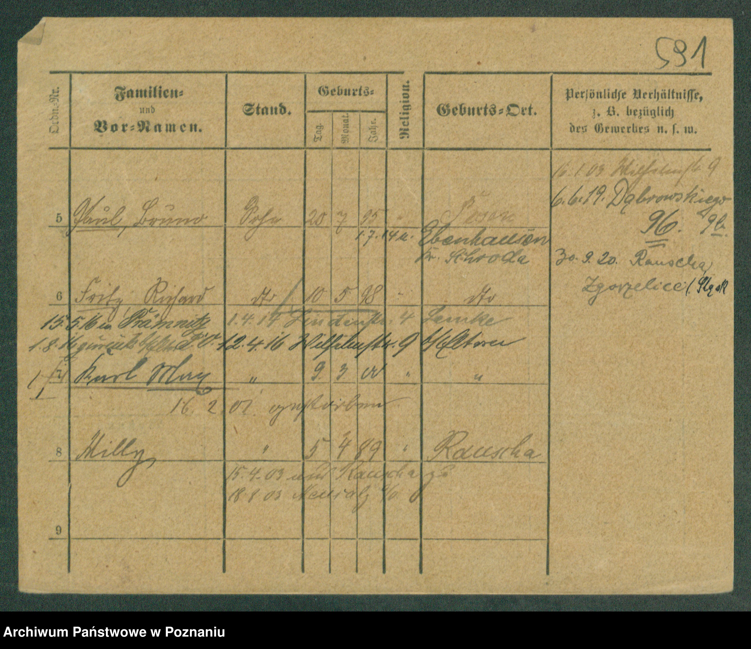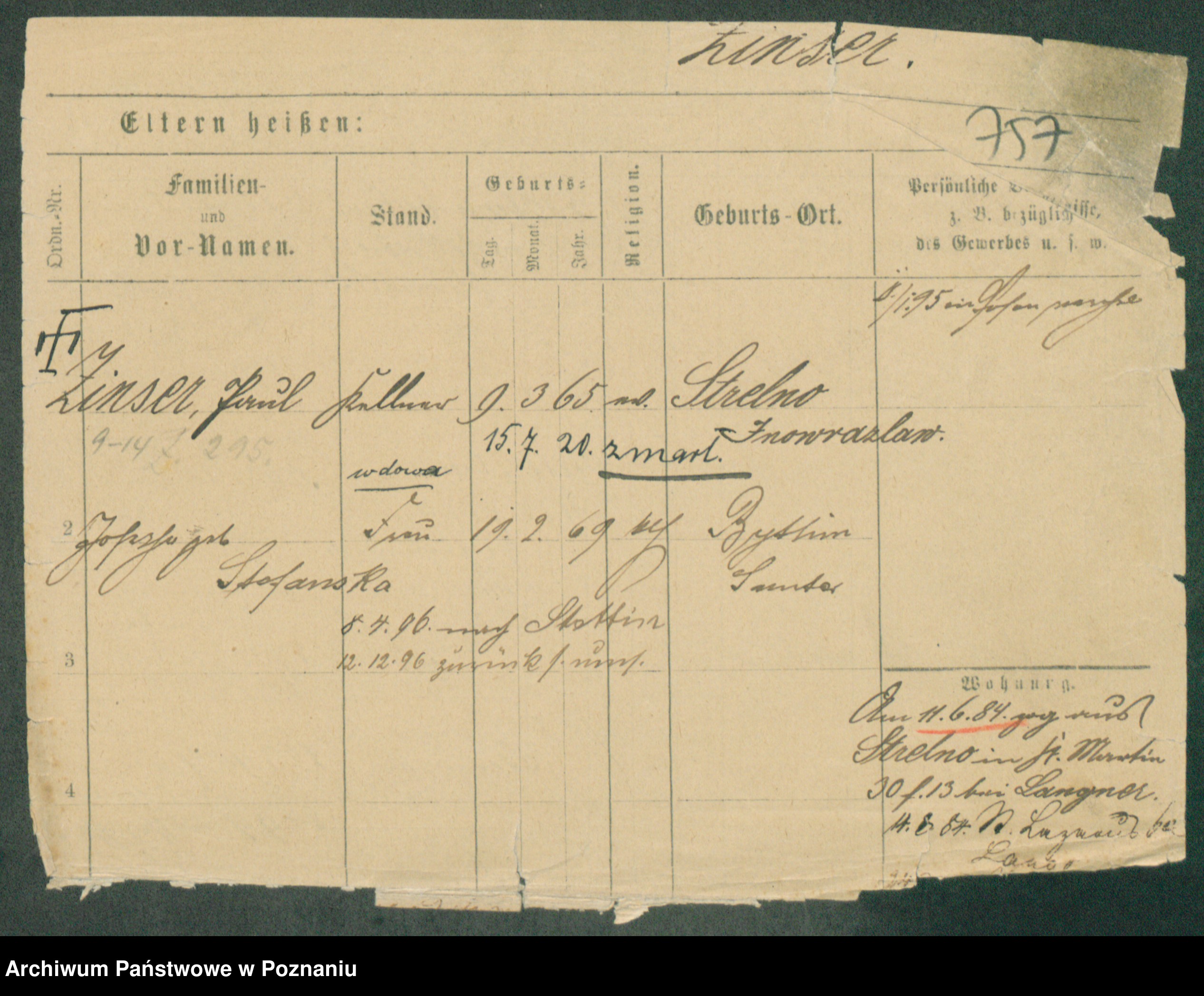 Podgląd karty osobowej dostępny jest po kliknięciu na nazwisko lub ikonkę karty. Można dokonywać powiększenia (ikony na górze) lub przechodzić między kolejnymi skanami (strzałki po bokach).
