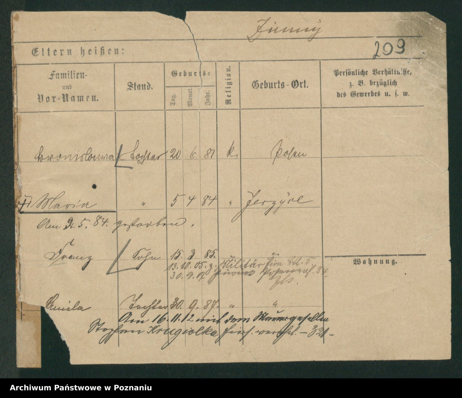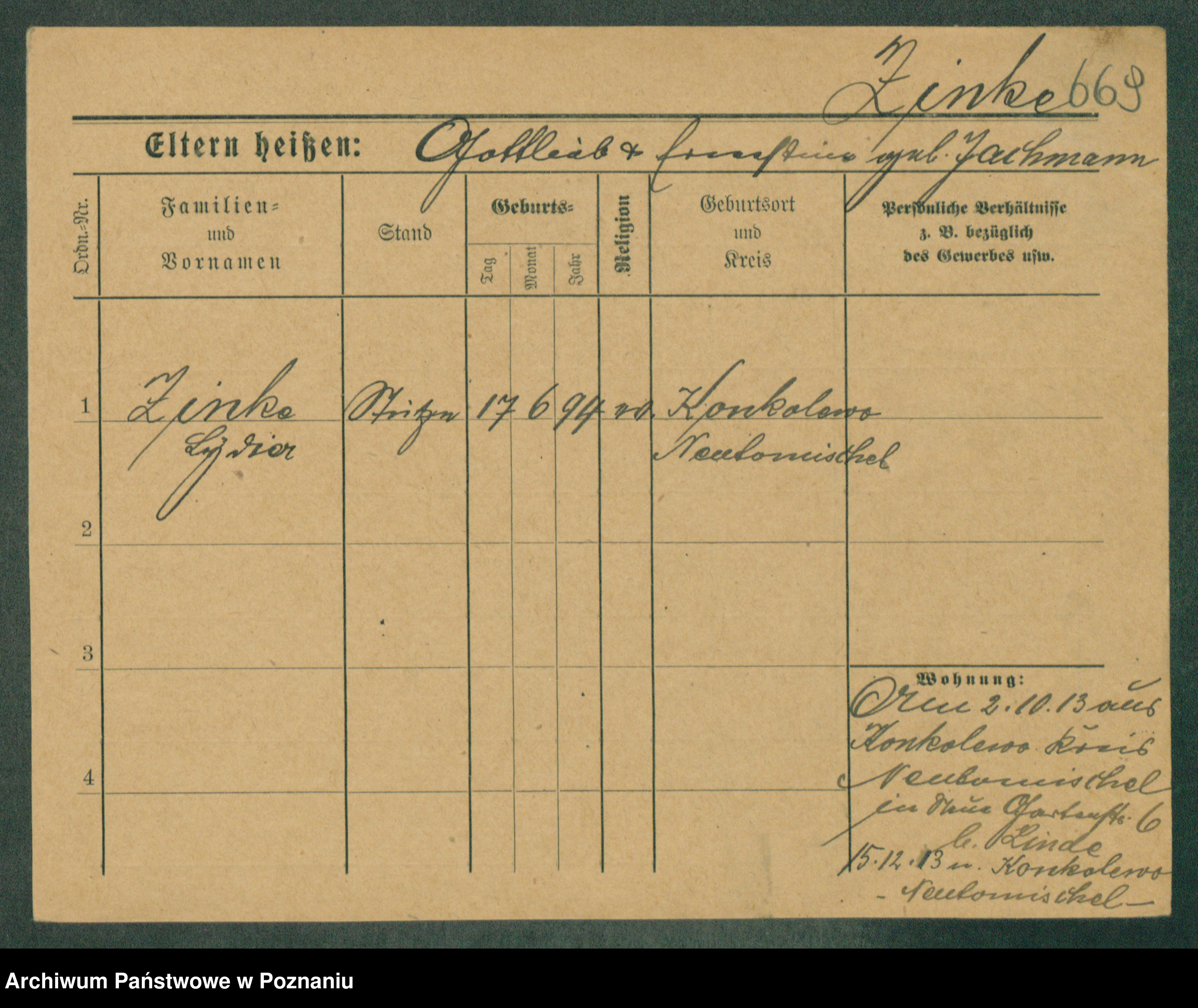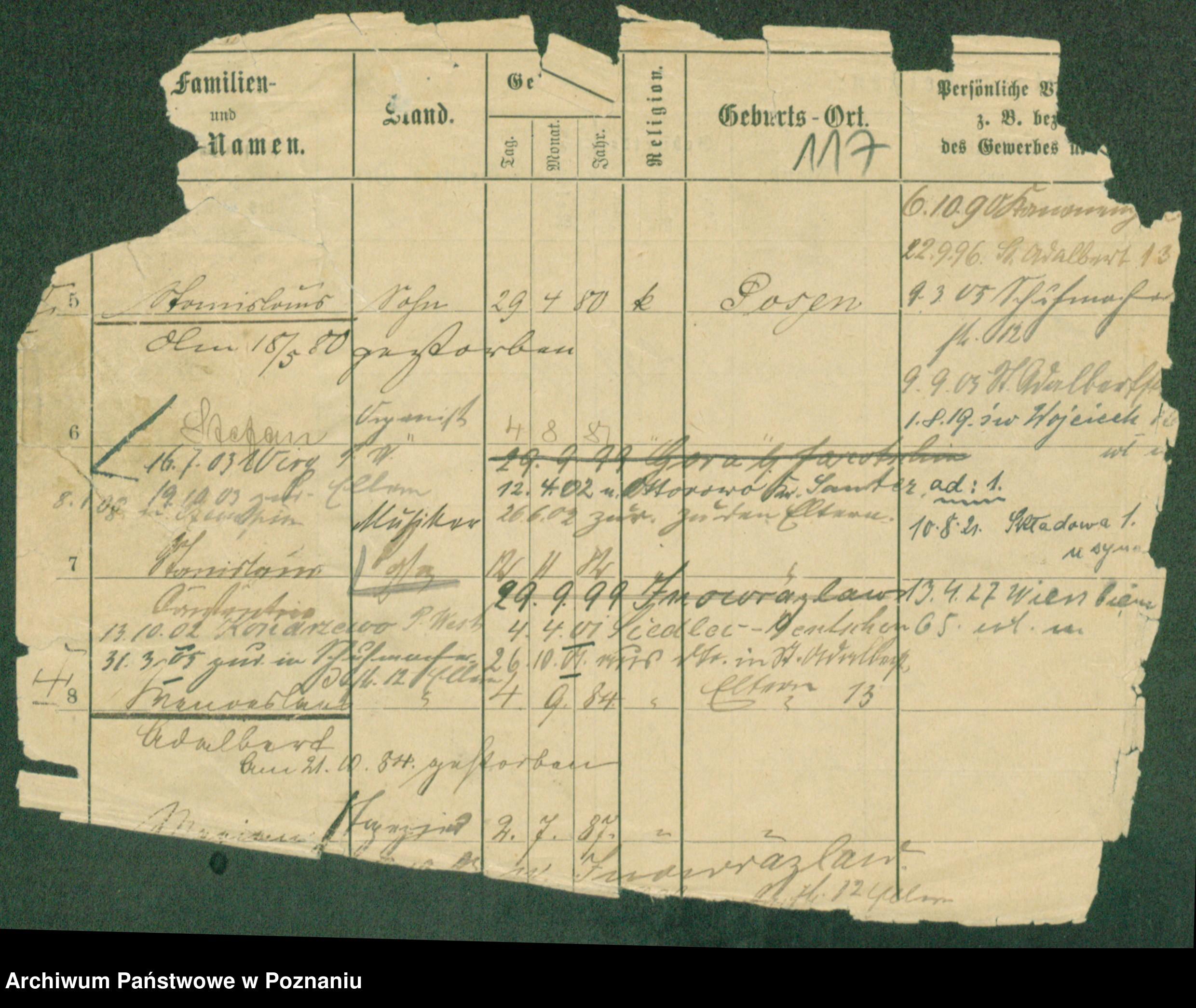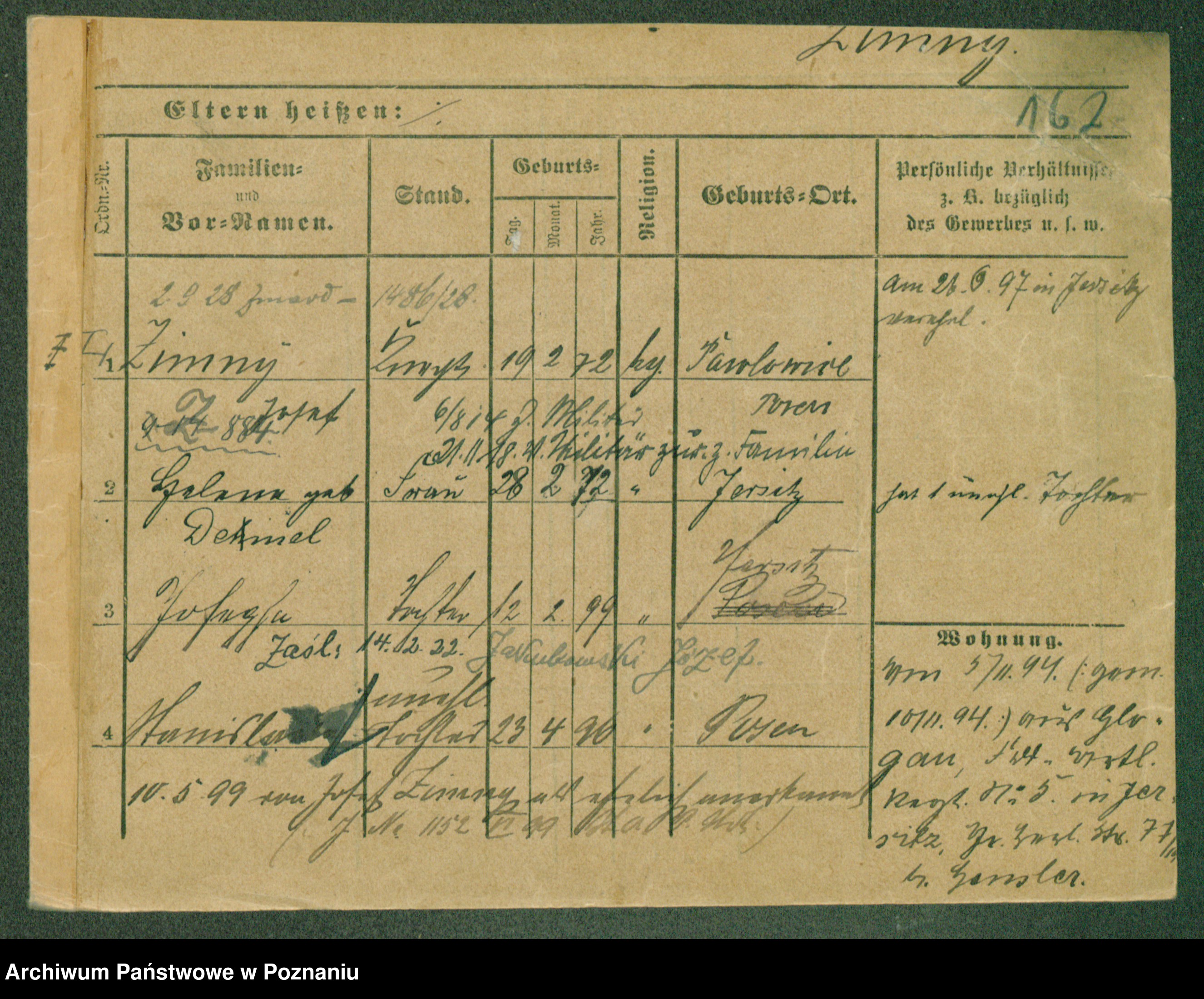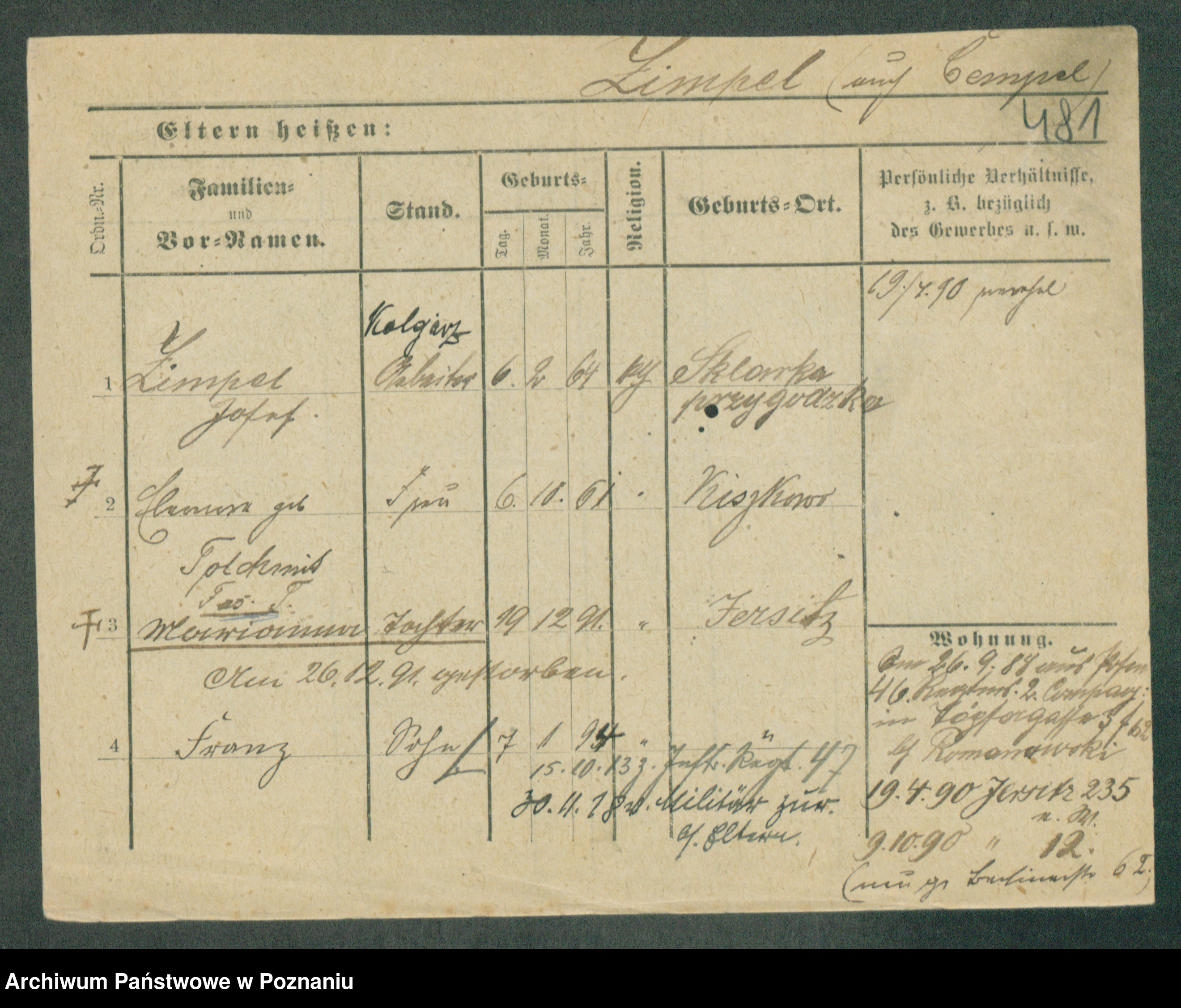 Podgląd karty osobowej dostępny jest po kliknięciu na nazwisko lub ikonkę karty. Można dokonywać powiększenia (ikony na górze) lub przechodzić między kolejnymi skanami (strzałki po bokach).