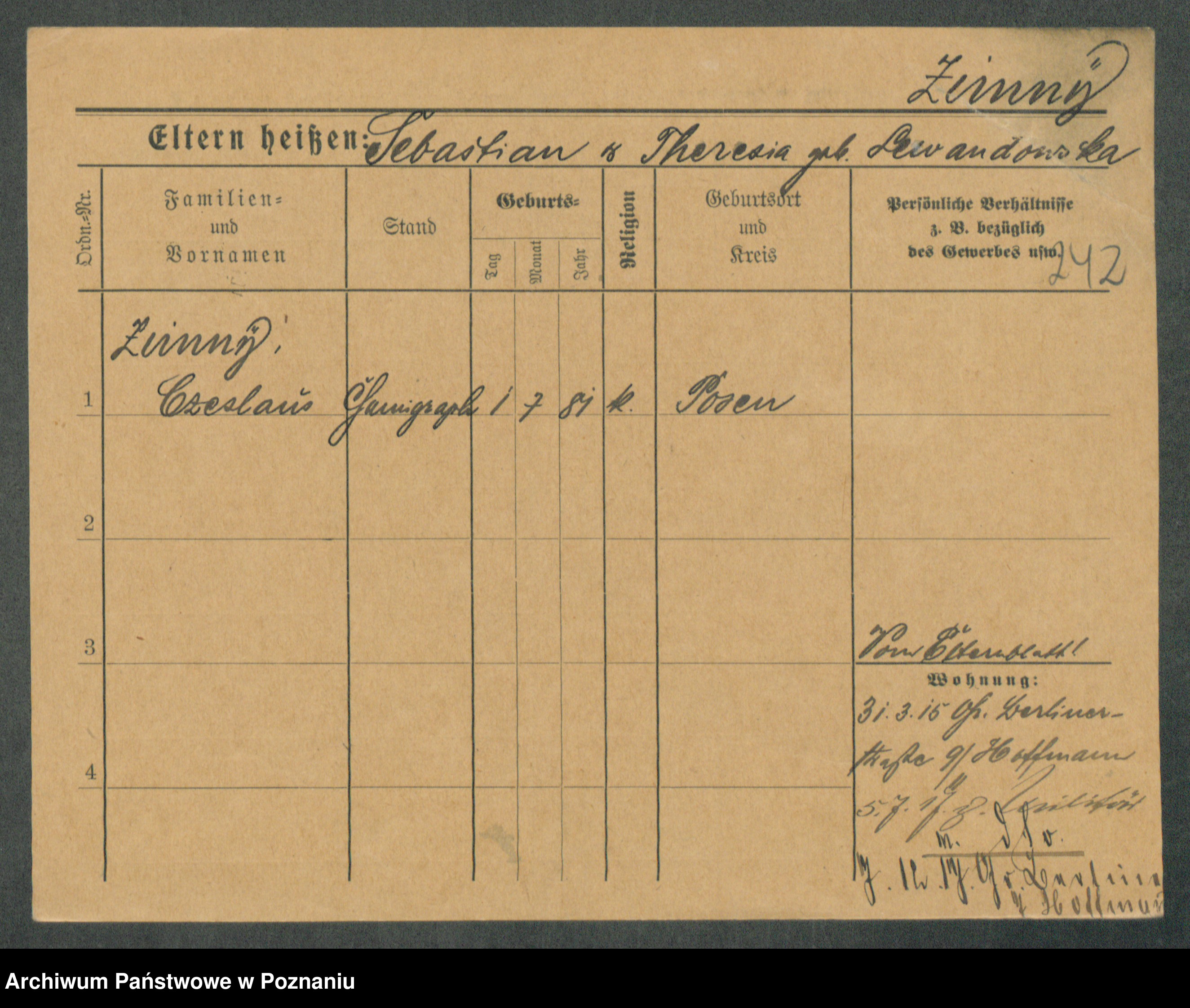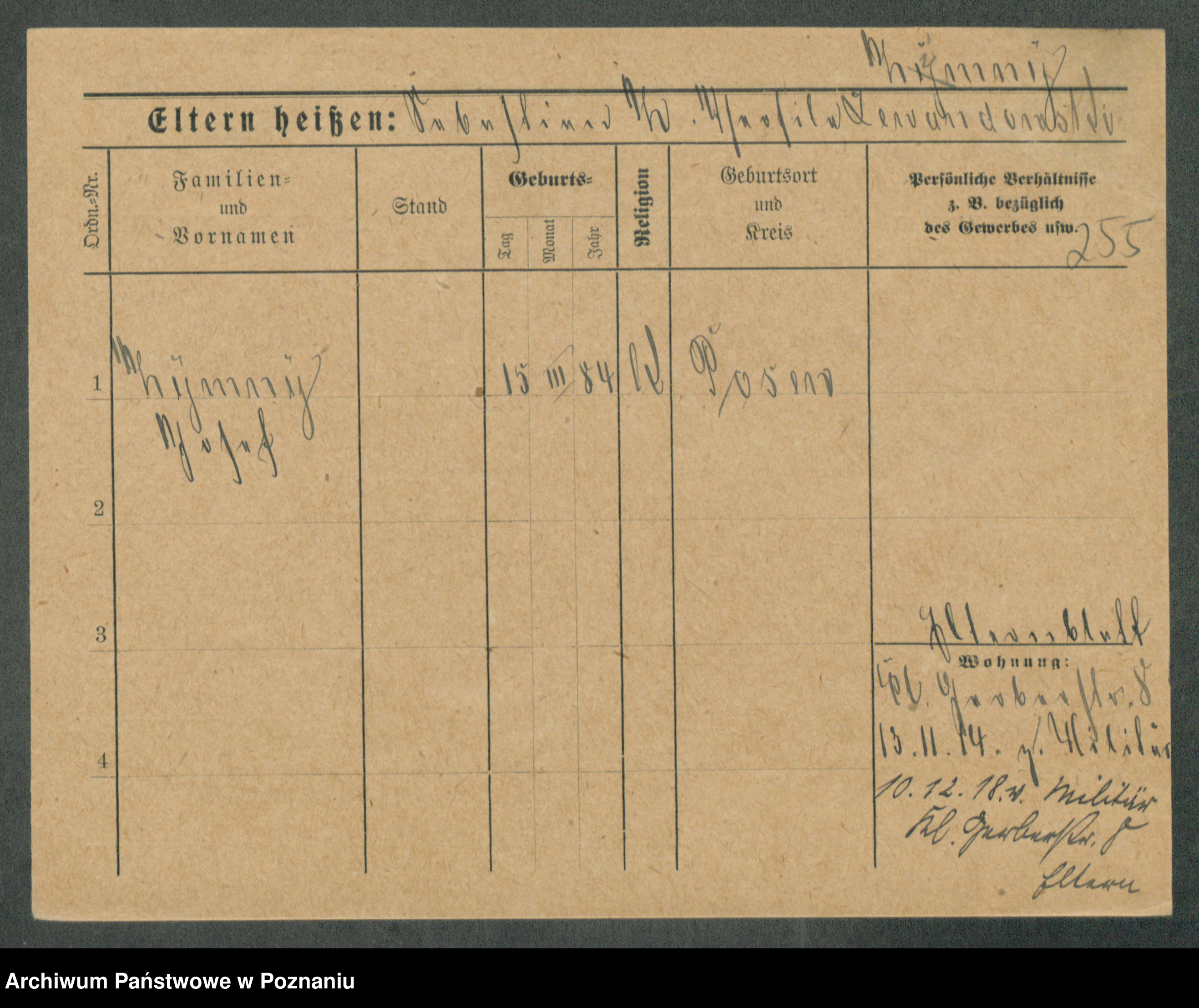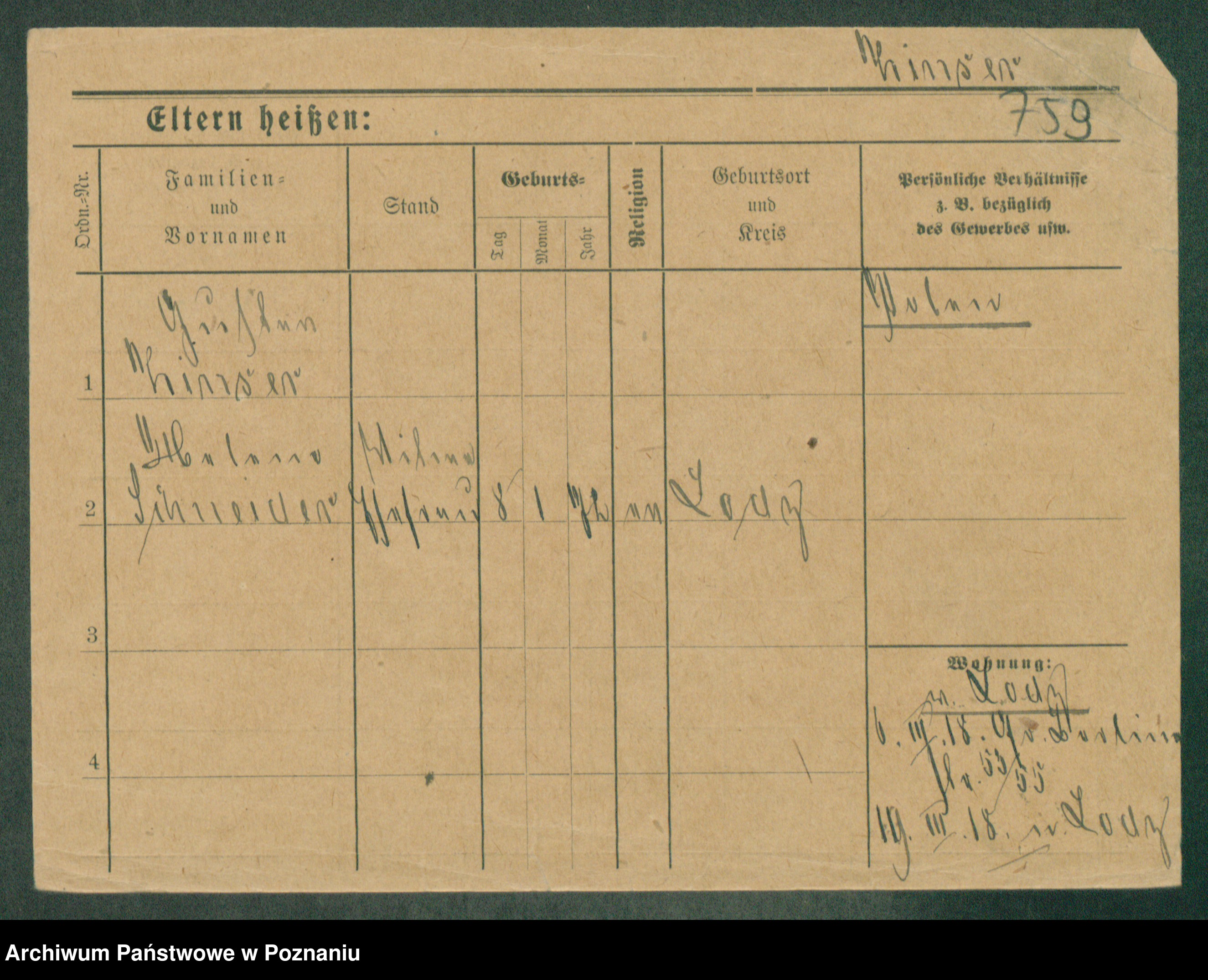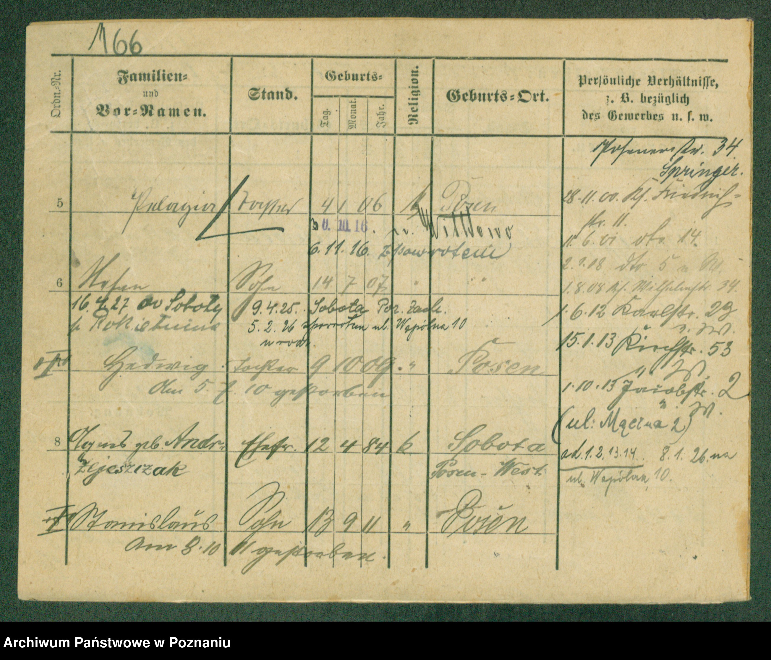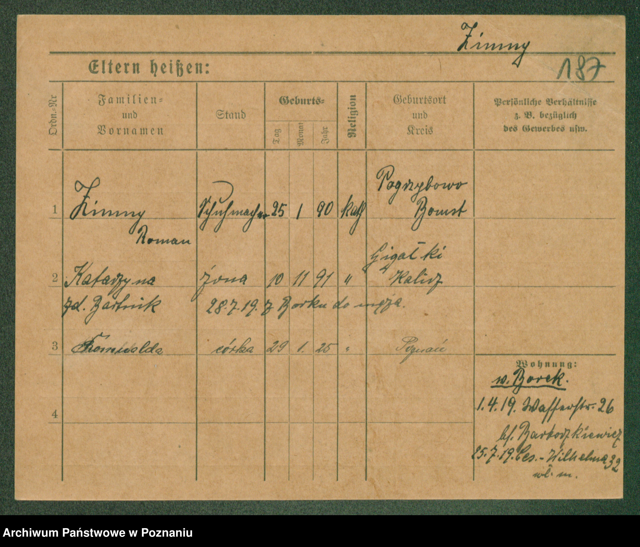 Podgląd karty osobowej dostępny jest po kliknięciu na nazwisko lub ikonkę karty. Można dokonywać powiększenia (ikony na górze) lub przechodzić między kolejnymi skanami (strzałki po bokach).
