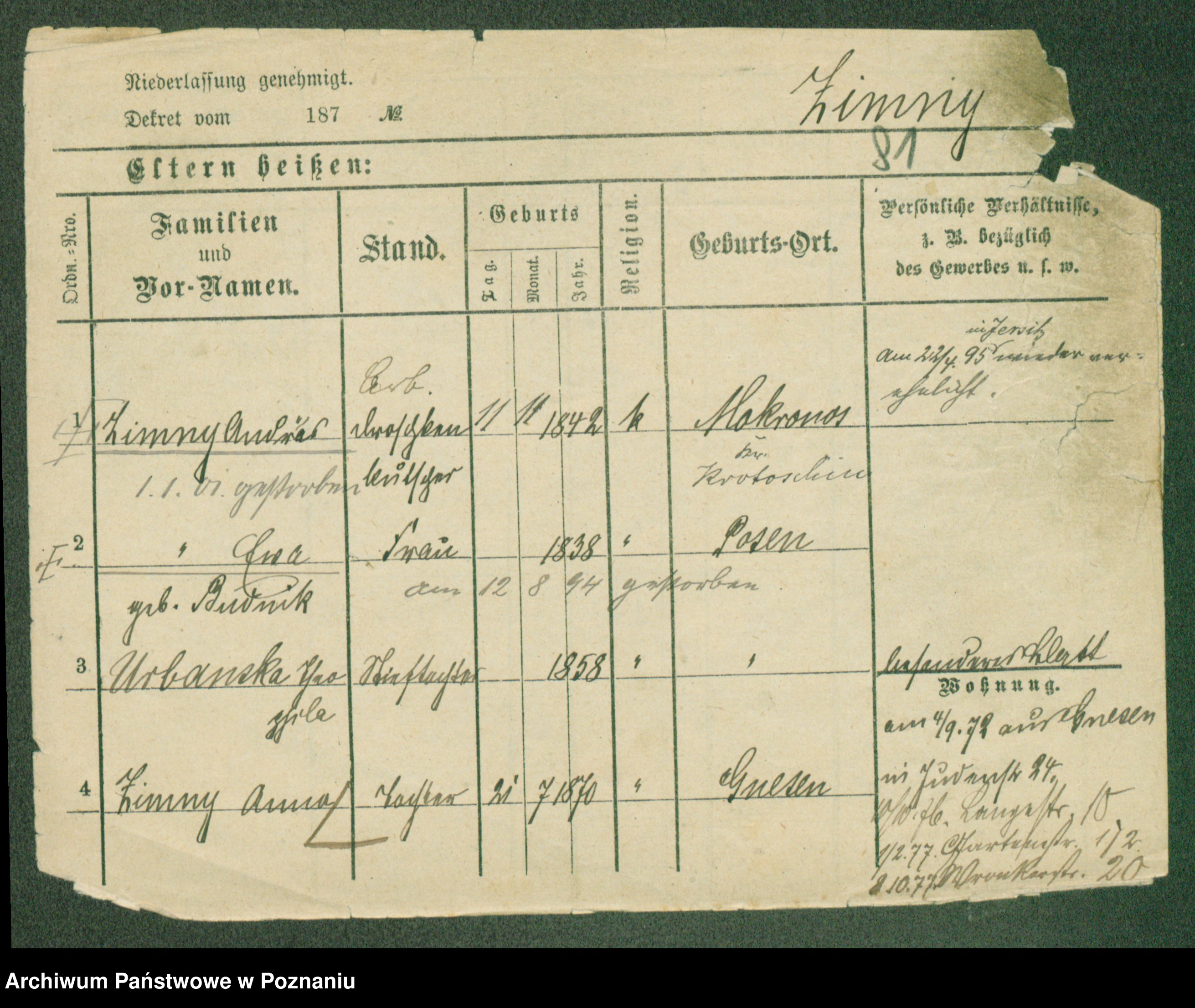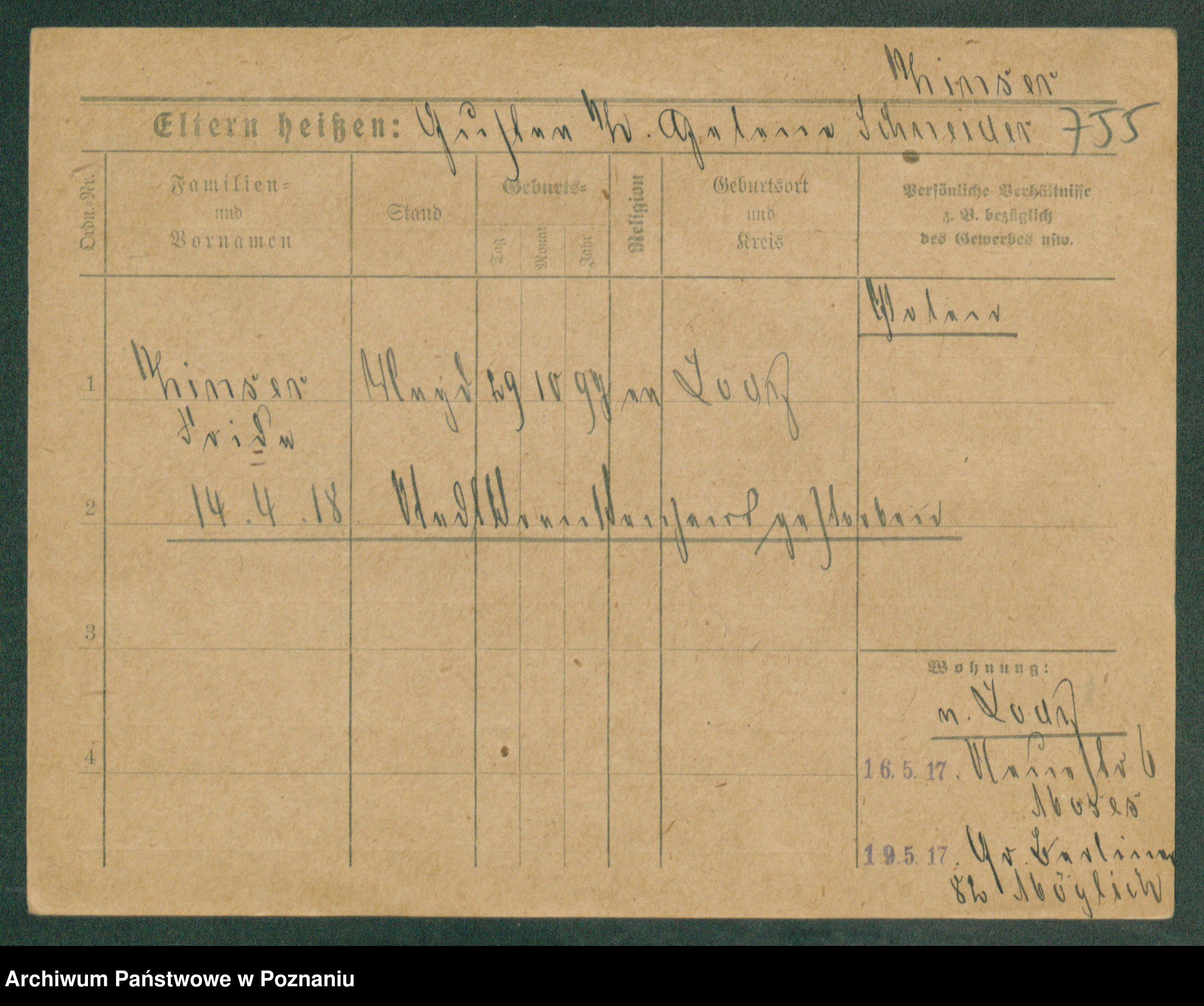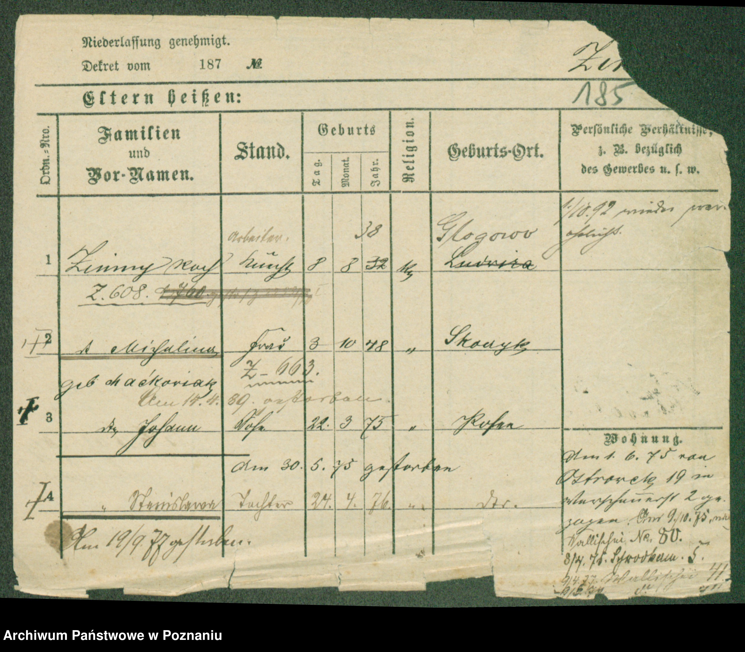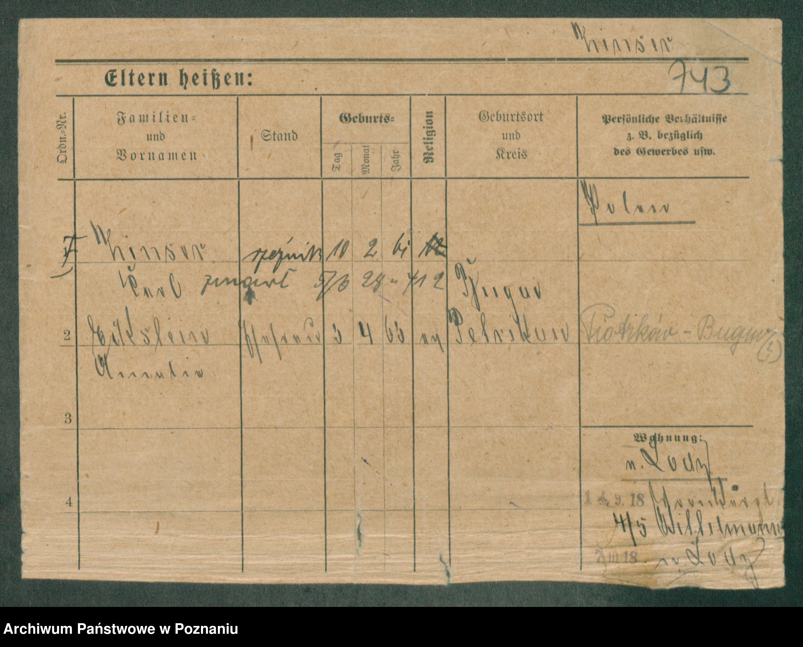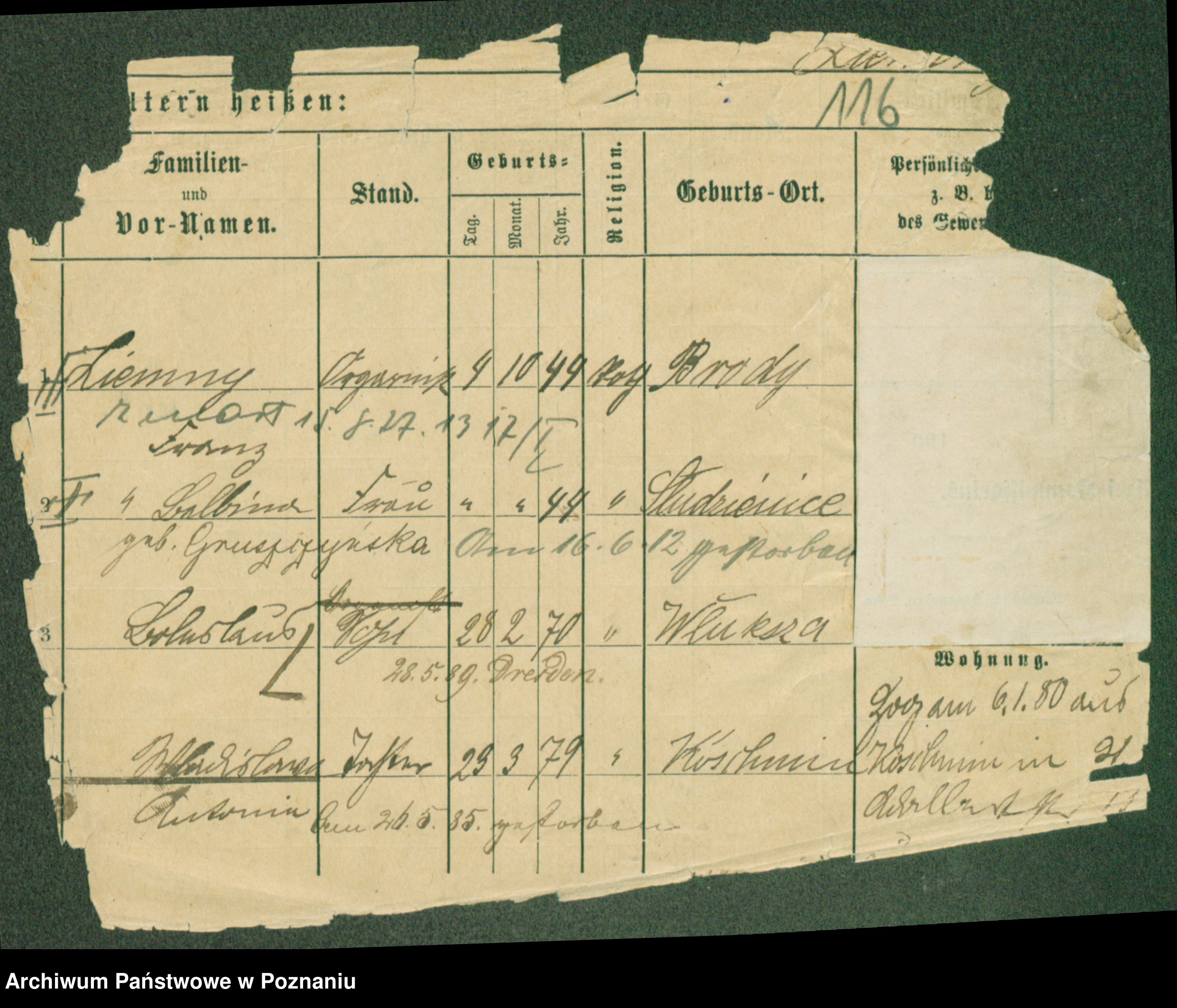 Podgląd karty osobowej dostępny jest po kliknięciu na nazwisko lub ikonkę karty. Można dokonywać powiększenia (ikony na górze) lub przechodzić między kolejnymi skanami (strzałki po bokach).