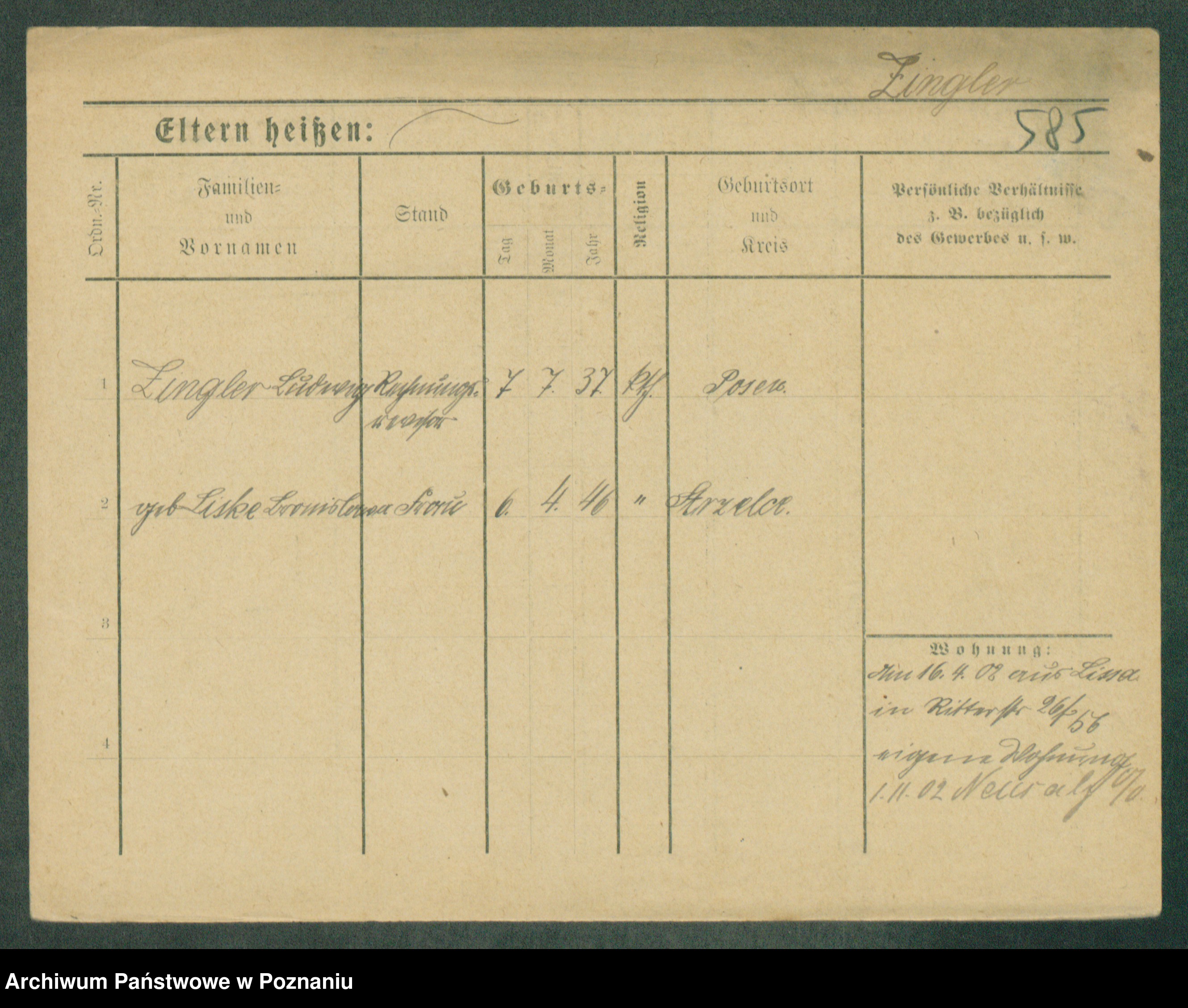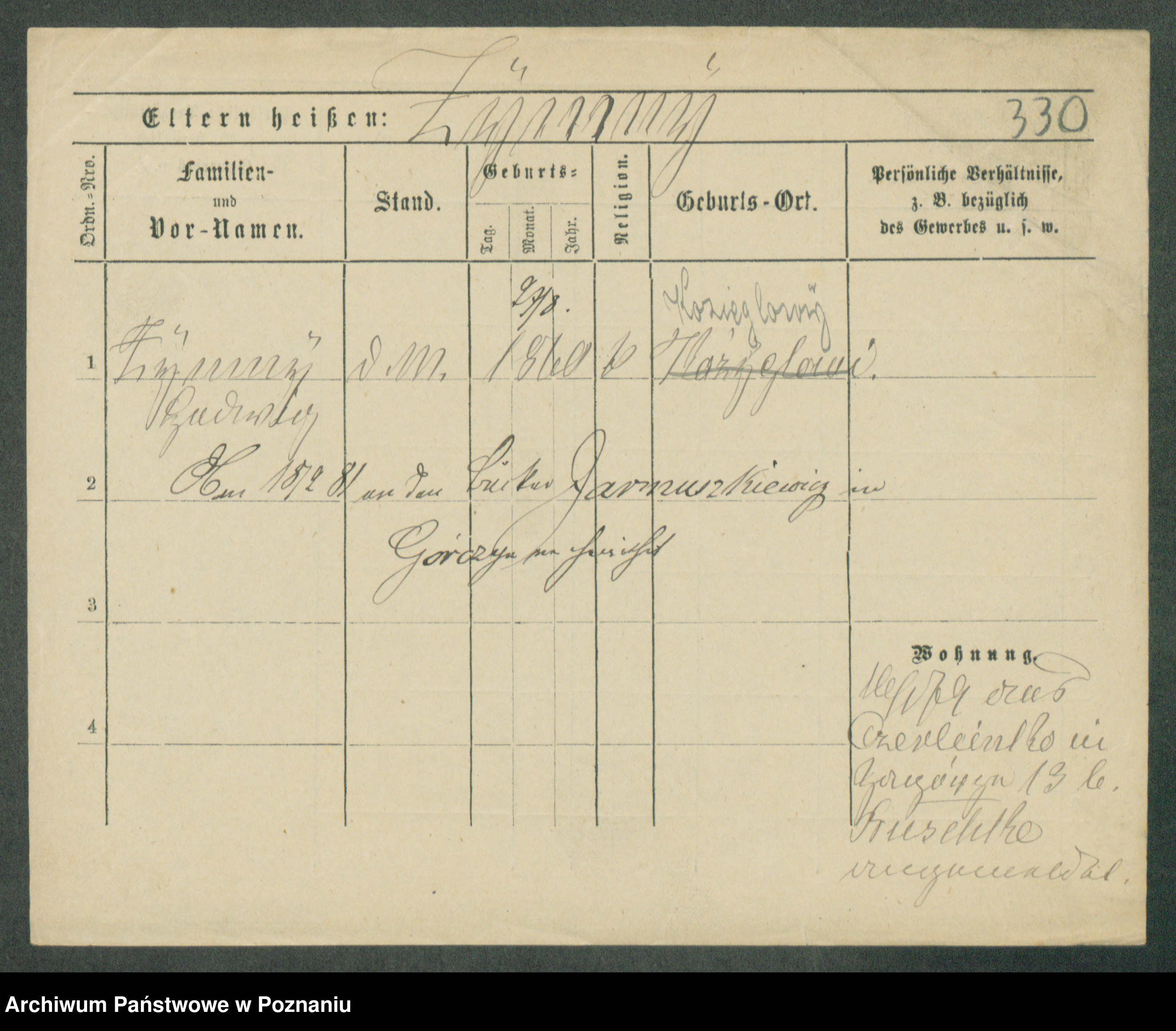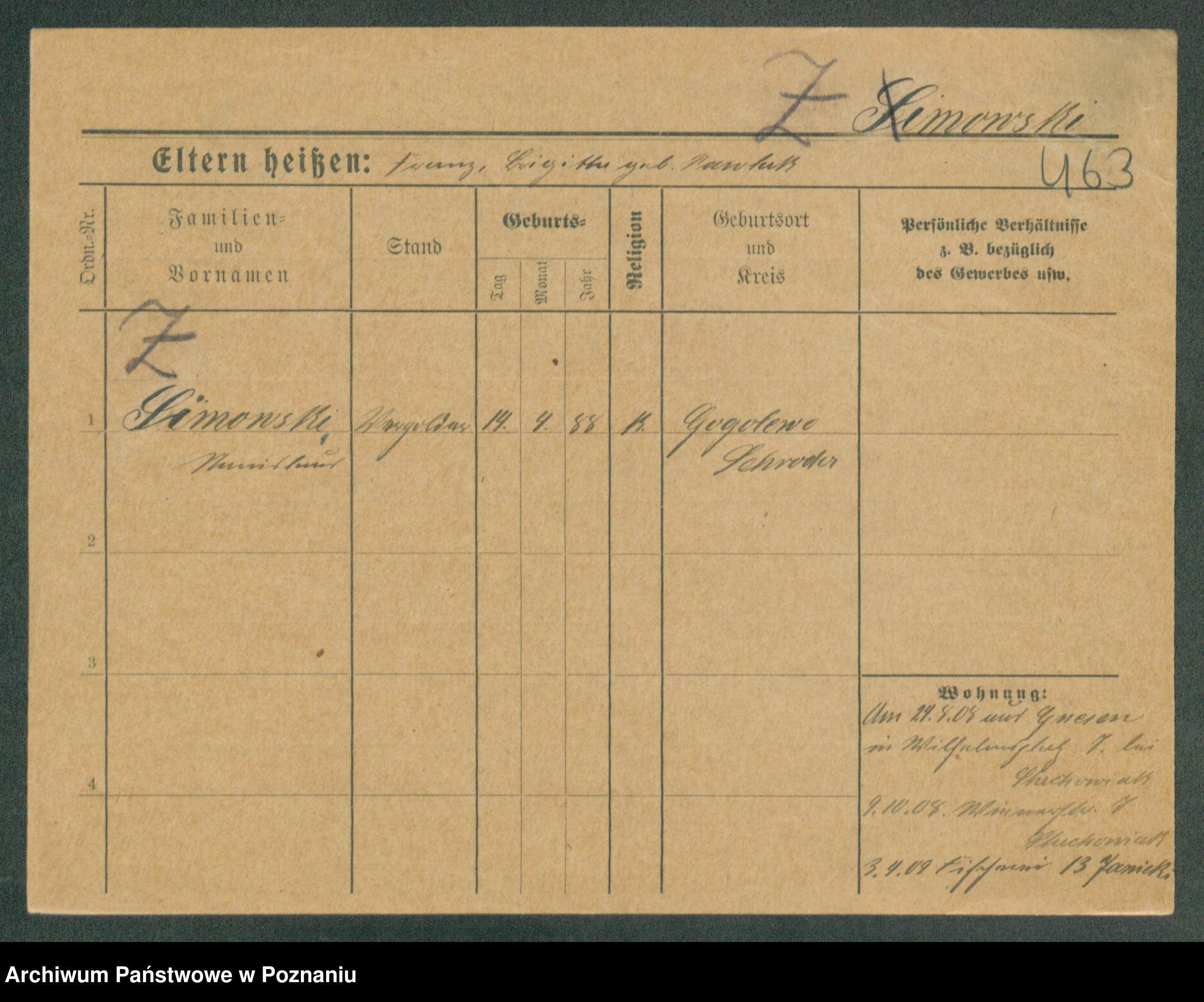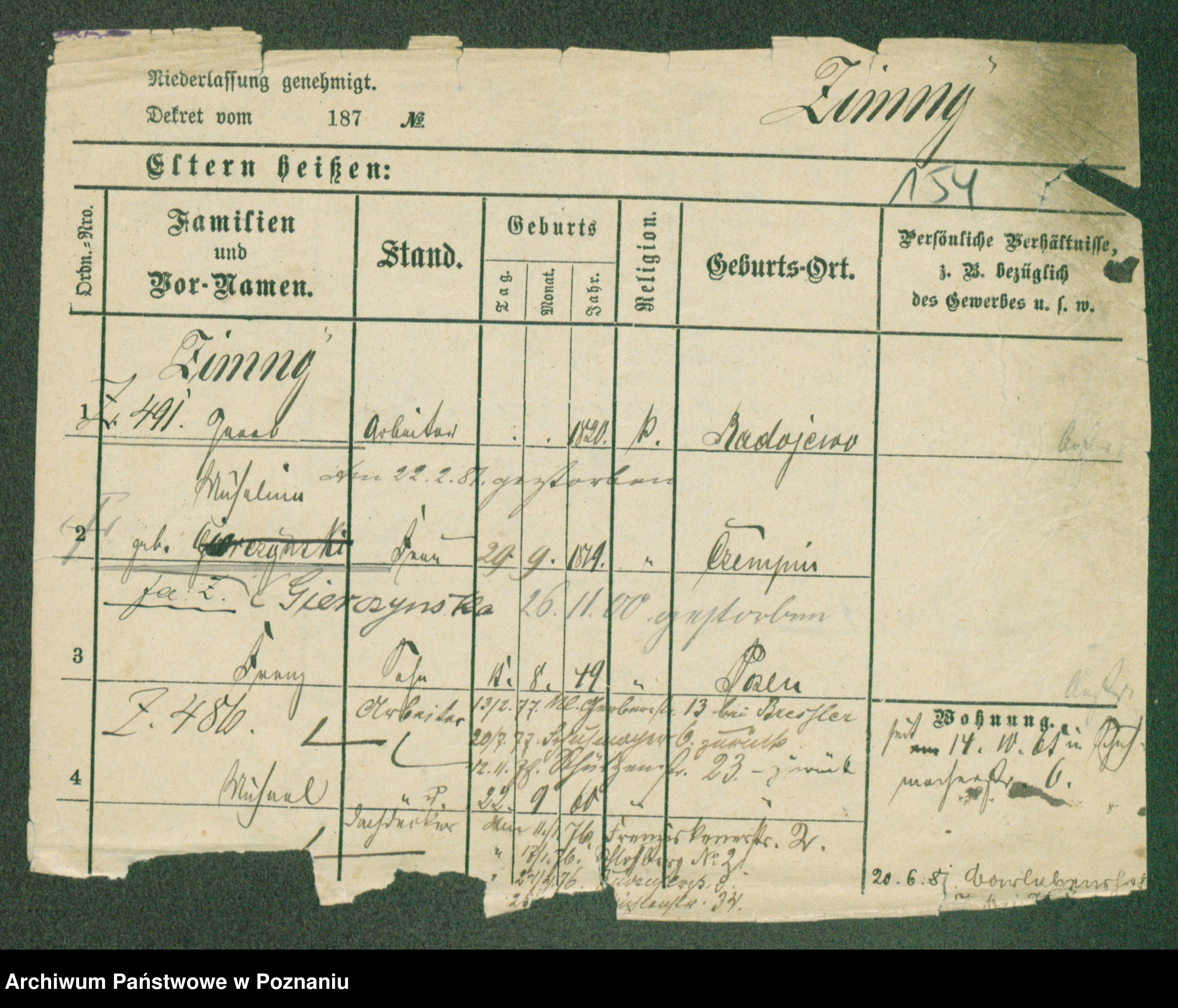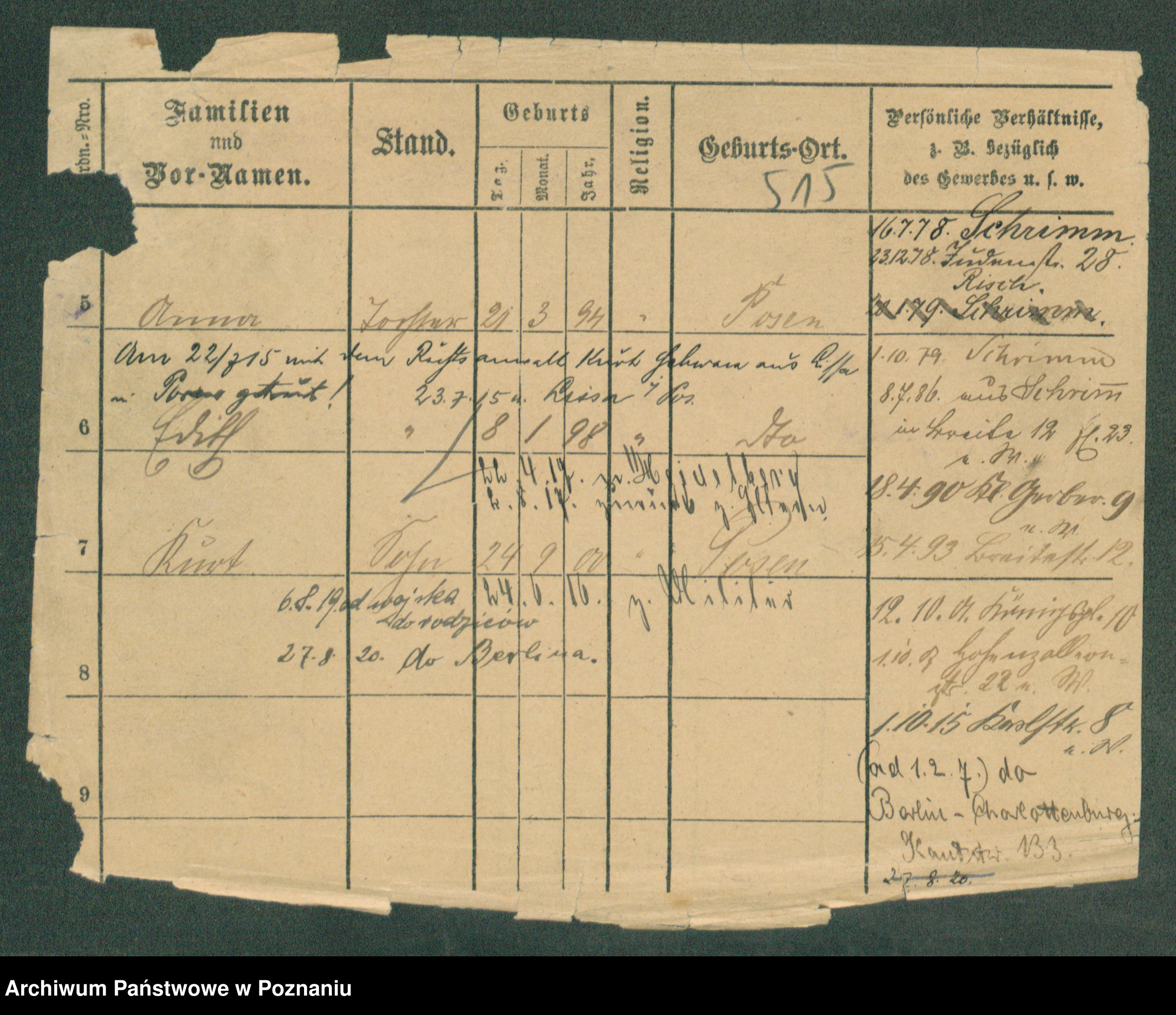 Podgląd karty osobowej dostępny jest po kliknięciu na nazwisko lub ikonkę karty. Można dokonywać powiększenia (ikony na górze) lub przechodzić między kolejnymi skanami (strzałki po bokach).