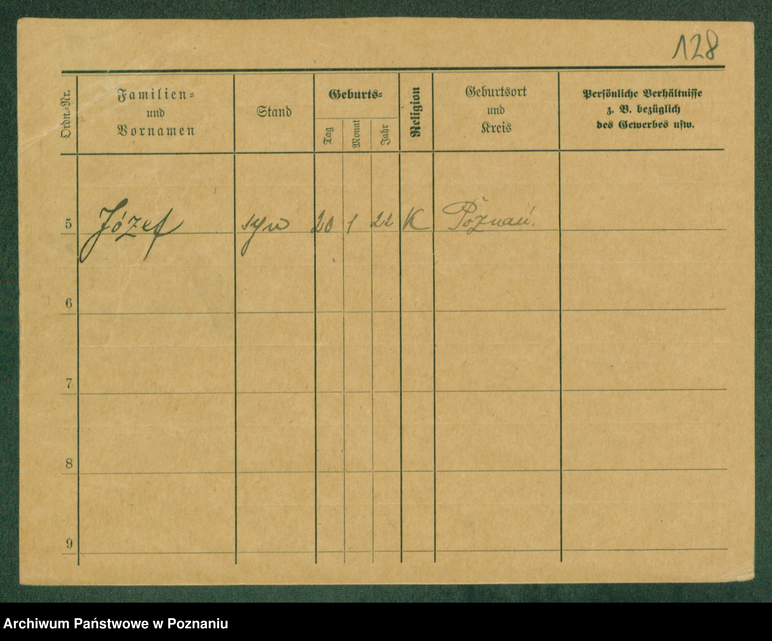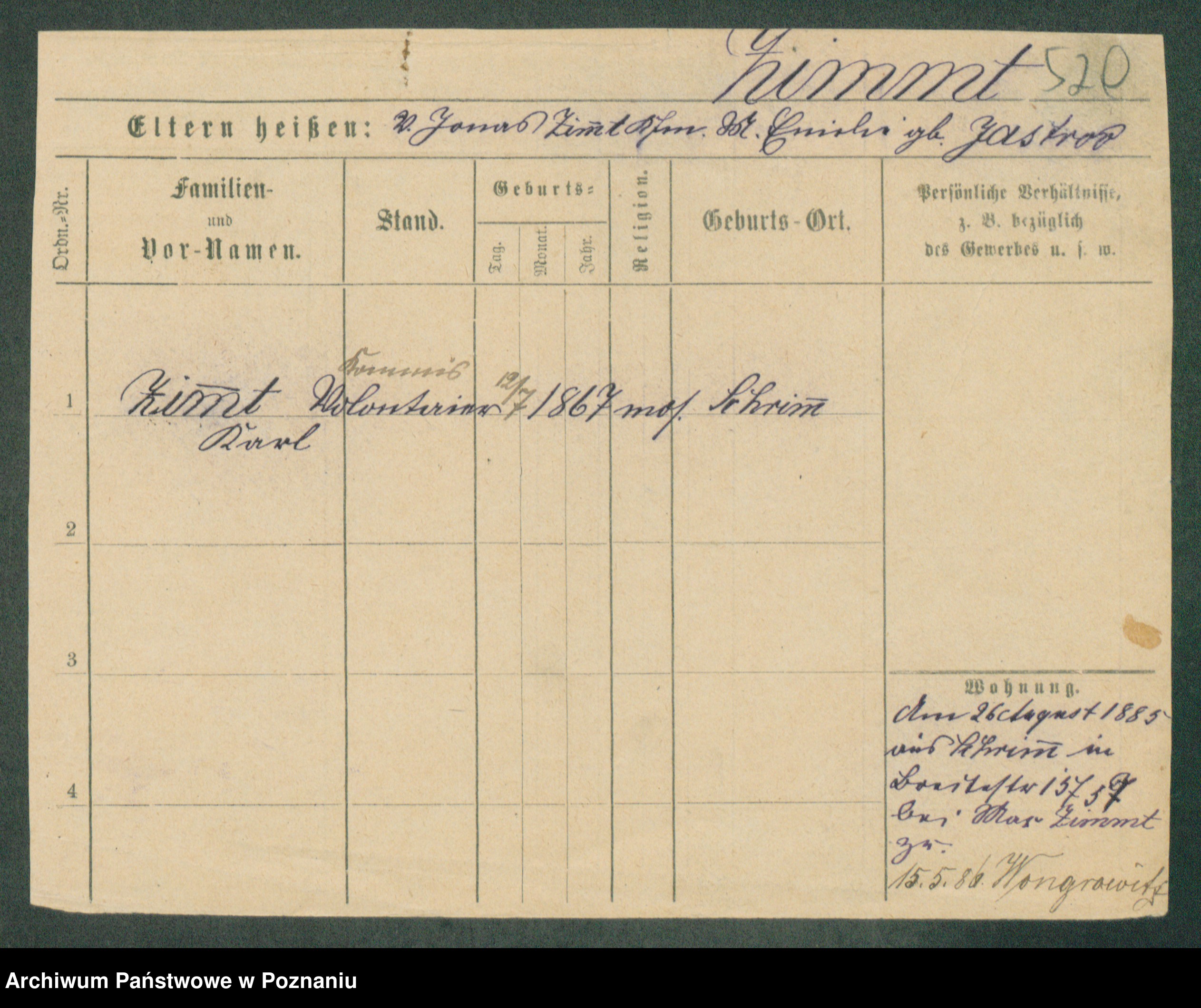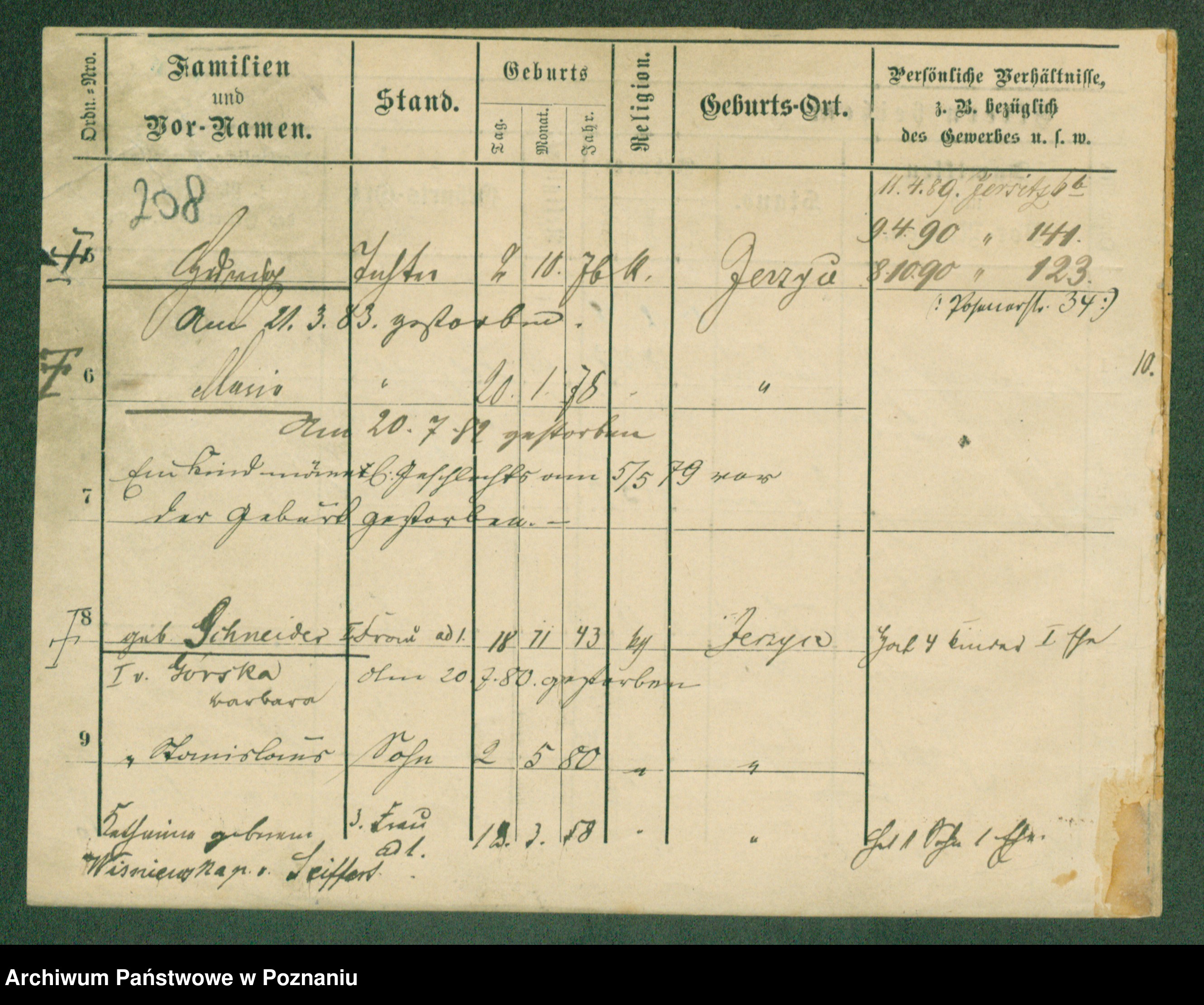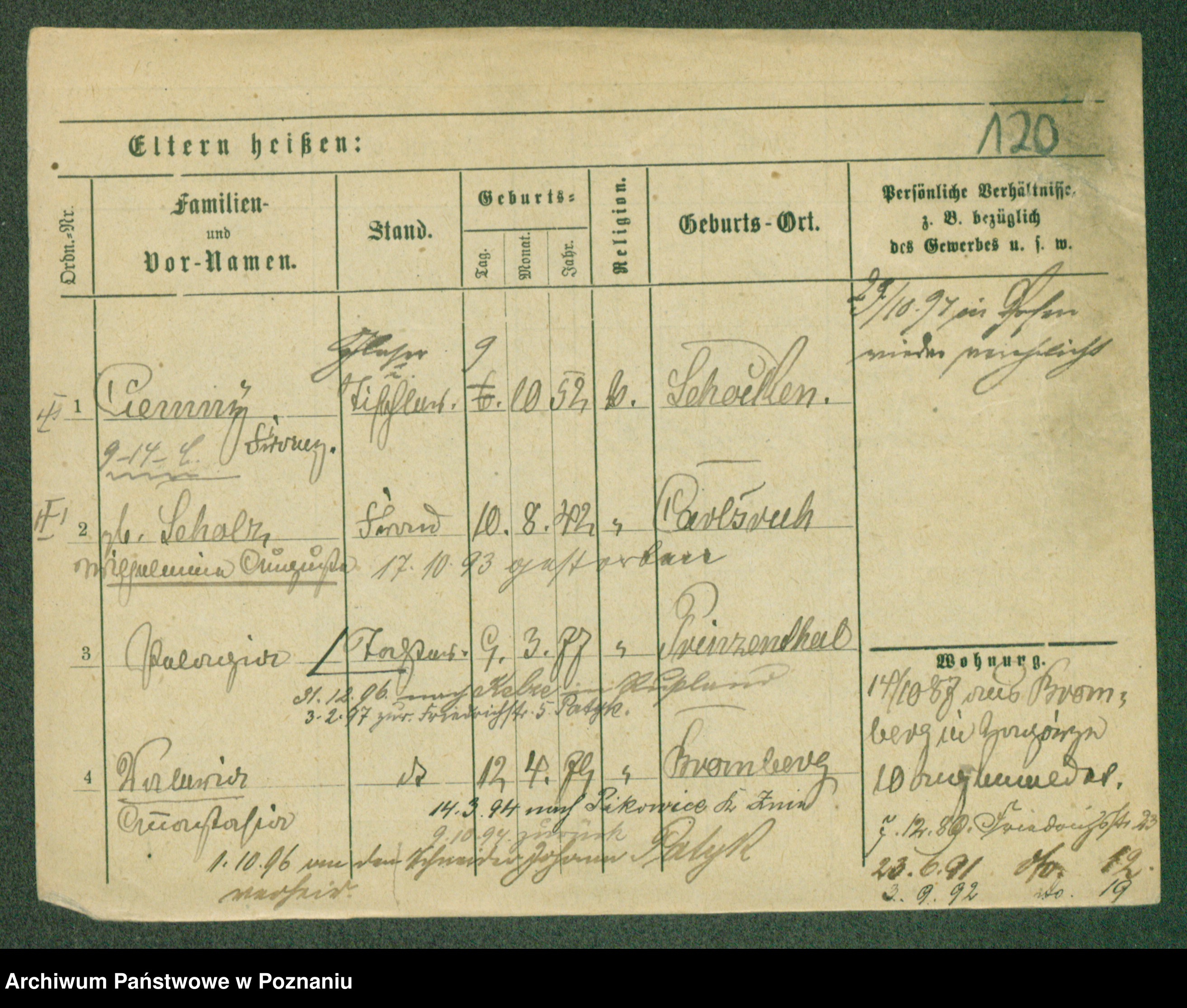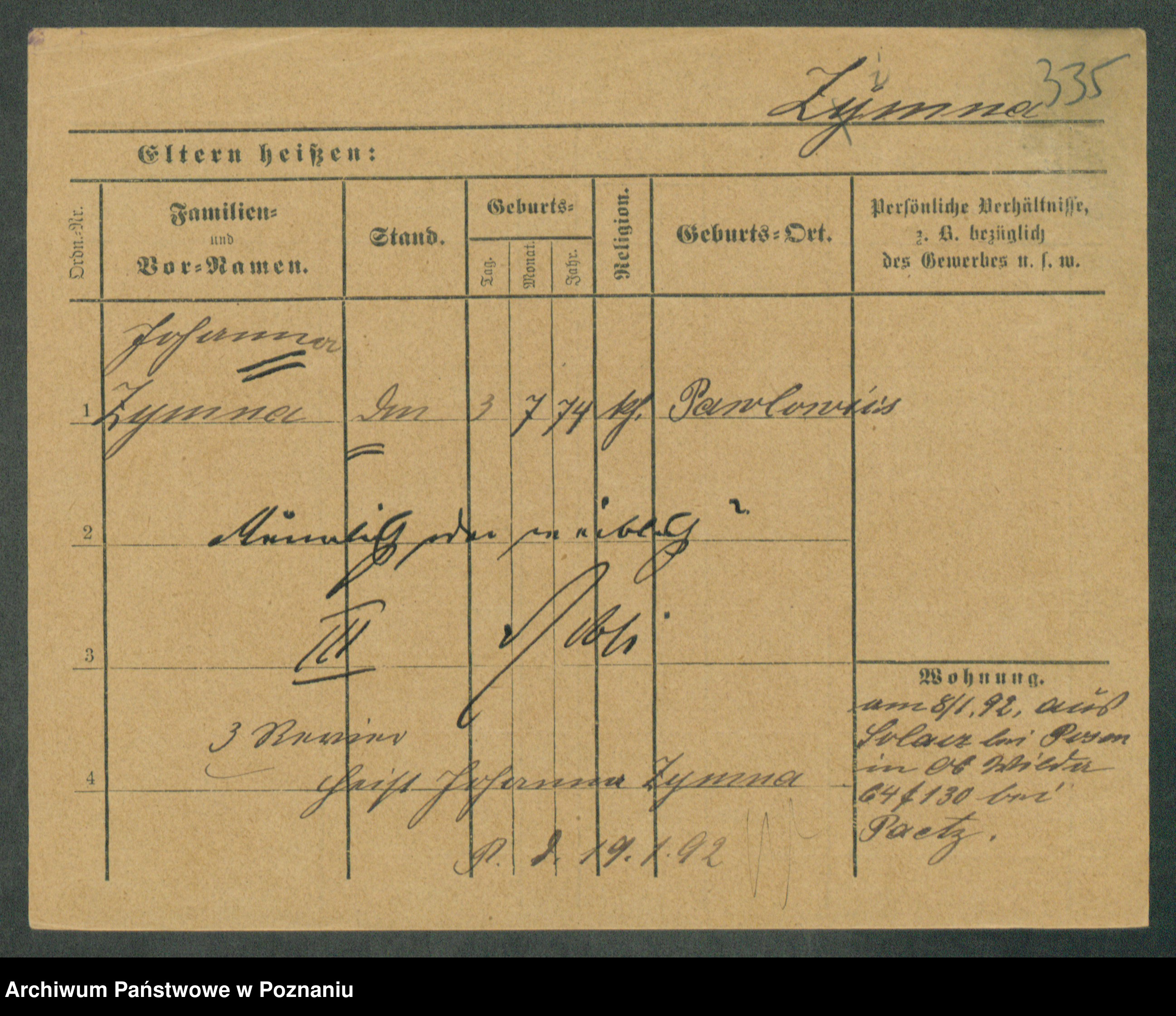 Podgląd karty osobowej dostępny jest po kliknięciu na nazwisko lub ikonkę karty. Można dokonywać powiększenia (ikony na górze) lub przechodzić między kolejnymi skanami (strzałki po bokach).